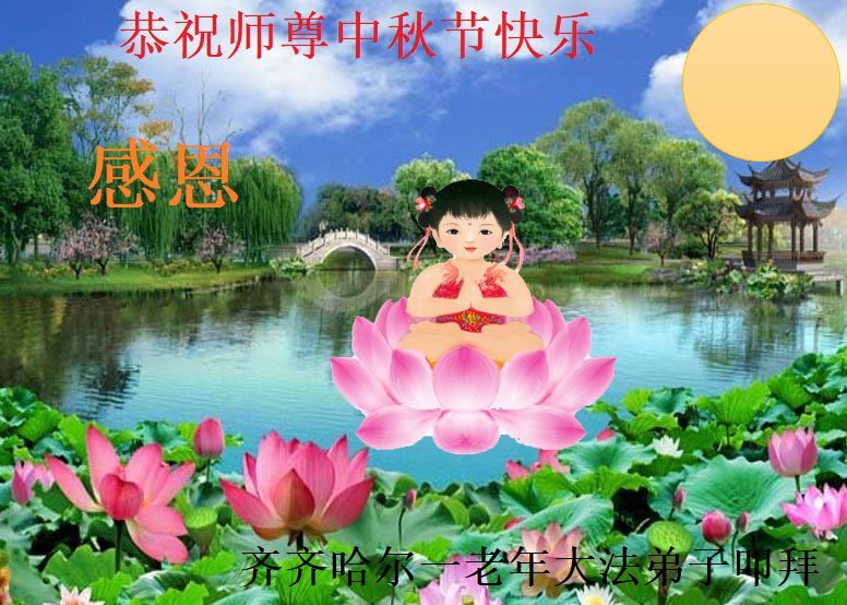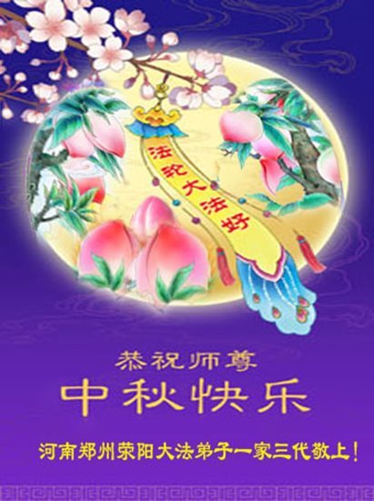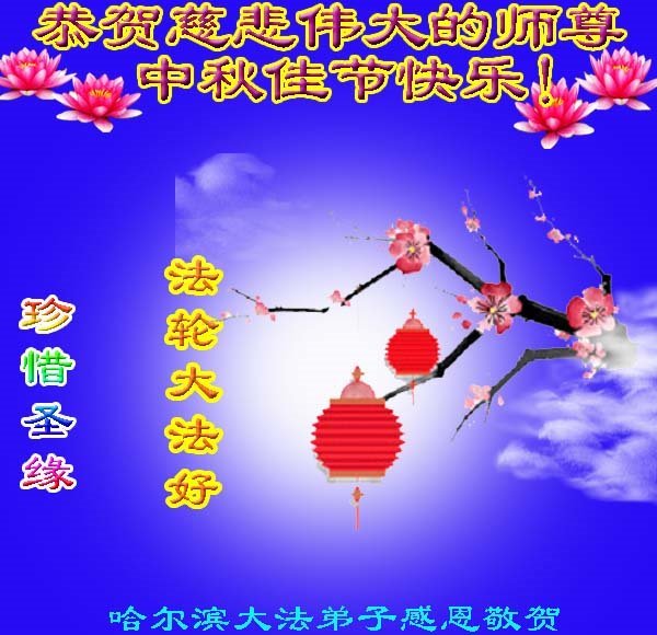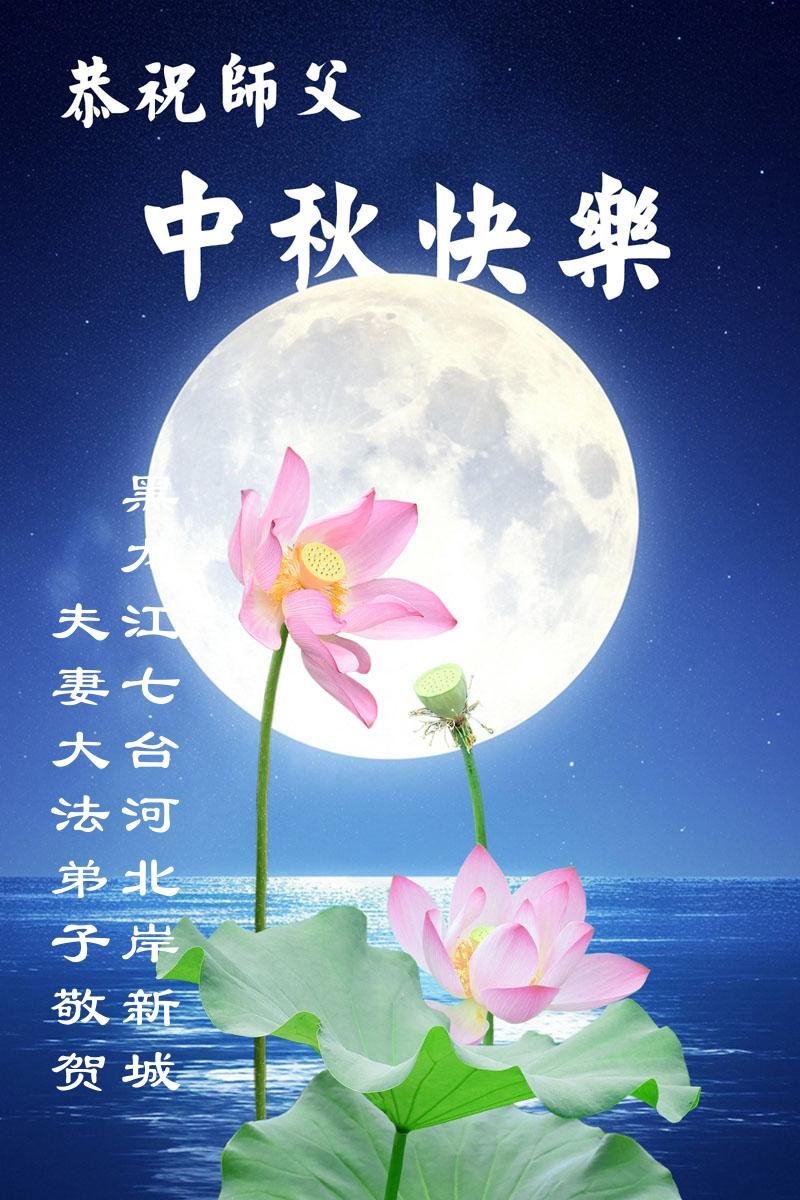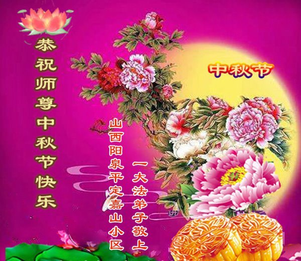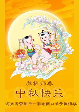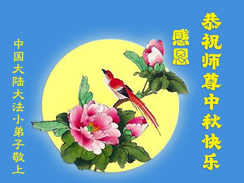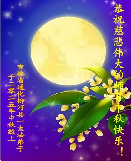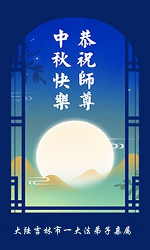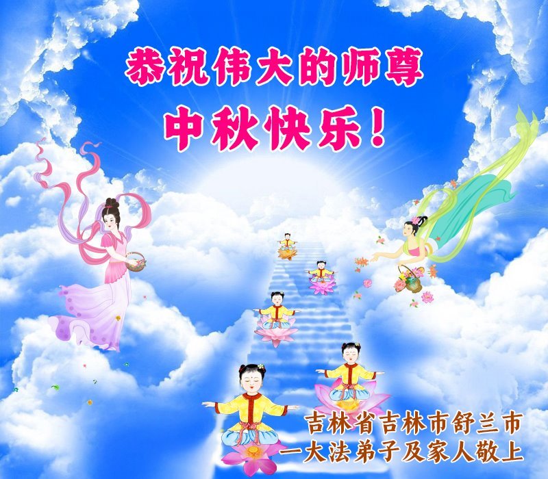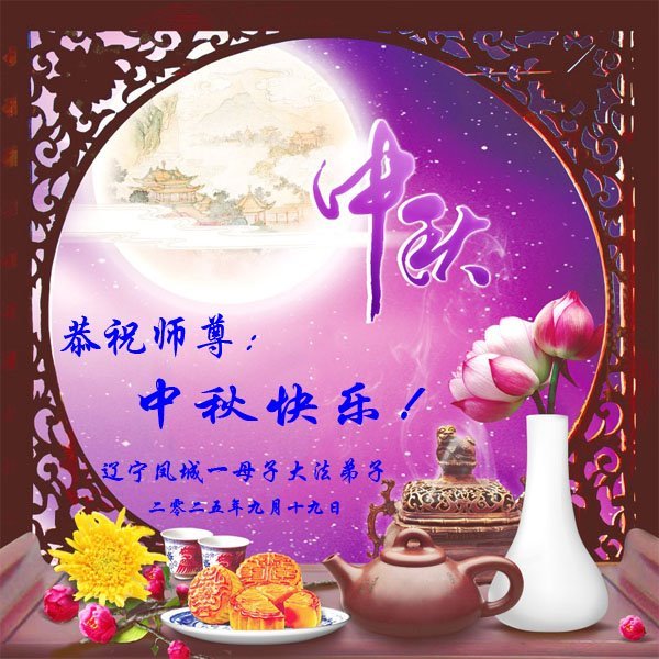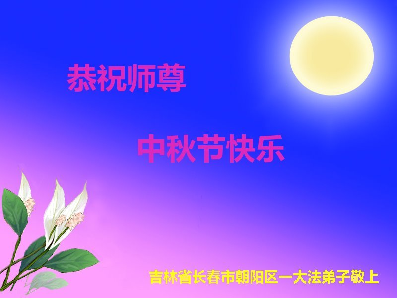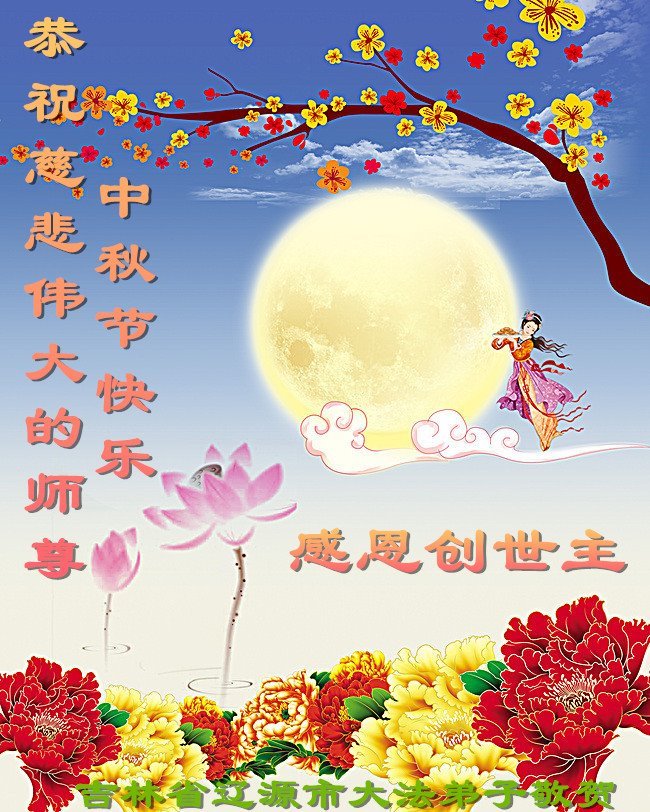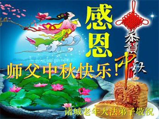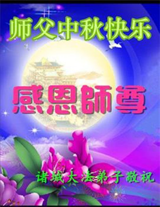 敬祝地球上最最尊敬的大法師父中秋節快樂!盼望大法師父早日回中國和您的弟子們團聚,願您的弟子們早日脫離苦海!也祝福大師的弟子們中秋快樂!