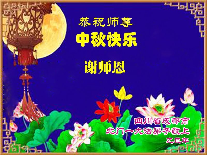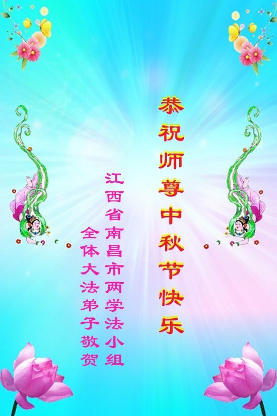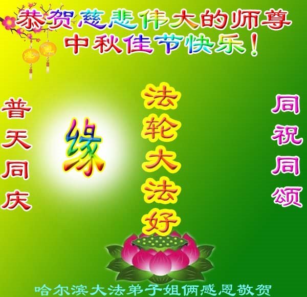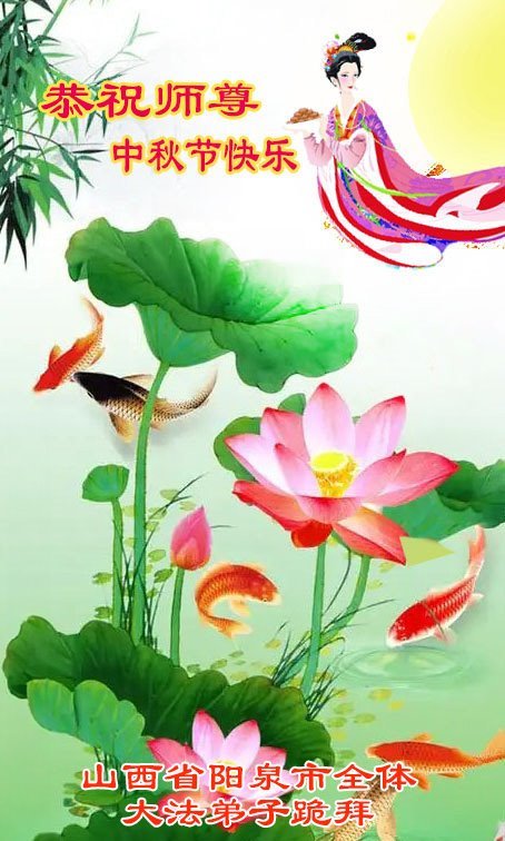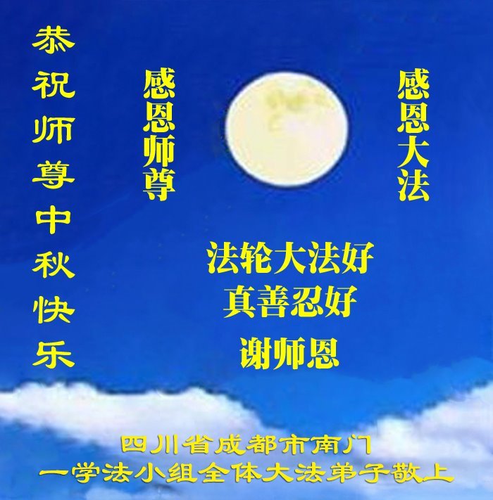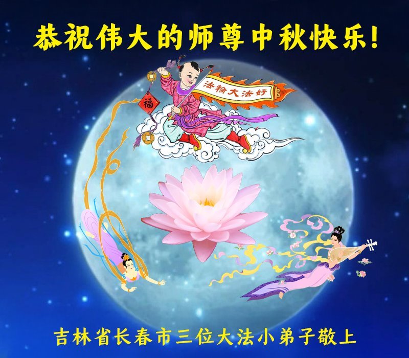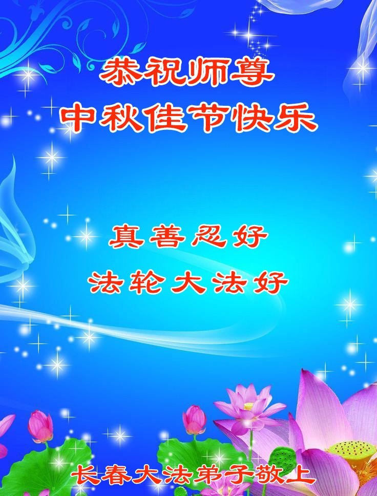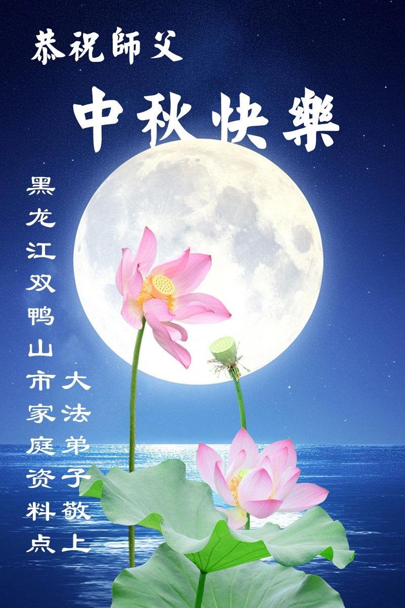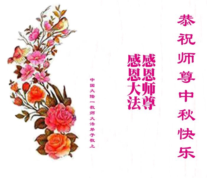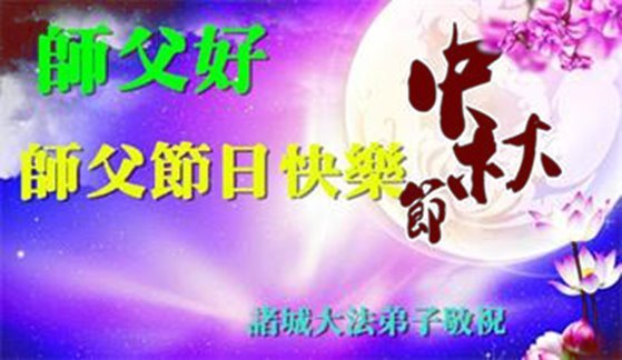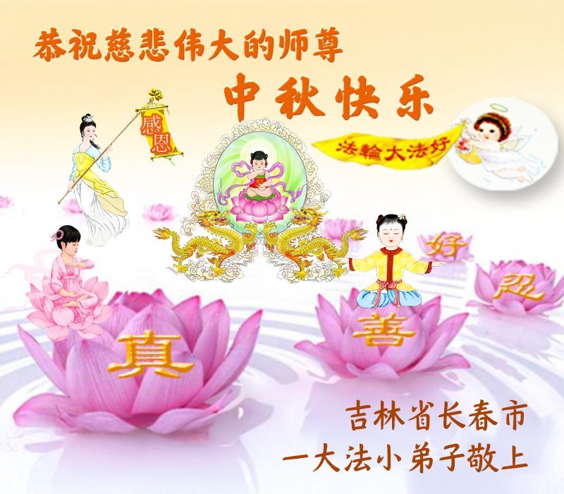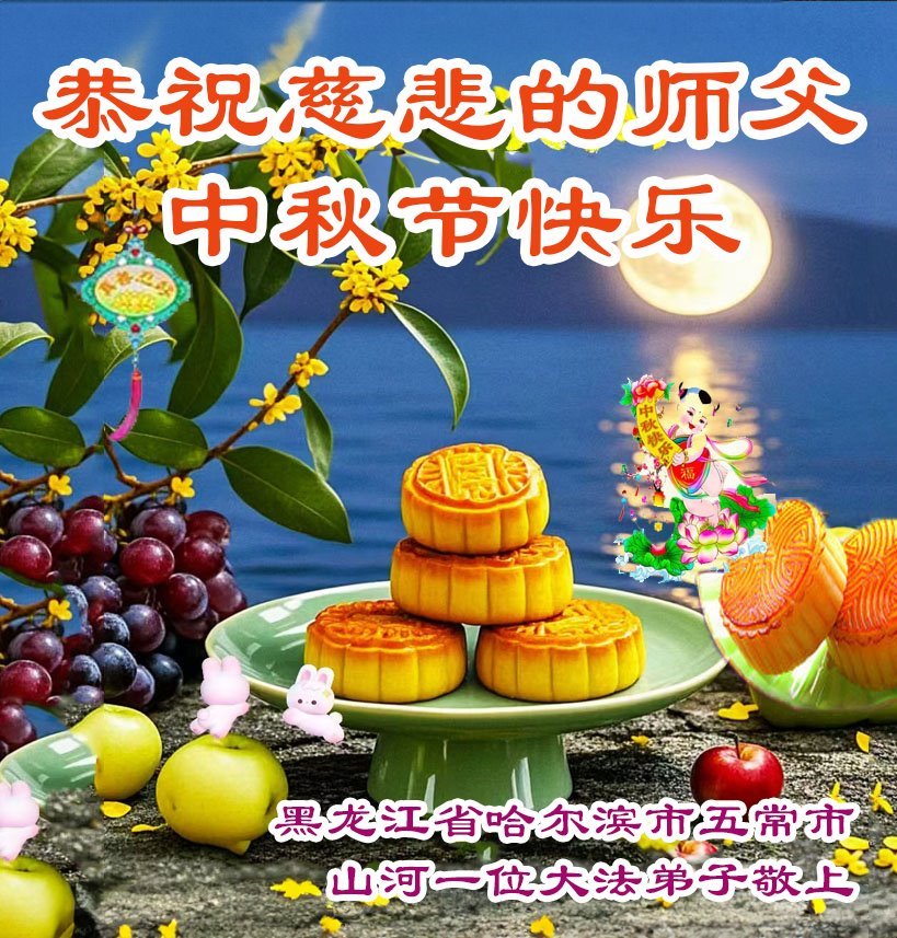 敬祝地球上最最尊敬的大法師父中秋節快樂!盼望大法師父早日回中國和您的弟子們團聚,願您的弟子們早日脫離苦海!也祝福大師的弟子們中秋快樂!