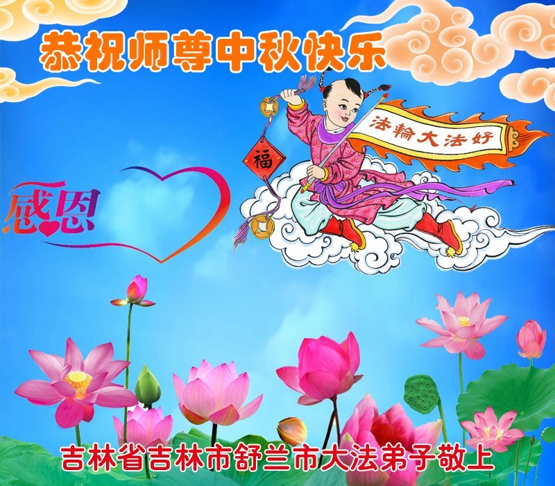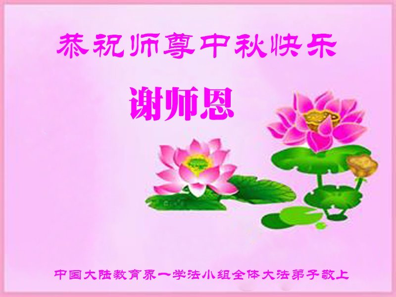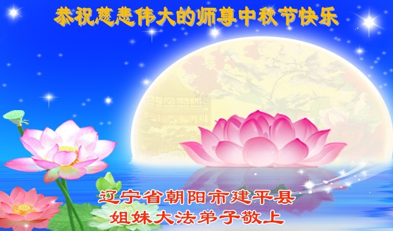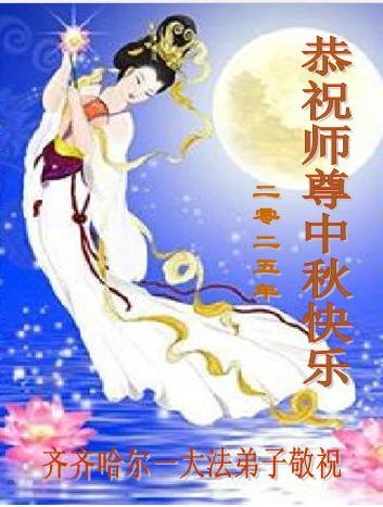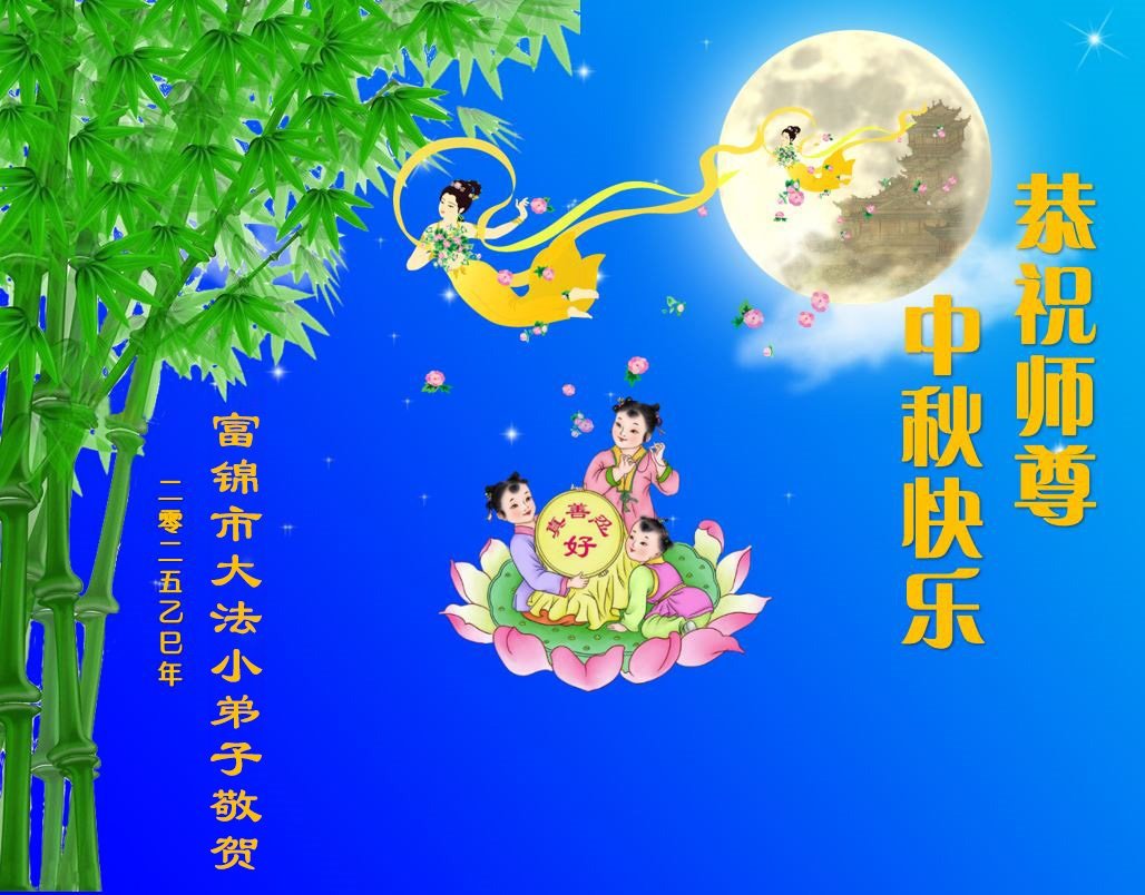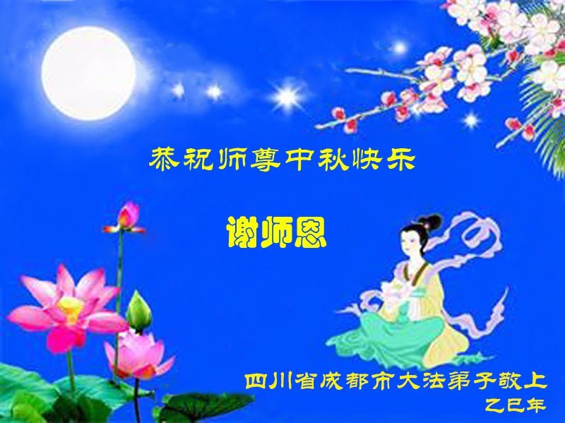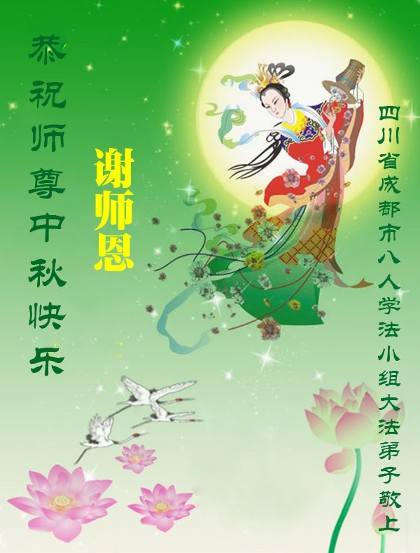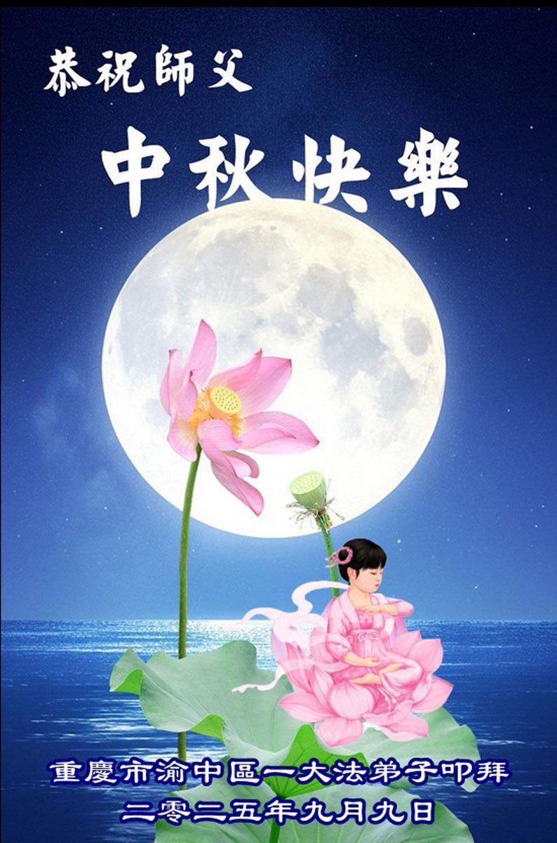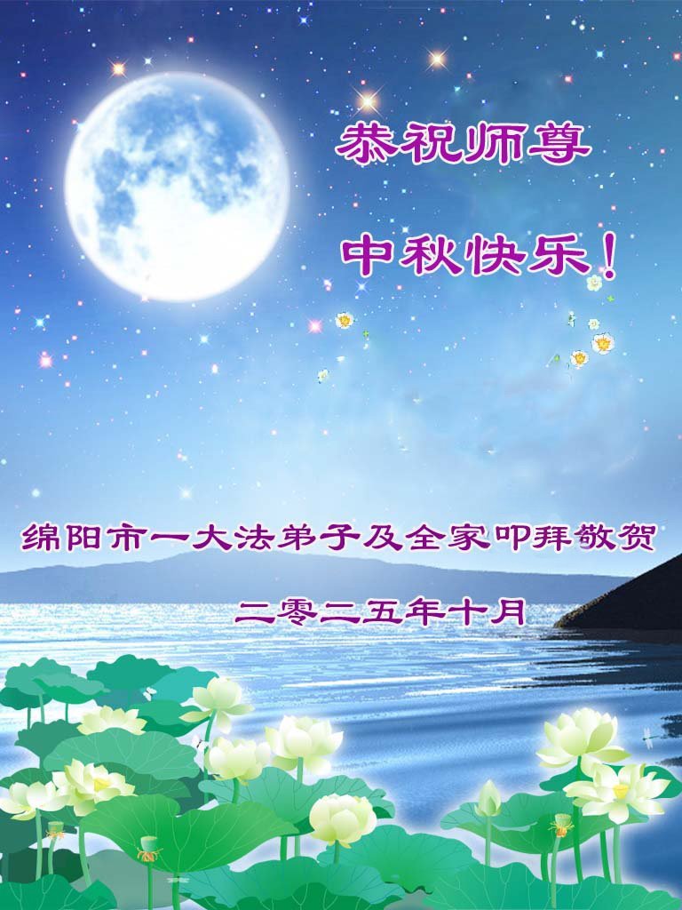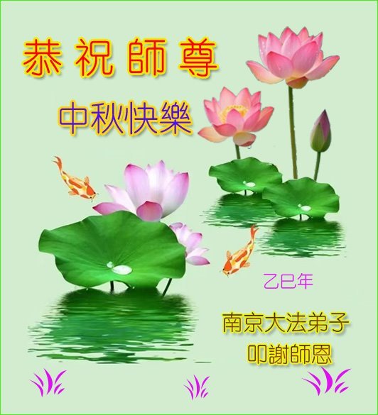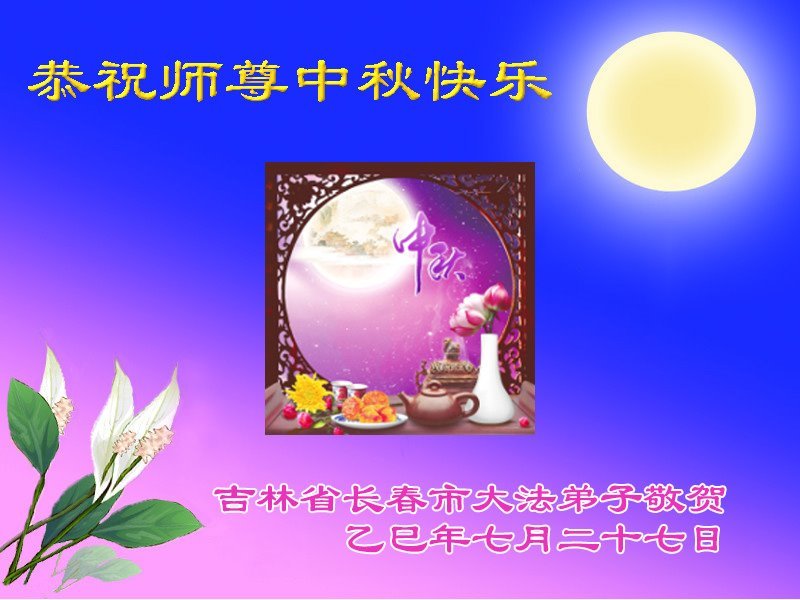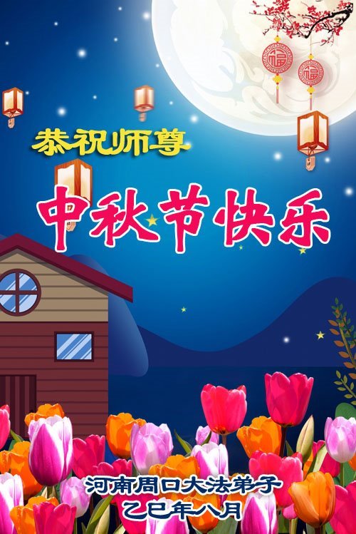 敬祝地球上最最尊敬的大法師父中秋節快樂!盼望大法師父早日回中國和您的弟子們團聚,願您的弟子們早日脫離苦海!也祝福大師的弟子們中秋快樂!