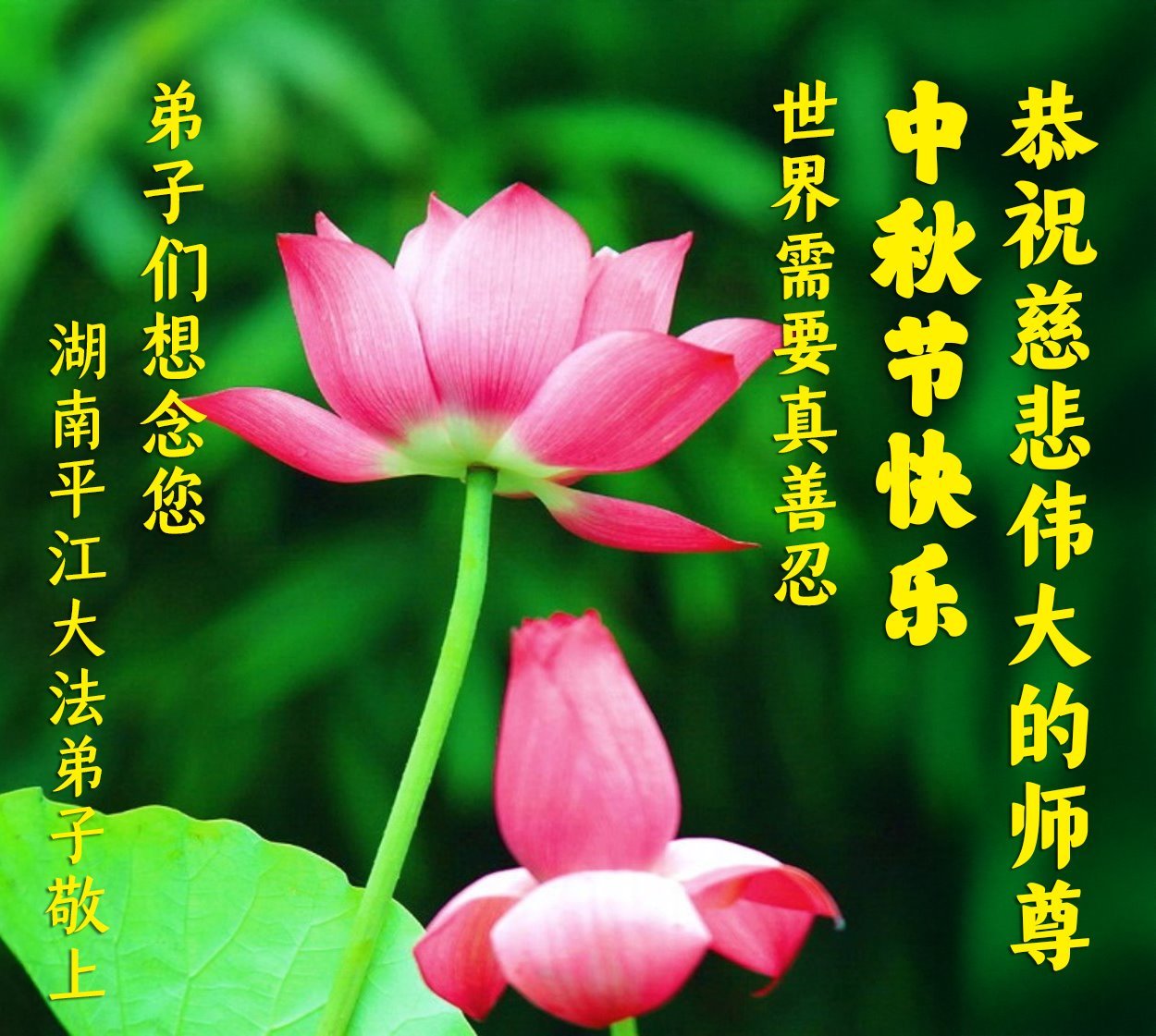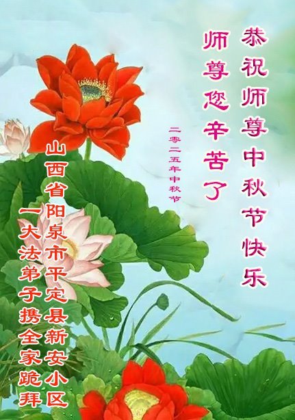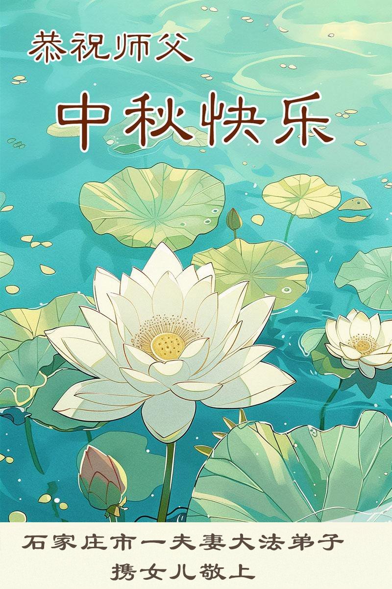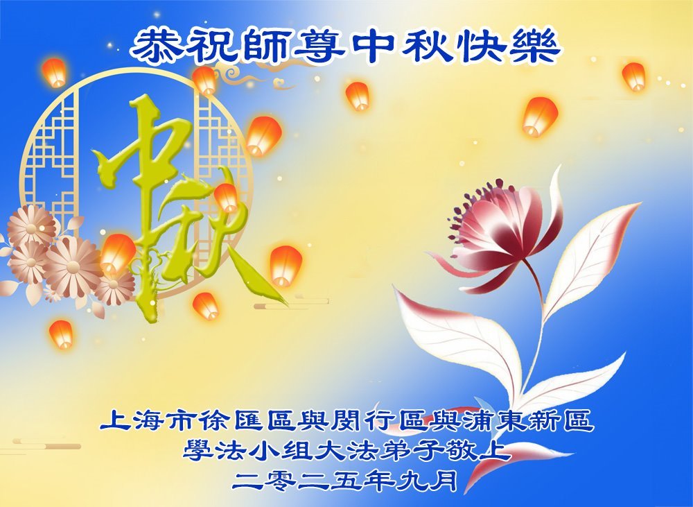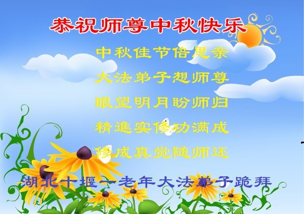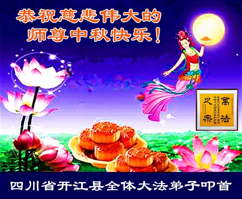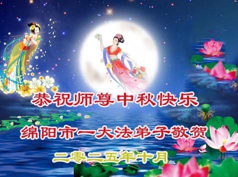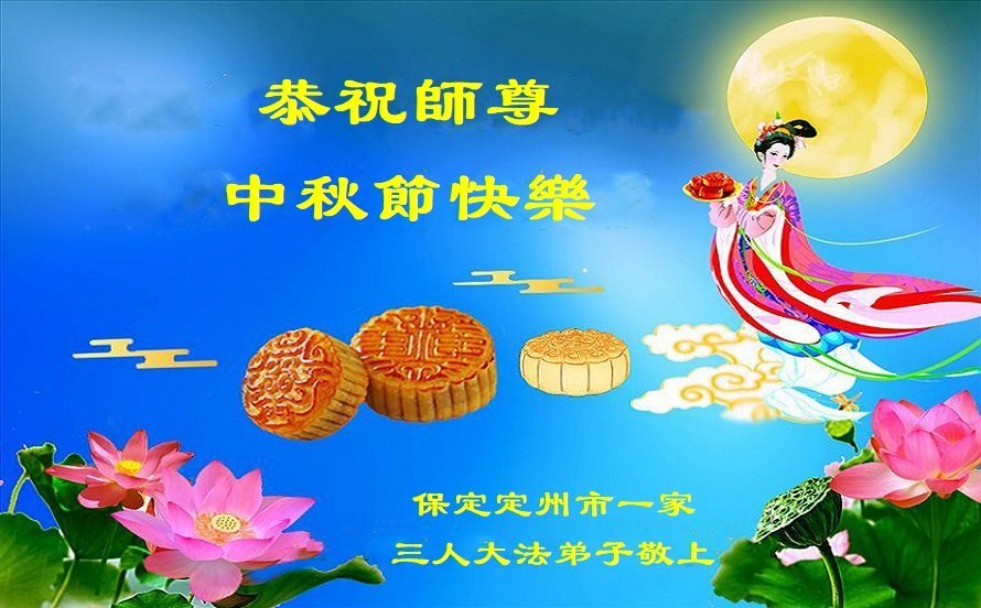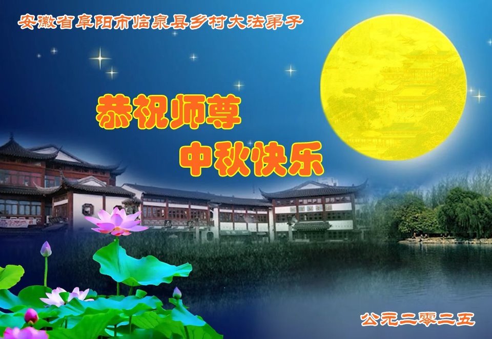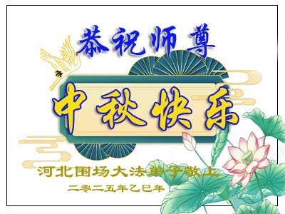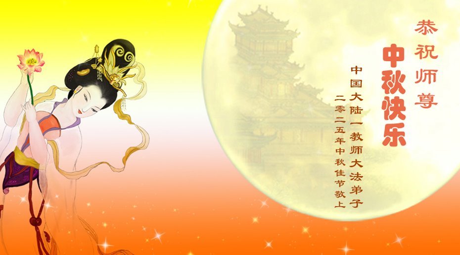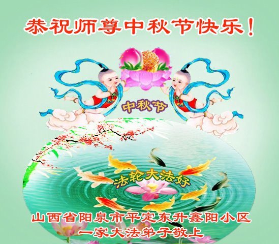 敬祝地球上最最尊敬的大法師父中秋節快樂!盼望大法師父早日回中國和您的弟子們團聚,願您的弟子們早日脫離苦海!也祝福大師的弟子們中秋快樂!