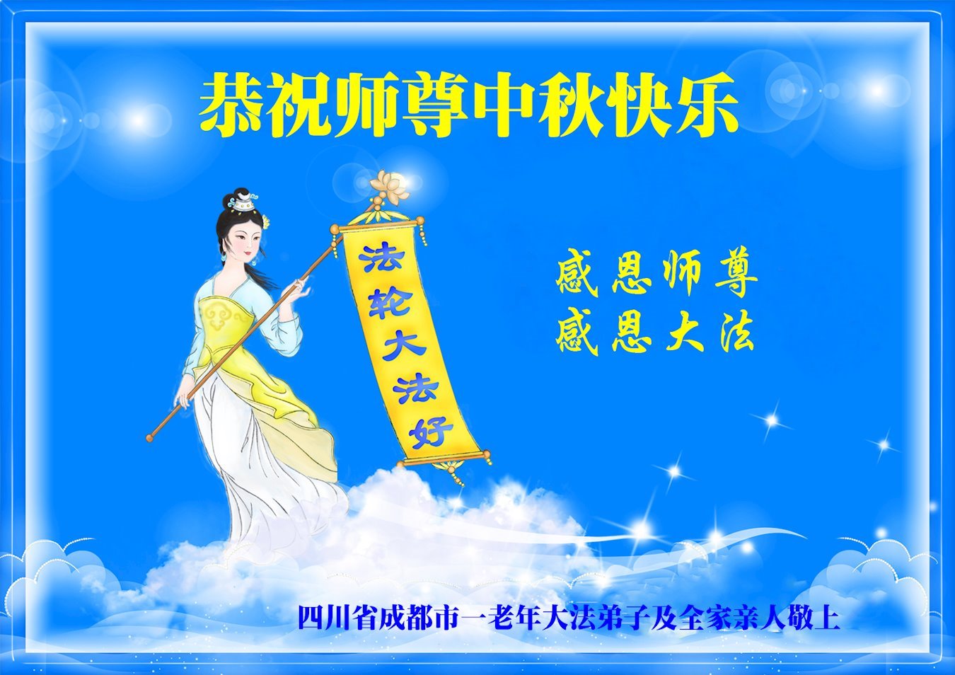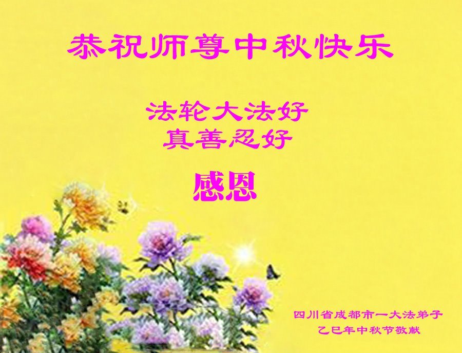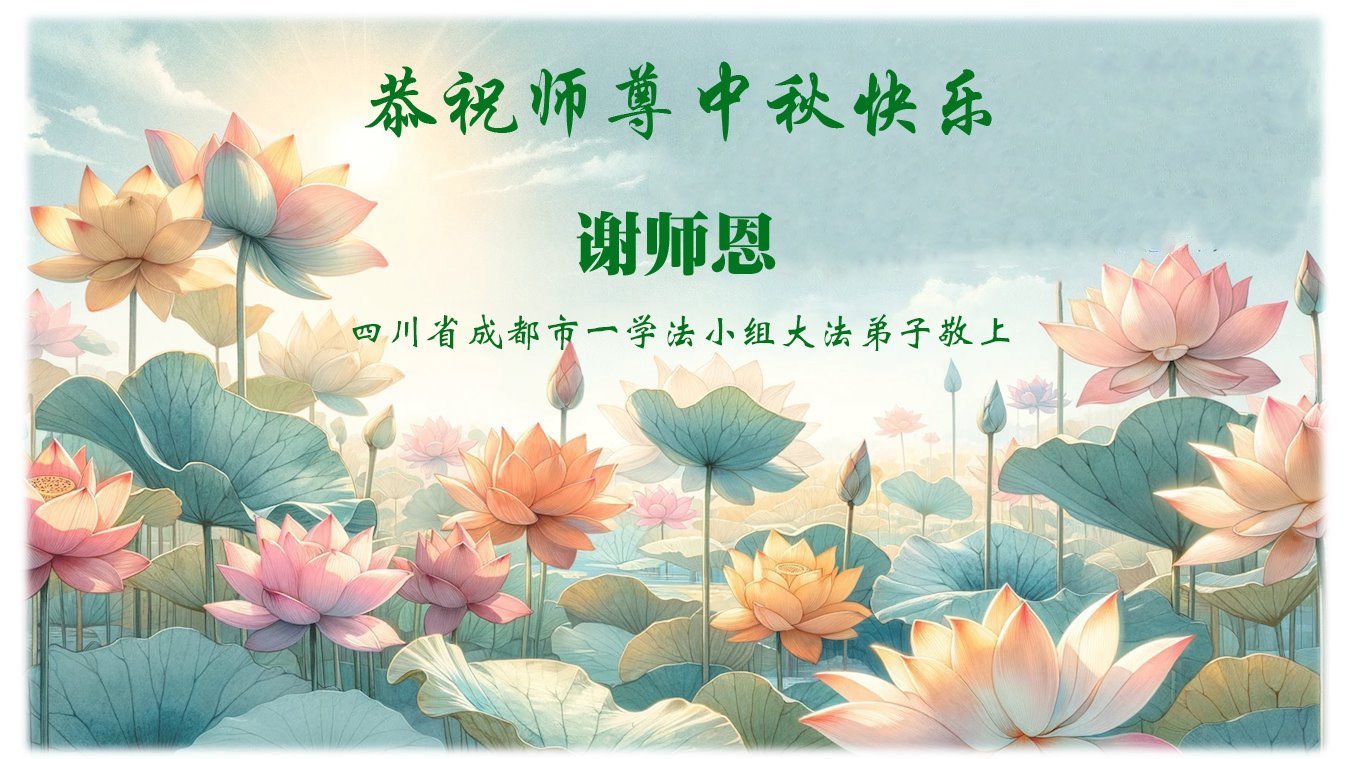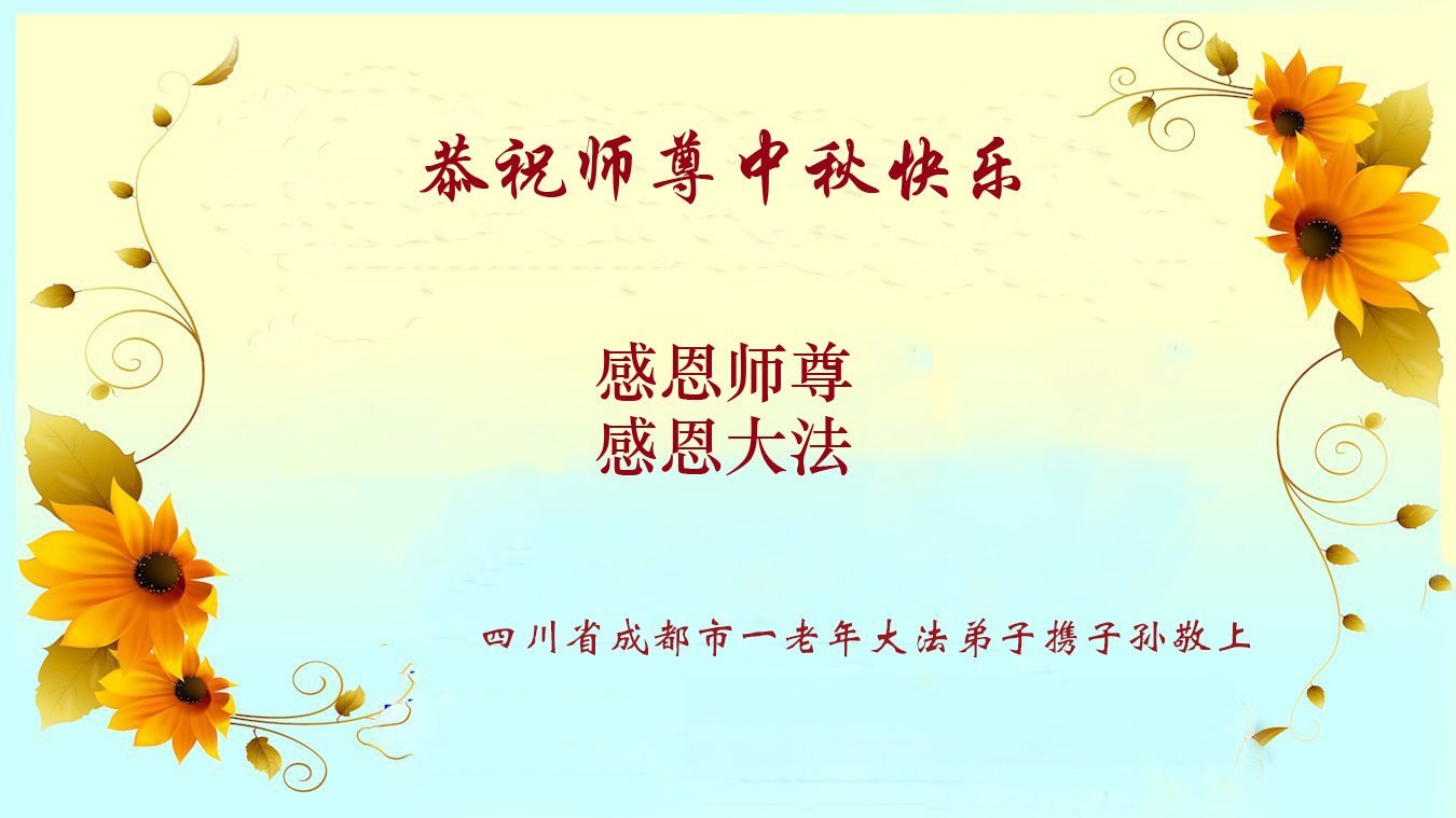 在中秋佳節即將到來之際,感恩大法師父把這高德大法傳給世人,讓我們懂得了做人的道理,做好人就能得到大法師父的保護,能在這亂世中平安度過一個又一個劫難。謝謝大法師父!