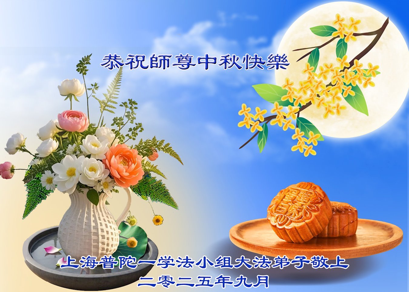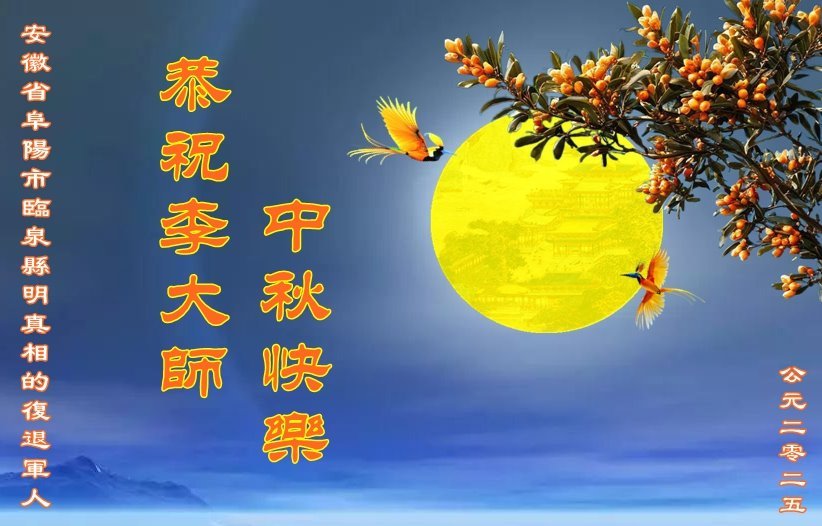 中秋佳節即將到來,在此祝願李大師中秋快樂!願中國人儘早拋棄邪黨,過上真正屬於人類的正常生活。願大法弟子遭受的迫害儘快結束,能夠正常的修煉,從而更好的福益於全社會、全人類。