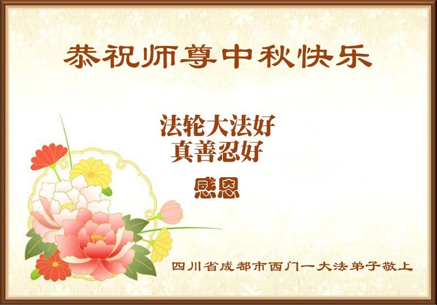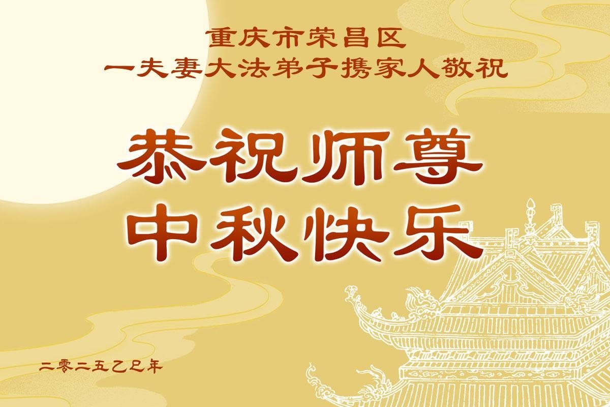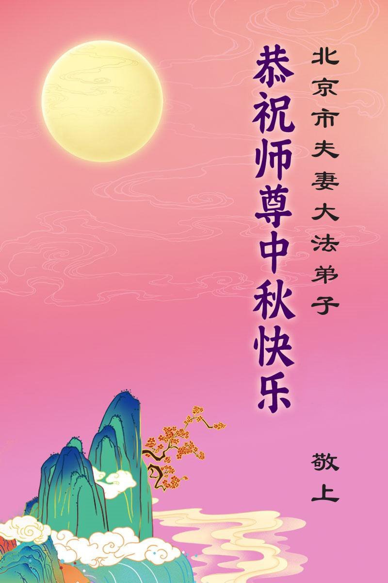 我母親是大法弟子,我雖未修煉,卻相信大法,護身符也不離身,在日常生活中也有頗多的受益,在此中秋佳節之際,我和妻子恭祝李師父中秋節快樂!