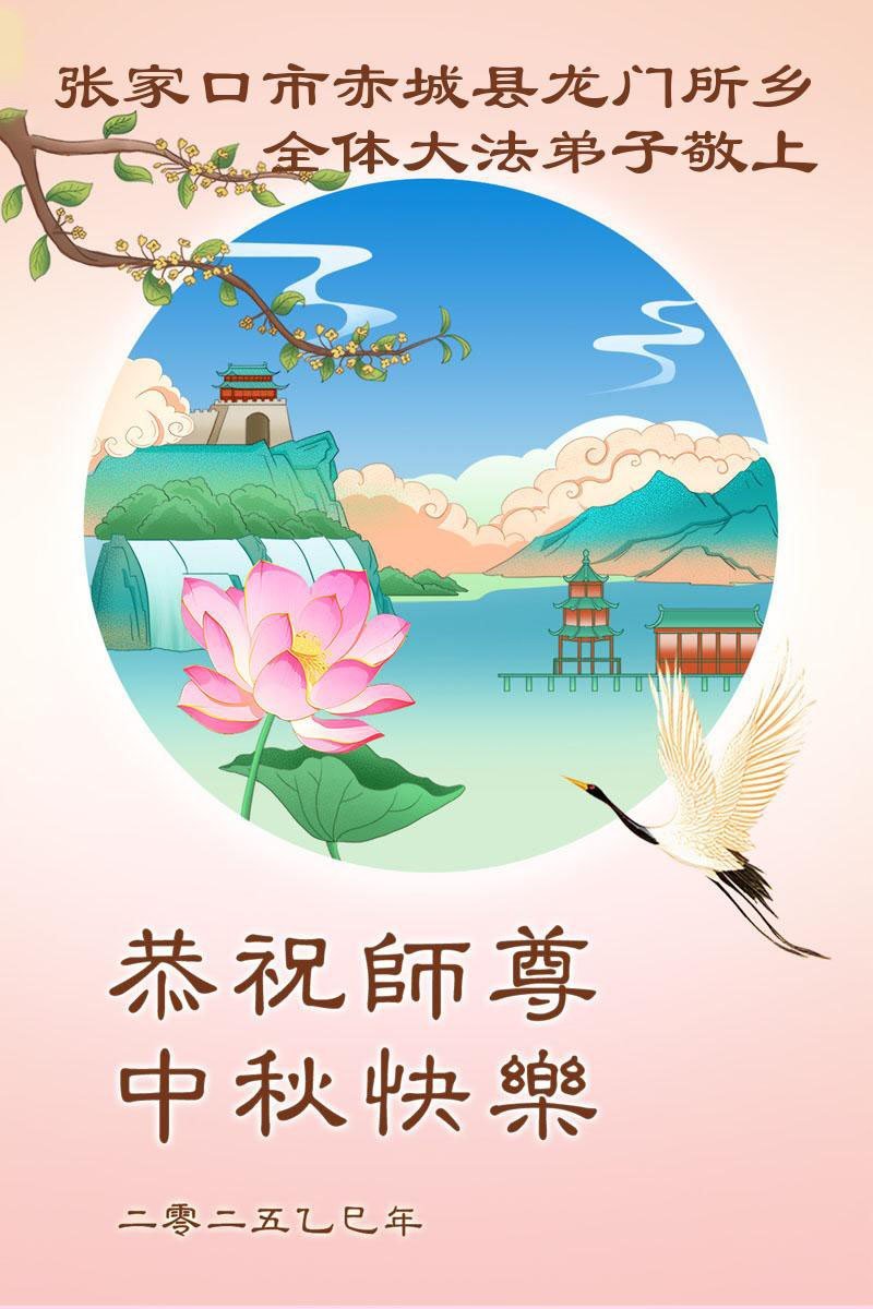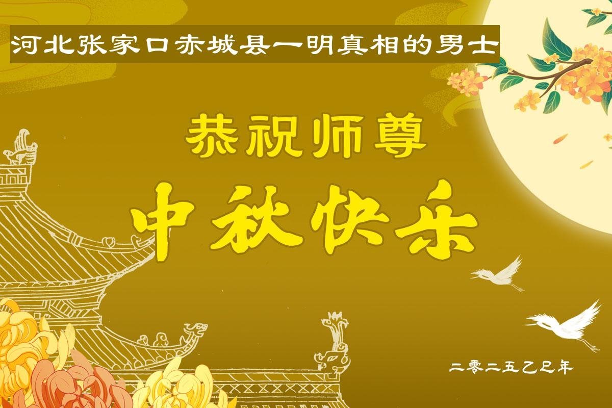 【明慧網二零二五年十月一日】(明慧網通訊員中國大陸報導)中秋佳節倍思恩,中國各省市民眾恭祝李洪志大師中秋節快樂!支持大法、得到大法佑護的中國大陸各界民眾表示:現在天災人禍,民不聊生,貪官污吏橫行霸道,老百姓都盼望中共垮台。如果人人都按真善忍做好人,社會就安定。他們在賀詞中寫道:「願中國人儘早拋棄邪黨」,「堂堂正正做一個正直的中國人」。