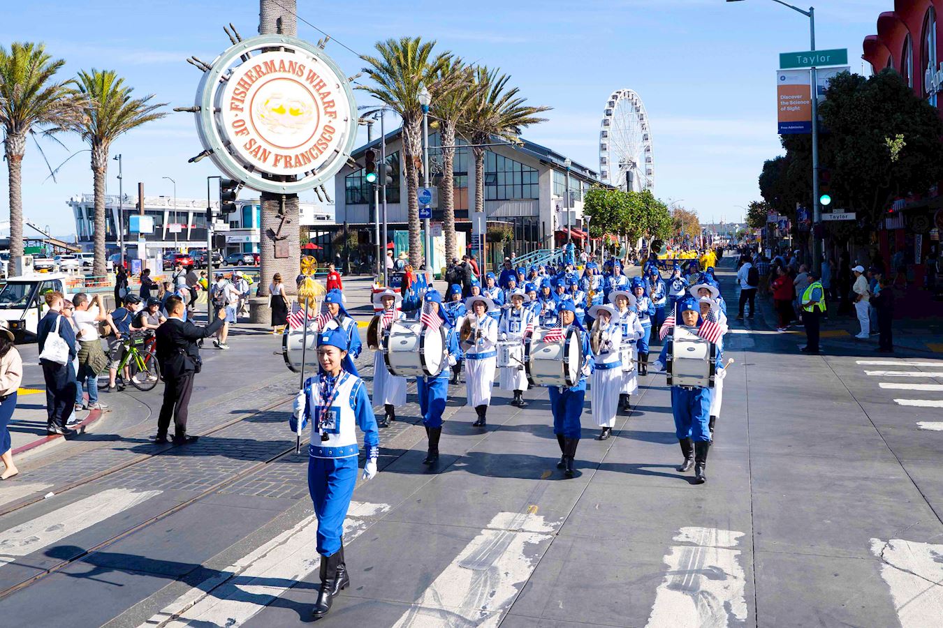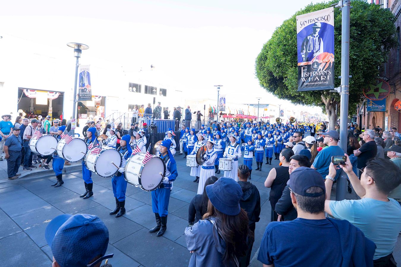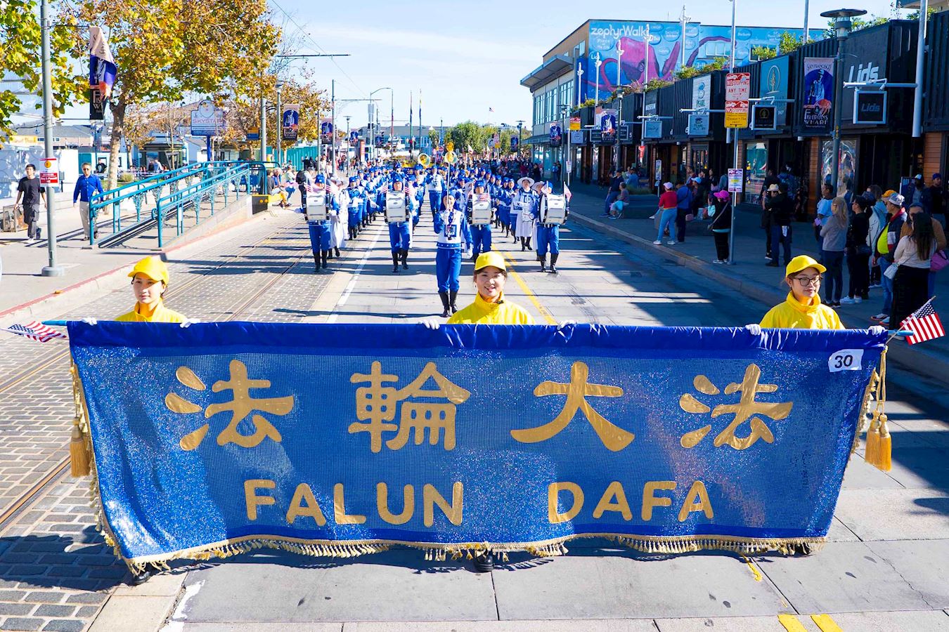 法輪功學員的隊伍由美西天國樂團和煉功隊組成。天國樂團為觀眾帶來了《法輪大法好》和《美國國歌》等樂曲,受到觀眾的歡迎。法輪功學員的功法演示讓觀眾感到放鬆,心情愉悅。