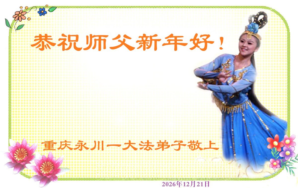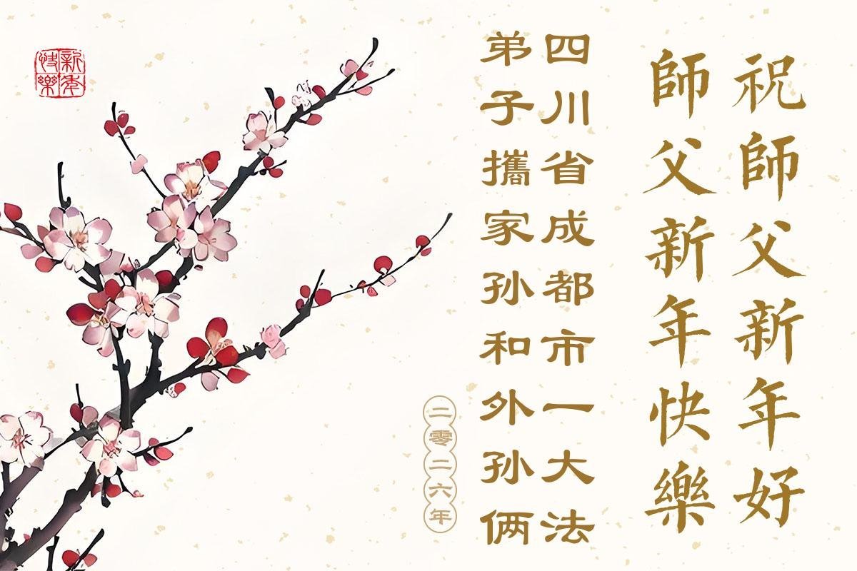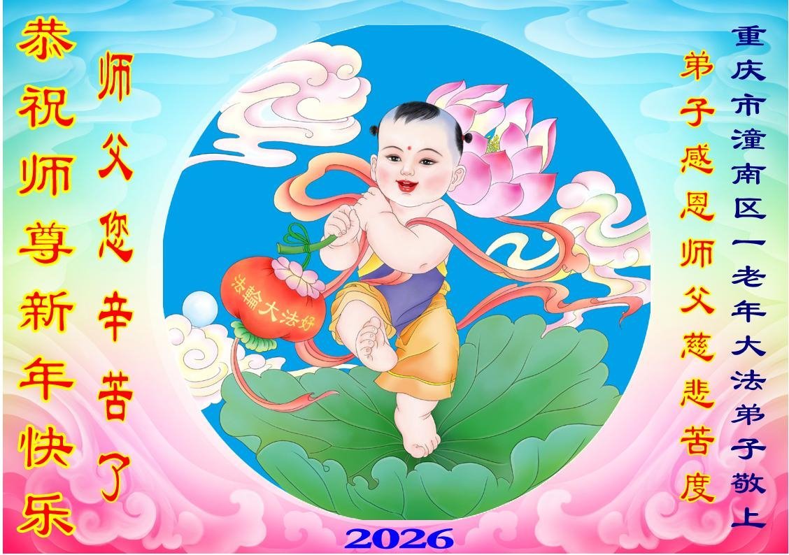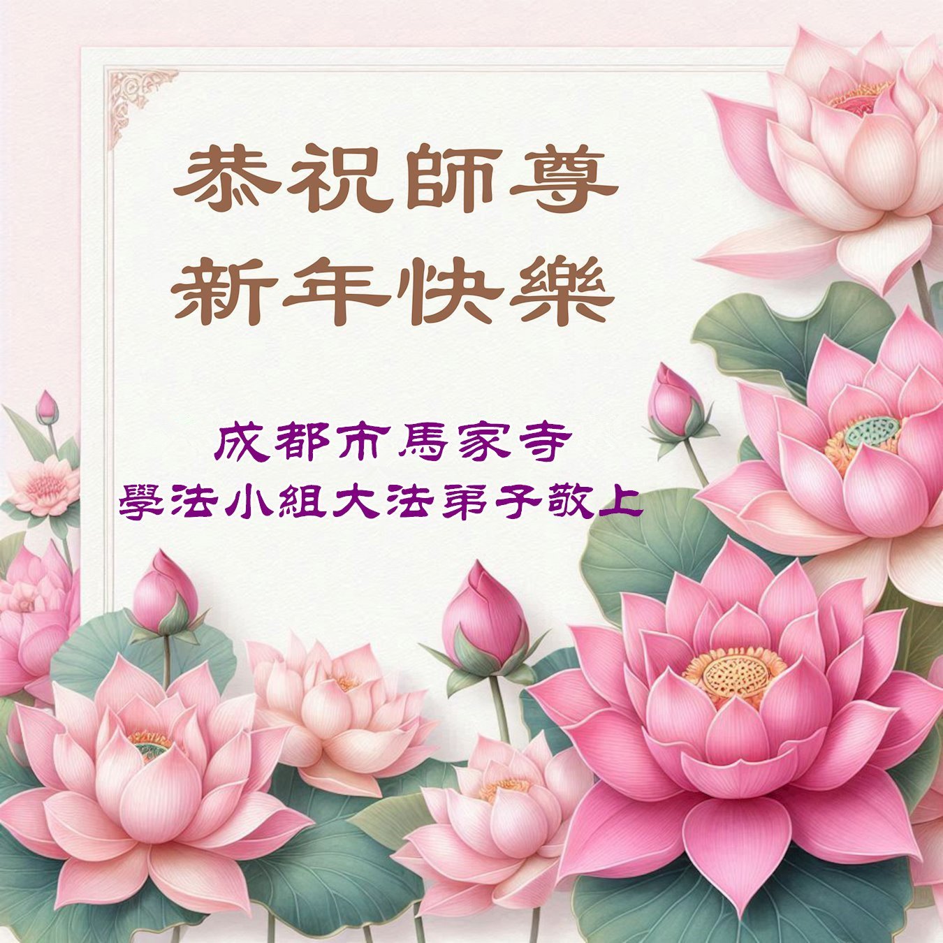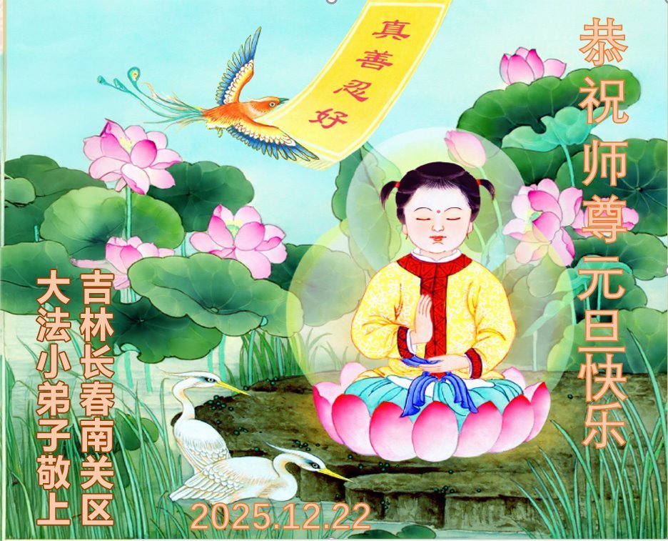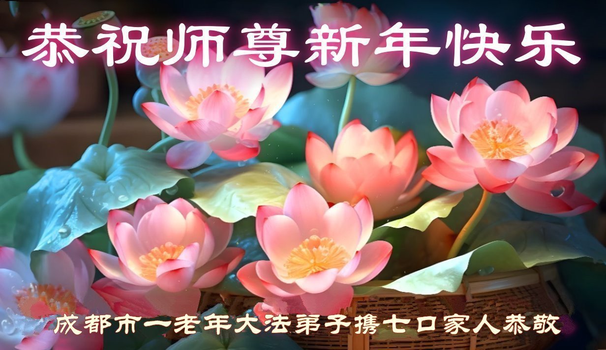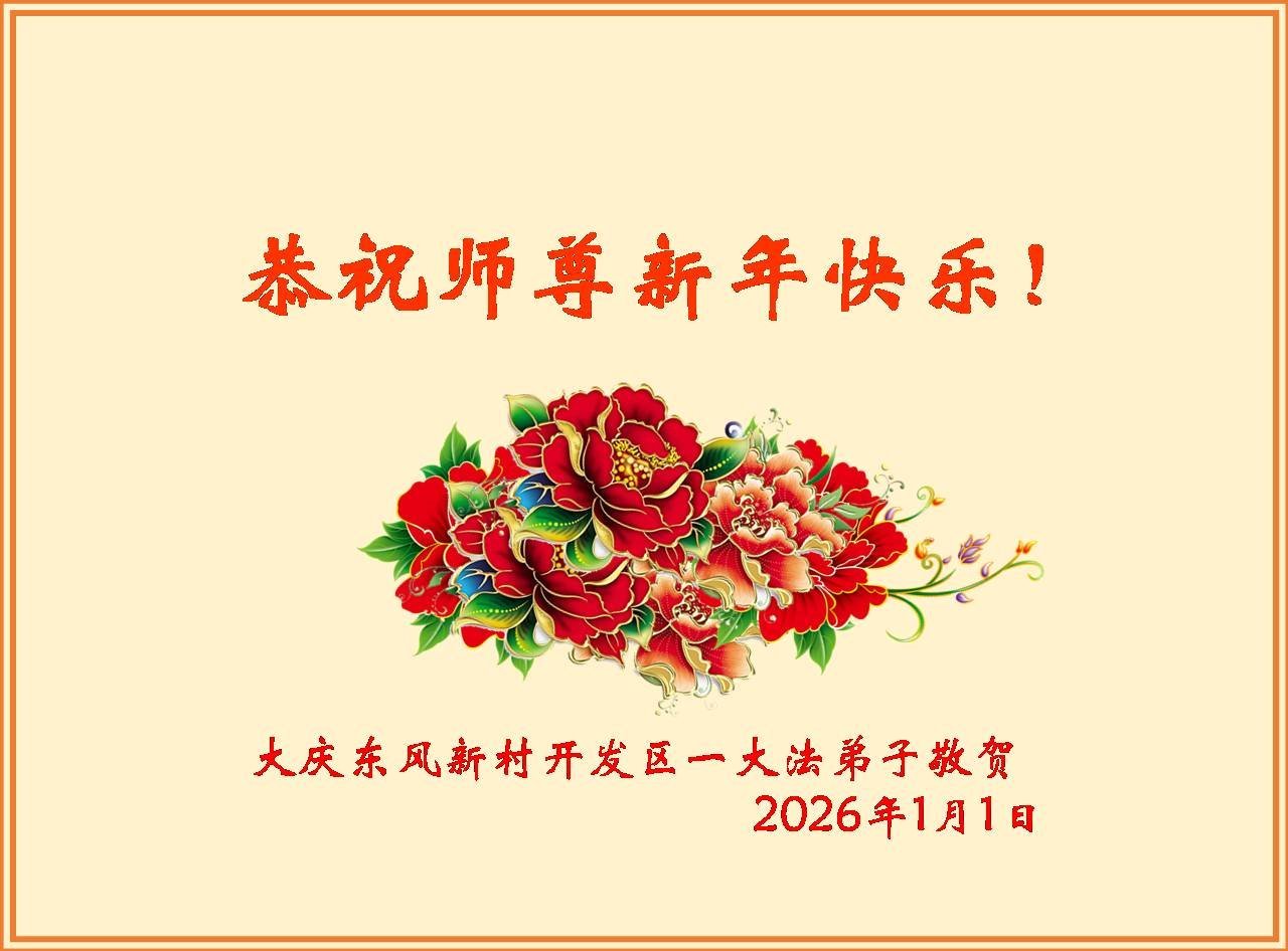 尊敬的師父好,師父您辛苦了!成都工商界大法弟子向師父問好,恭祝師父2026年元旦快樂!每學法深入一點,就更加能體會到師父為救眾生的巨大付出。世間一切皆為法而來,一切幻相皆為人心而設。願我們不為人心所動,走好最後的路,不負師父期望。弟子叩謝師父!