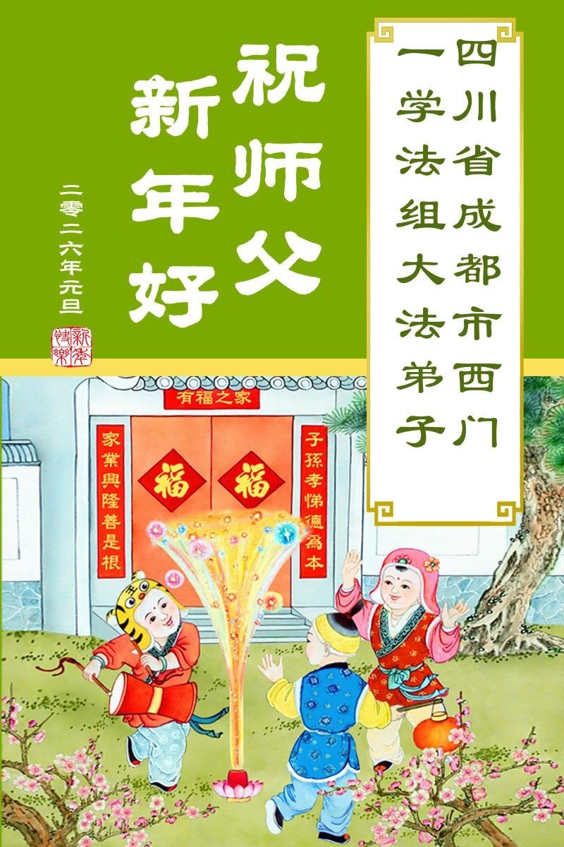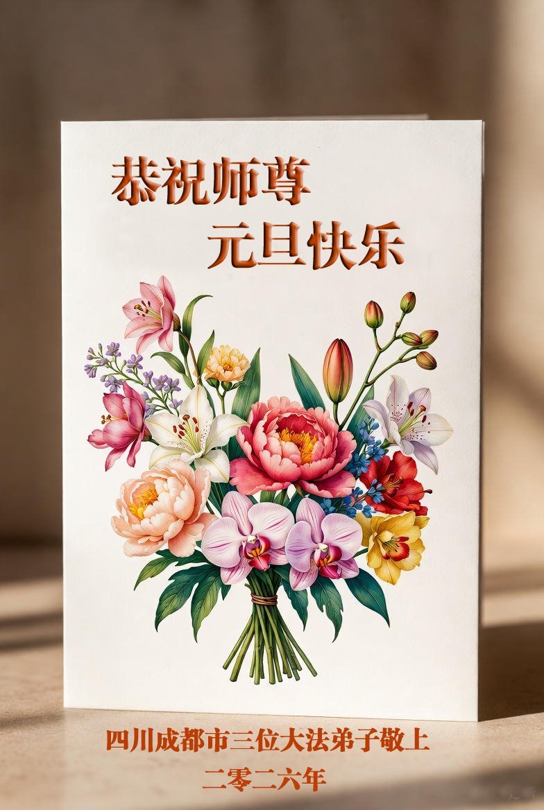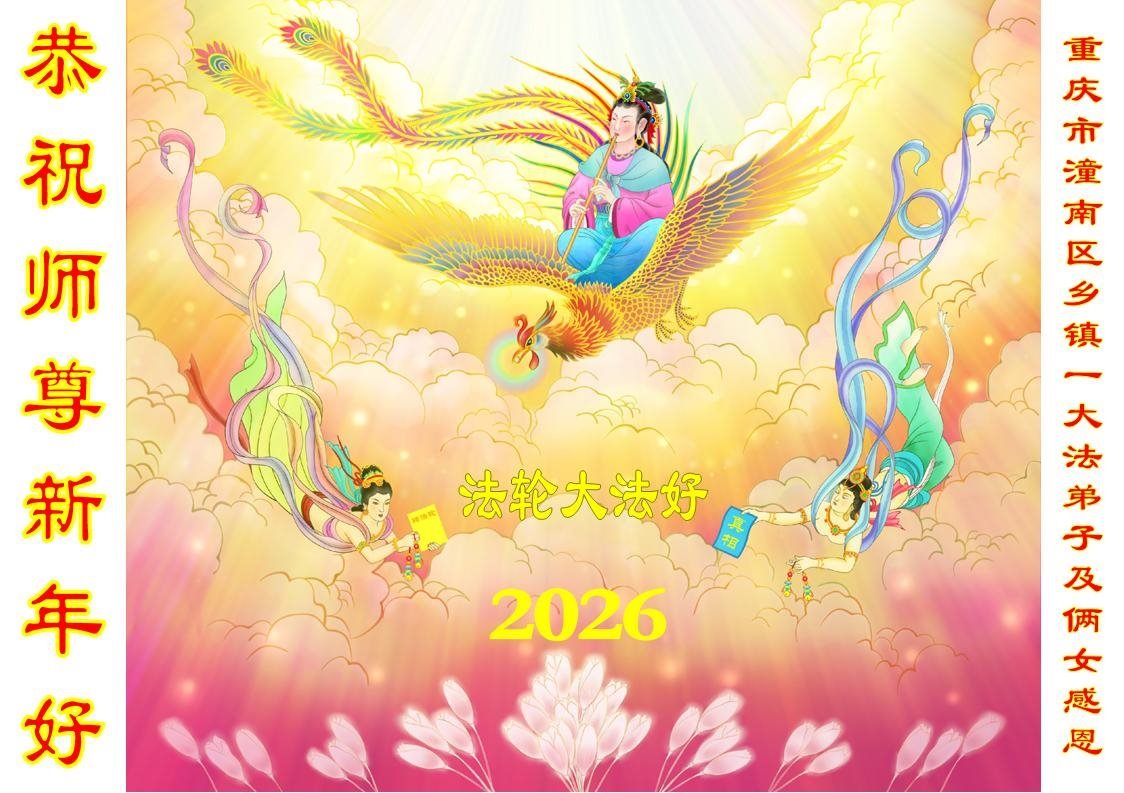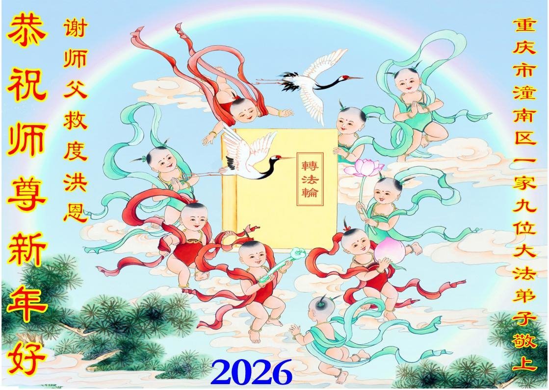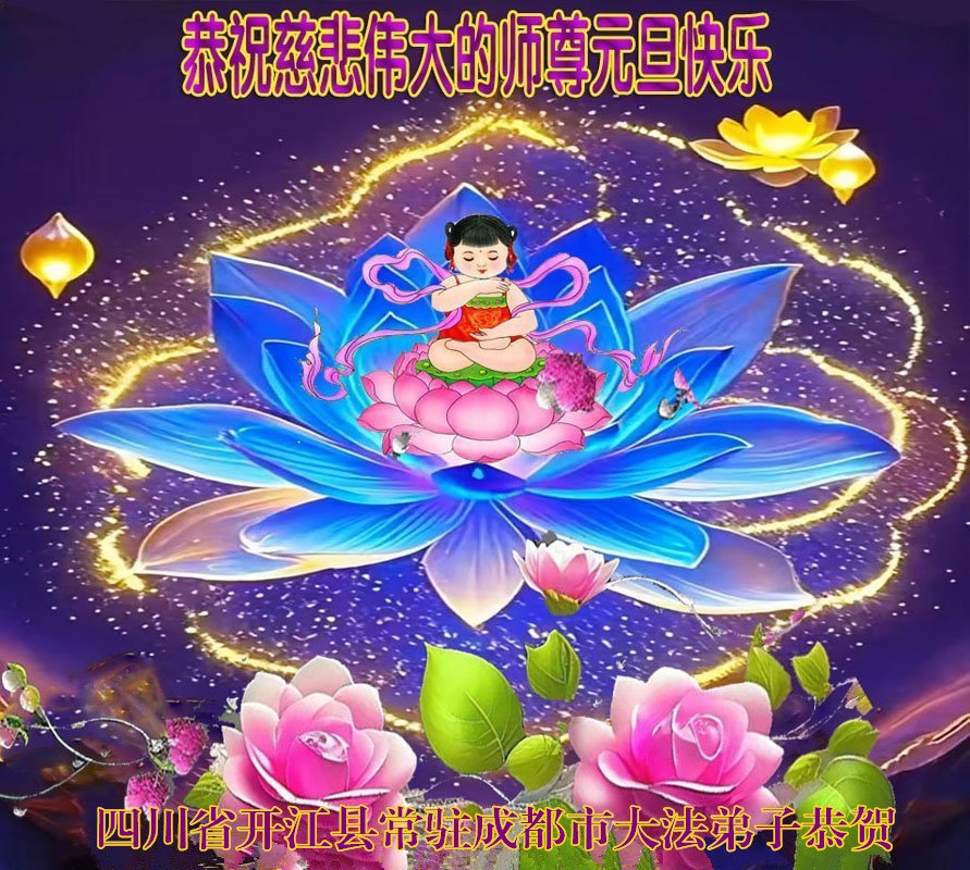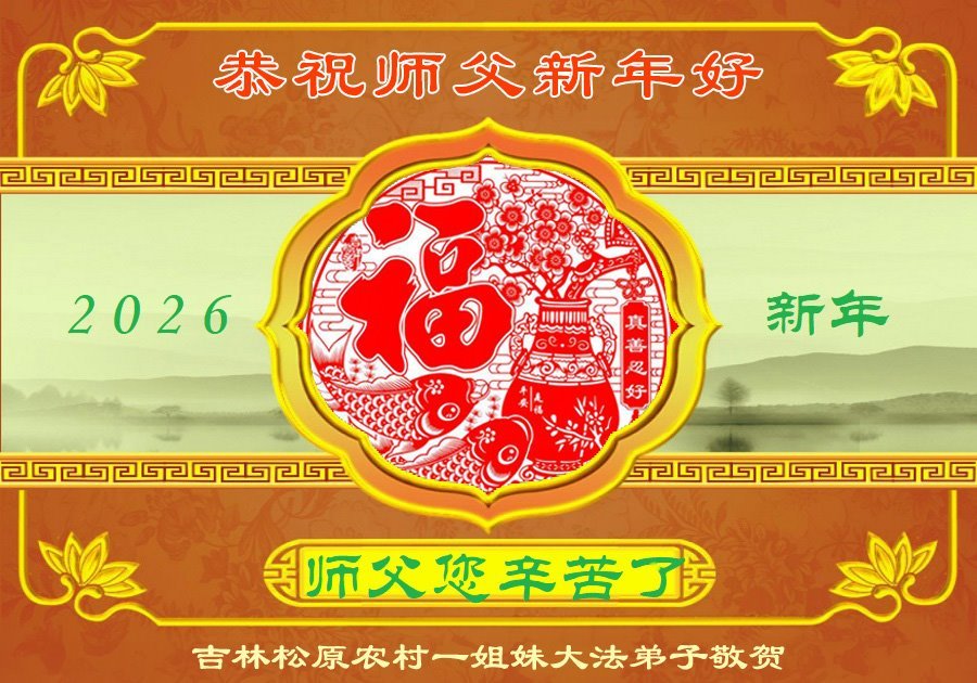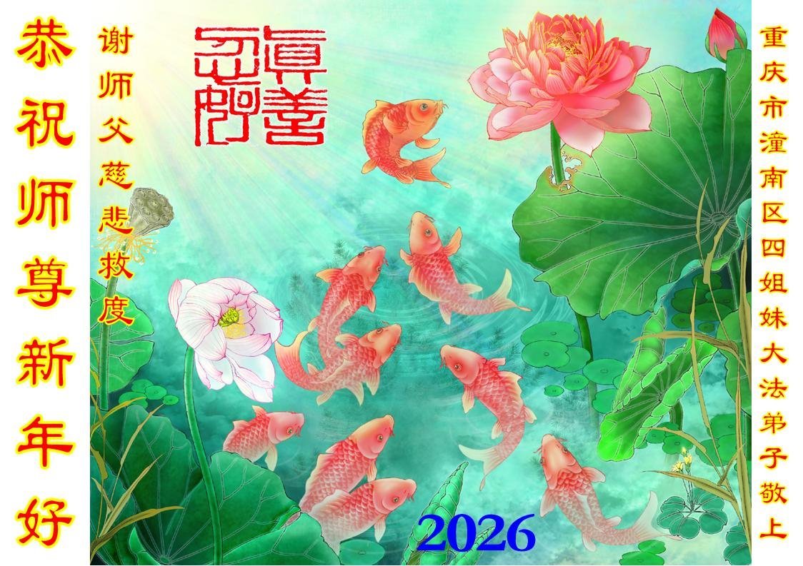 尊敬的師父好,師父您辛苦了!成都工商界大法弟子向師父問好,恭祝師父2026年元旦快樂!每學法深入一點,就更加能體會到師父為救眾生的巨大付出。世間一切皆為法而來,一切幻相皆為人心而設。願我們不為人心所動,走好最後的路,不負師父期望。弟子叩謝師父!
