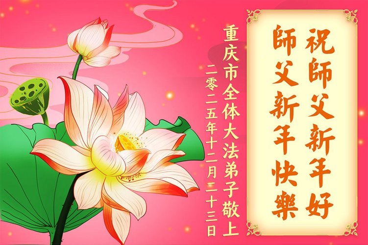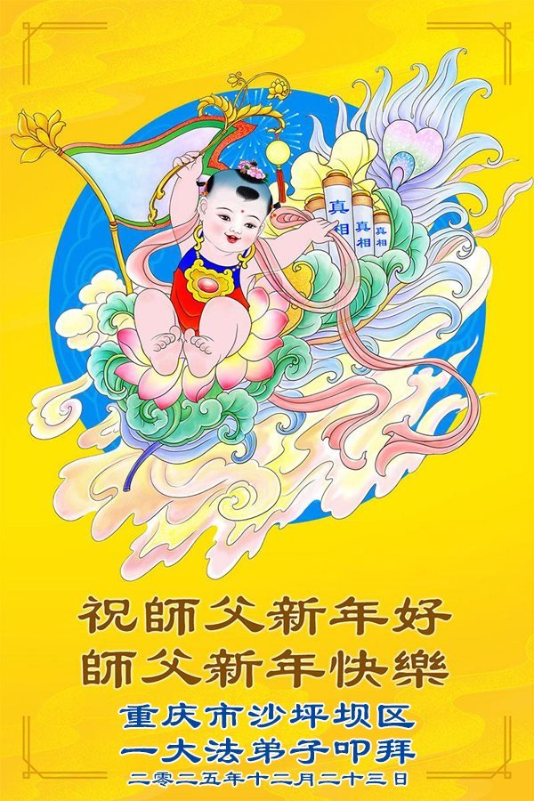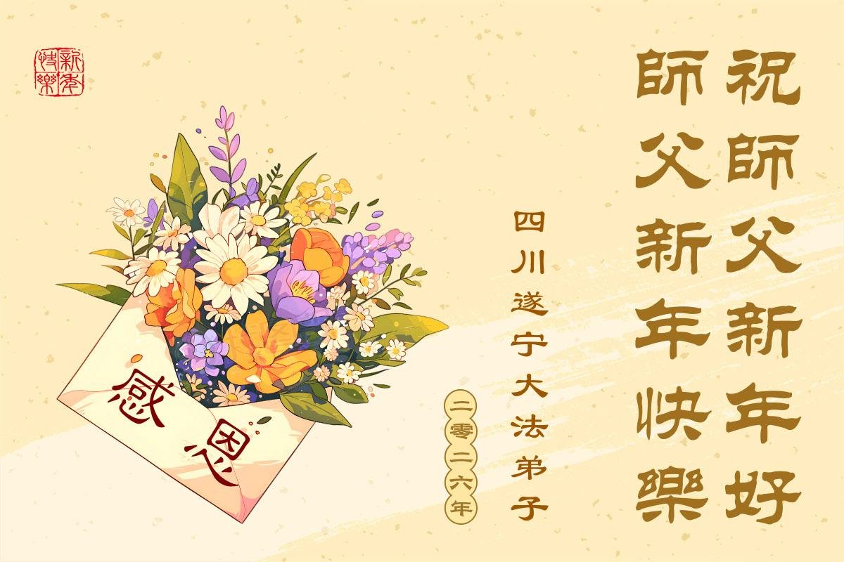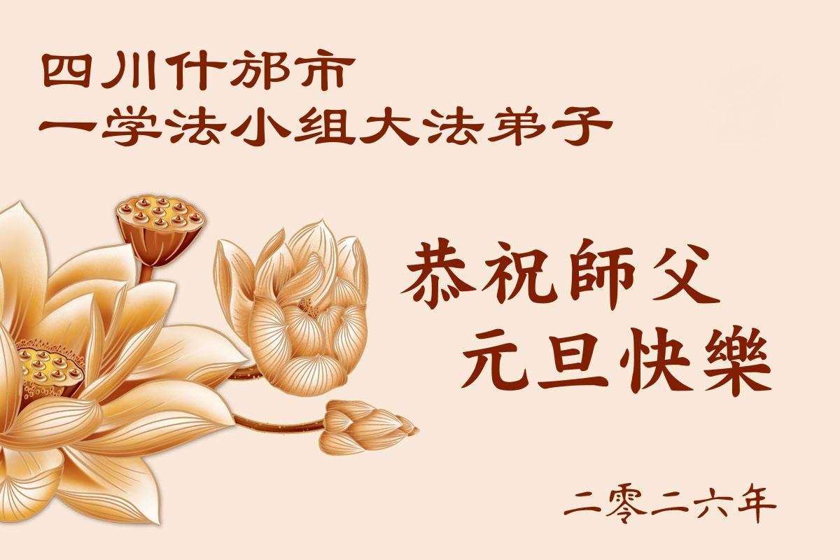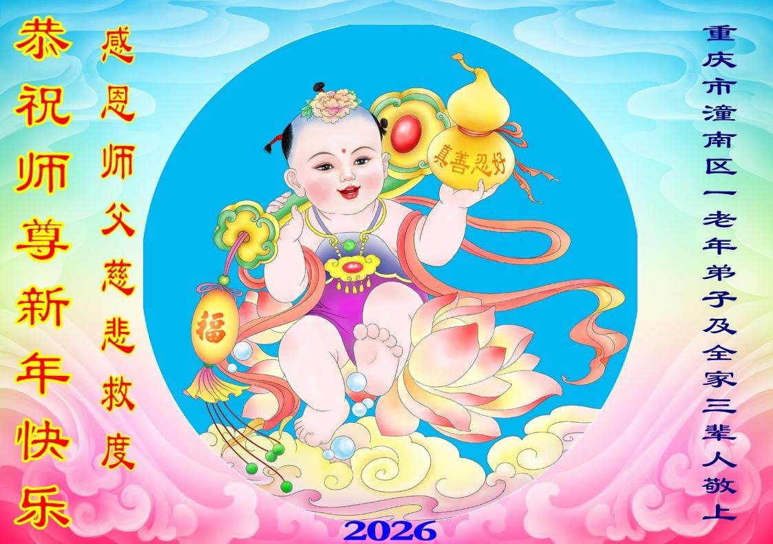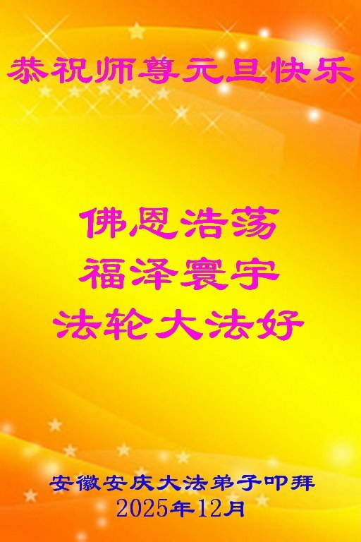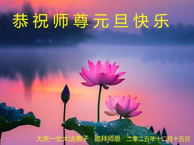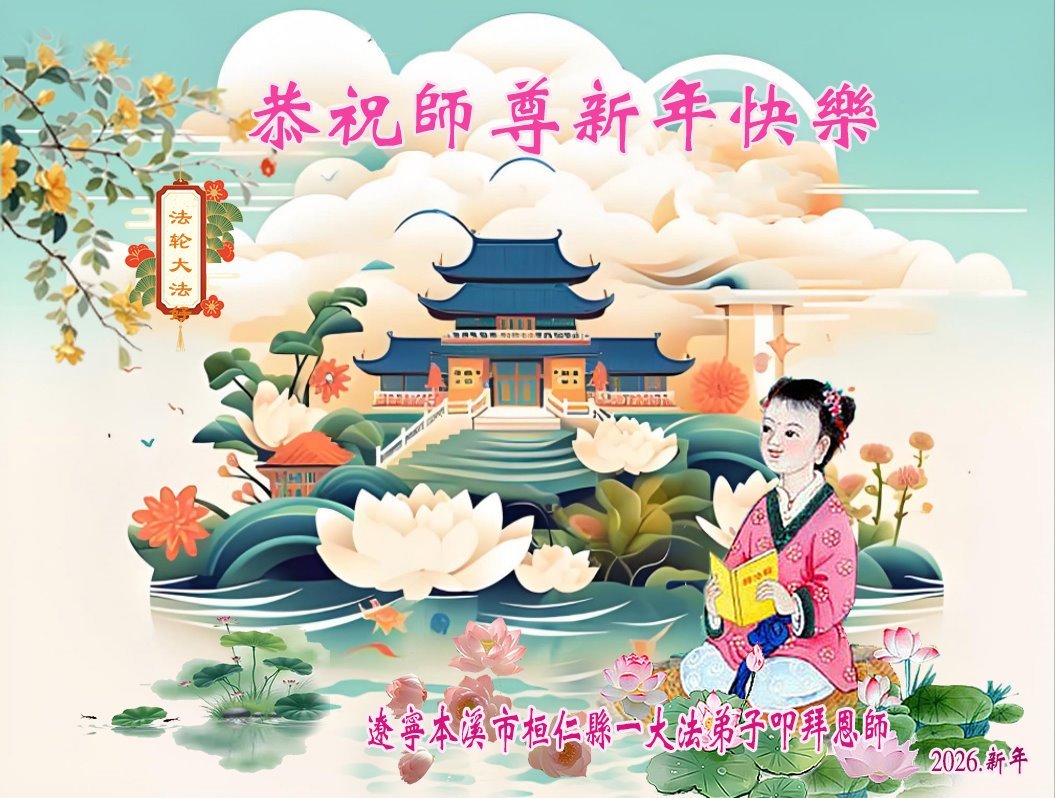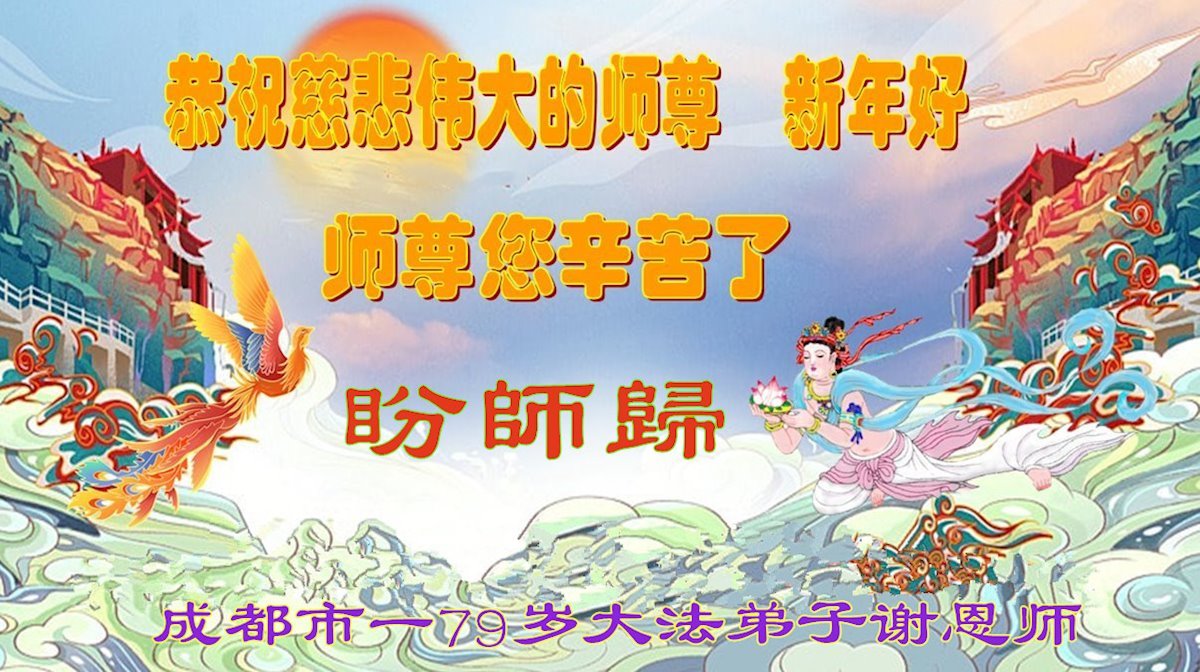 尊敬的師父好,師父您辛苦了!成都工商界大法弟子向師父問好,恭祝師父2026年元旦快樂!每學法深入一點,就更加能體會到師父為救眾生的巨大付出。世間一切皆為法而來,一切幻相皆為人心而設。願我們不為人心所動,走好最後的路,不負師父期望。弟子叩謝師父!
