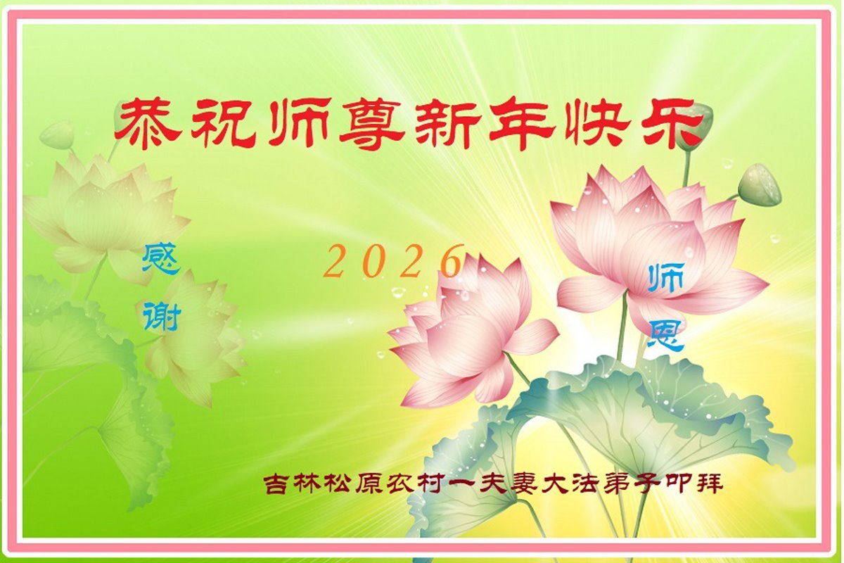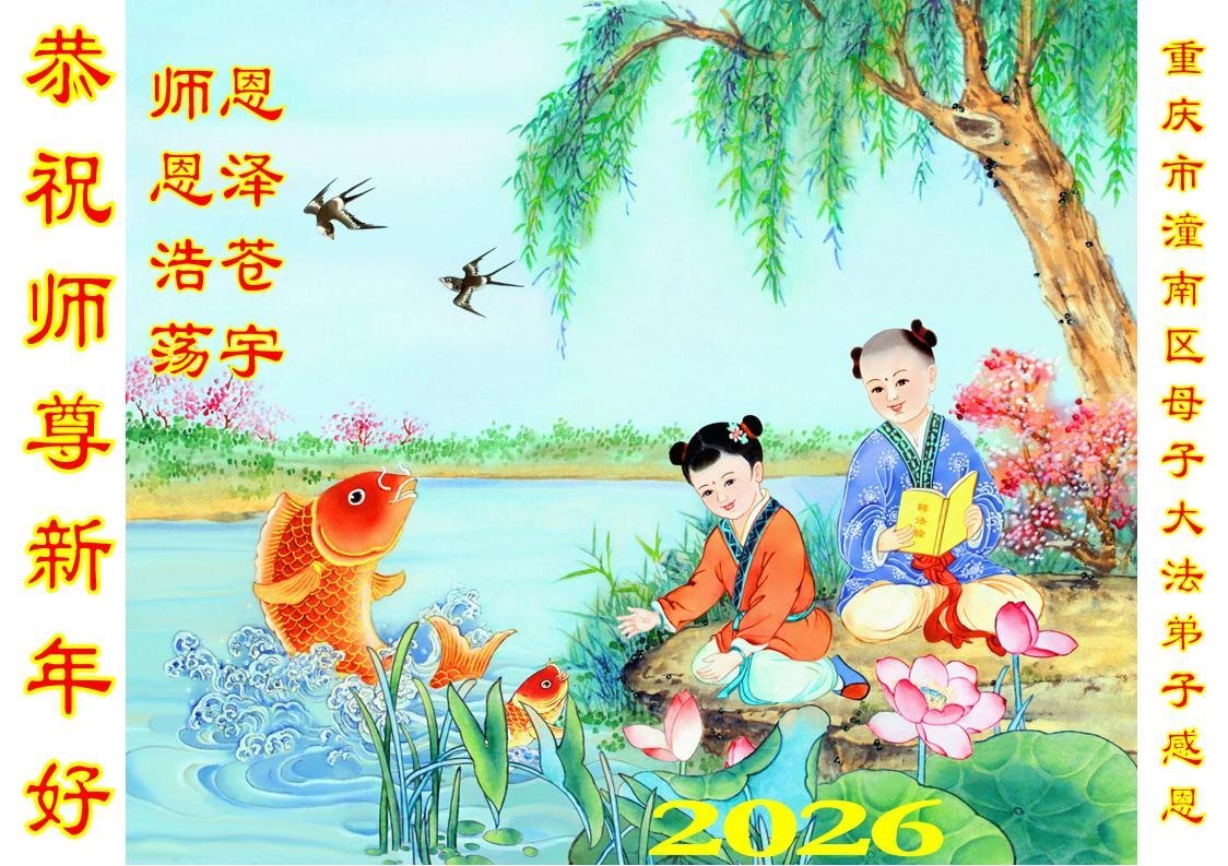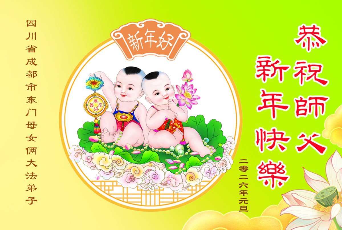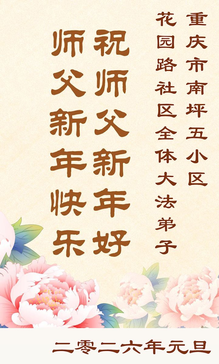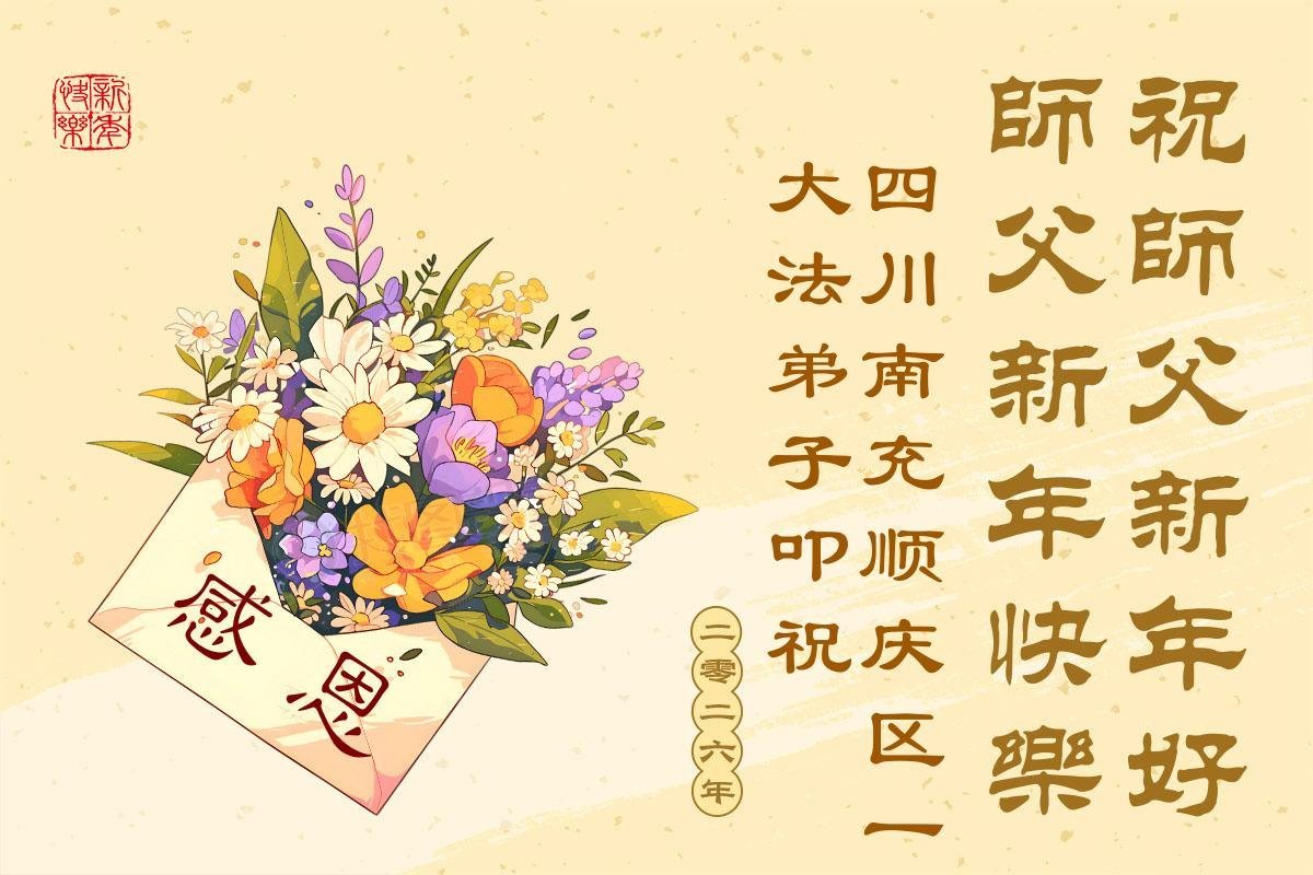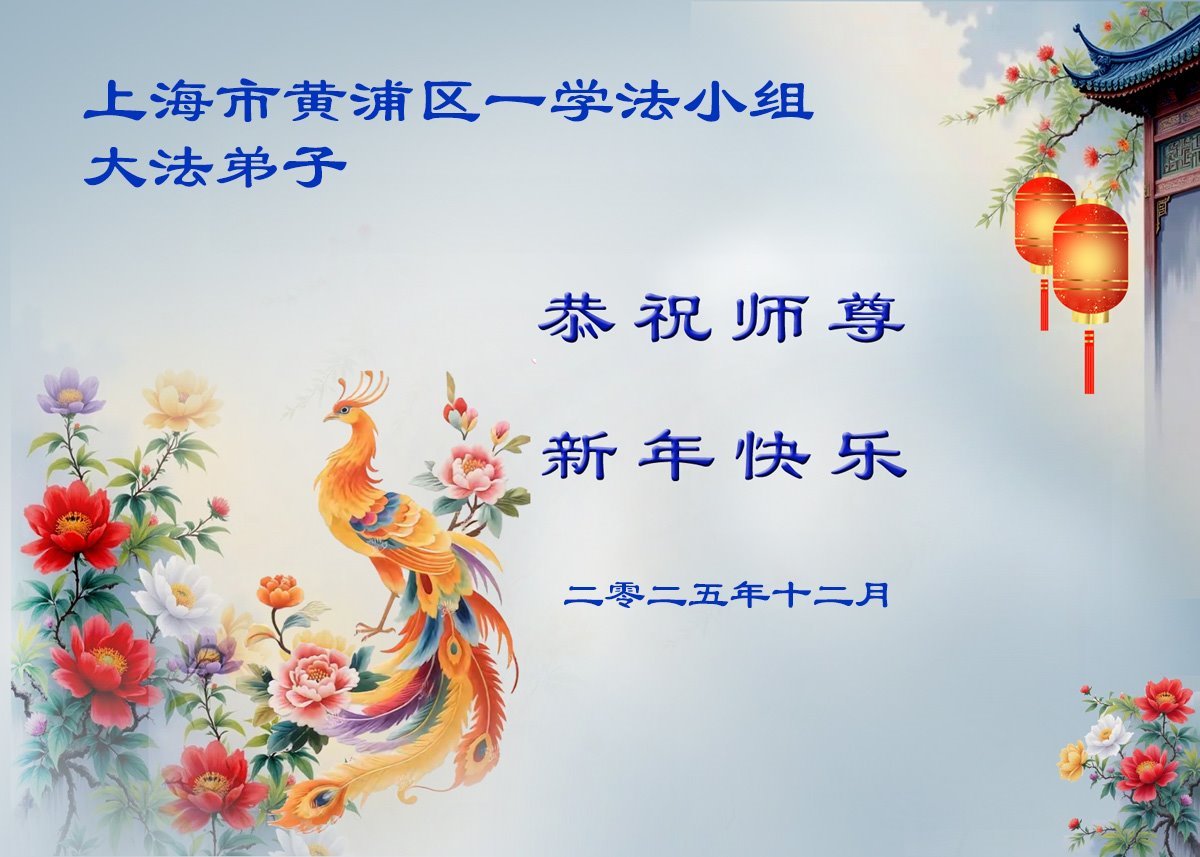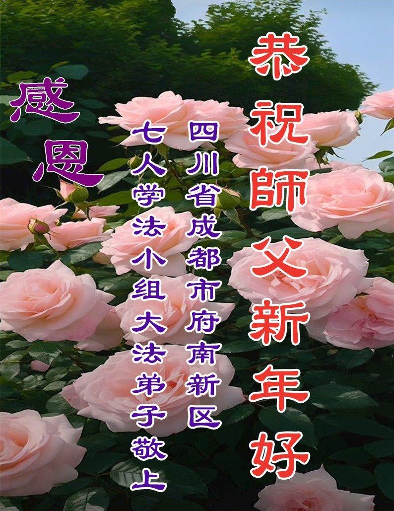 尊敬的師父好,師父您辛苦了!成都工商界大法弟子向師父問好,恭祝師父2026年元旦快樂!每學法深入一點,就更加能體會到師父為救眾生的巨大付出。世間一切皆為法而來,一切幻相皆為人心而設。願我們不為人心所動,走好最後的路,不負師父期望。弟子叩謝師父!