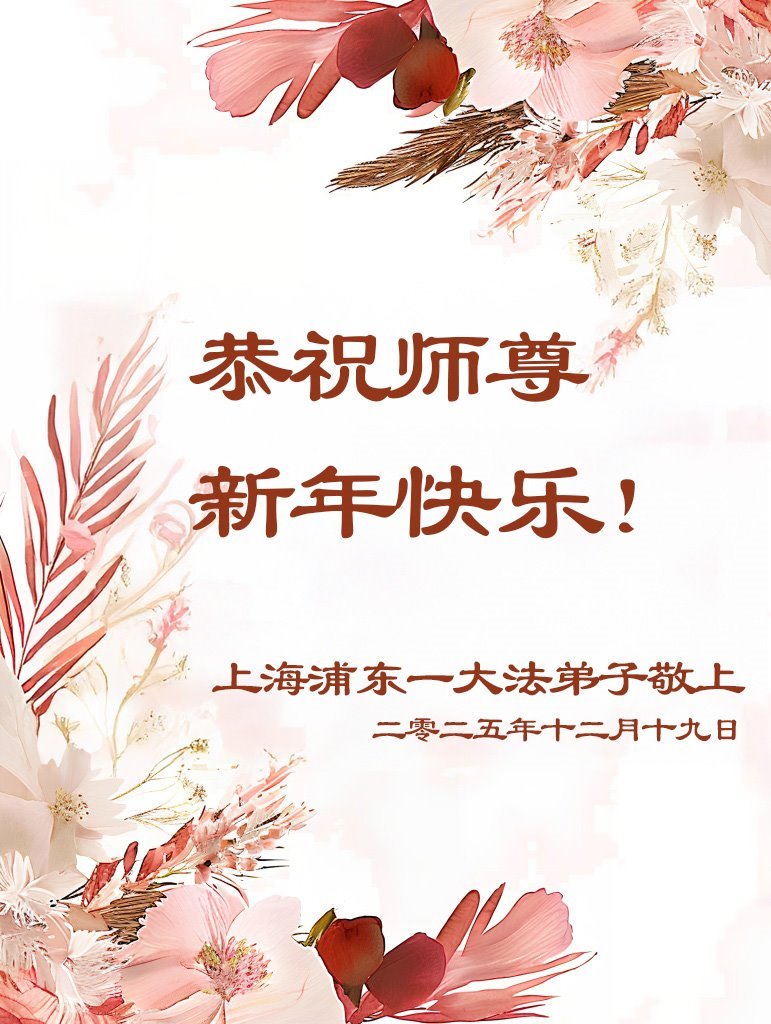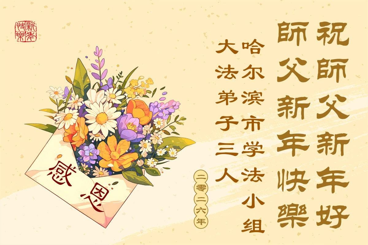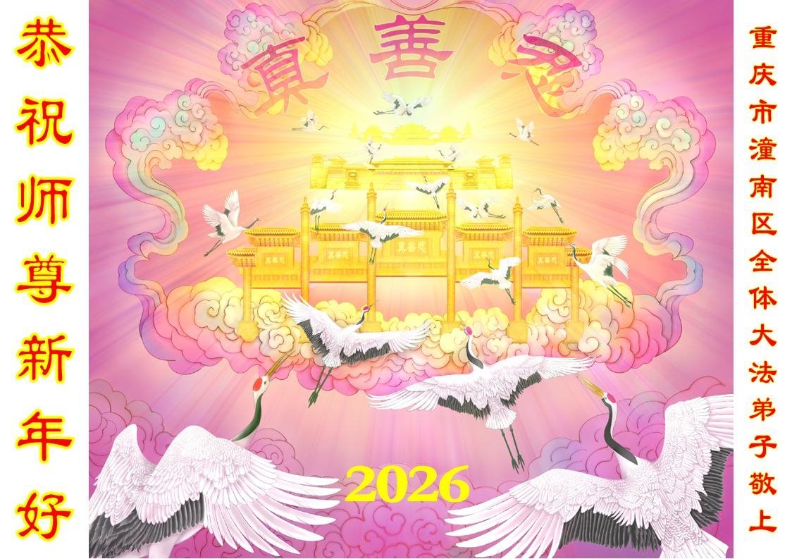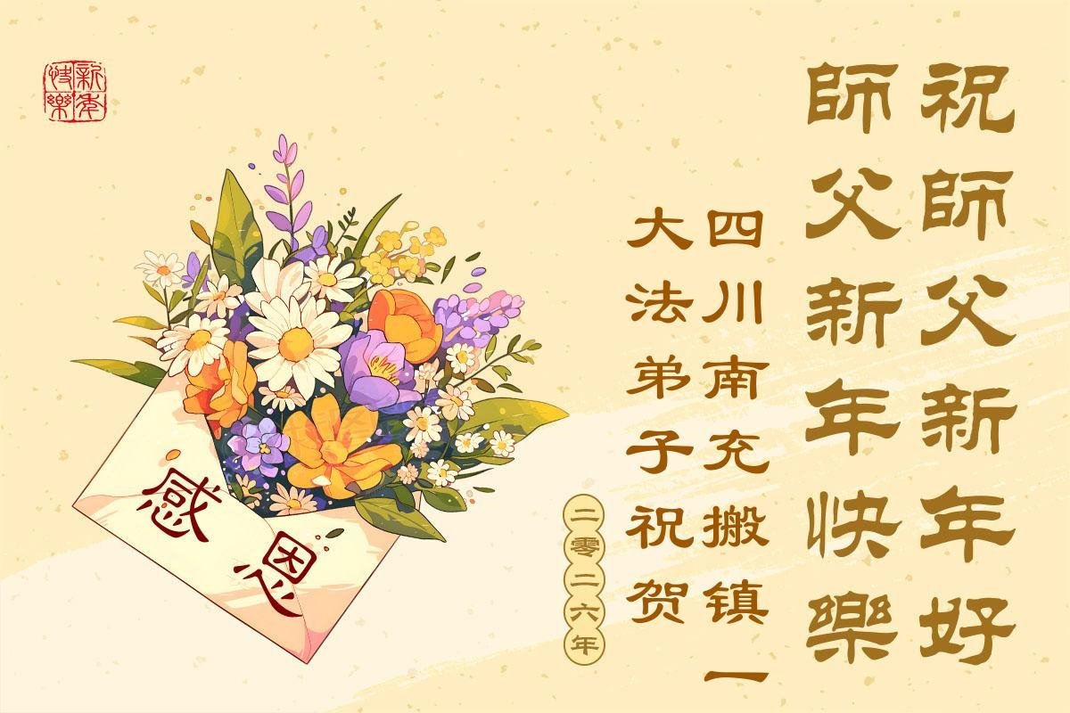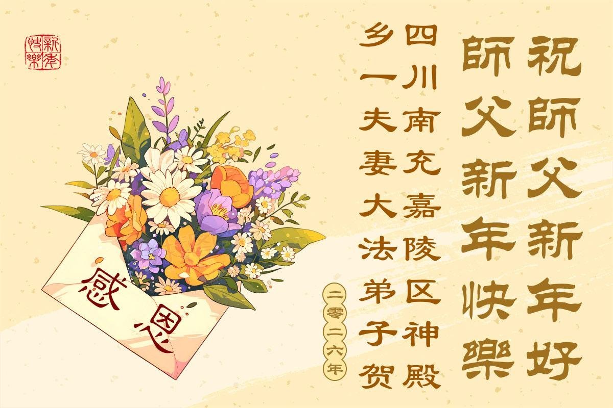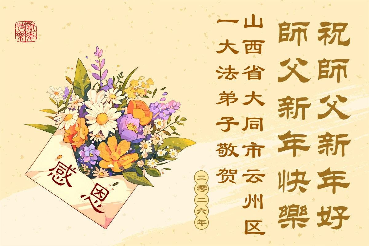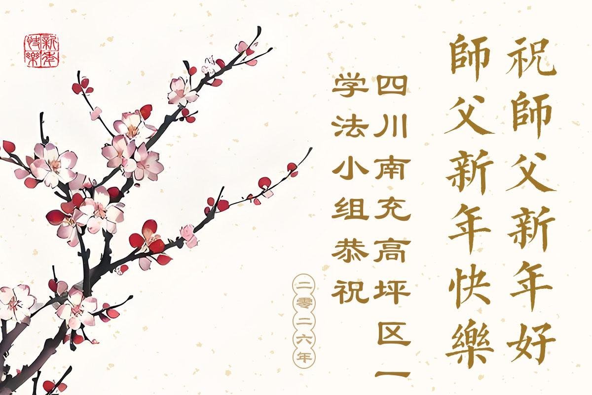 尊敬的師父好,師父您辛苦了!成都工商界大法弟子向師父問好,恭祝師父2026年元旦快樂!每學法深入一點,就更加能體會到師父為救眾生的巨大付出。世間一切皆為法而來,一切幻相皆為人心而設。願我們不為人心所動,走好最後的路,不負師父期望。弟子叩謝師父!