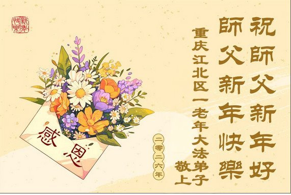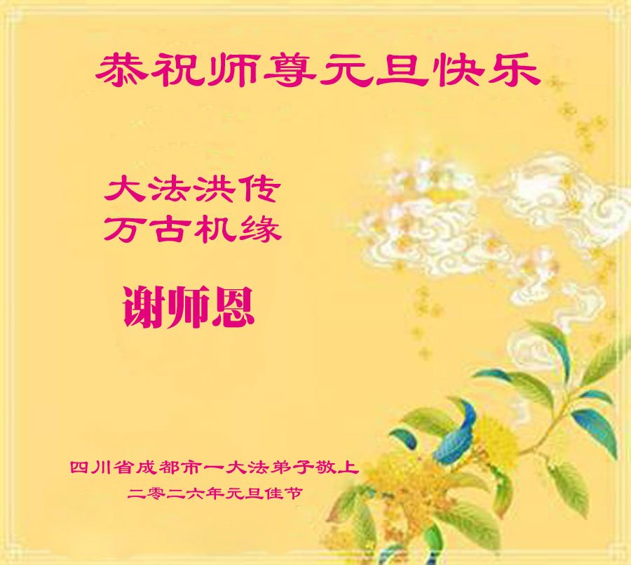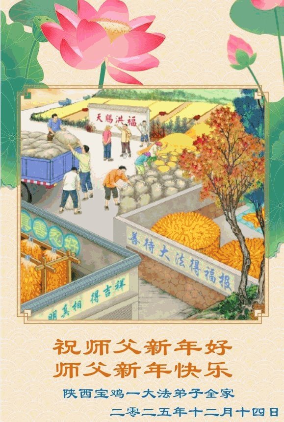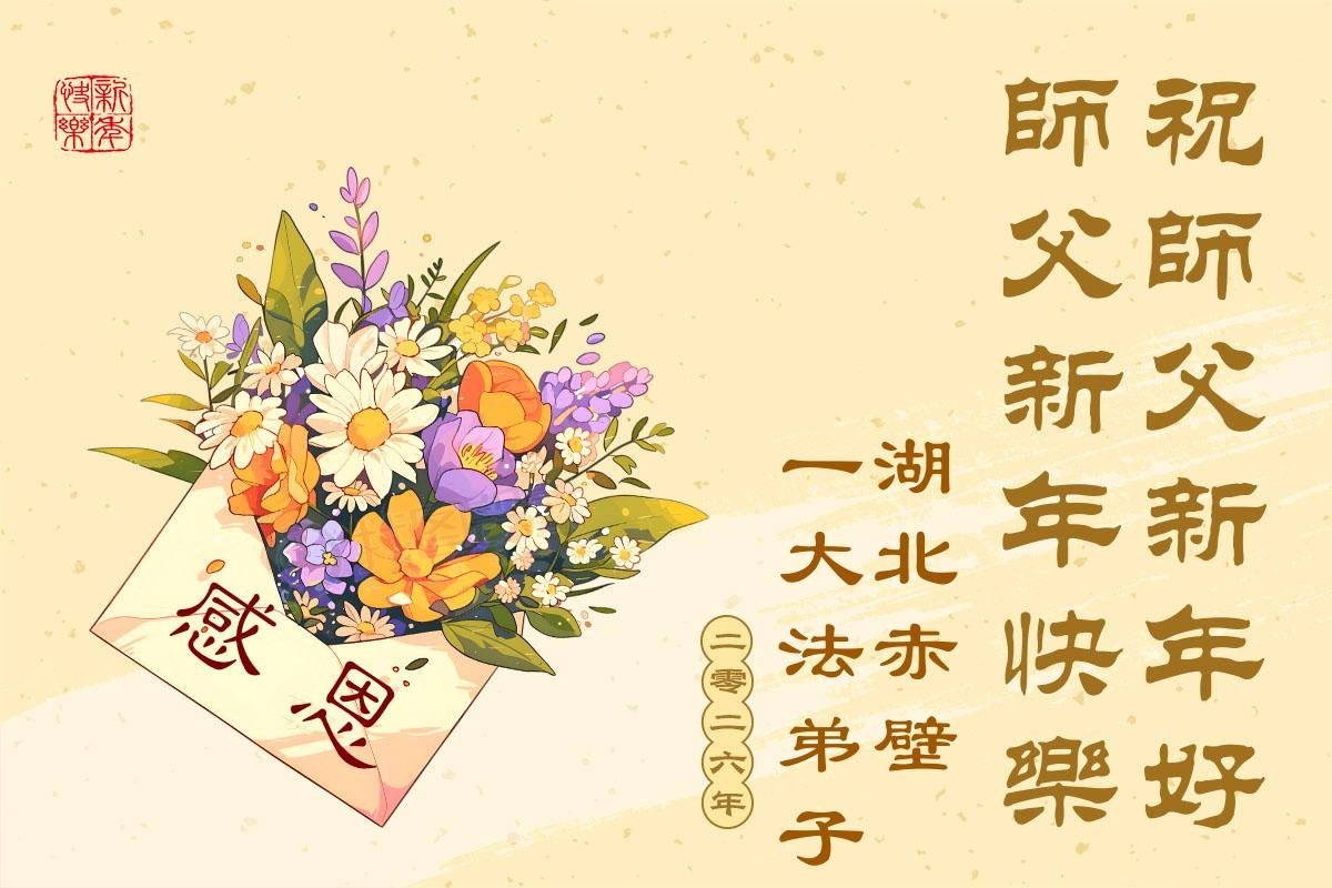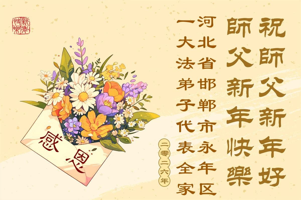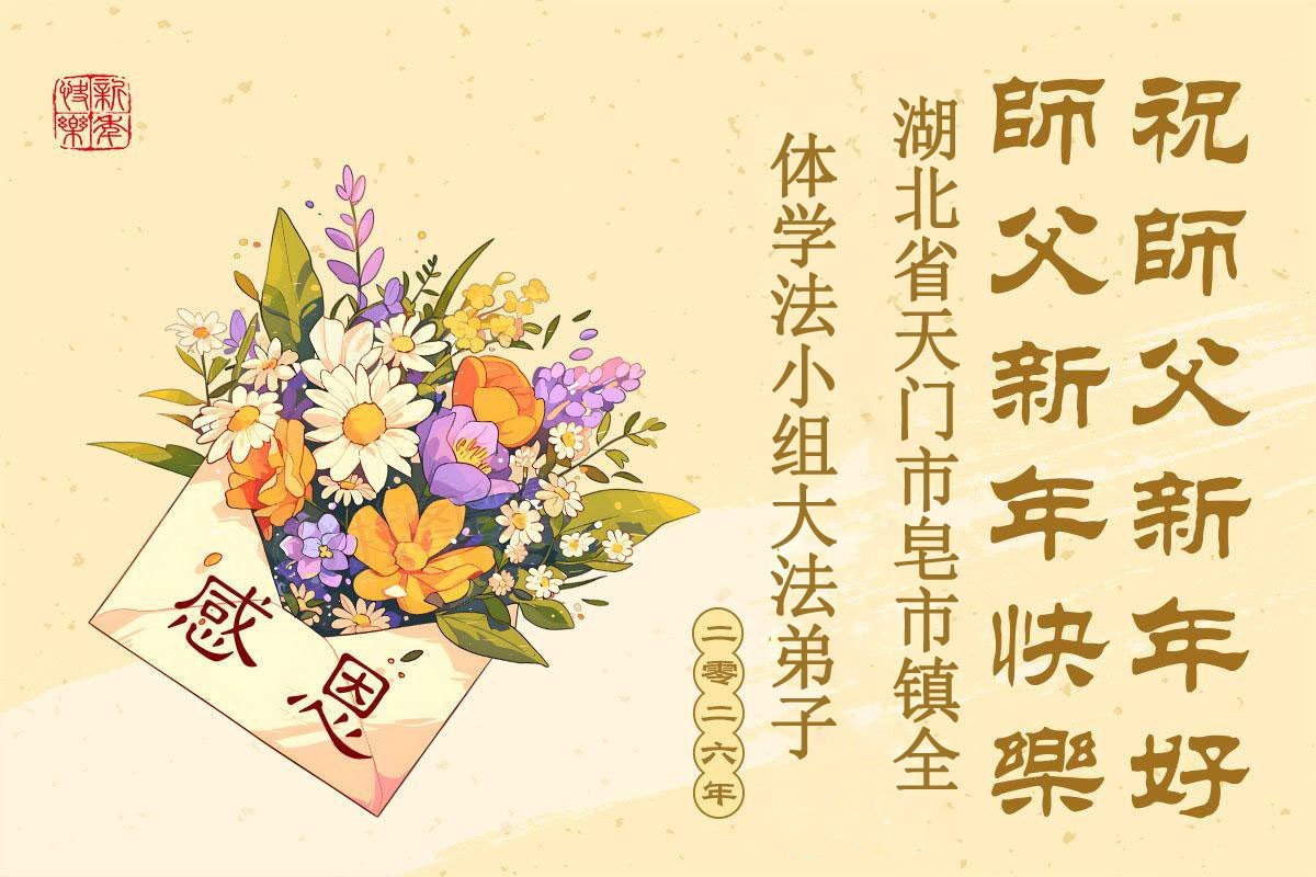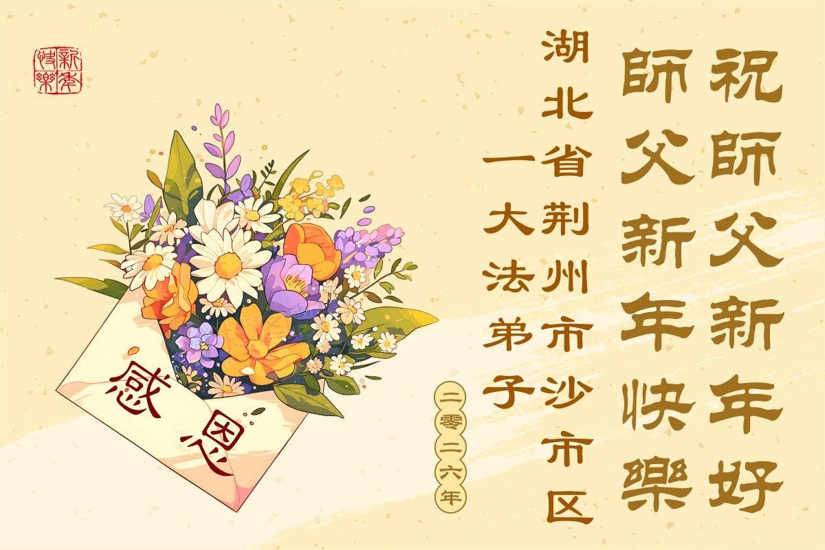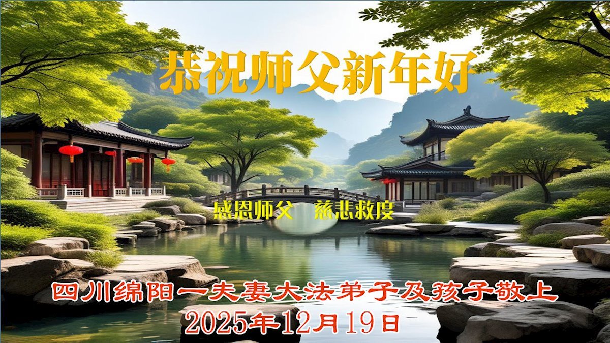 尊敬的師父好,師父您辛苦了!成都工商界大法弟子向師父問好,恭祝師父2026年元旦快樂!每學法深入一點,就更加能體會到師父為救眾生的巨大付出。世間一切皆為法而來,一切幻相皆為人心而設。願我們不為人心所動,走好最後的路,不負師父期望。弟子叩謝師父!