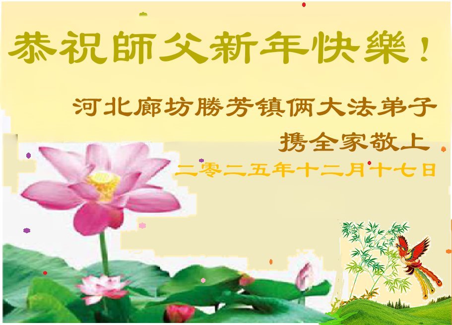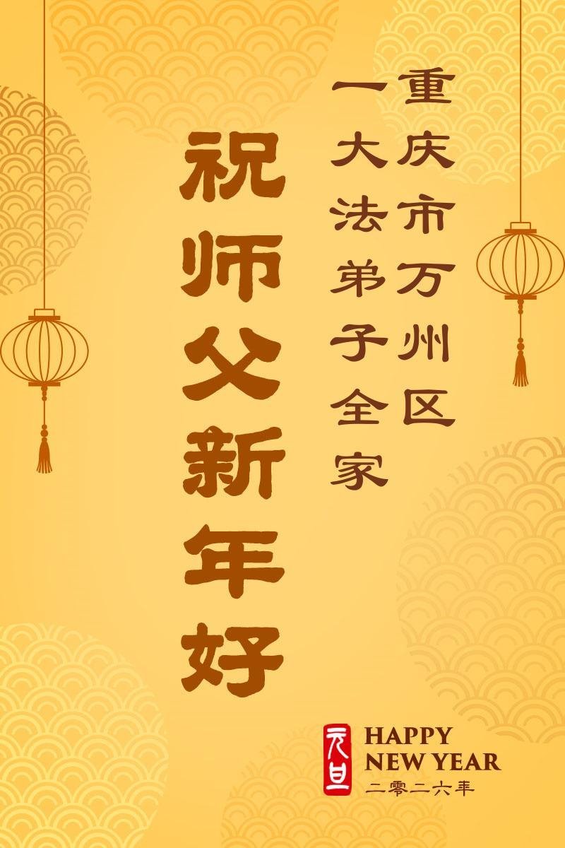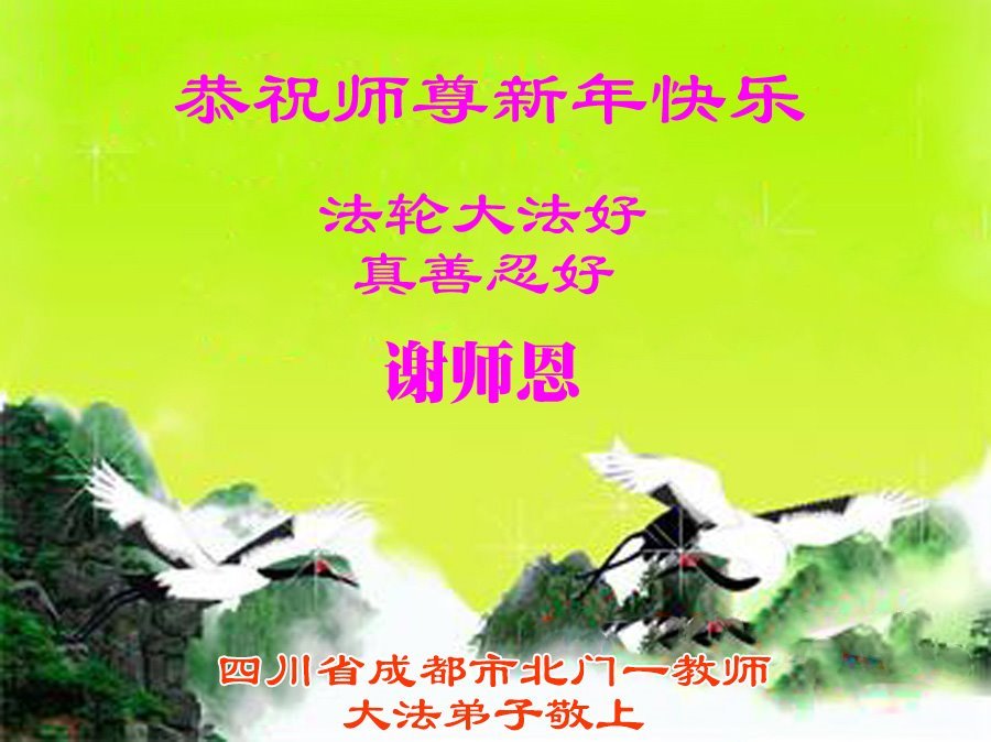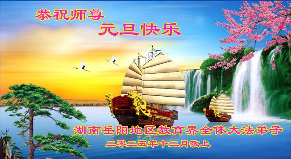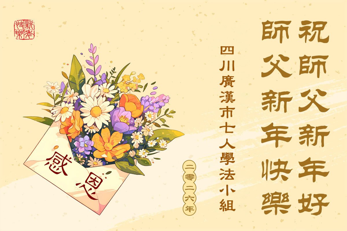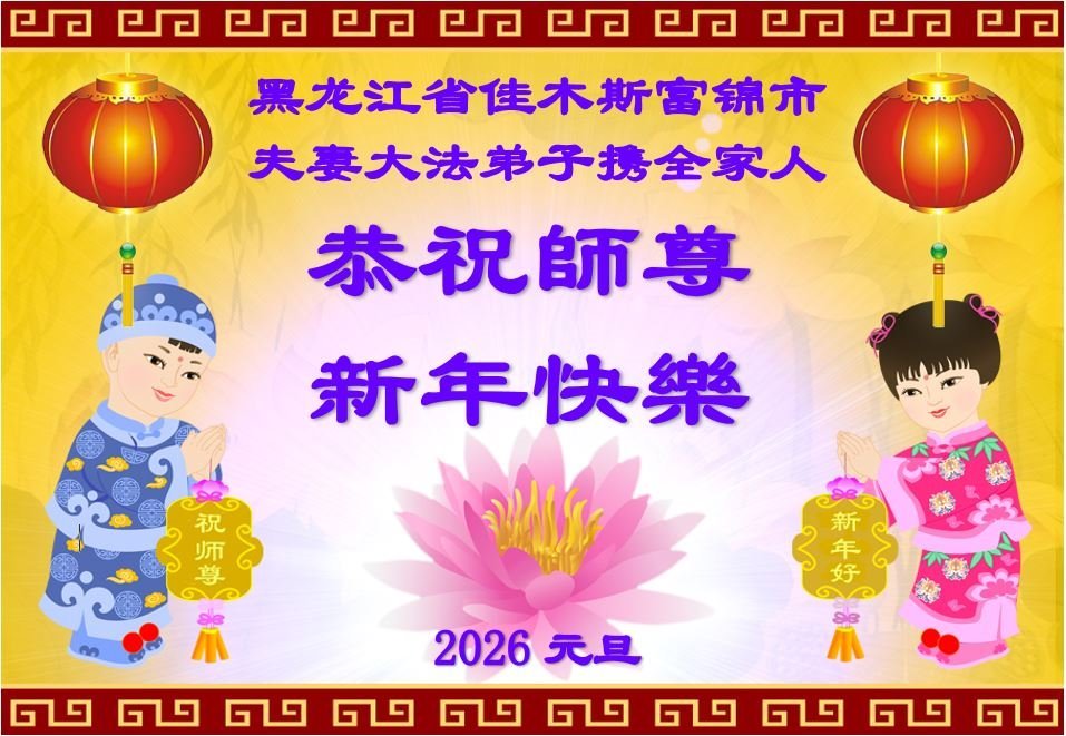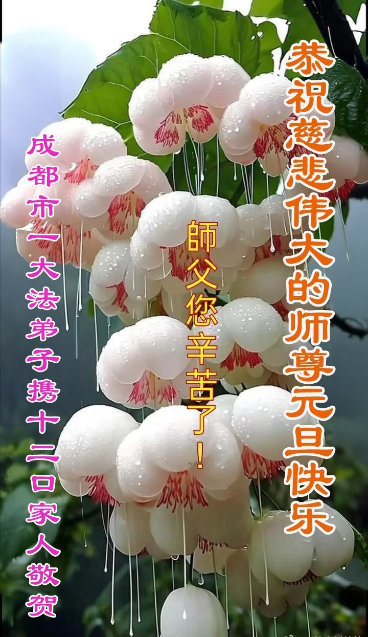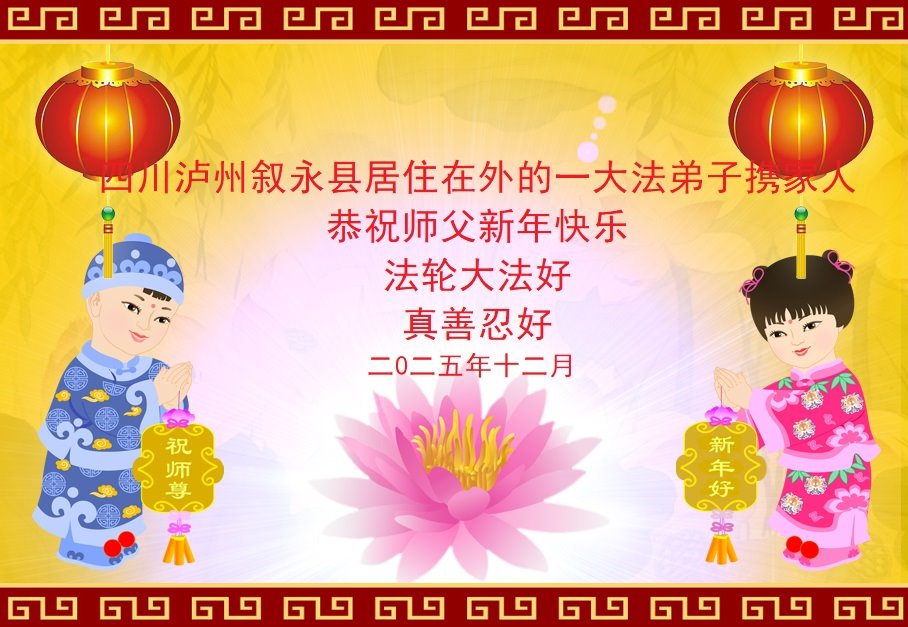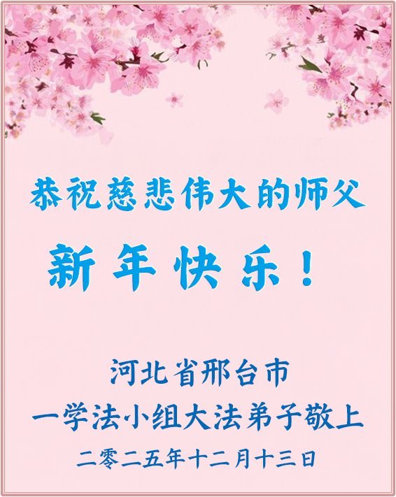 尊敬的師父好,師父您辛苦了!成都工商界大法弟子向師父問好,恭祝師父2026年元旦快樂!每學法深入一點,就更加能體會到師父為救眾生的巨大付出。世間一切皆為法而來,一切幻相皆為人心而設。願我們不為人心所動,走好最後的路,不負師父期望。弟子叩謝師父!