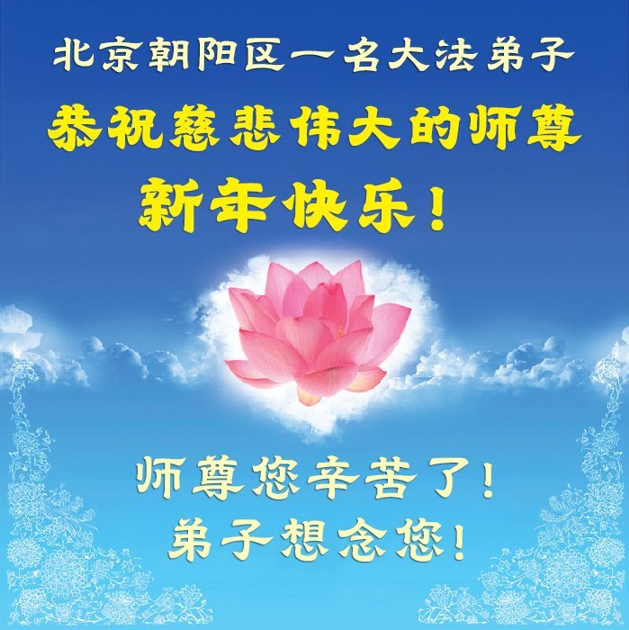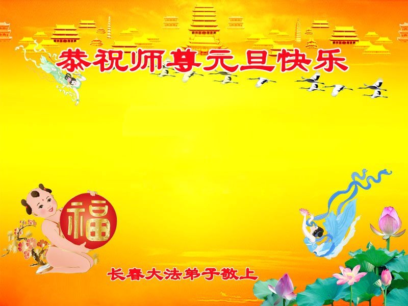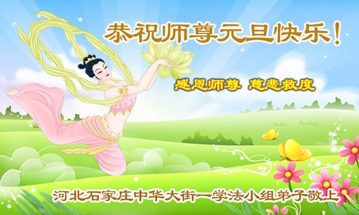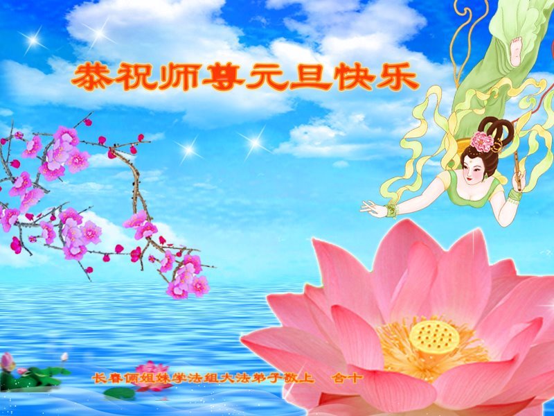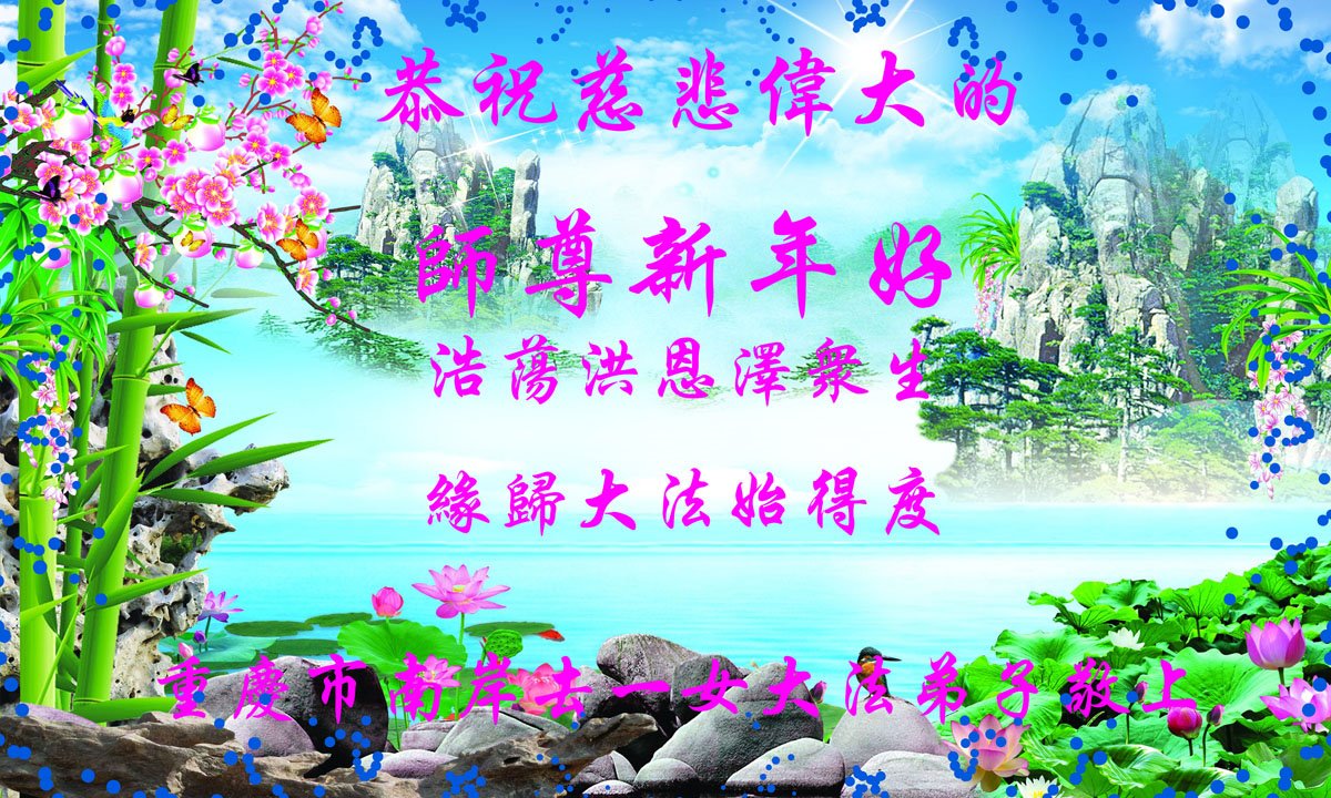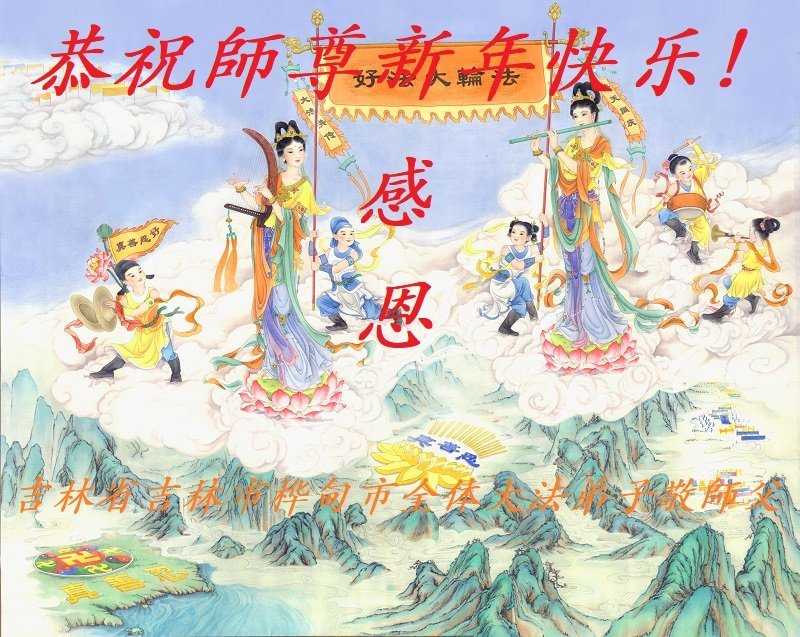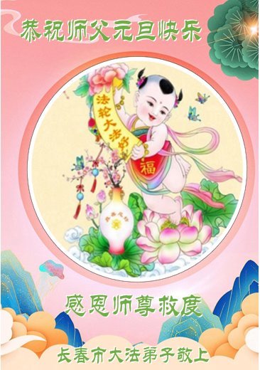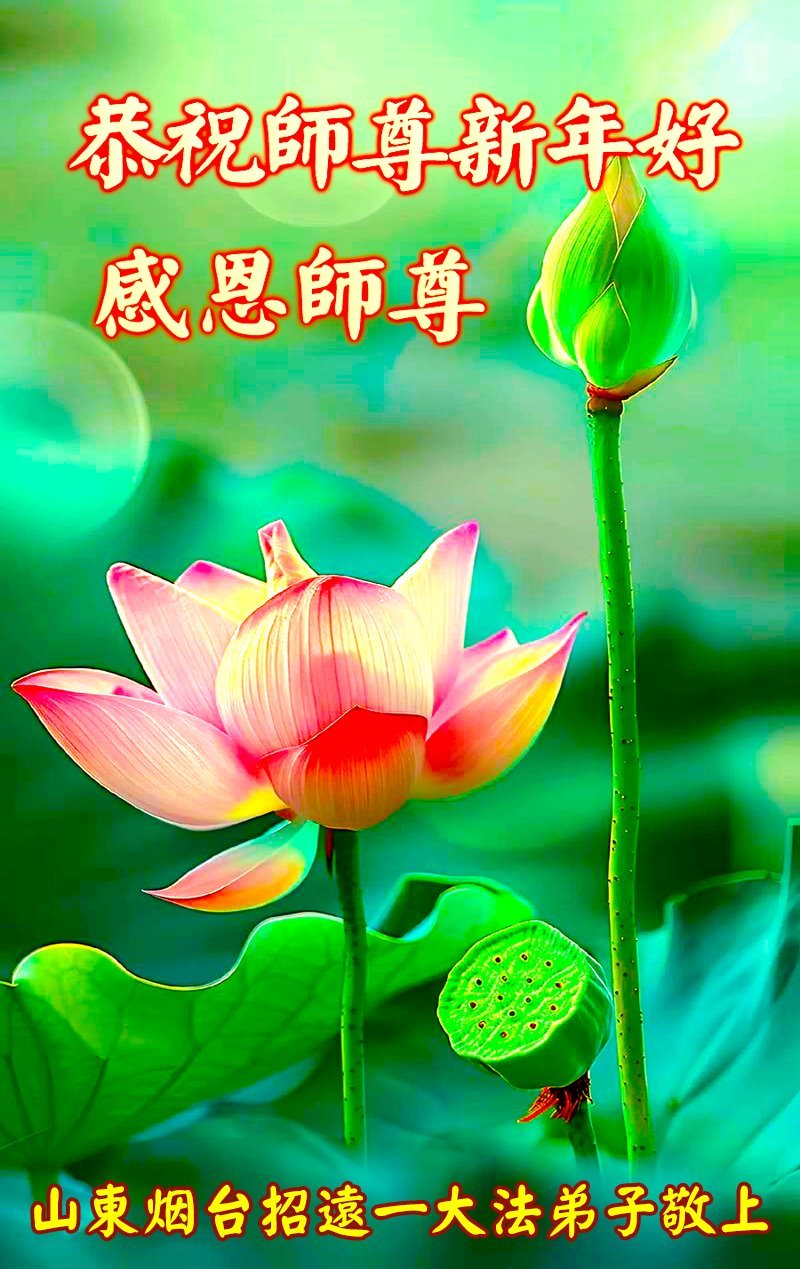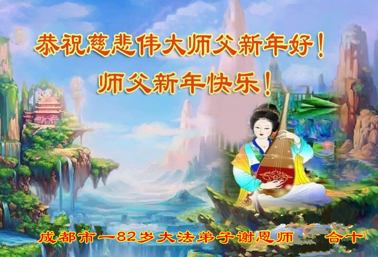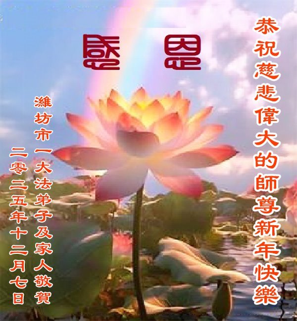 無量慈悲偉大的師尊您好,您辛苦啦!新的一年到來之際,弟子們感恩師尊的慈悲保護與救度,也替得救的世人轉達對師尊慈悲救度的無限感恩!在師尊用巨大的承受與付出所延續來的不多的時日裏,弟子們一定珍惜時間,多學法,同化法,互相配合好形成整體做好三件事,多救世人,不辜負師尊的慈悲苦度!