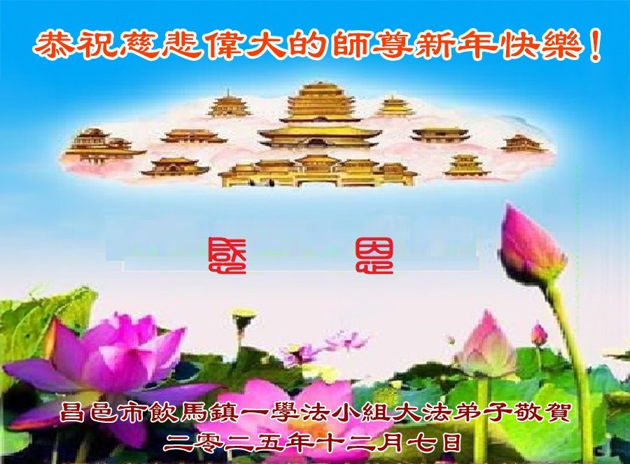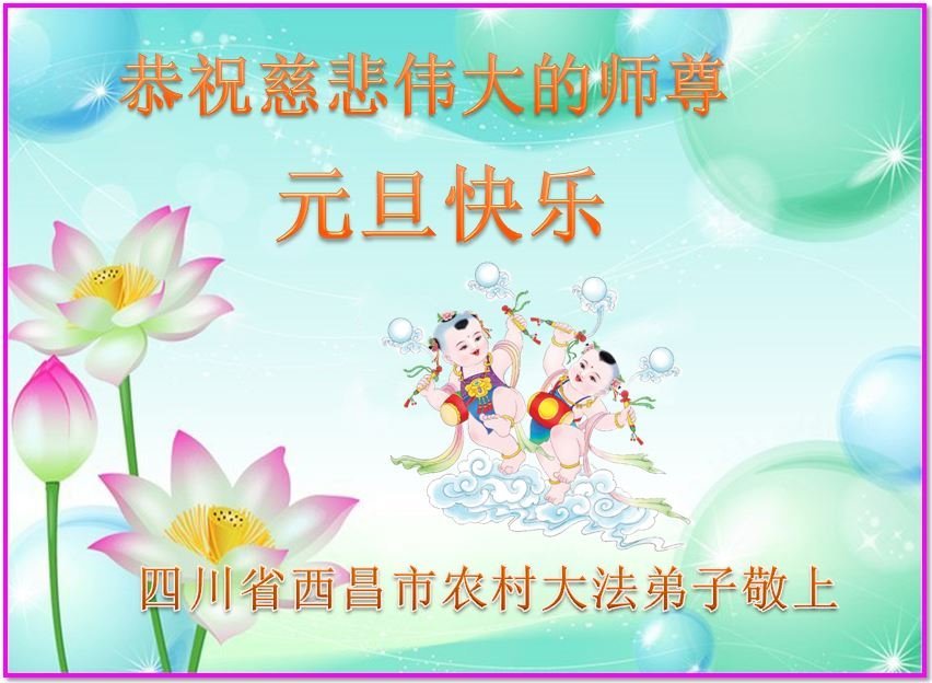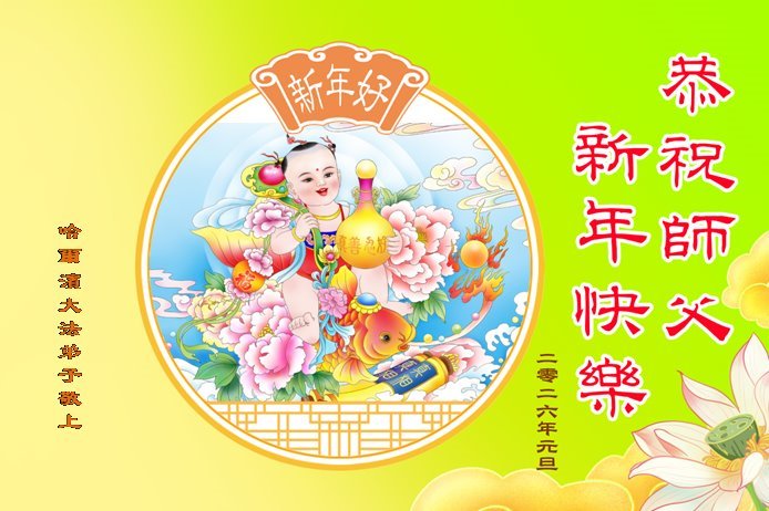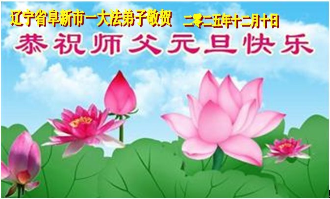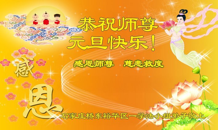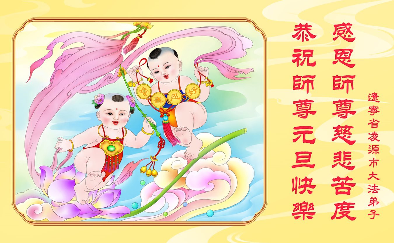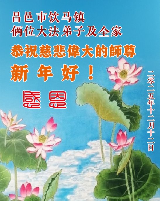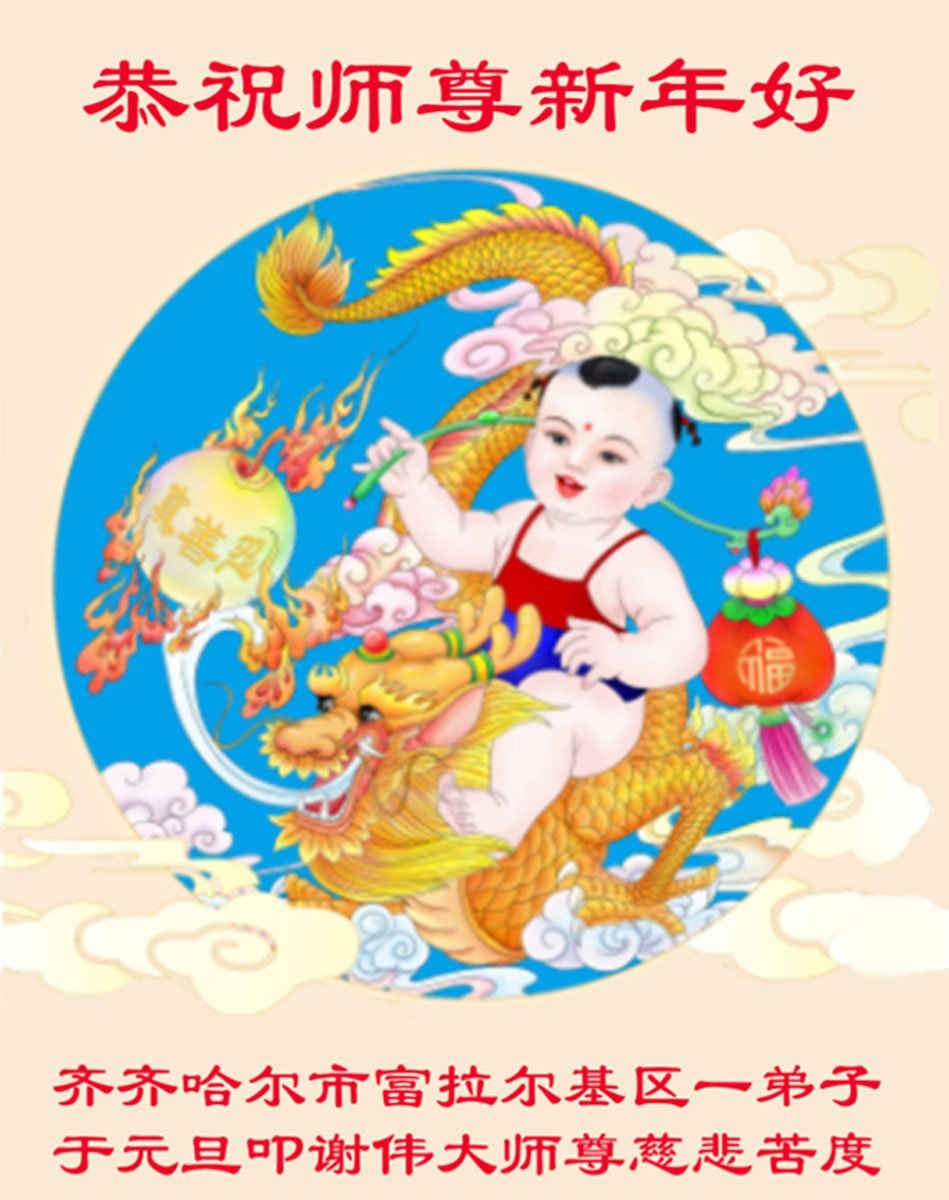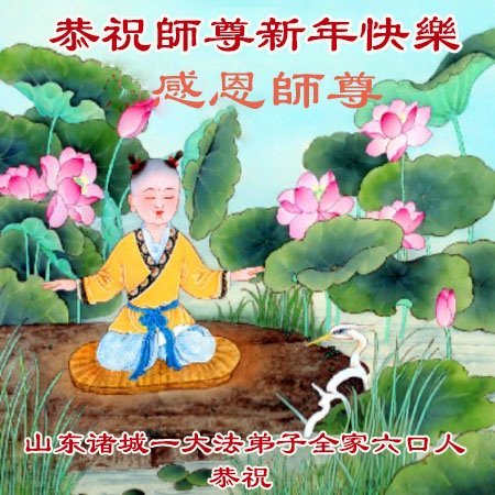 無量慈悲偉大的師尊您好,您辛苦啦!新的一年到來之際,弟子們感恩師尊的慈悲保護與救度,也替得救的世人轉達對師尊慈悲救度的無限感恩!在師尊用巨大的承受與付出所延續來的不多的時日裏,弟子們一定珍惜時間,多學法,同化法,互相配合好形成整體做好三件事,多救世人,不辜負師尊的慈悲苦度!