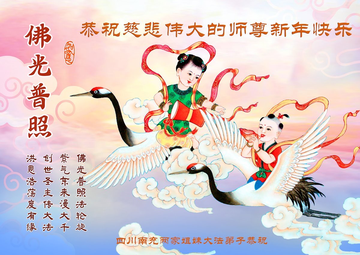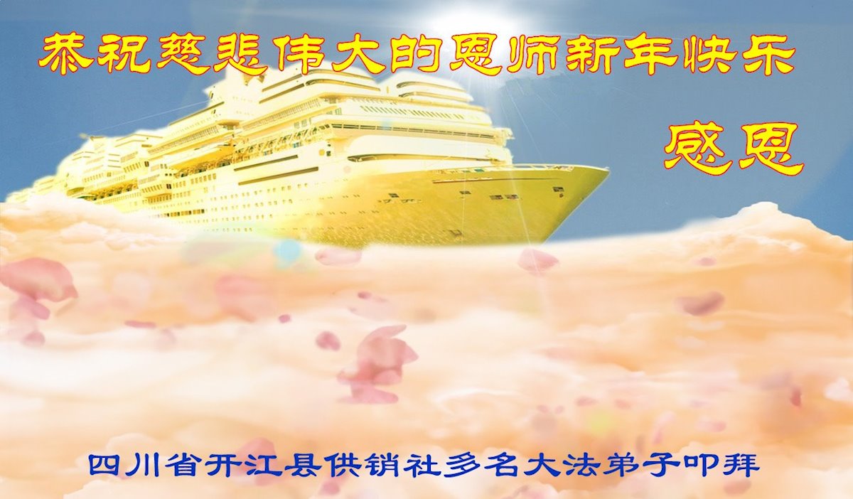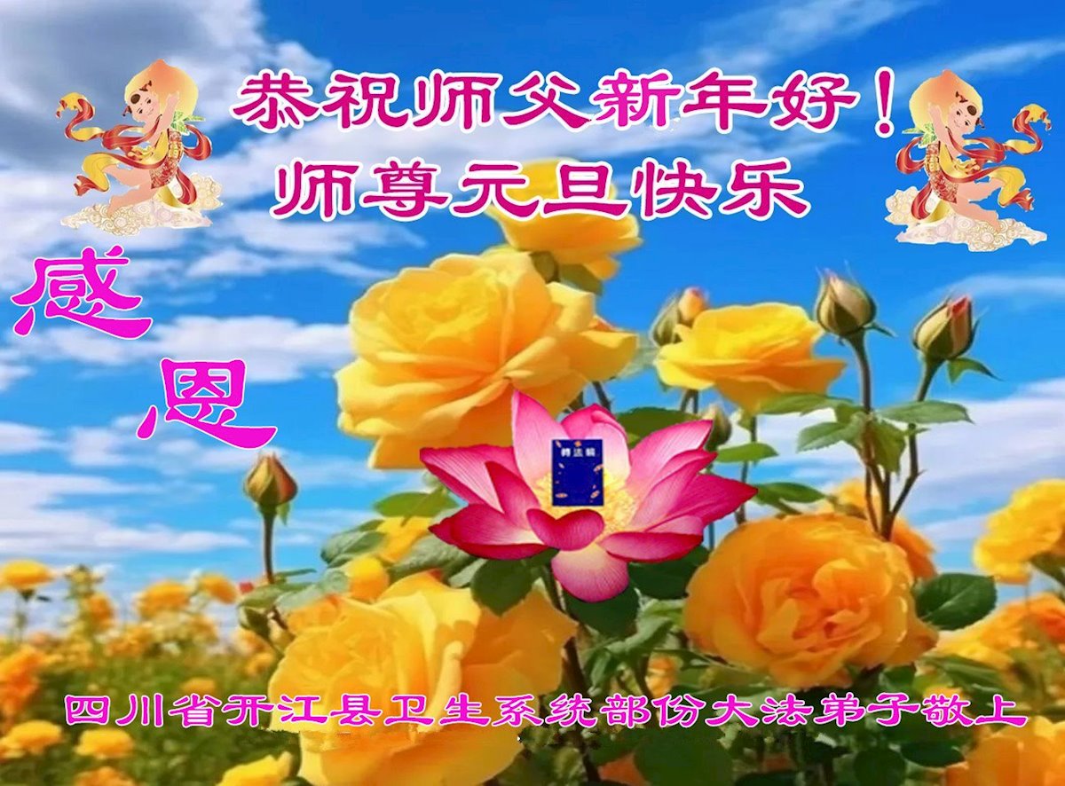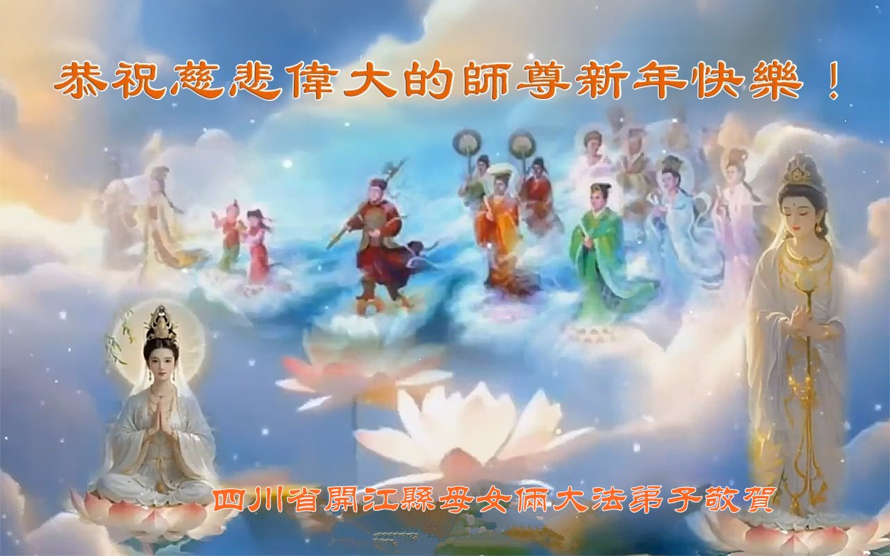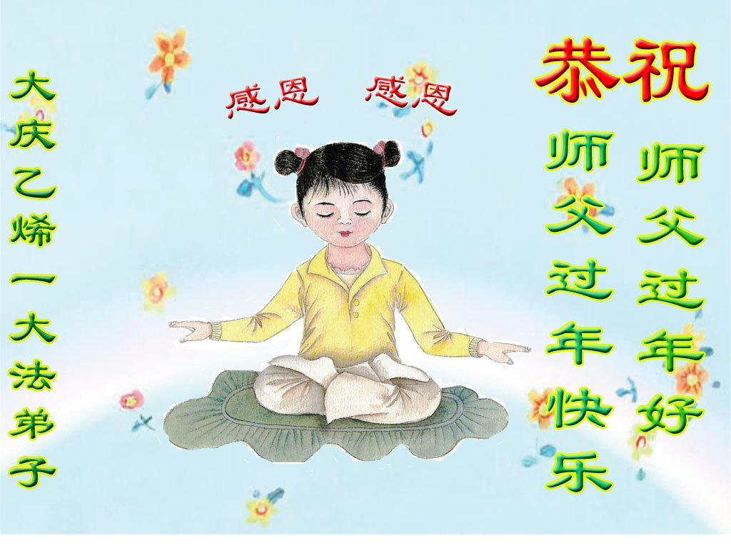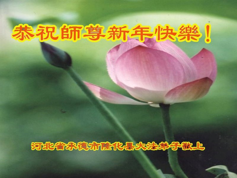無量慈悲偉大的師尊您好,您辛苦啦!新的一年到來之際,弟子們感恩師尊的慈悲保護與救度,也替得救的世人轉達對師尊慈悲救度的無限感恩!在師尊用巨大的承受與付出所延續來的不多的時日裏,弟子們一定珍惜時間,多學法,同化法,互相配合好形成整體做好三件事,多救世人,不辜負師尊的慈悲苦度!