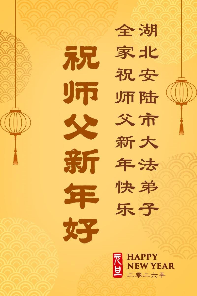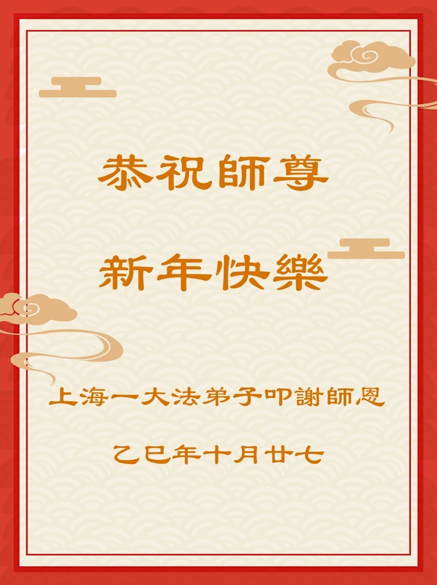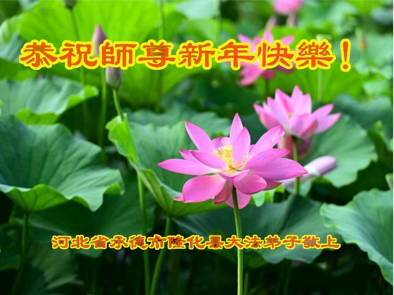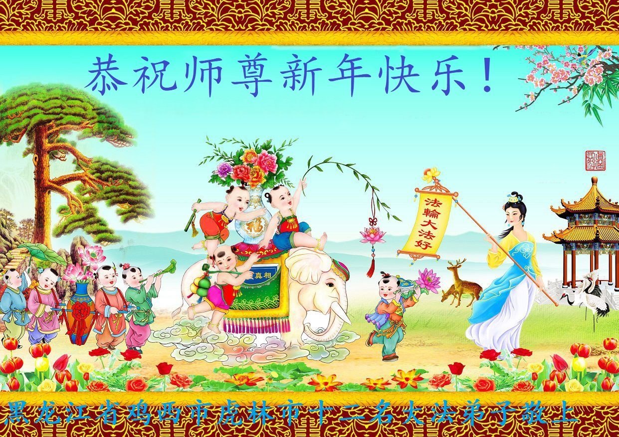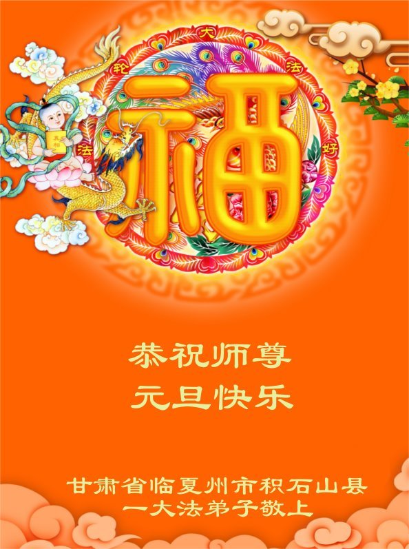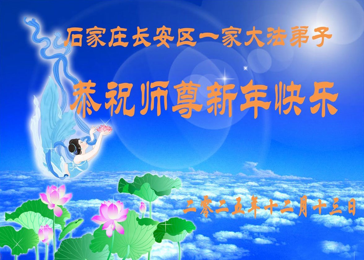 無量慈悲偉大的師尊您好,您辛苦啦!新的一年到來之際,弟子們感恩師尊的慈悲保護與救度,也替得救的世人轉達對師尊慈悲救度的無限感恩!在師尊用巨大的承受與付出所延續來的不多的時日裏,弟子們一定珍惜時間,多學法,同化法,互相配合好形成整體做好三件事,多救世人,不辜負師尊的慈悲苦度!