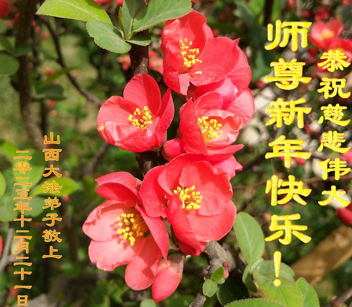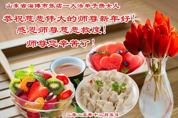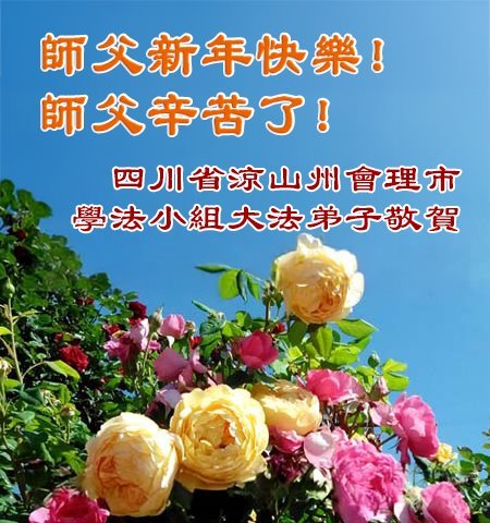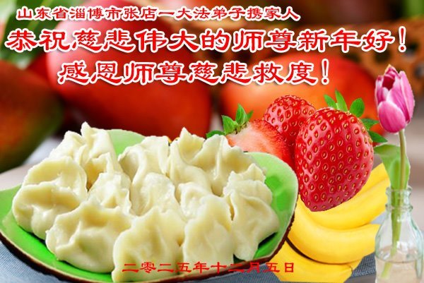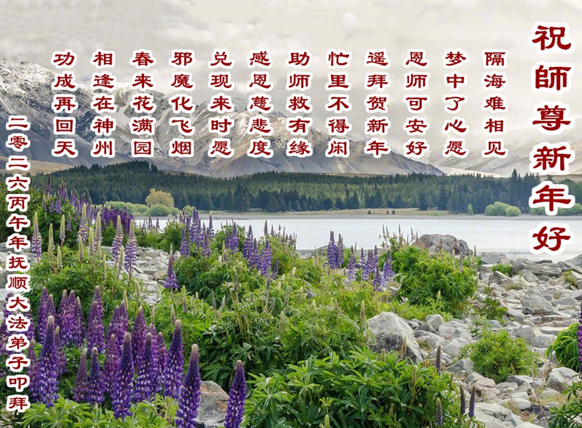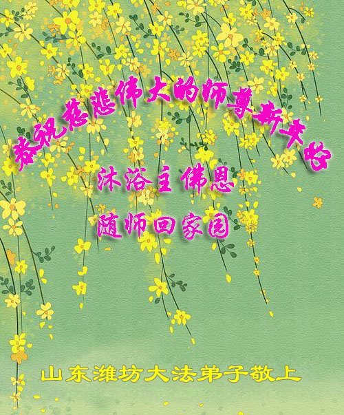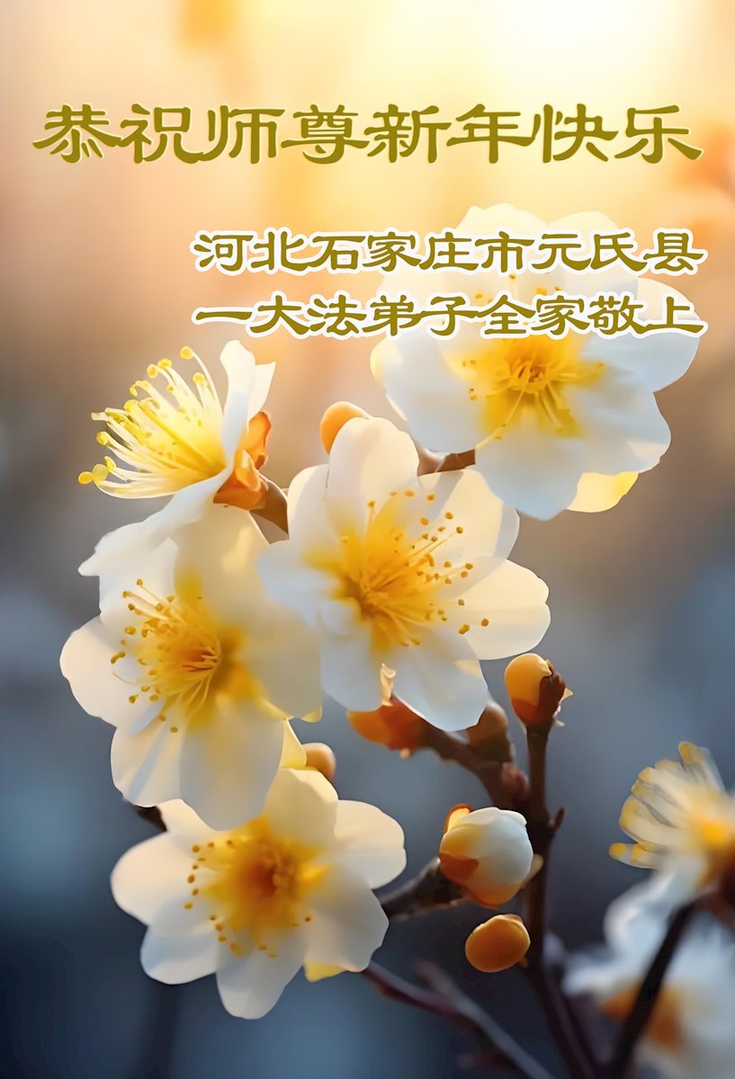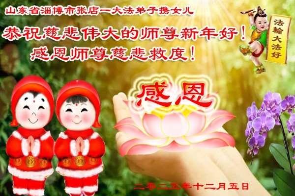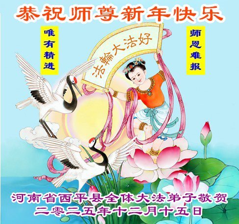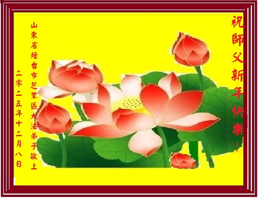 無量慈悲偉大的師尊您好,您辛苦啦!新的一年到來之際,弟子們感恩師尊的慈悲保護與救度,也替得救的世人轉達對師尊慈悲救度的無限感恩!在師尊用巨大的承受與付出所延續來的不多的時日裏,弟子們一定珍惜時間,多學法,同化法,互相配合好形成整體做好三件事,多救世人,不辜負師尊的慈悲苦度!