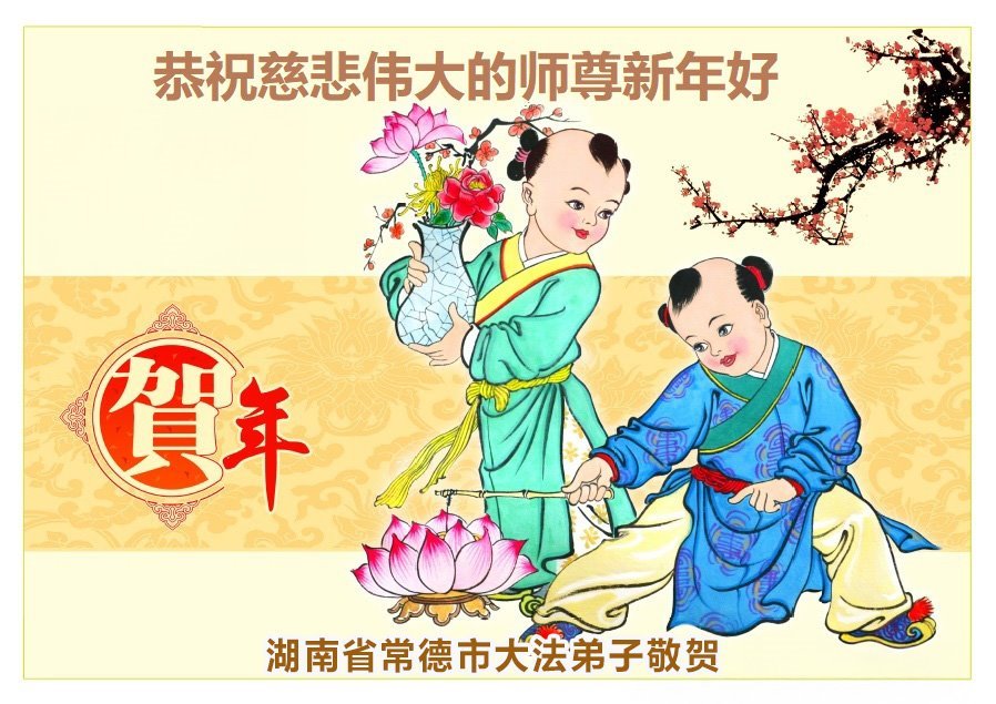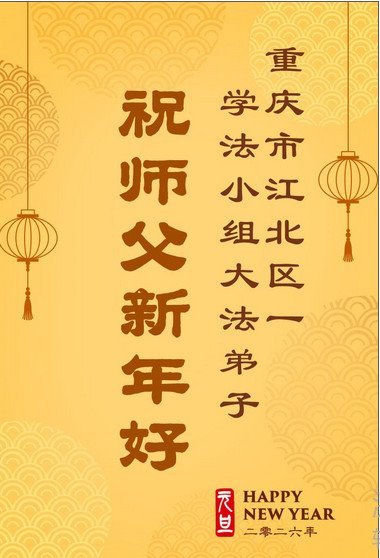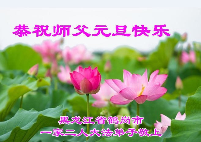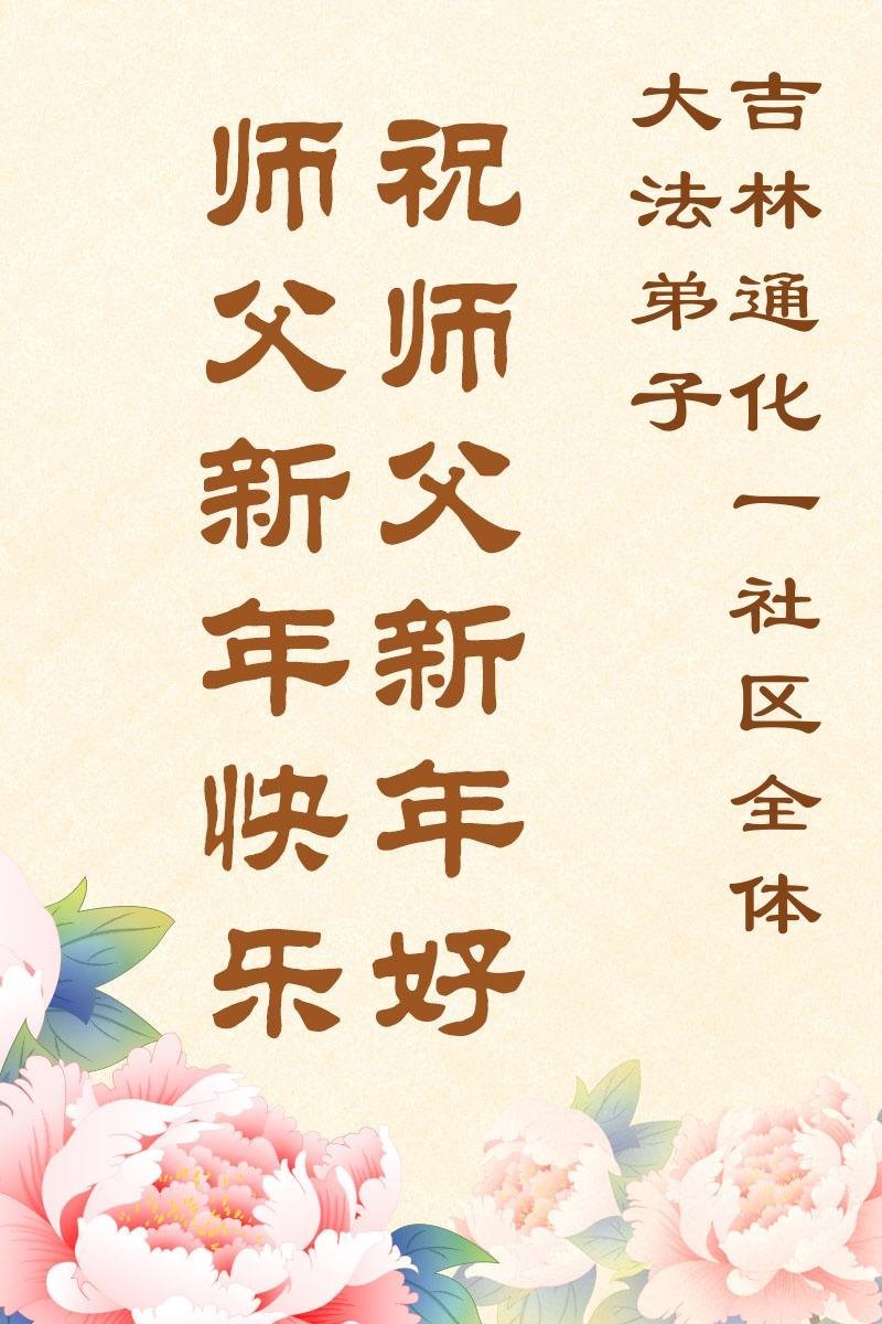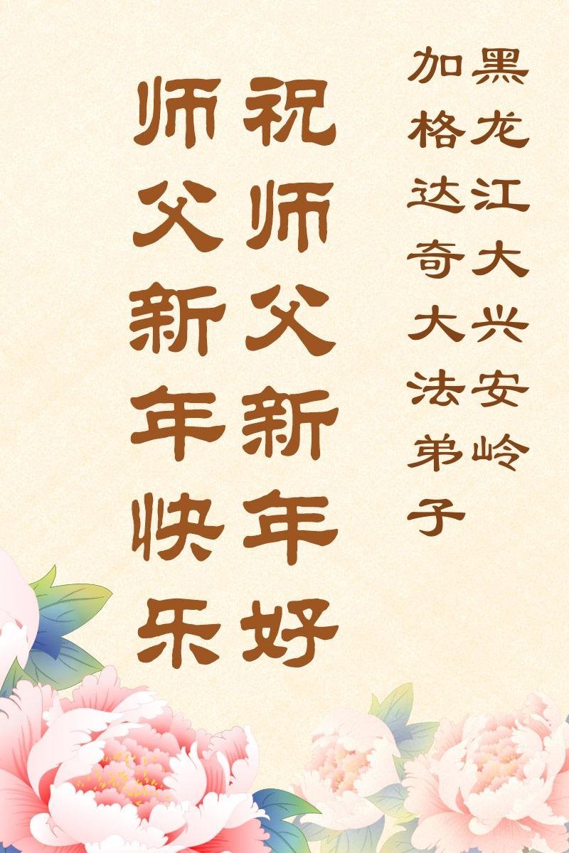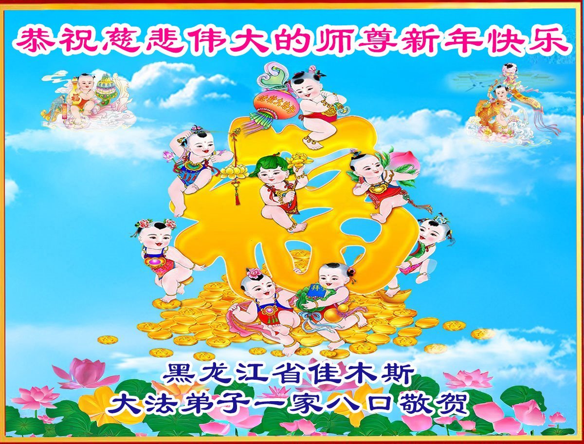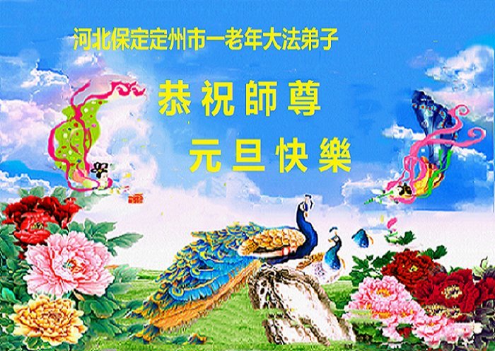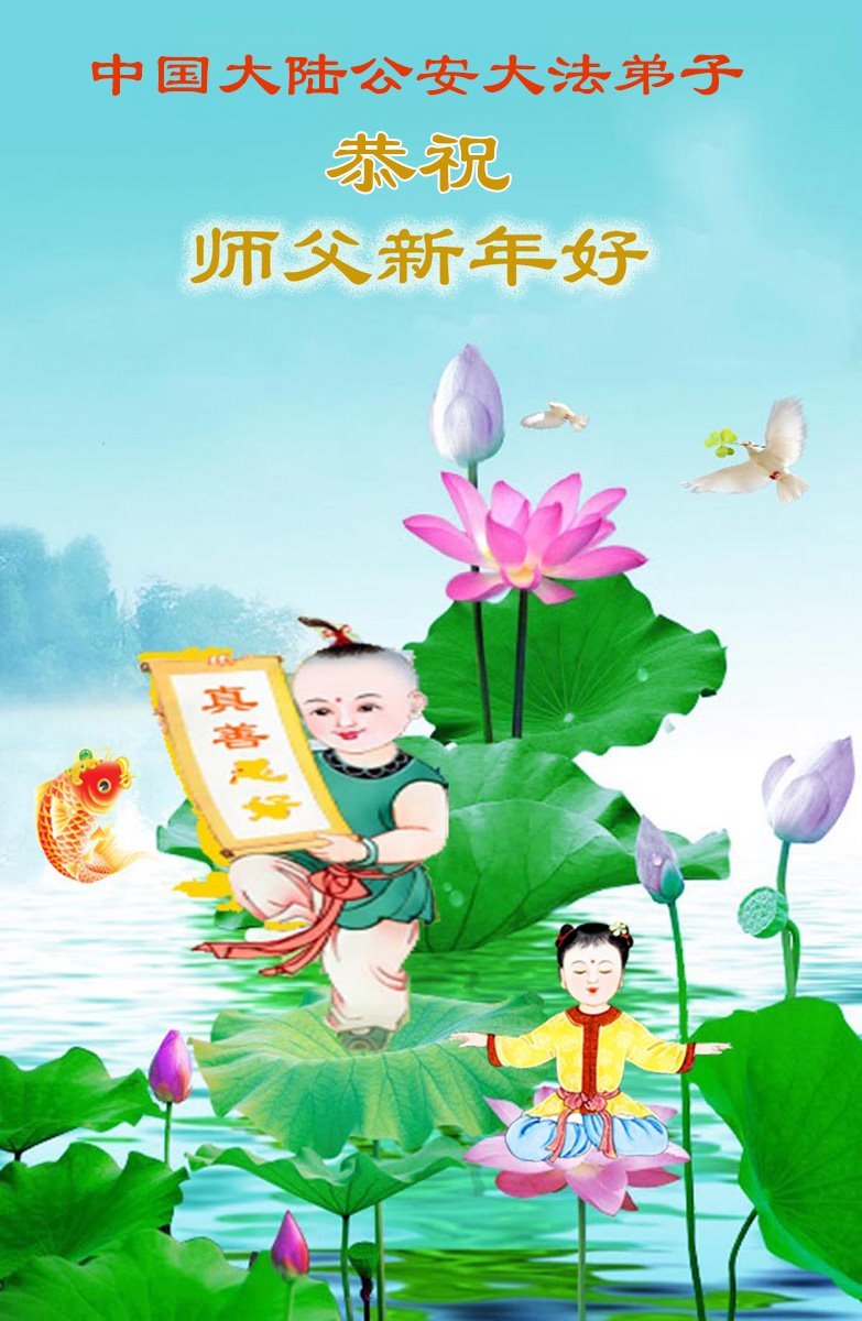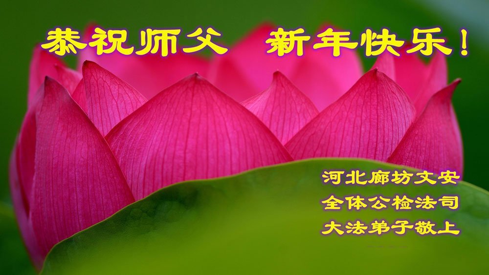 下面是部份來自建材、文藝界、教育、黃金、水利、橋樑、衛生、油田、石化、絲綢、維修、燃氣、船舶、音樂界、金融、鐵路、高校、外貿、商業、交通、醫藥、科研、銀行、會計師、林業、企業(管理)、農場、農墾、機車、供銷、人力資源、地勘、文教、建築、通訊、紡織、服務、環境藝術、軍工、電力、航天、電商、遊樂、電子技術研究、稅務、煤炭、郵政、航空、公用事業、財務、礦山、圖書館、工商界、出版、私營經營、房地產、招商、海關、自動化儀表、公安、檢察院、法院、司法、行政部門、軍隊等60餘行業大法弟子敬獻李洪志師父的新年問候。