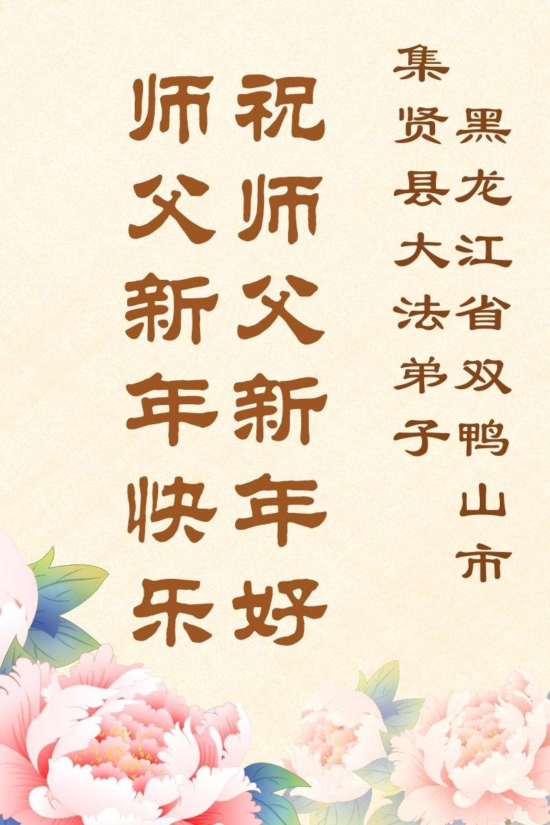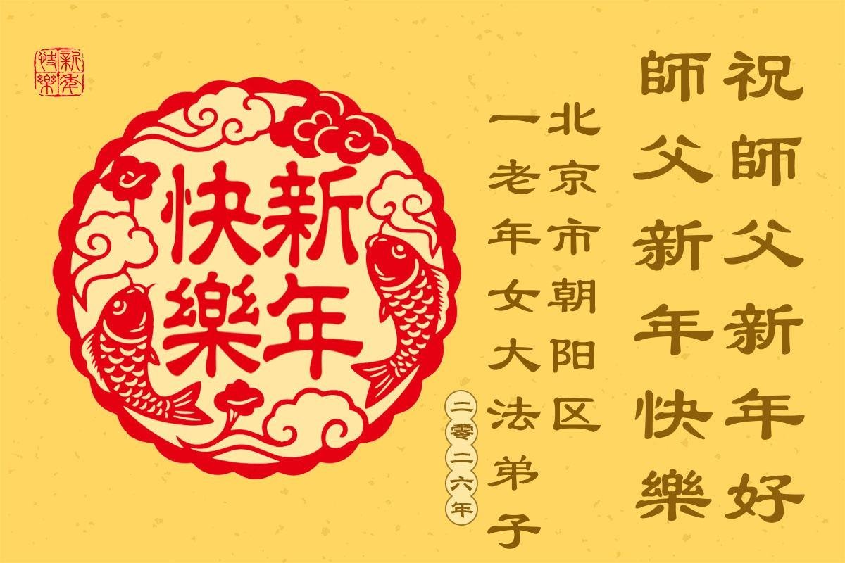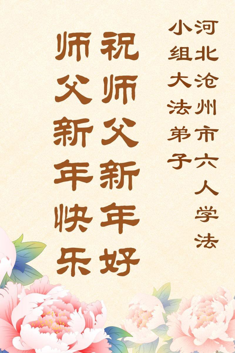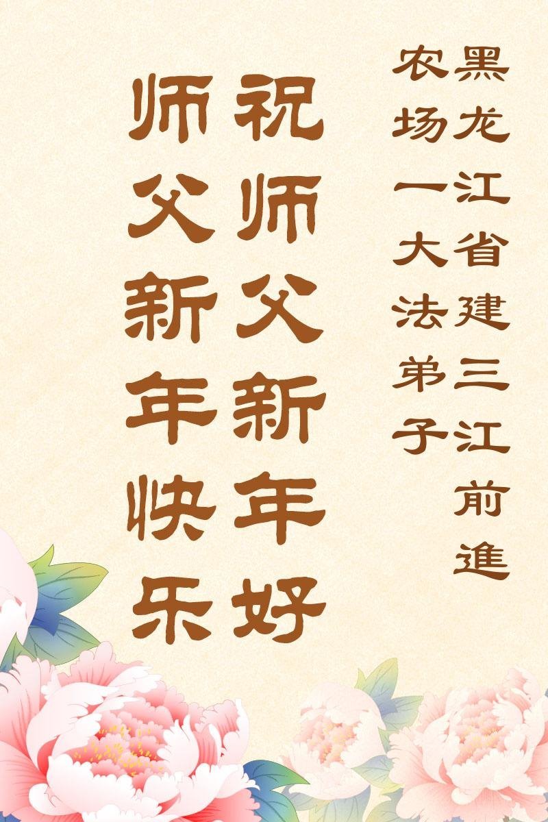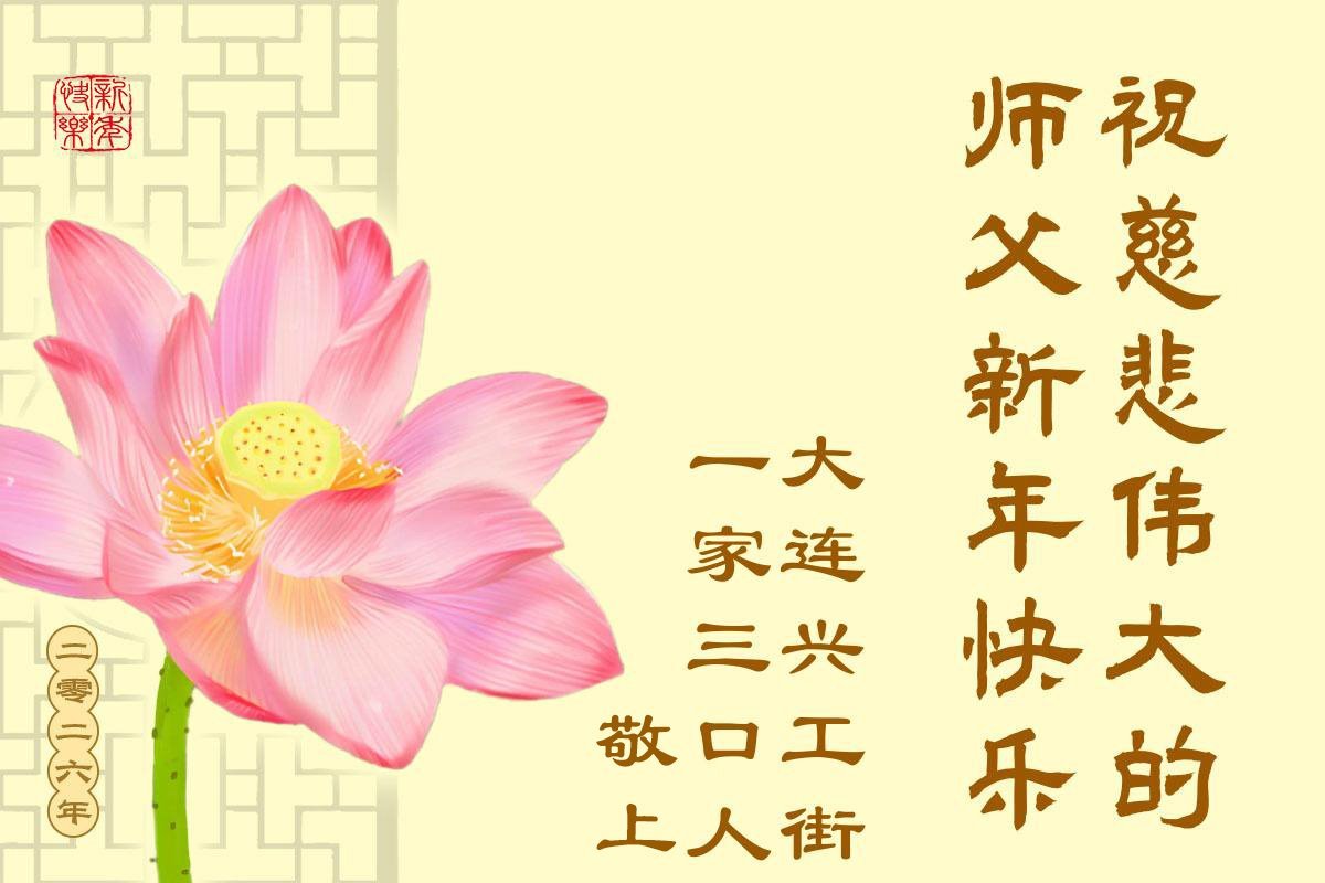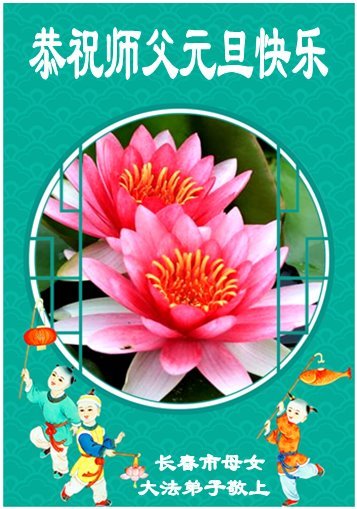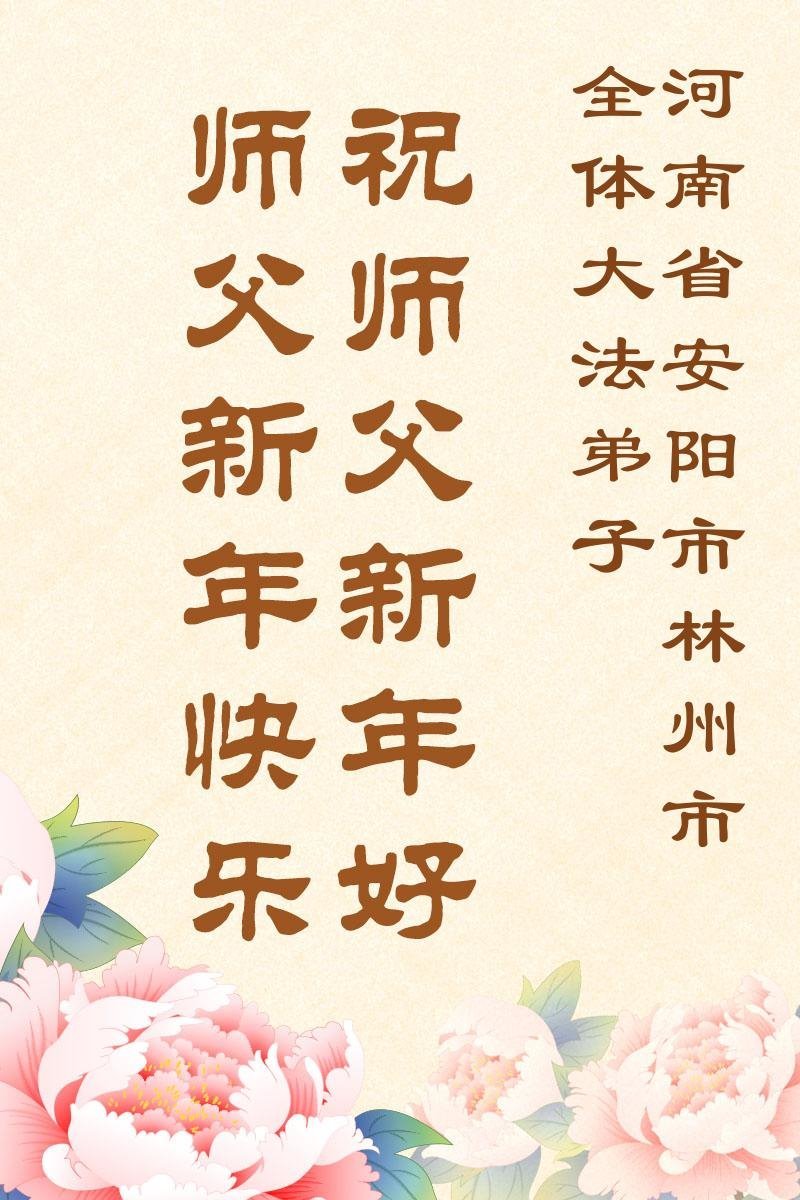 下面是部份來自建材、文藝界、教育、黃金、水利、橋樑、衛生、油田、石化、絲綢、維修、燃氣、船舶、音樂界、金融、鐵路、高校、外貿、商業、交通、醫藥、科研、銀行、會計師、林業、企業(管理)、農場、農墾、機車、供銷、人力資源、地勘、文教、建築、通訊、紡織、服務、環境藝術、軍工、電力、航天、電商、遊樂、電子技術研究、稅務、煤炭、郵政、航空、公用事業、財務、礦山、圖書館、工商界、出版、私營經營、房地產、招商、海關、自動化儀表、公安、檢察院、法院、司法、行政部門、軍隊等60餘行業大法弟子敬獻李洪志師父的新年問候。