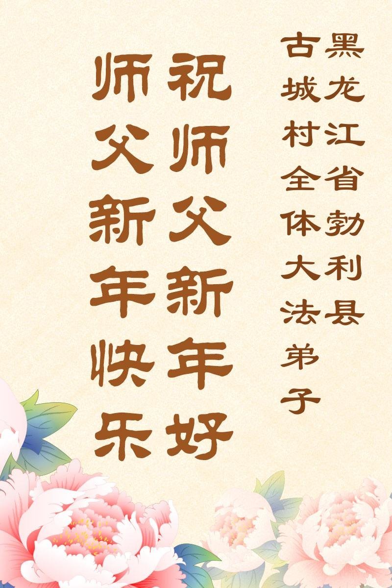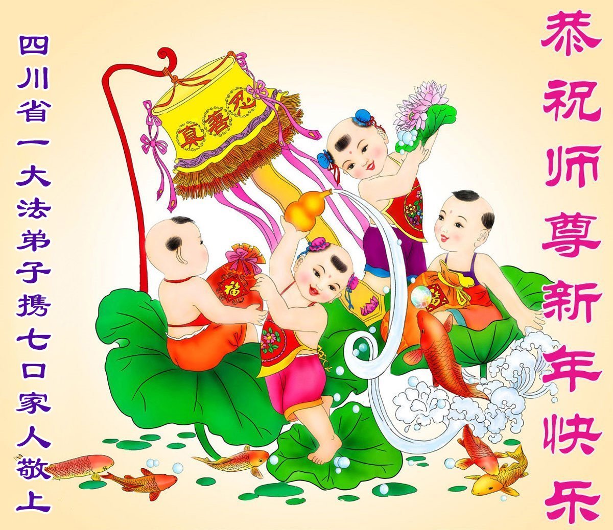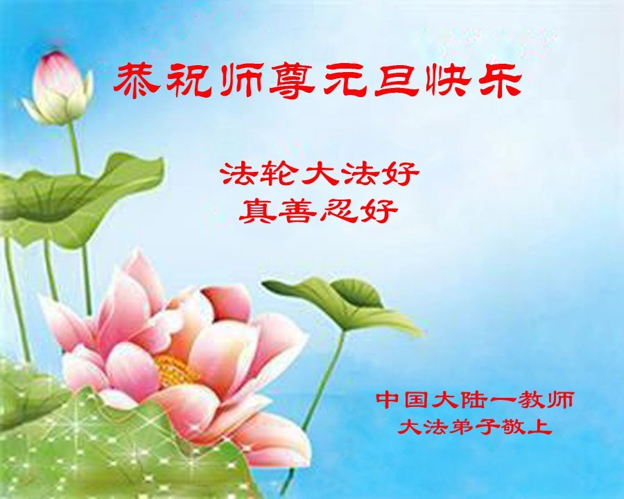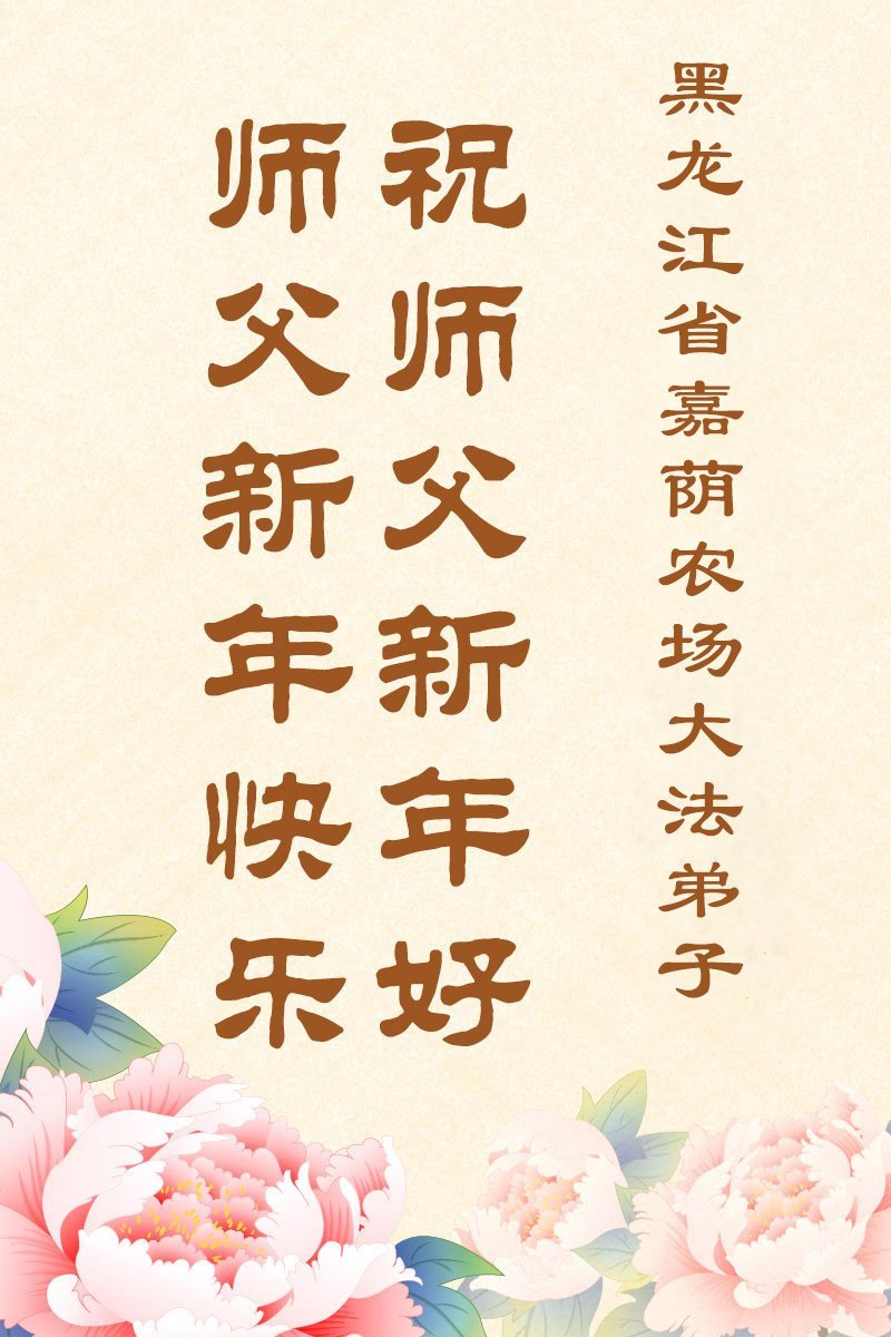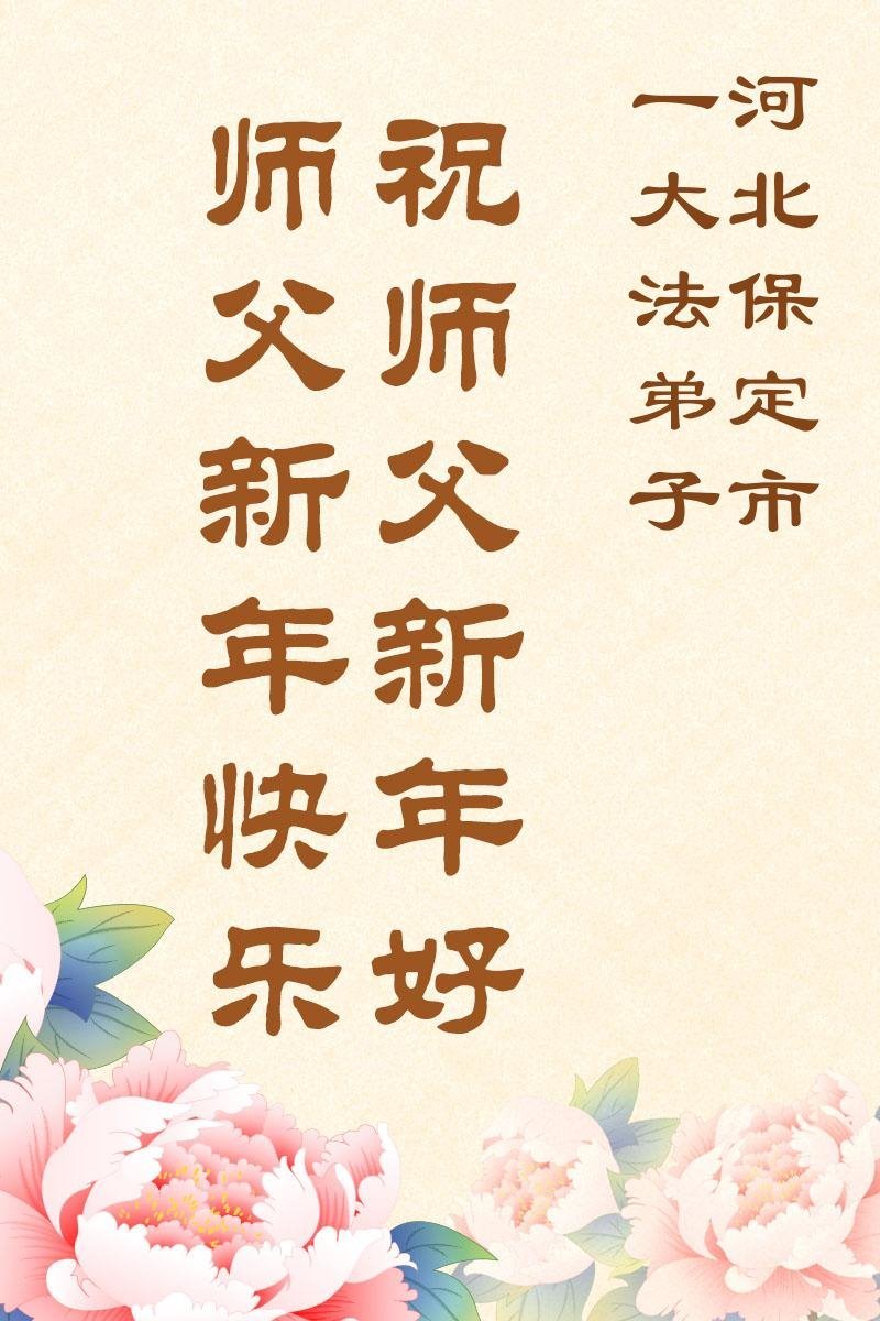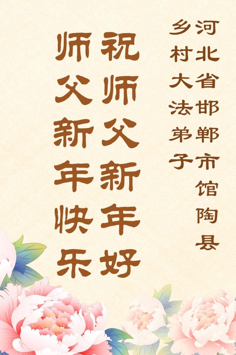 下面是部份來自建材、文藝界、教育、黃金、水利、橋樑、衛生、油田、石化、絲綢、維修、燃氣、船舶、音樂界、金融、鐵路、高校、外貿、商業、交通、醫藥、科研、銀行、會計師、林業、企業(管理)、農場、農墾、機車、供銷、人力資源、地勘、文教、建築、通訊、紡織、服務、環境藝術、軍工、電力、航天、電商、遊樂、電子技術研究、稅務、煤炭、郵政、航空、公用事業、財務、礦山、圖書館、工商界、出版、私營經營、房地產、招商、海關、自動化儀表、公安、檢察院、法院、司法、行政部門、軍隊等60餘行業大法弟子敬獻李洪志師父的新年問候。