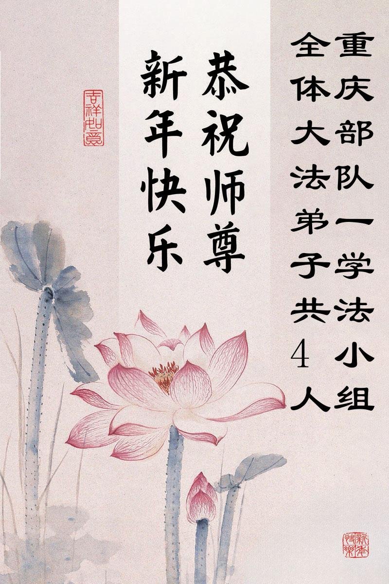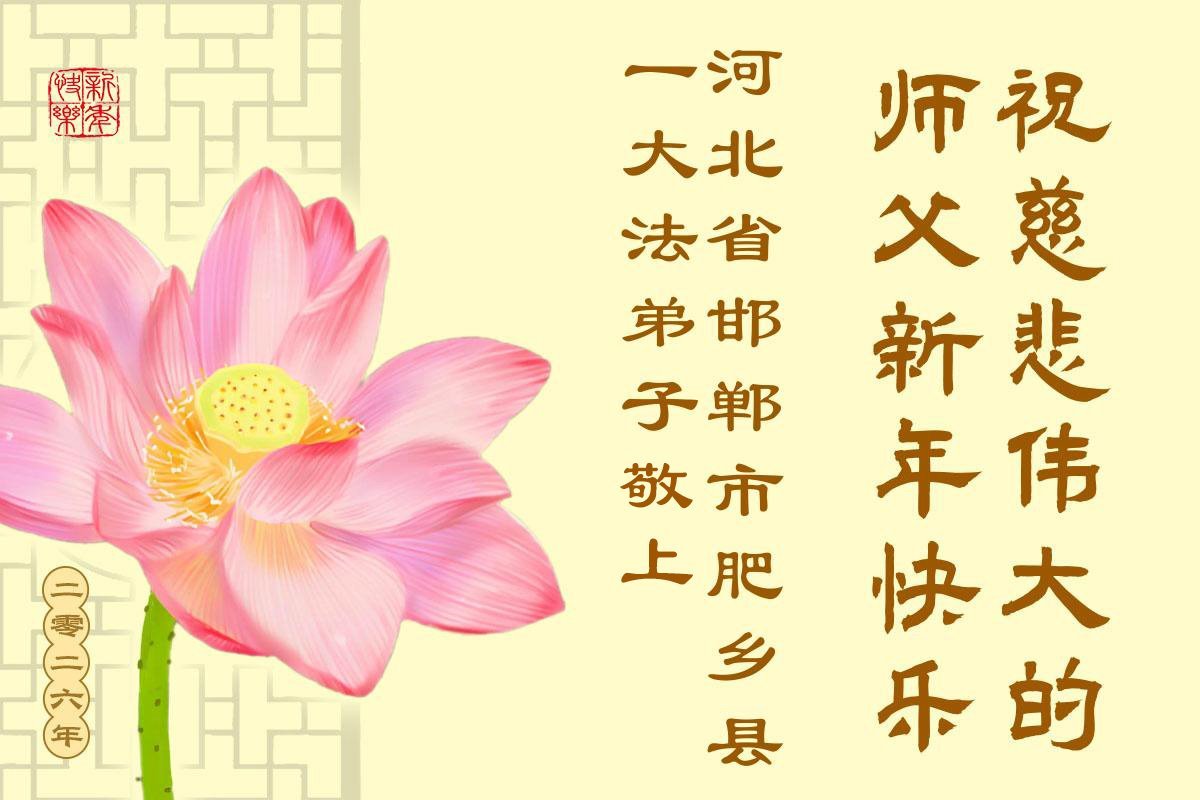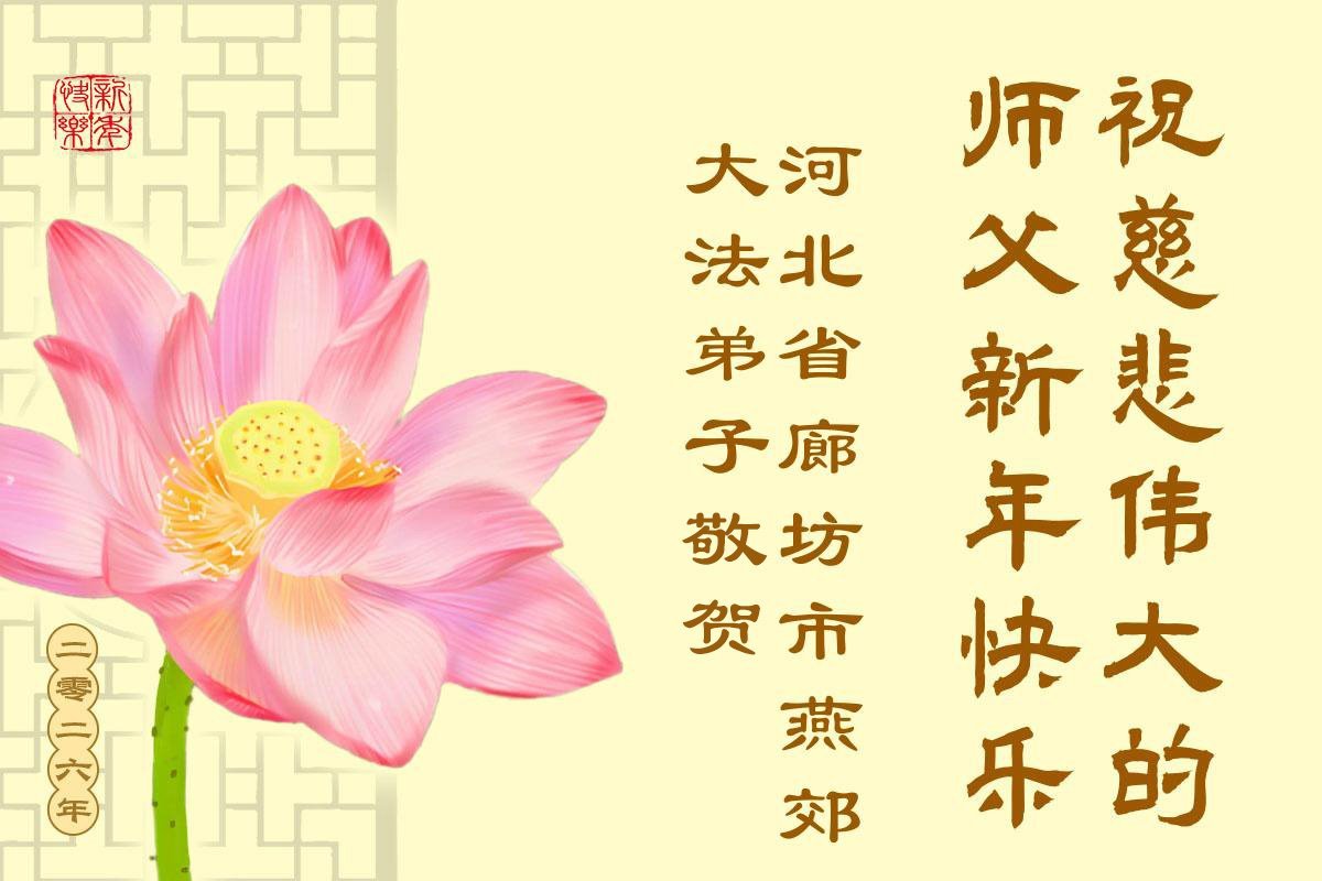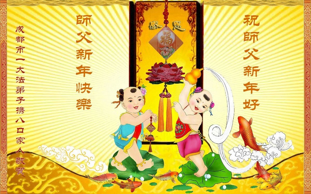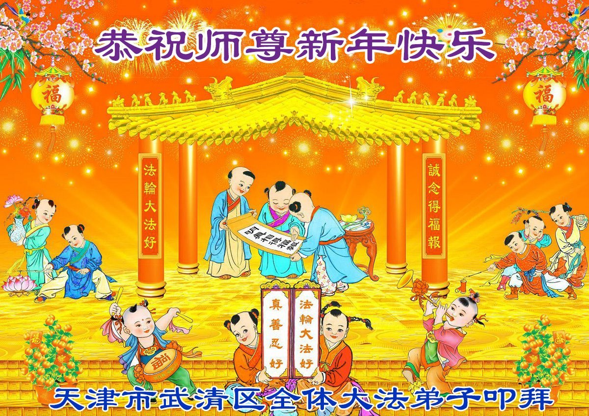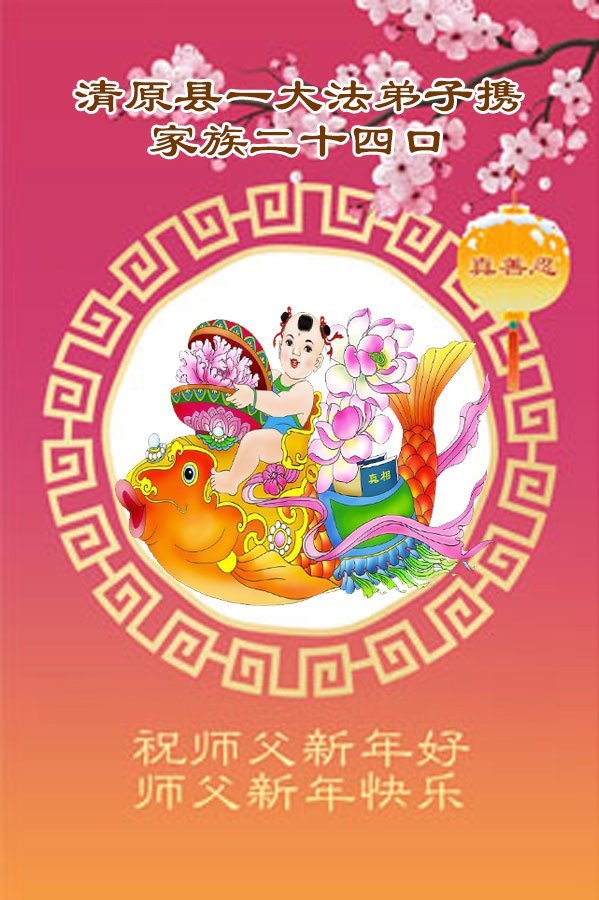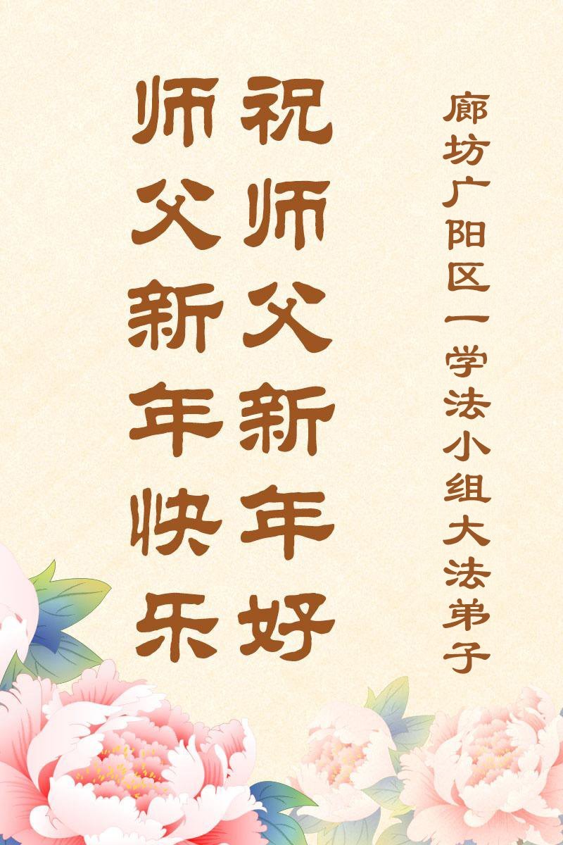 下面是部份來自建材、文藝界、教育、黃金、水利、橋樑、衛生、油田、石化、絲綢、維修、燃氣、船舶、音樂界、金融、鐵路、高校、外貿、商業、交通、醫藥、科研、銀行、會計師、林業、企業(管理)、農場、農墾、機車、供銷、人力資源、地勘、文教、建築、通訊、紡織、服務、環境藝術、軍工、電力、航天、電商、遊樂、電子技術研究、稅務、煤炭、郵政、航空、公用事業、財務、礦山、圖書館、工商界、出版、私營經營、房地產、招商、海關、自動化儀表、公安、檢察院、法院、司法、行政部門、軍隊等60餘行業大法弟子敬獻李洪志師父的新年問候。