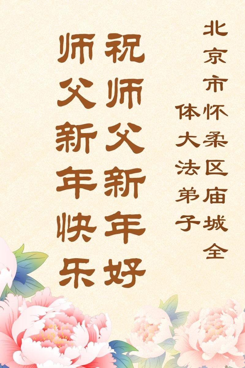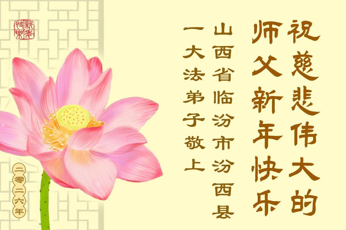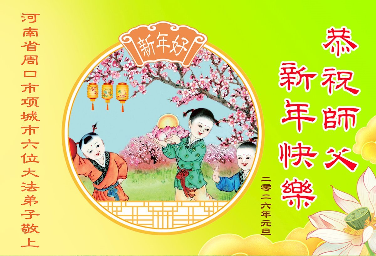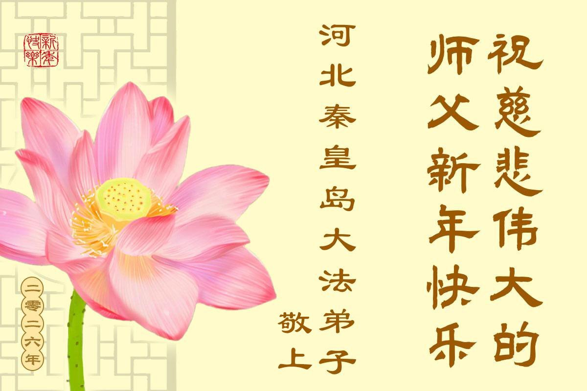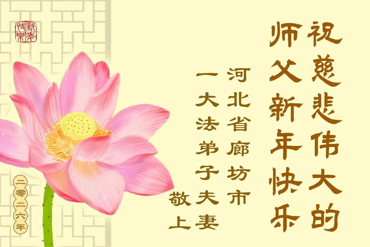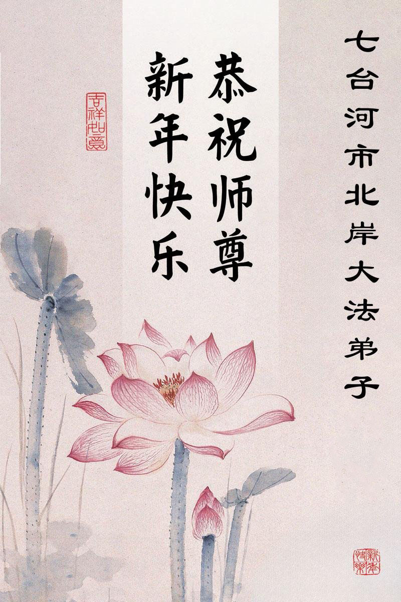 下面是部份來自建材、文藝界、教育、黃金、水利、橋樑、衛生、油田、石化、絲綢、維修、燃氣、船舶、音樂界、金融、鐵路、高校、外貿、商業、交通、醫藥、科研、銀行、會計師、林業、企業(管理)、農場、農墾、機車、供銷、人力資源、地勘、文教、建築、通訊、紡織、服務、環境藝術、軍工、電力、航天、電商、遊樂、電子技術研究、稅務、煤炭、郵政、航空、公用事業、財務、礦山、圖書館、工商界、出版、私營經營、房地產、招商、海關、自動化儀表、公安、檢察院、法院、司法、行政部門、軍隊等60餘行業大法弟子敬獻李洪志師父的新年問候。