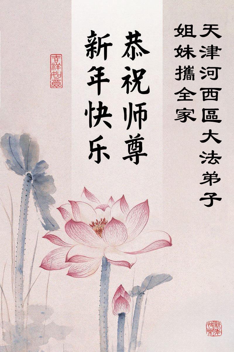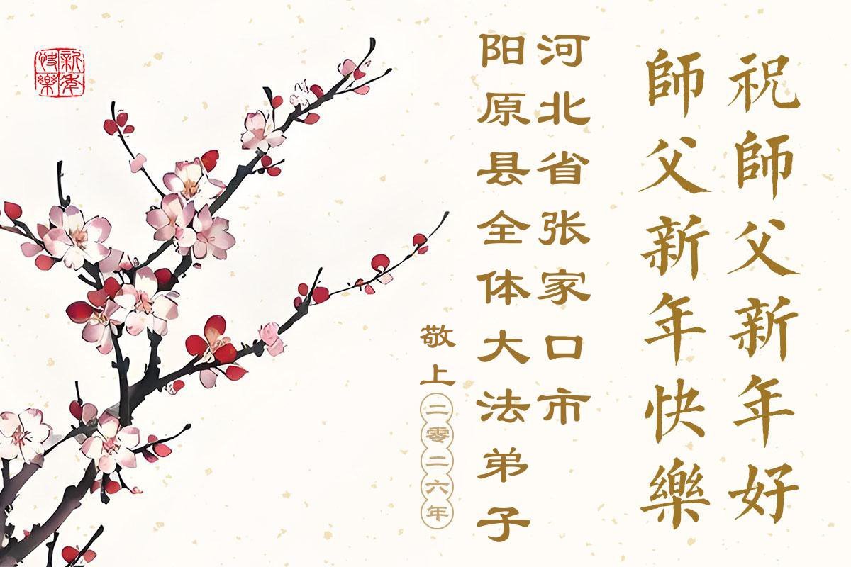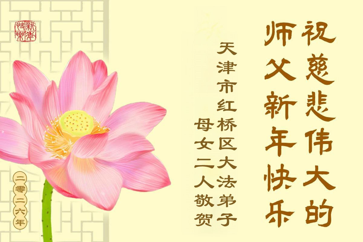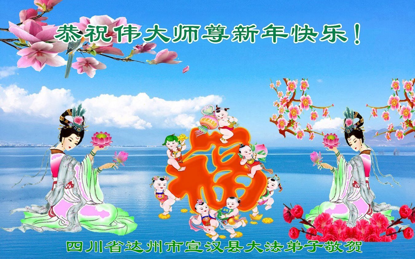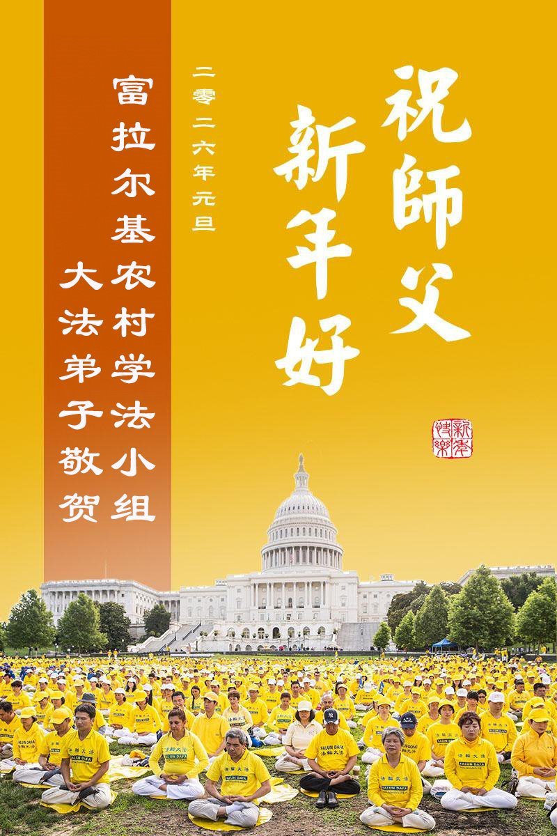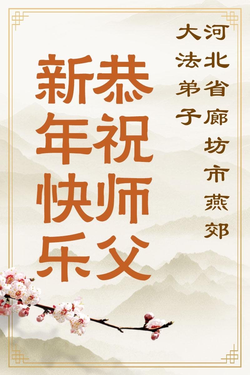 下面是部份來自建材、文藝界、教育、黃金、水利、橋樑、衛生、油田、石化、絲綢、維修、燃氣、船舶、音樂界、金融、鐵路、高校、外貿、商業、交通、醫藥、科研、銀行、會計師、林業、企業(管理)、農場、農墾、機車、供銷、人力資源、地勘、文教、建築、通訊、紡織、服務、環境藝術、軍工、電力、航天、電商、遊樂、電子技術研究、稅務、煤炭、郵政、航空、公用事業、財務、礦山、圖書館、工商界、出版、私營經營、房地產、招商、海關、自動化儀表、公安、檢察院、法院、司法、行政部門、軍隊等60餘行業大法弟子敬獻李洪志師父的新年問候。