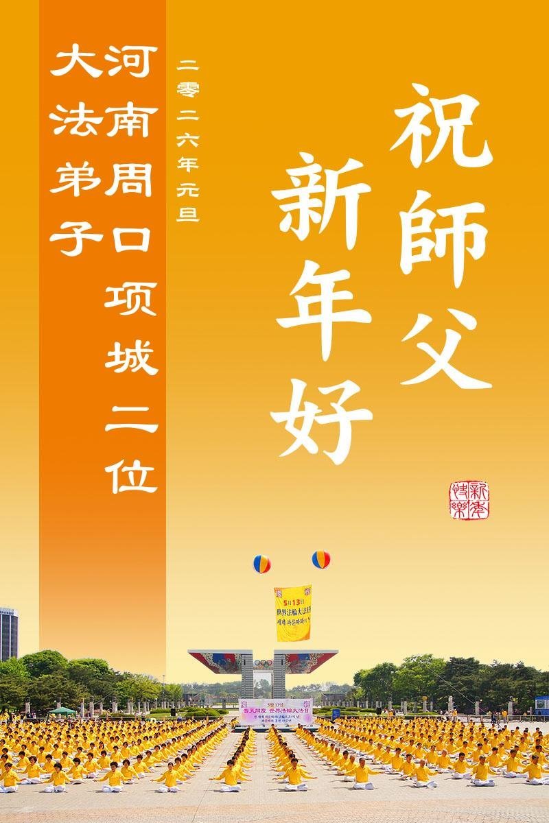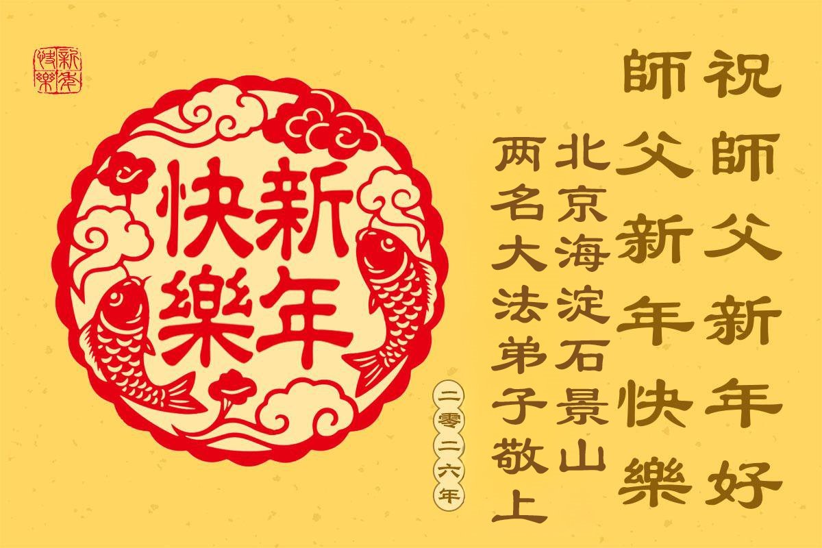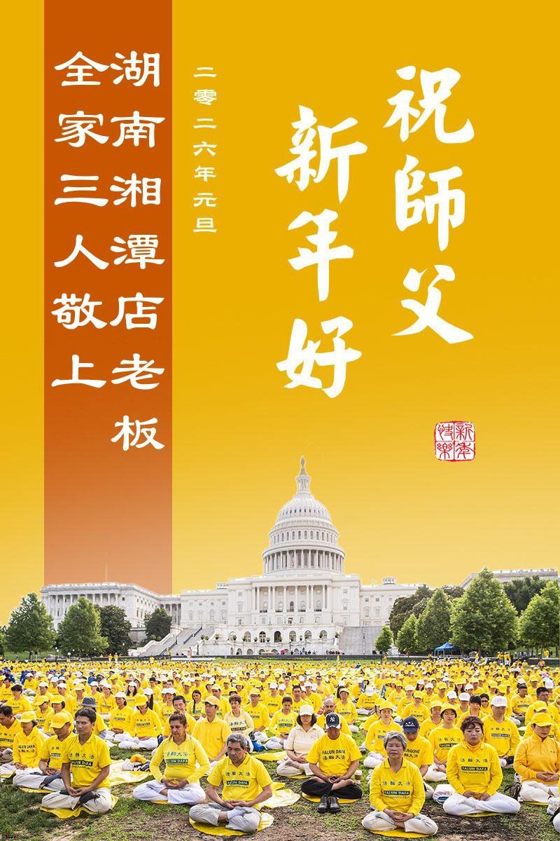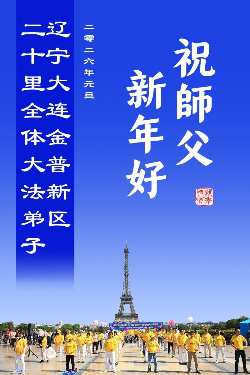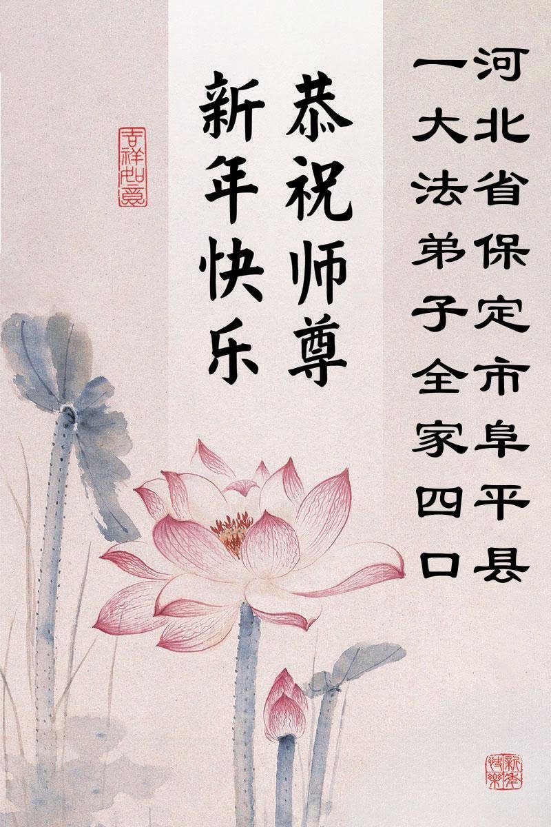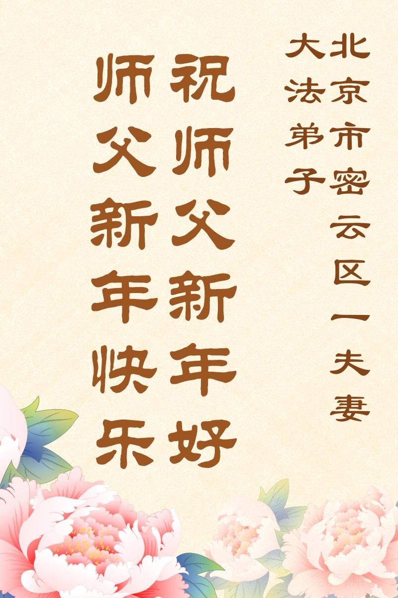 下面是部份來自建材、文藝界、教育、黃金、水利、橋樑、衛生、油田、石化、絲綢、維修、燃氣、船舶、音樂界、金融、鐵路、高校、外貿、商業、交通、醫藥、科研、銀行、會計師、林業、企業(管理)、農場、農墾、機車、供銷、人力資源、地勘、文教、建築、通訊、紡織、服務、環境藝術、軍工、電力、航天、電商、遊樂、電子技術研究、稅務、煤炭、郵政、航空、公用事業、財務、礦山、圖書館、工商界、出版、私營經營、房地產、招商、海關、自動化儀表、公安、檢察院、法院、司法、行政部門、軍隊等60餘行業大法弟子敬獻李洪志師父的新年問候。