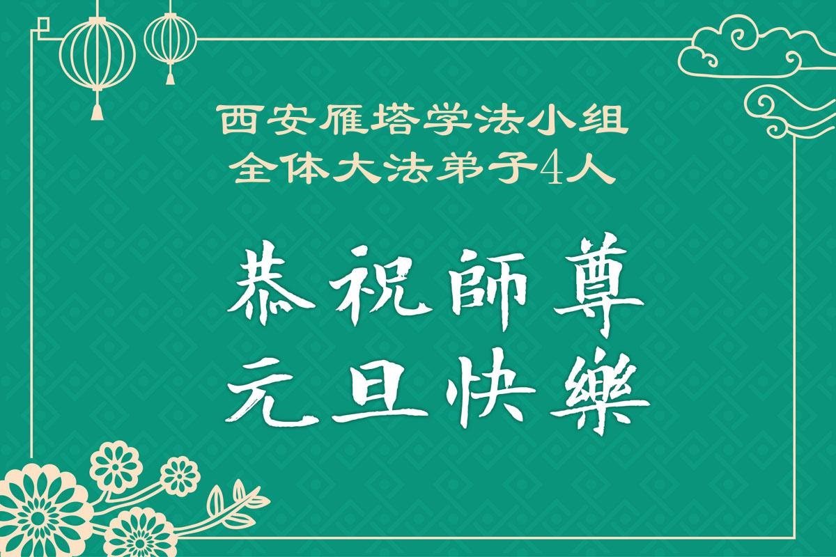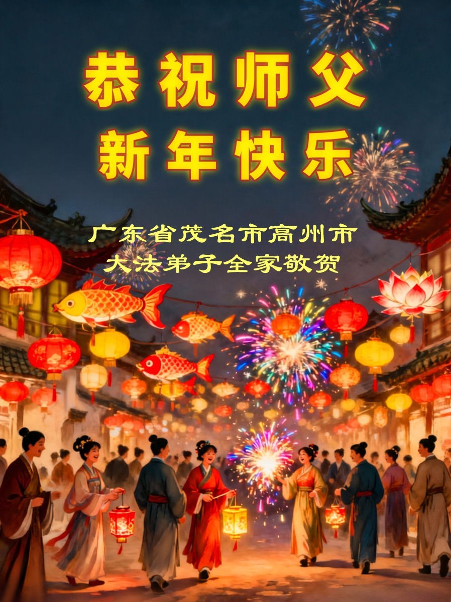 師尊您幾十年傳法至今,始終肩負著宇宙正法的艱難,承載著各界眾生的困苦、壓力和巨大的業力,在這末後救人的重大時刻,您為人類操盡了心!我們想念著您!我們就做好自己應該做的三件事,請師尊放心!在此恭祝師尊新年快樂!