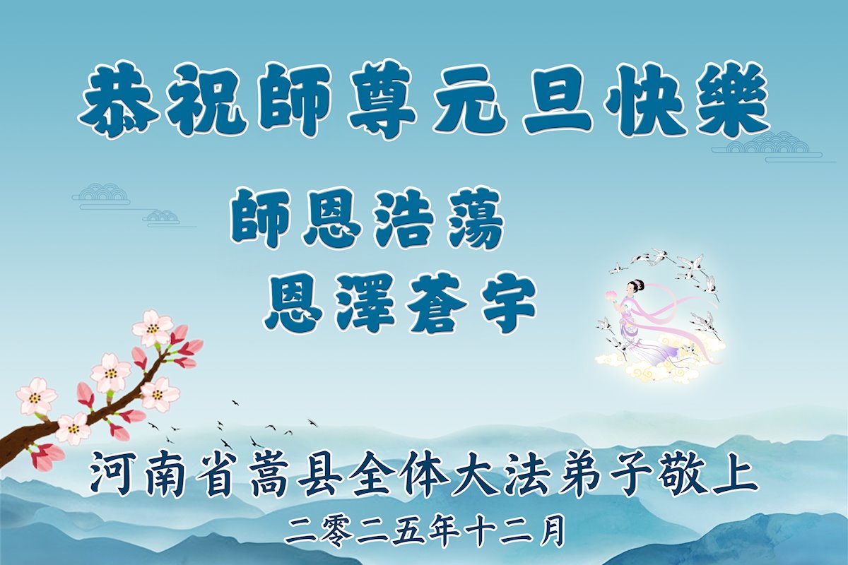 【明慧網二零二五年十二月二十九日】(明慧網通訊員綜合報導)二零二六年新年的鐘聲即將敲響,在中國大陸從事各行業工作的大法弟子們敬祝慈悲偉大的師尊新年好!在師尊的看護下,大法弟子們又走過了在工作和生活中隨時隨處講真相、證實法的一年。在輝煌的新紀元正在開啟的歷史時刻,弟子們會珍惜每一天、每一時刻,謹遵師命,修好自己,多救眾生!