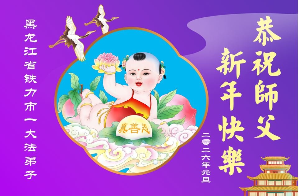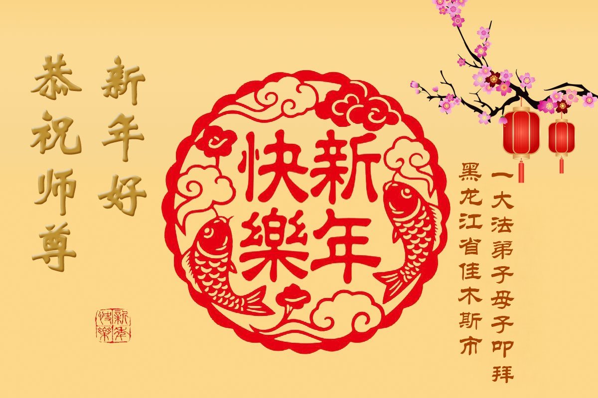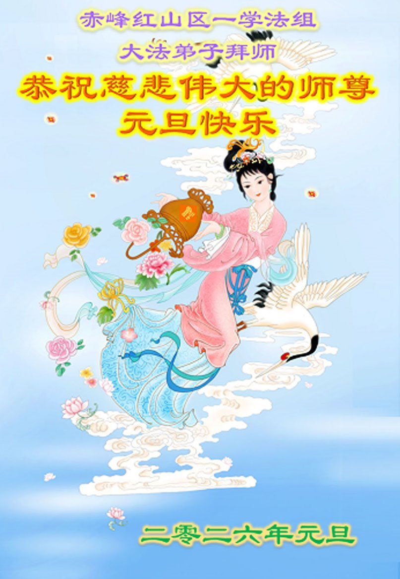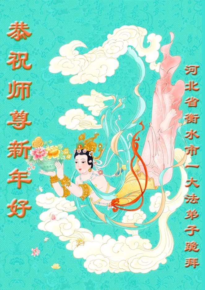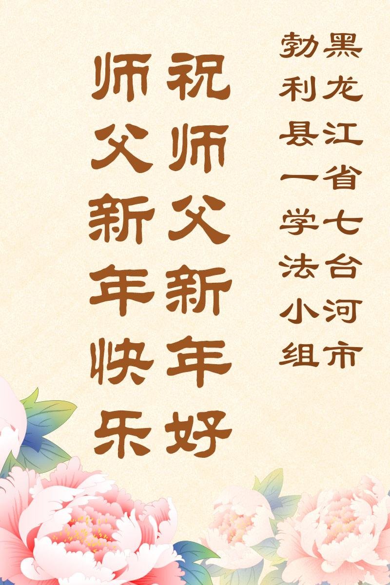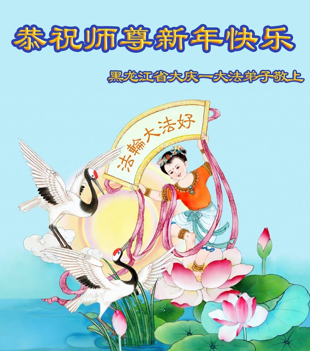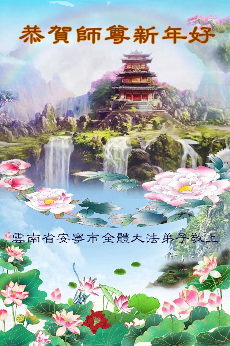 以下是部份來自中國各省、市、地區的學法煉功小組、講真相小組、資料點大法弟子們敬致師尊的新年賀詞賀卡: