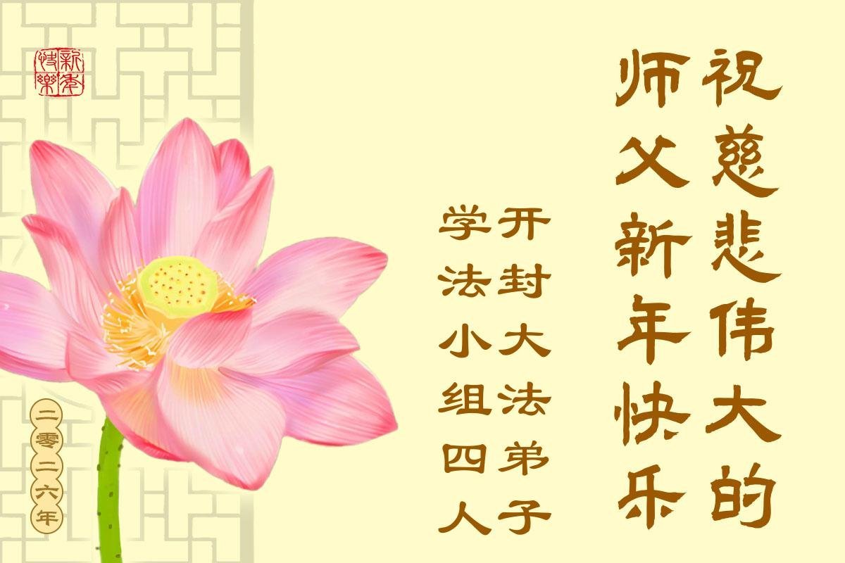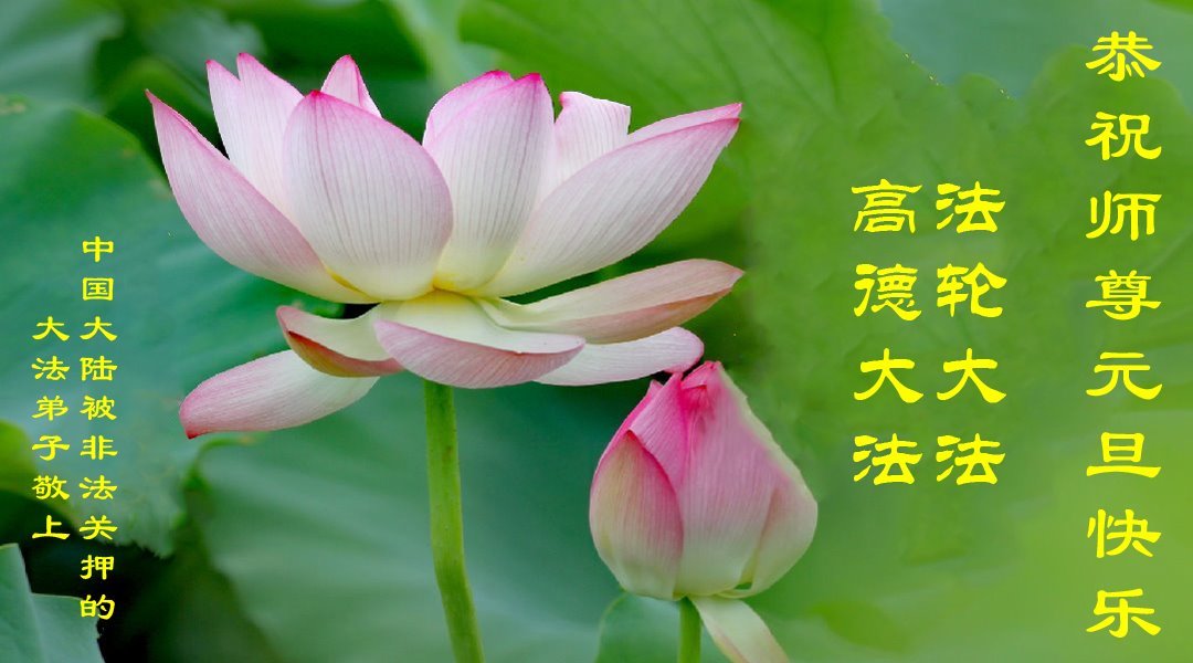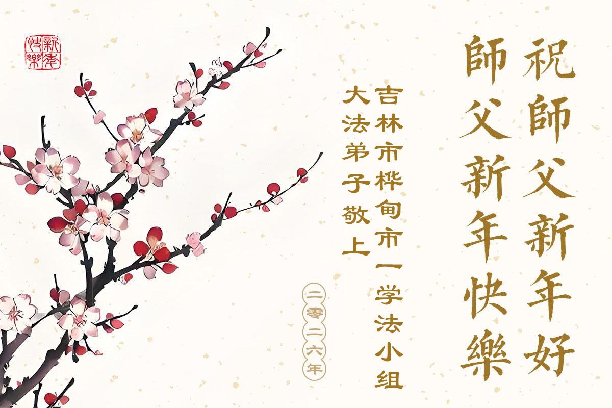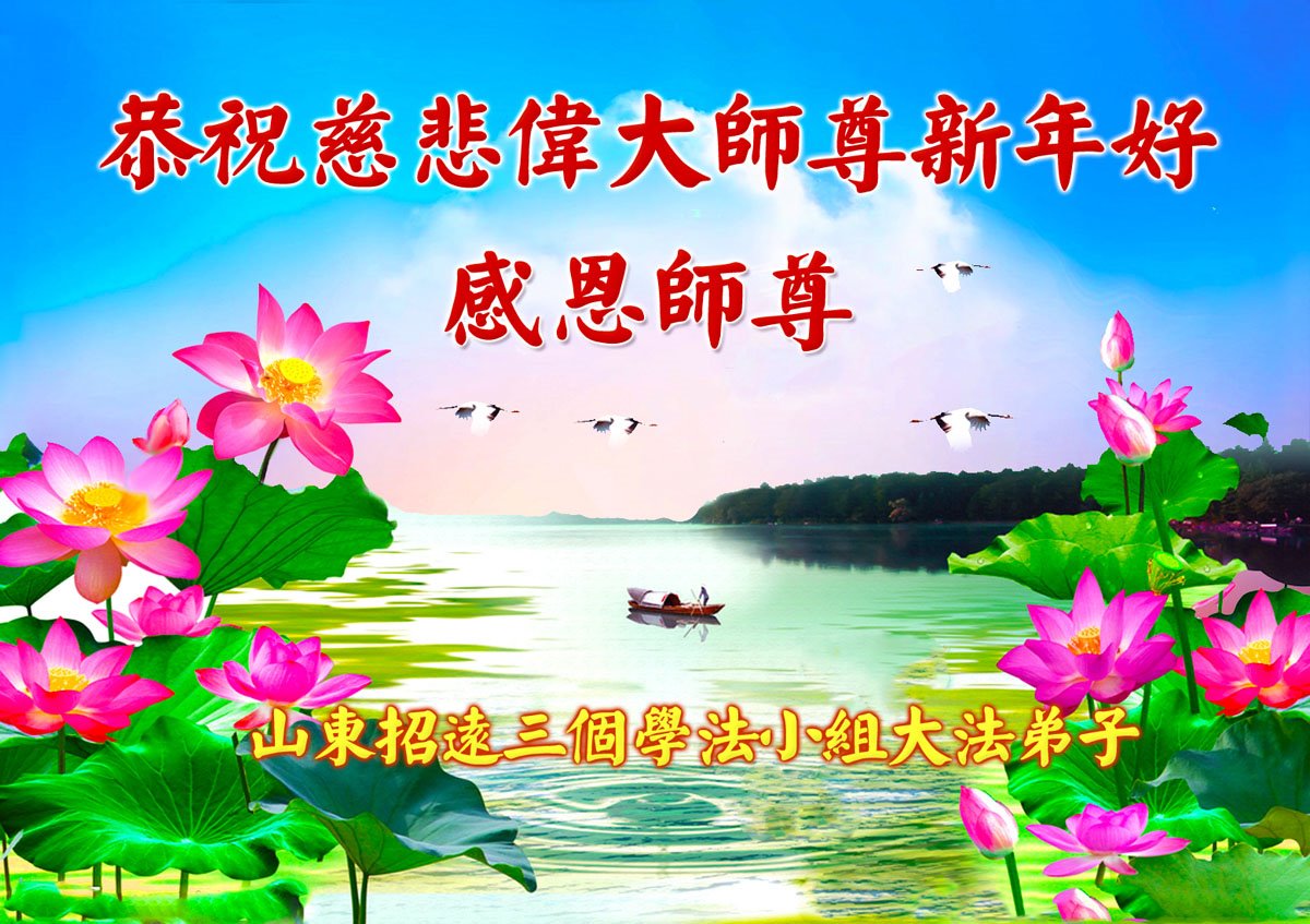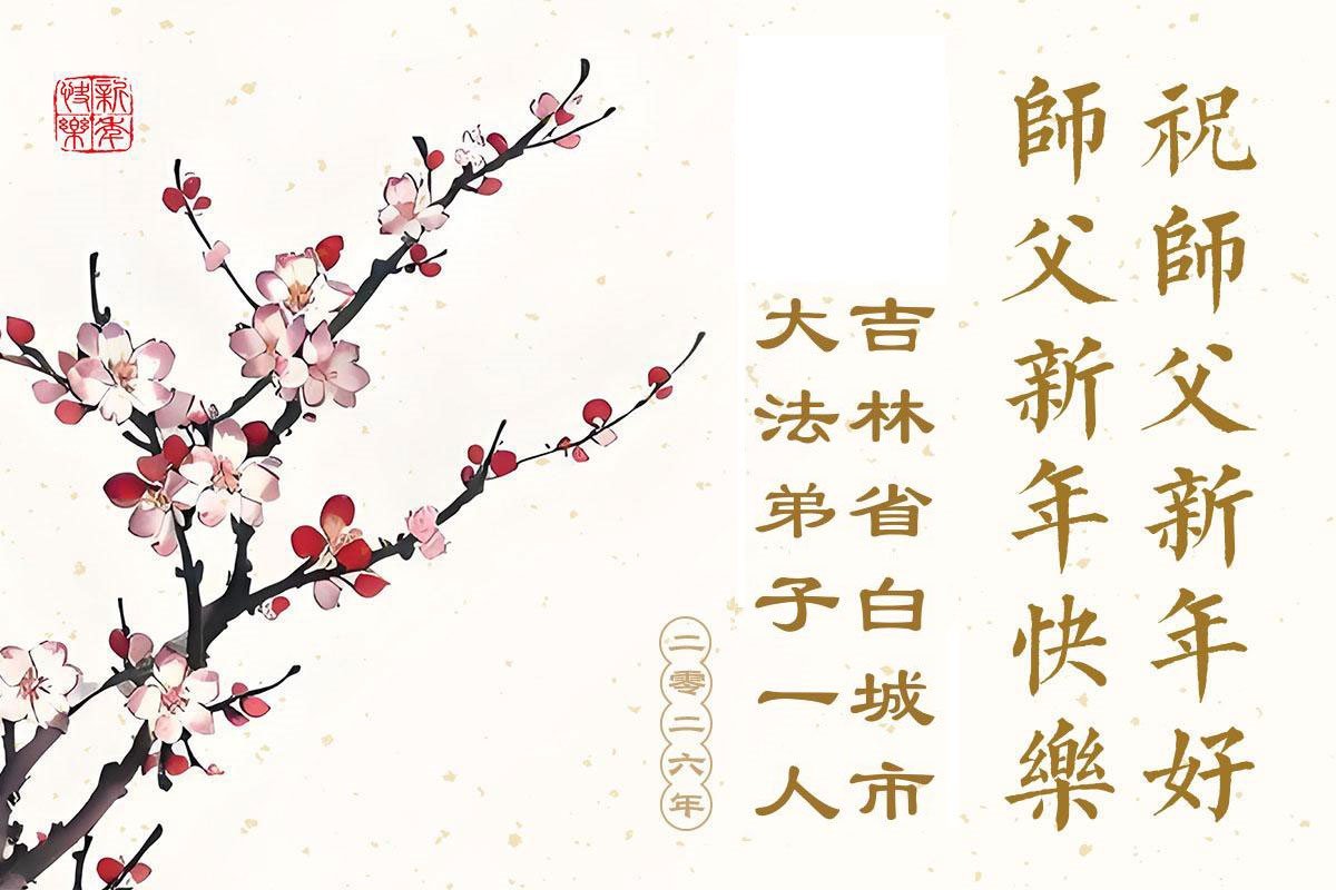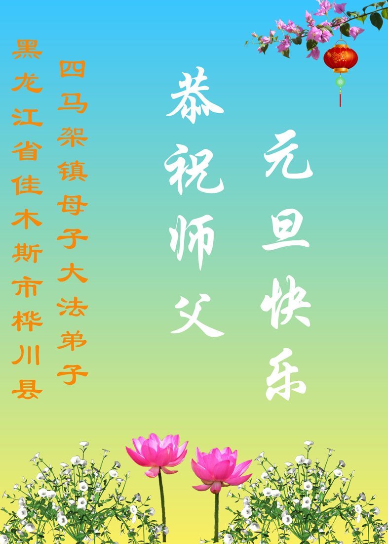 以下是部份來自中國各省、市、地區的學法煉功小組、講真相小組、資料點大法弟子們敬致師尊的新年賀詞賀卡: