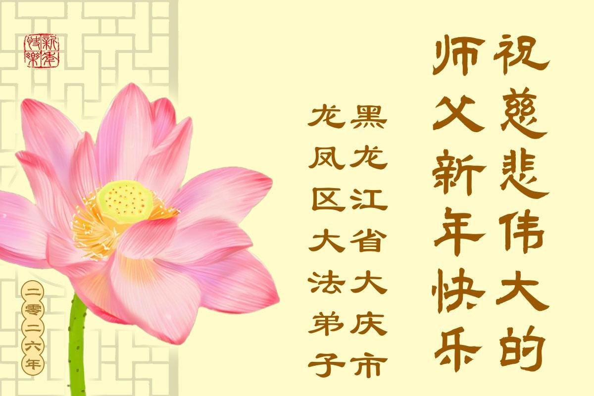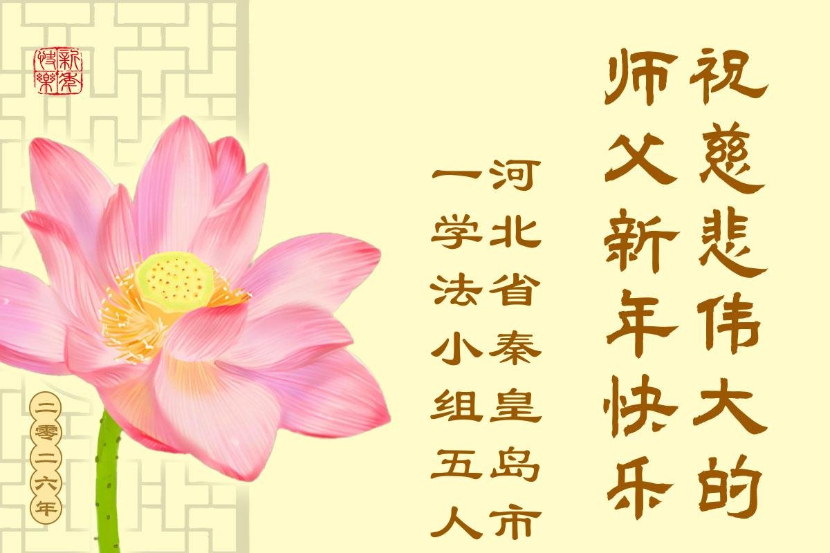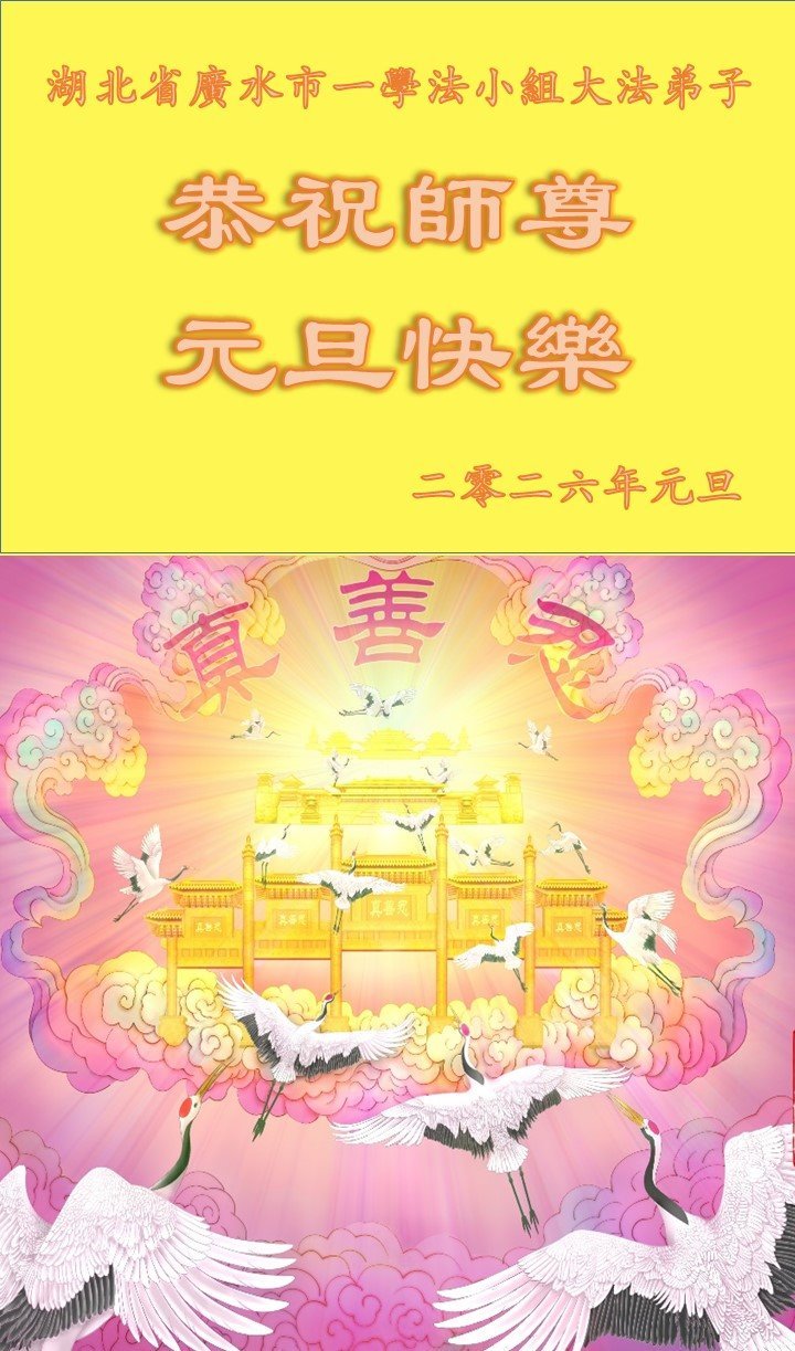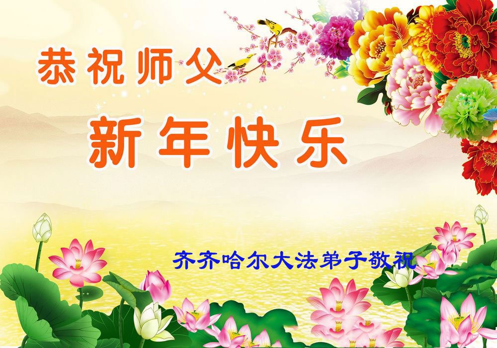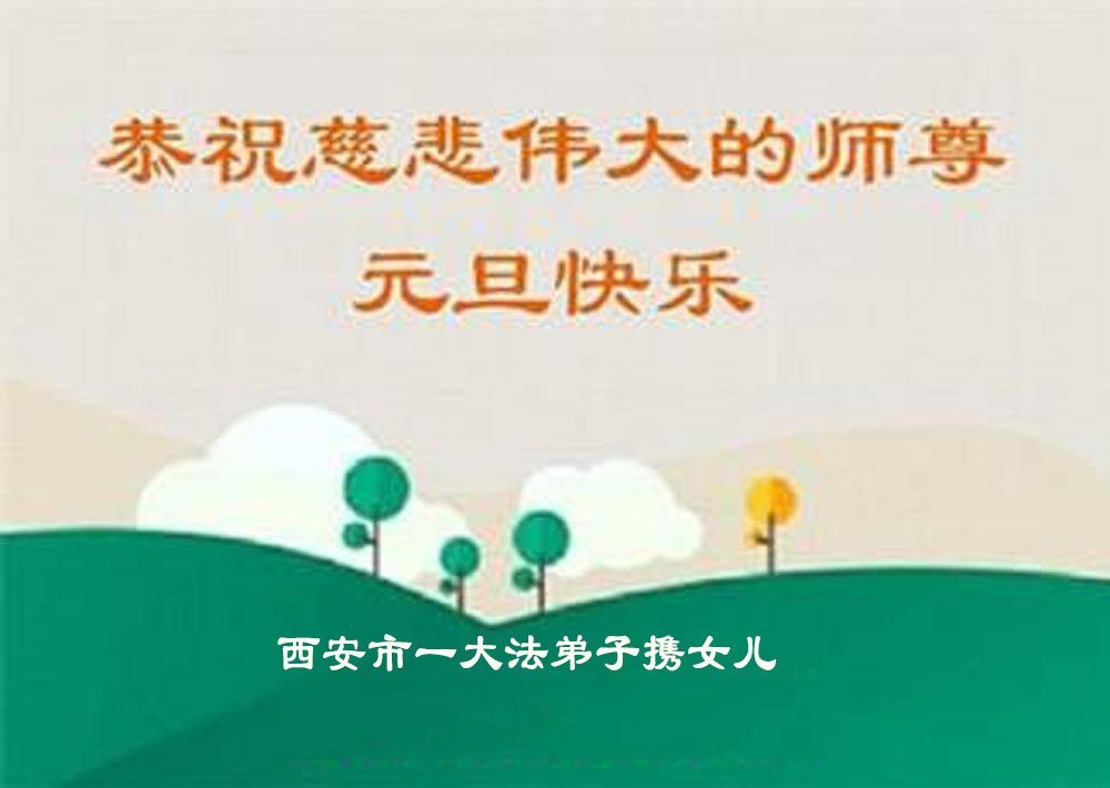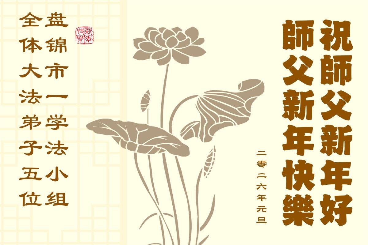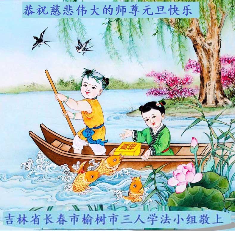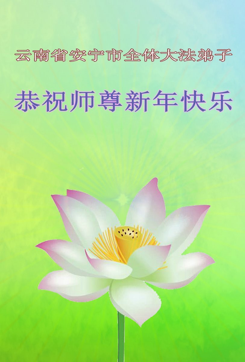 以下是部份來自中國各省、市、地區的學法煉功小組、講真相小組、資料點大法弟子們敬致師尊的新年賀詞賀卡: