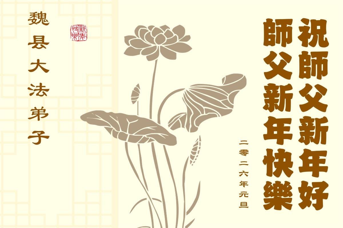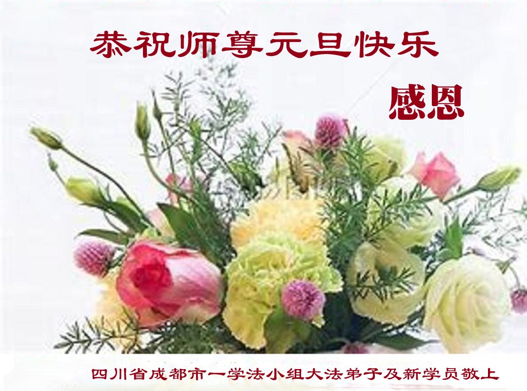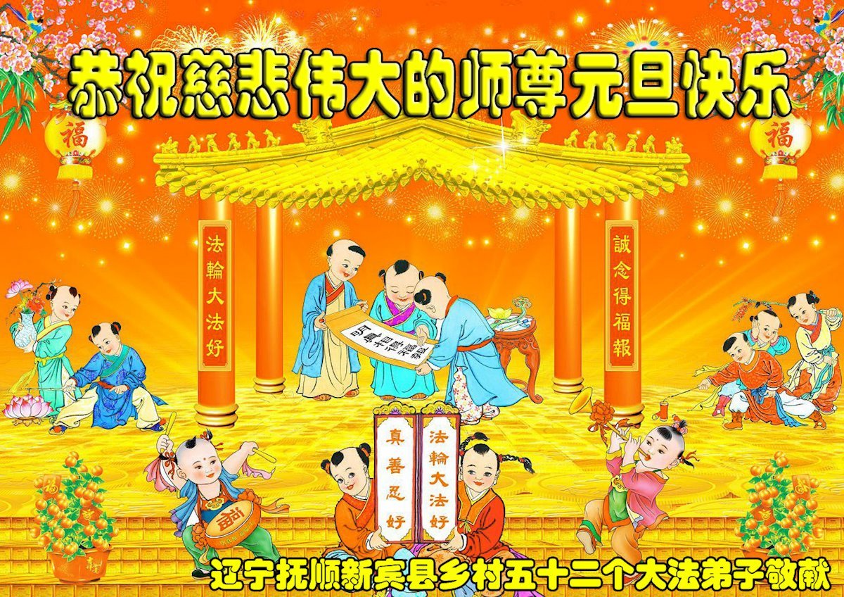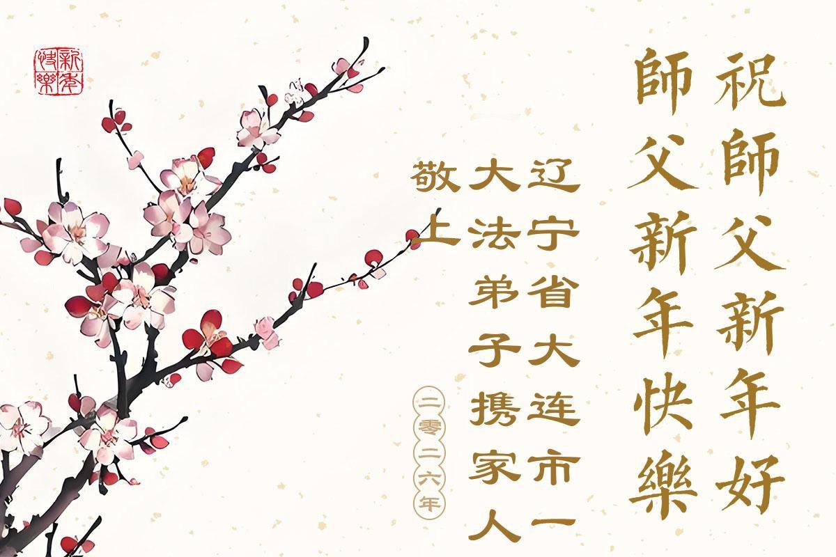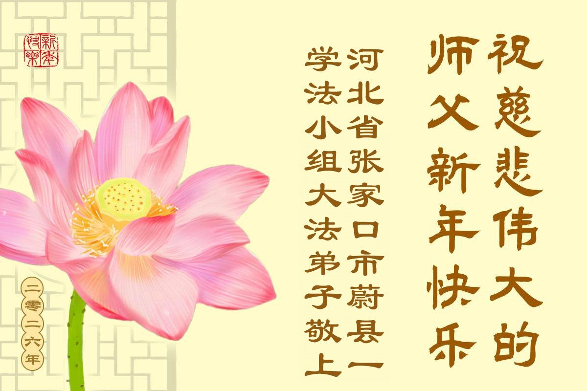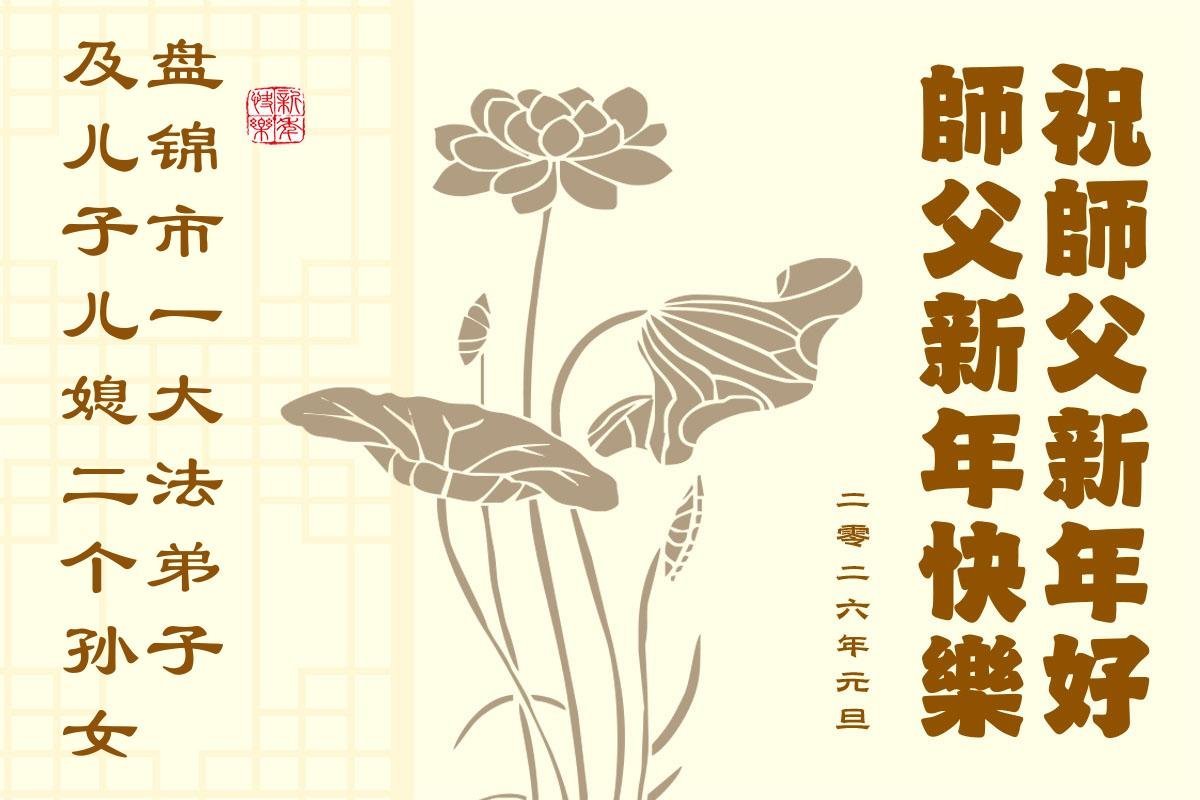 以下是部份來自中國各省、市、地區的學法煉功小組、講真相小組、資料點大法弟子們敬致師尊的新年賀詞賀卡: