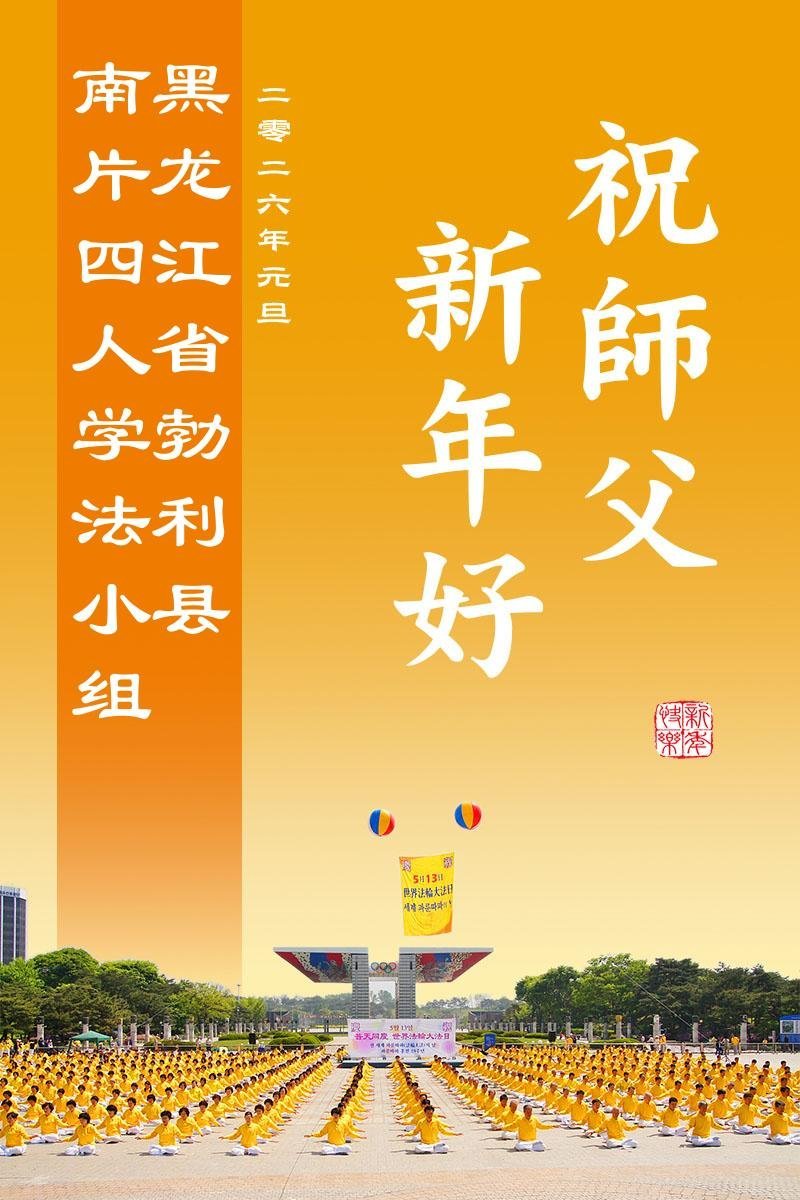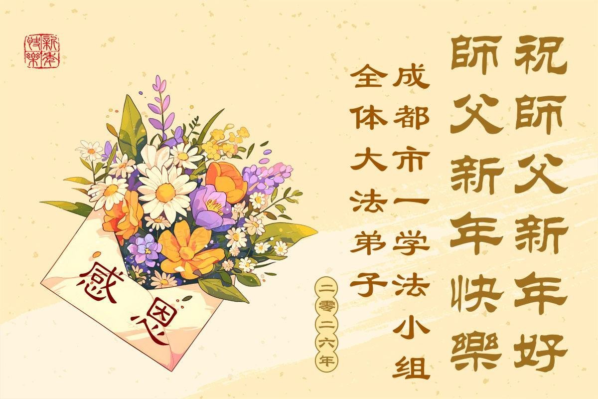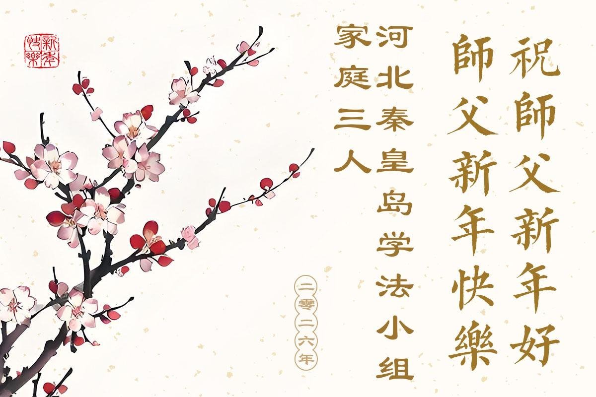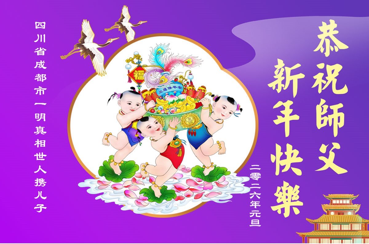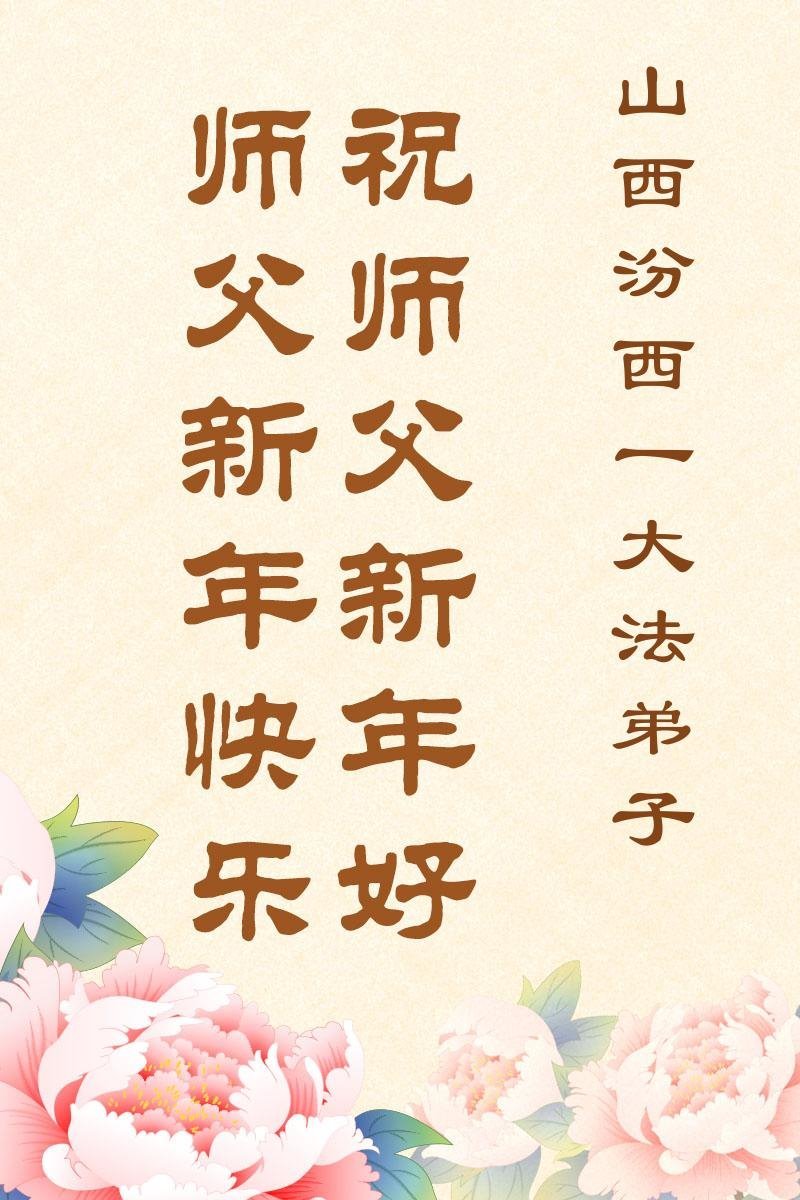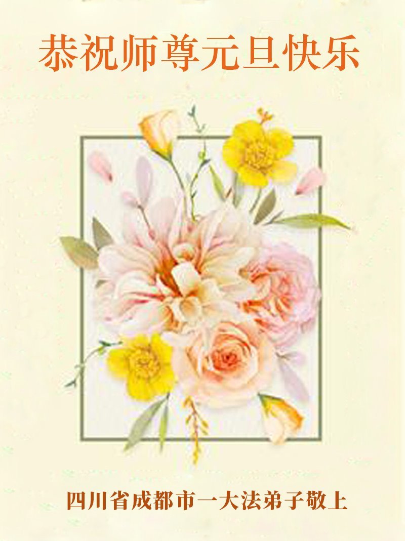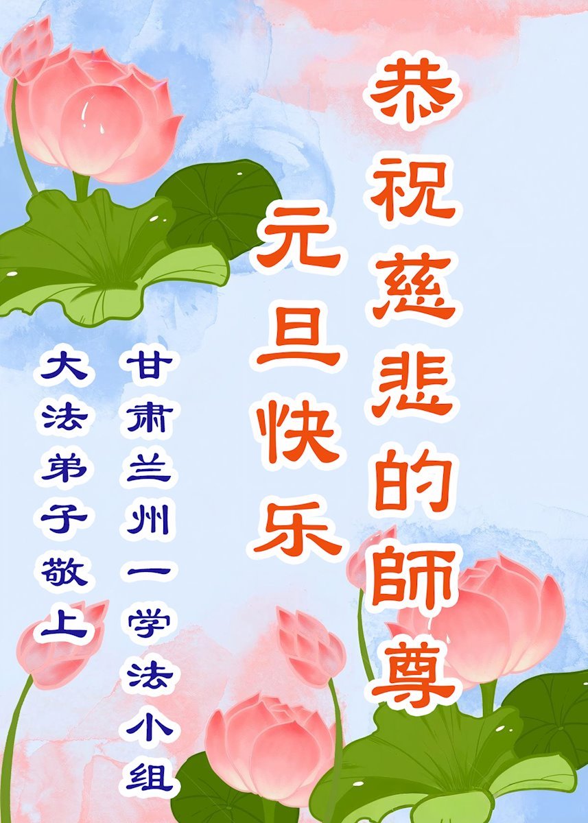 以下是部份來自中國各省、市、地區的學法煉功小組、講真相小組、資料點大法弟子們敬致師尊的新年賀詞賀卡: