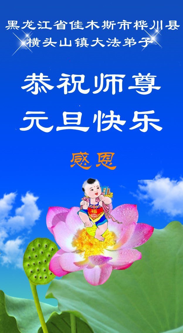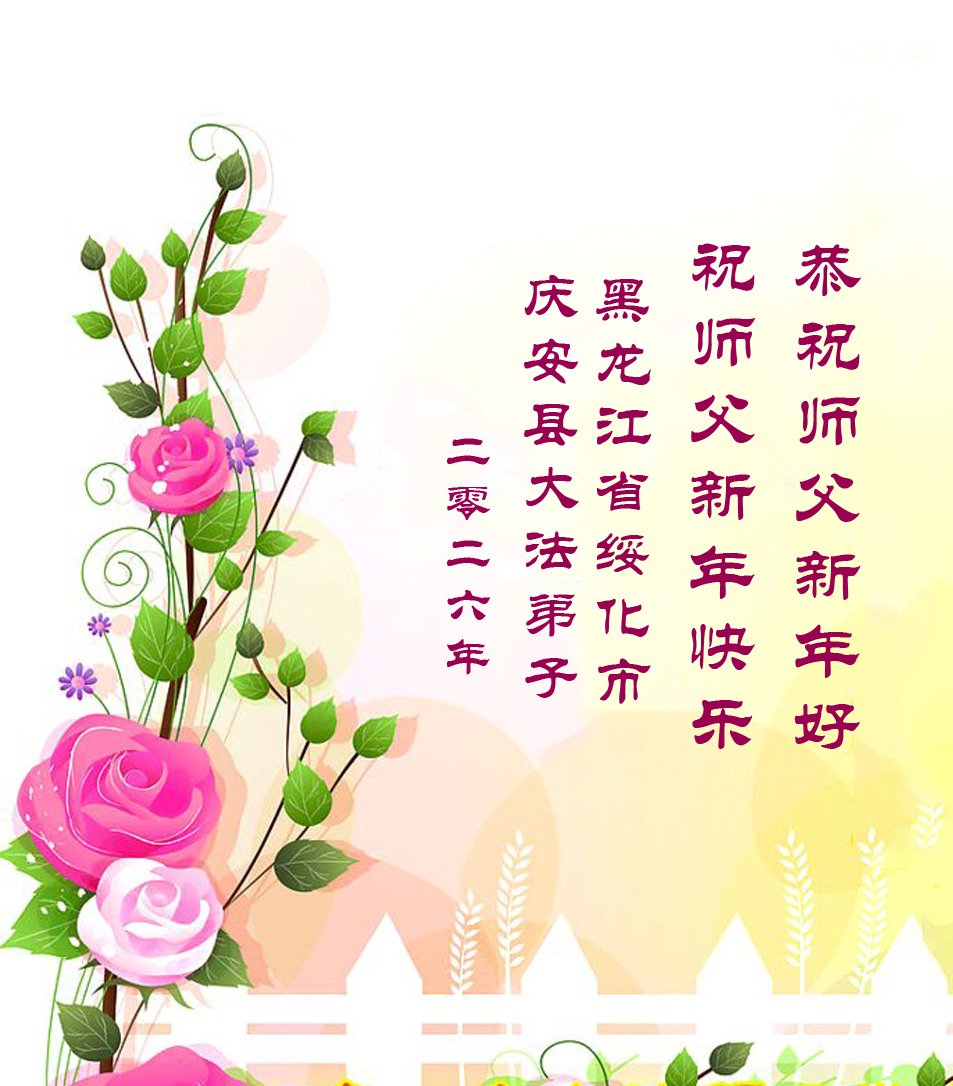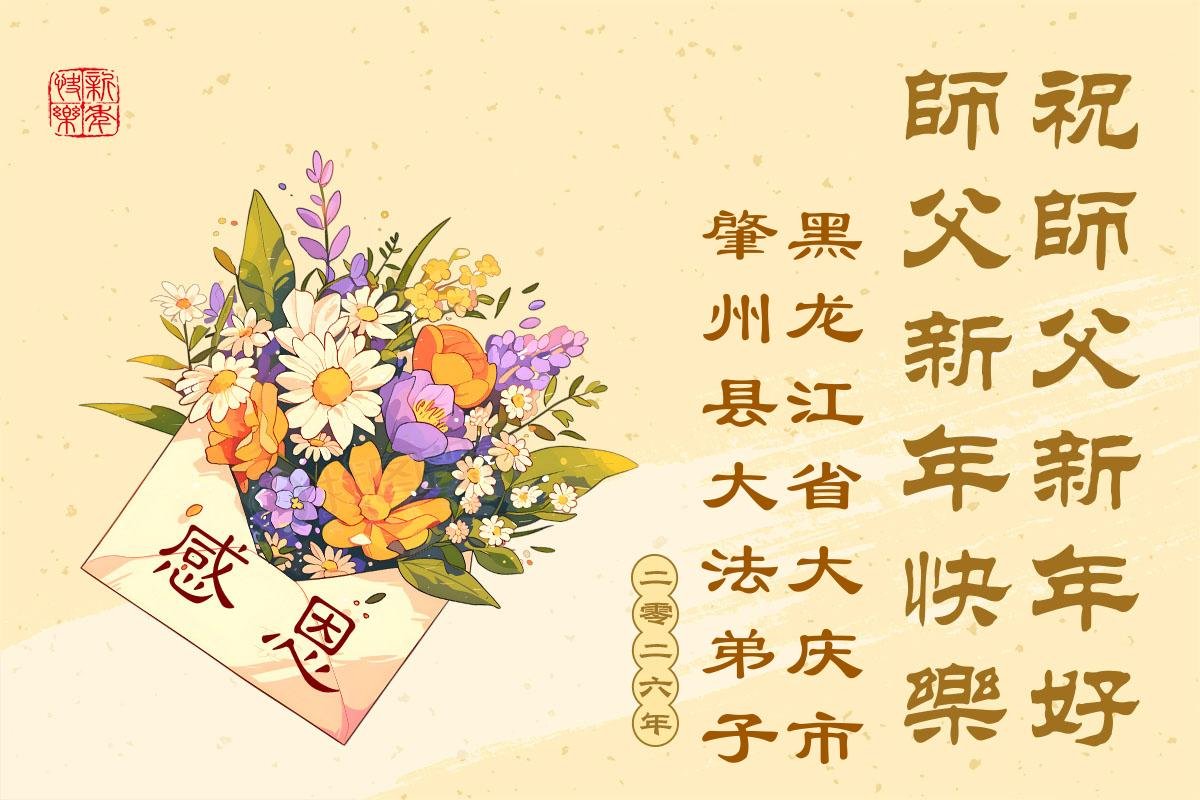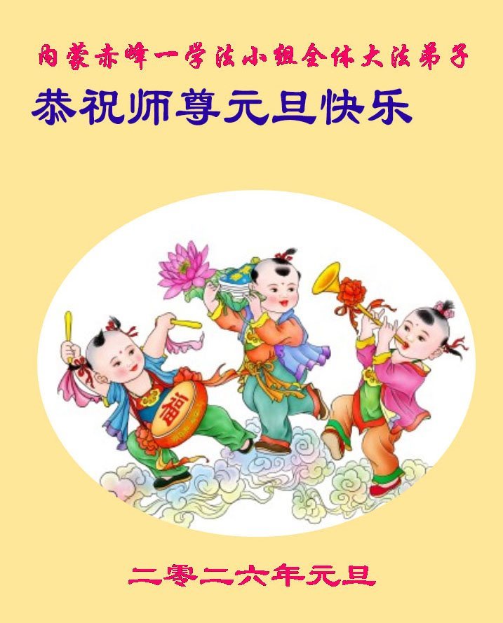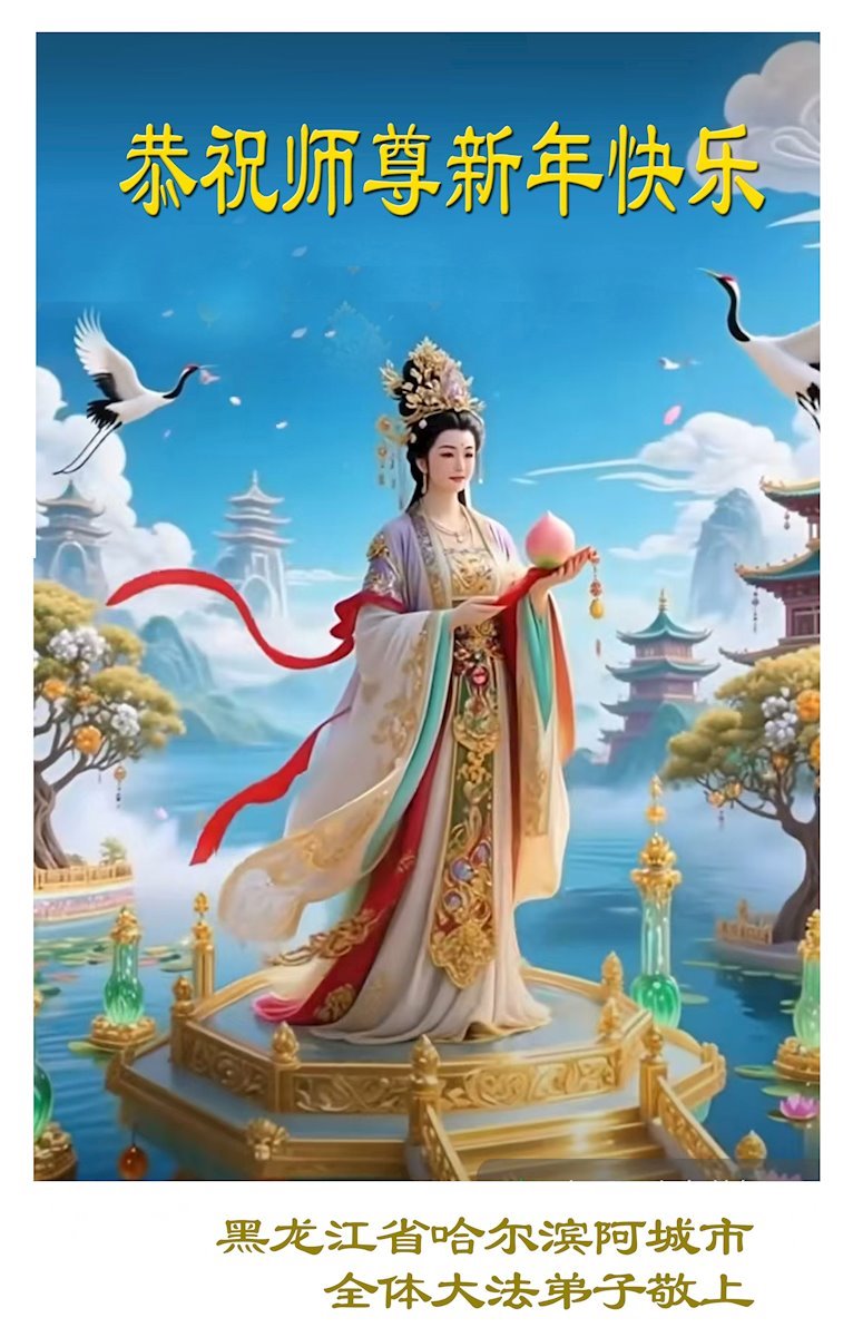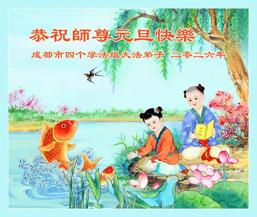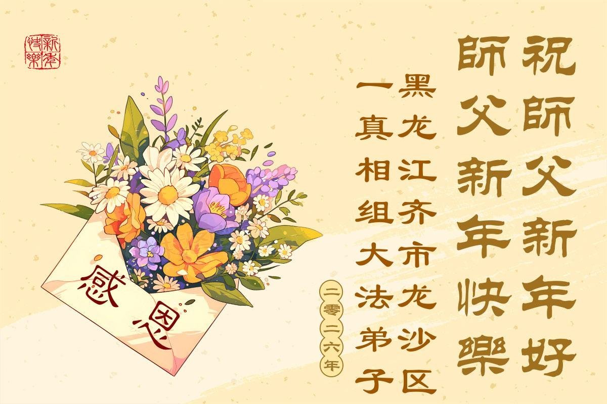 以下是部份來自中國各省、市、地區的學法煉功小組、講真相小組、資料點大法弟子們敬致師尊的新年賀詞賀卡: