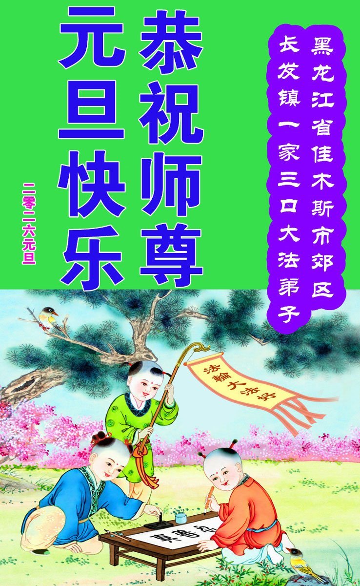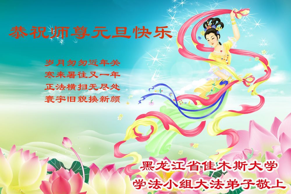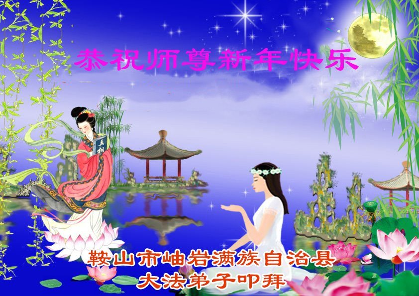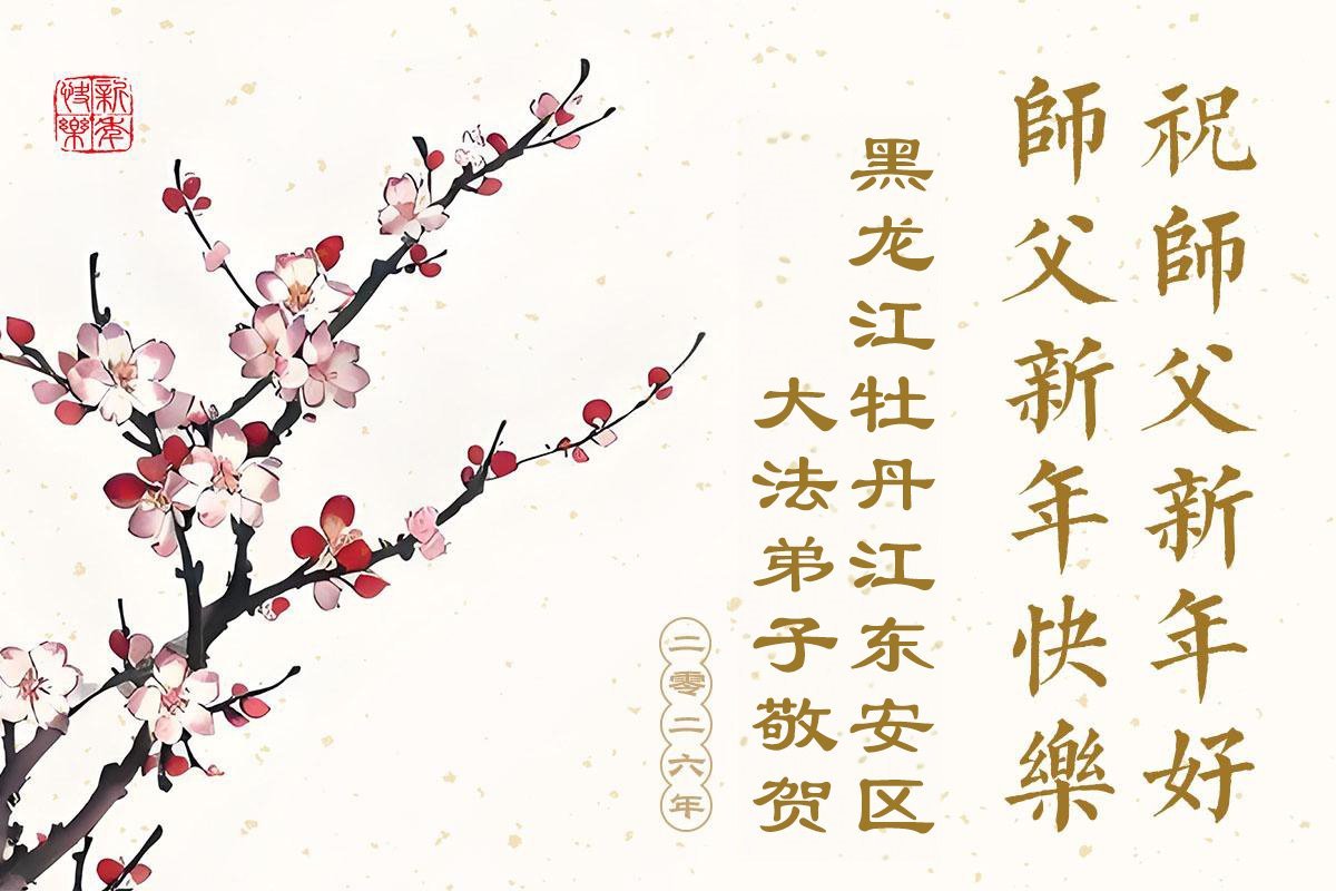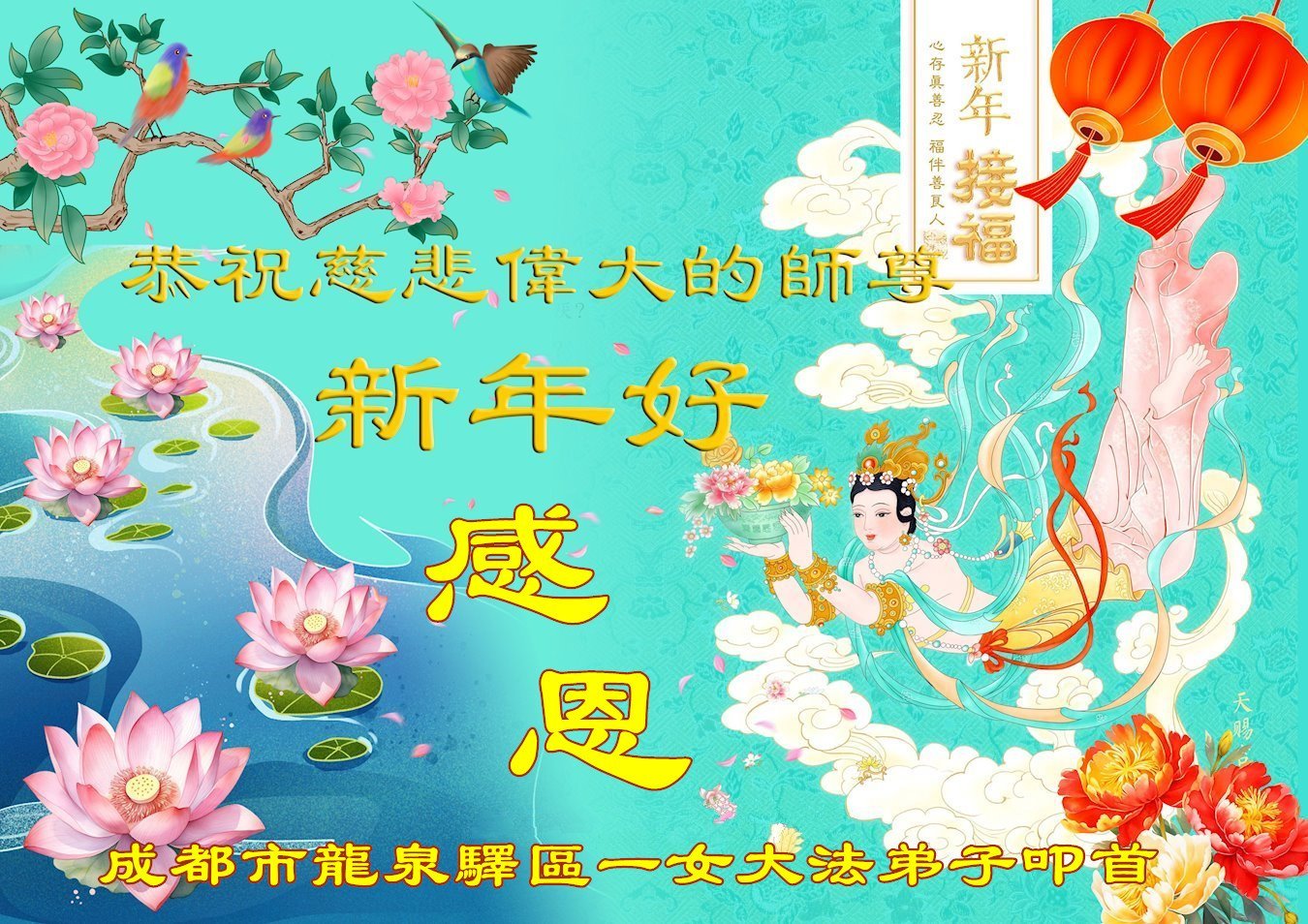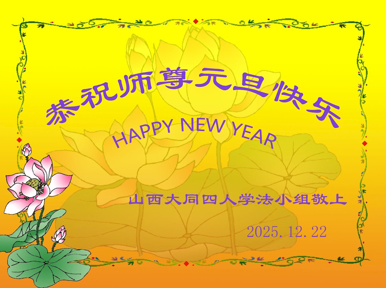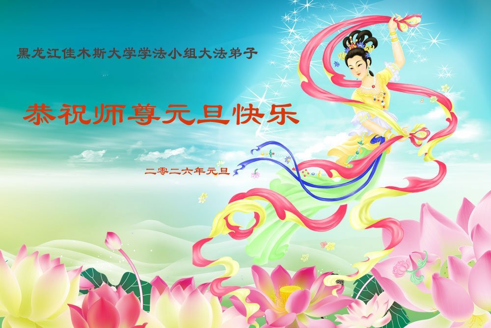 以下是部份來自中國各省、市、地區的學法煉功小組、講真相小組、資料點大法弟子們敬致師尊的新年賀詞賀卡: