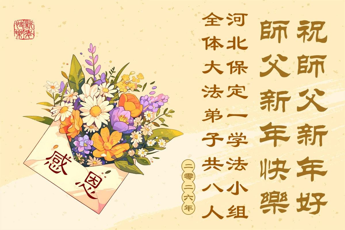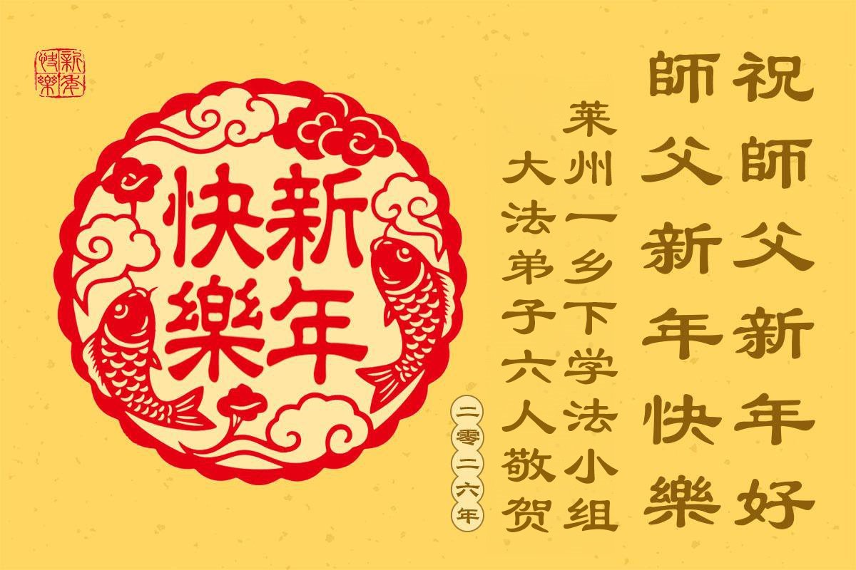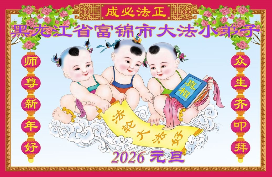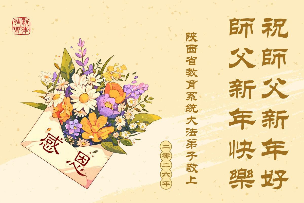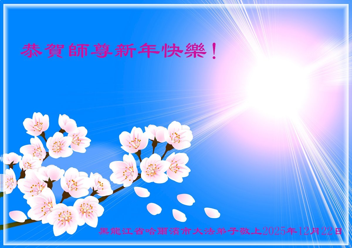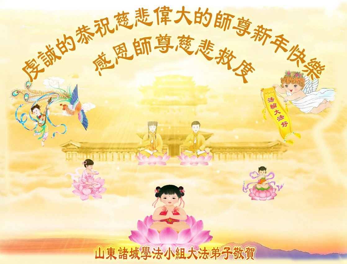 以下是部份來自中國各省、市、地區的學法煉功小組、講真相小組、資料點大法弟子們敬致師尊的新年賀詞賀卡: