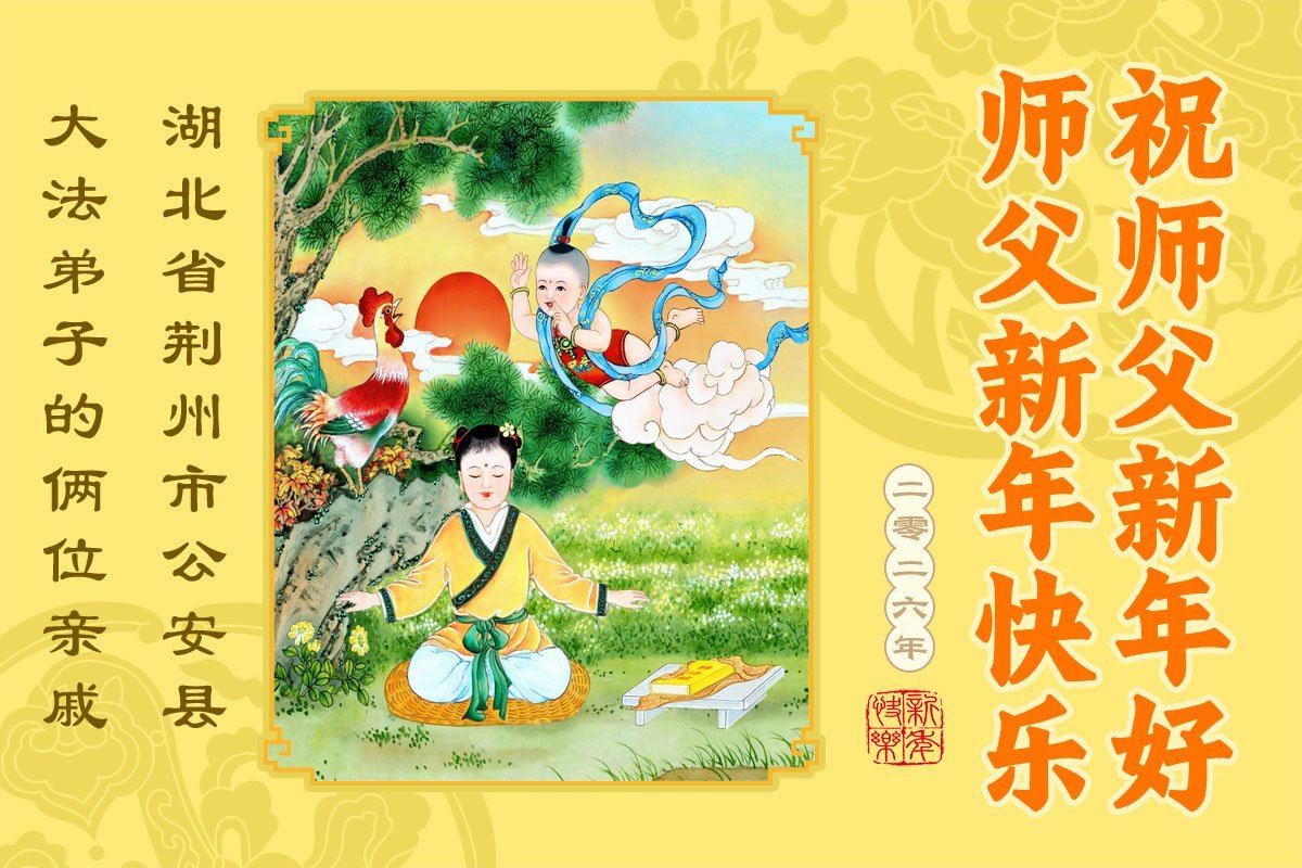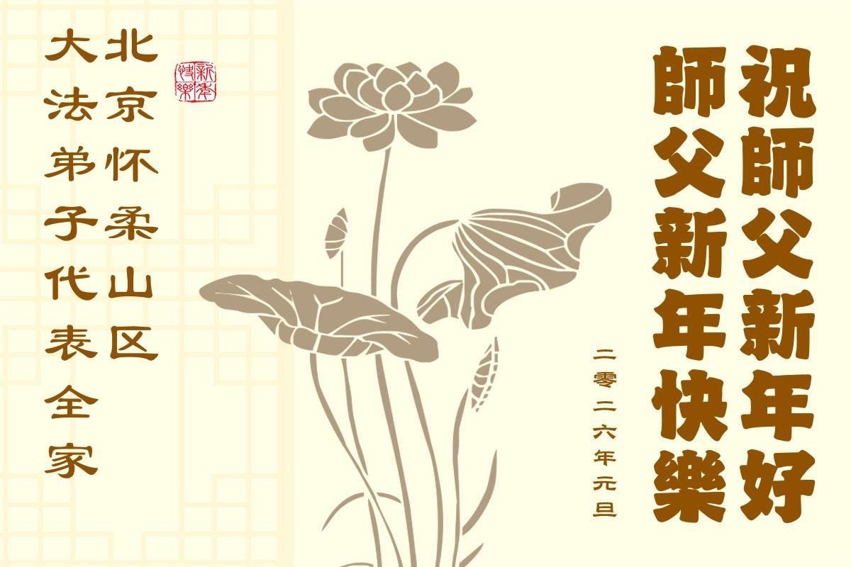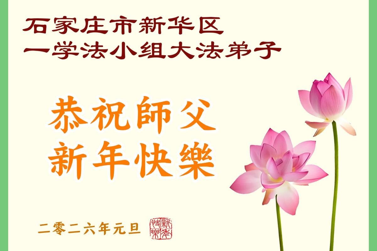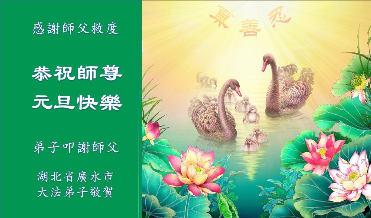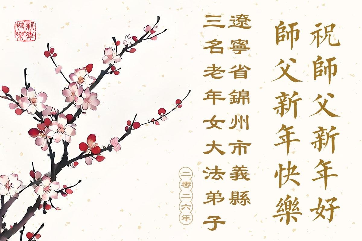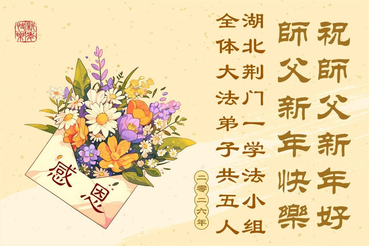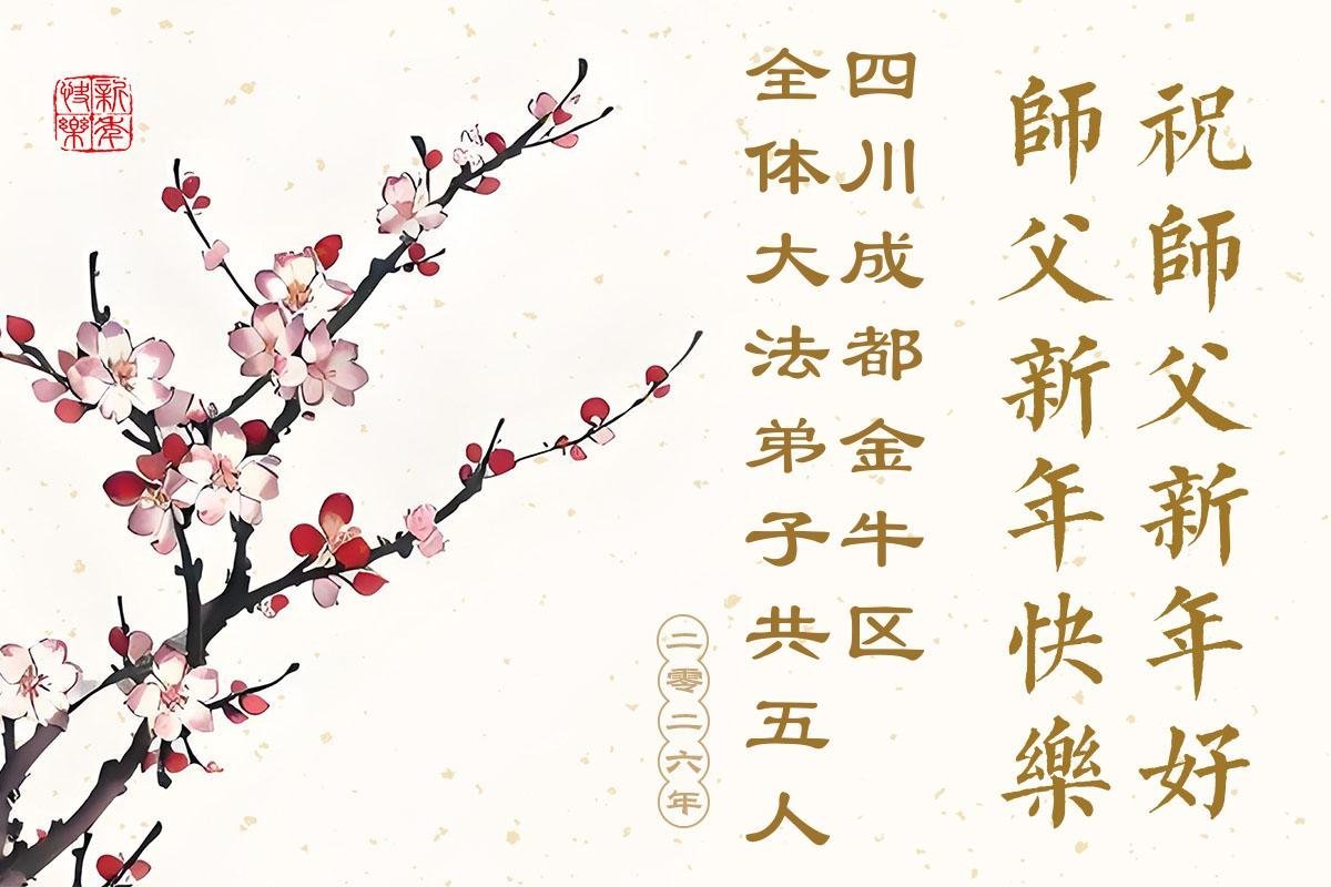 以下是部份來自中國各省、市、地區的學法煉功小組、講真相小組、資料點大法弟子們敬致師尊的新年賀詞賀卡: