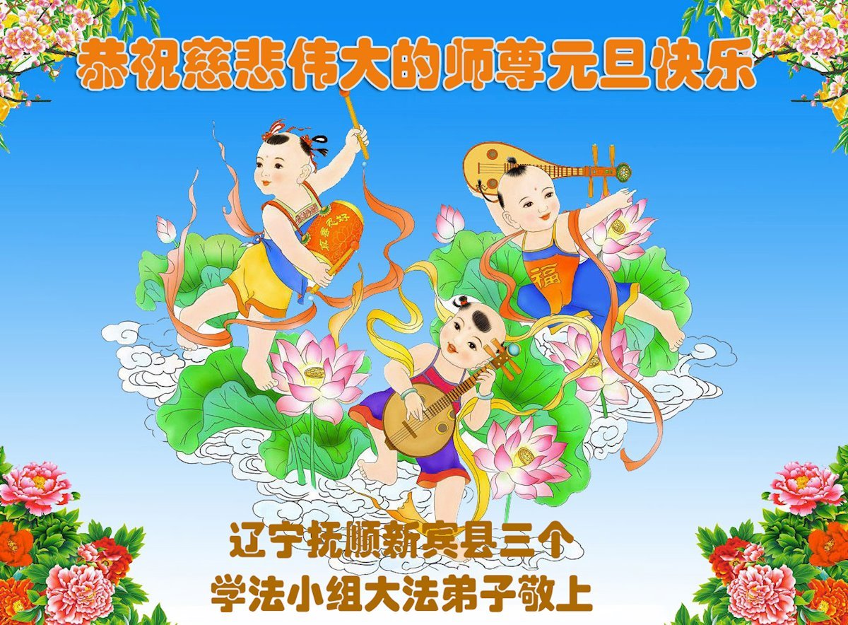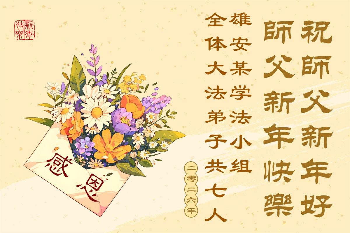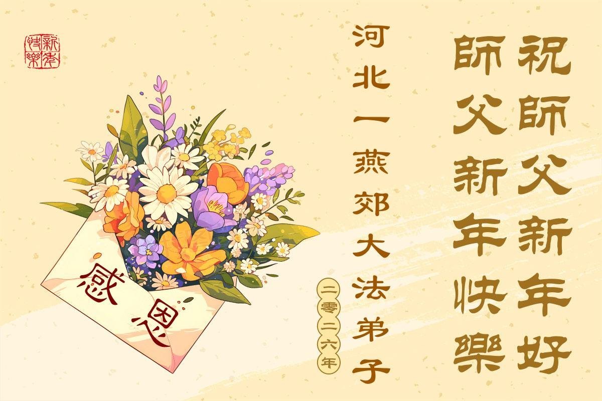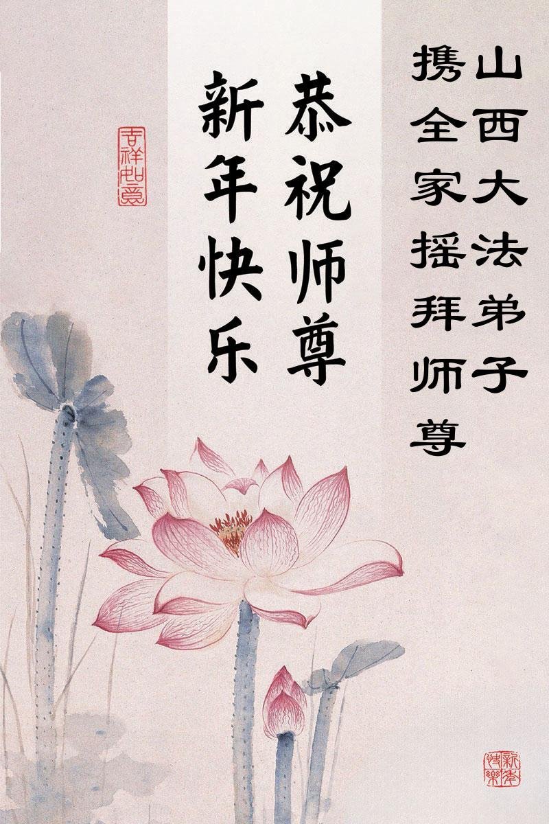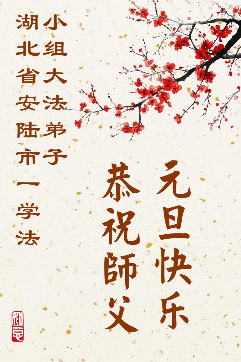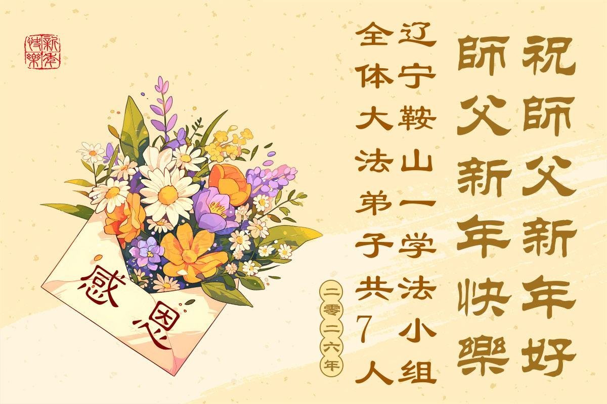 以下是部份來自中國各省、市、地區的學法煉功小組、講真相小組、資料點大法弟子們敬致師尊的新年賀詞賀卡: