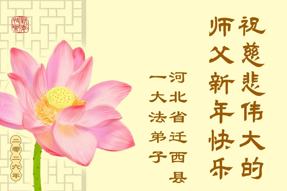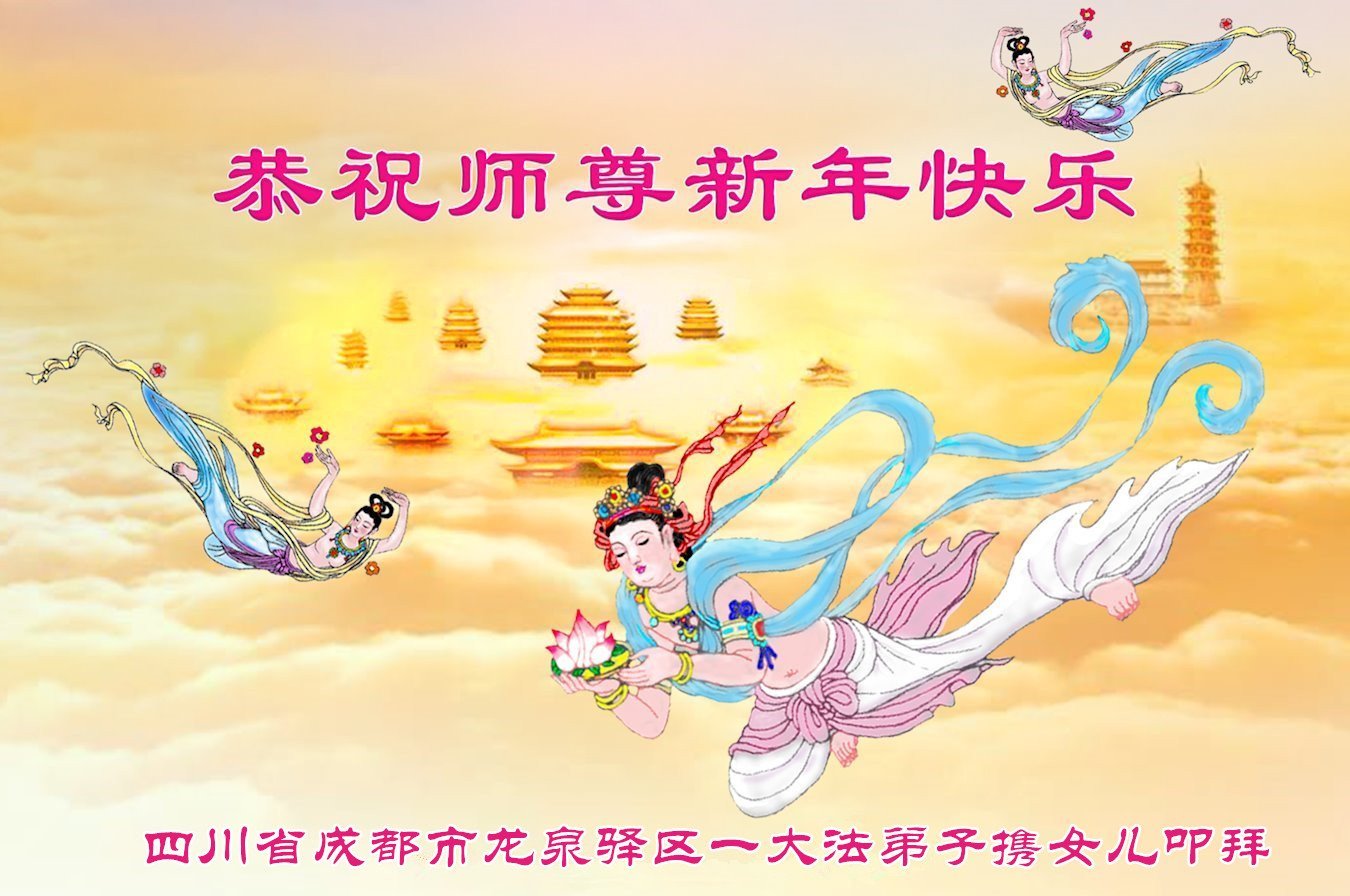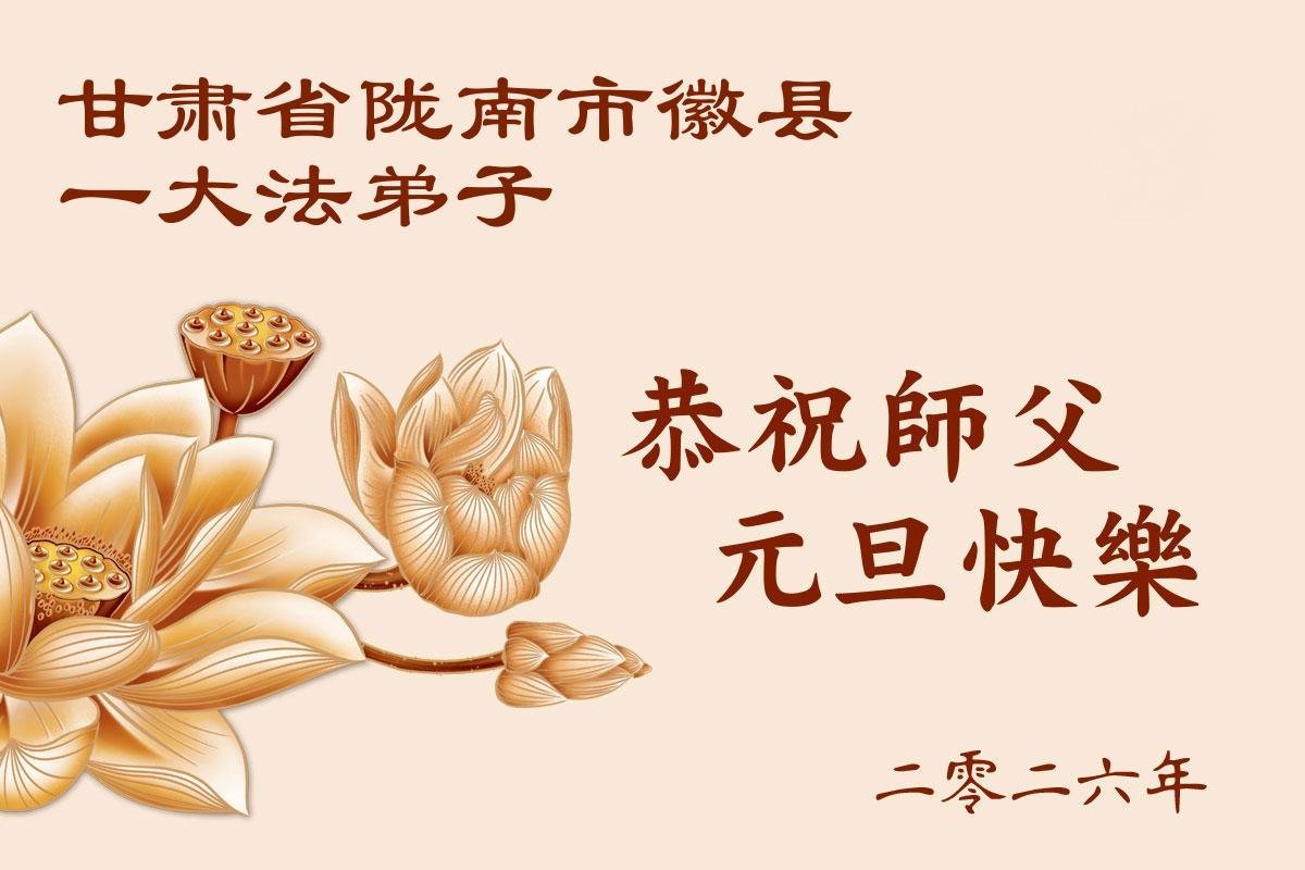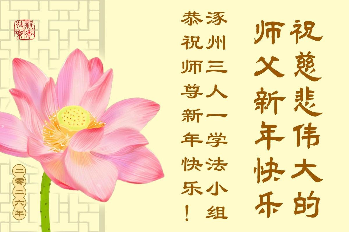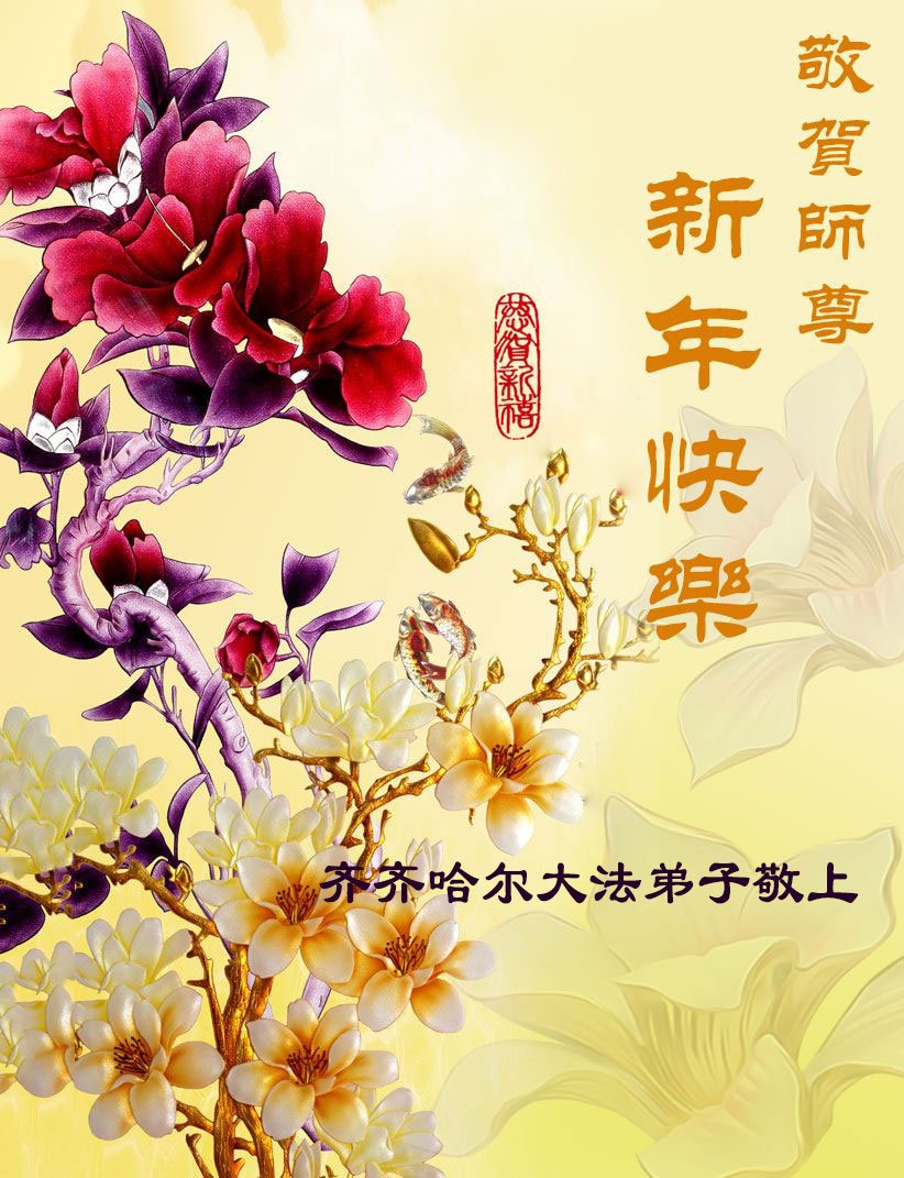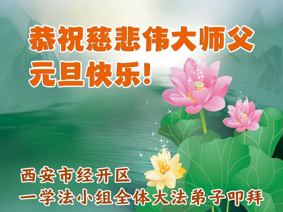 以下是部份來自中國各省、市、地區的學法煉功小組、講真相小組、資料點大法弟子們敬致師尊的新年賀詞賀卡: