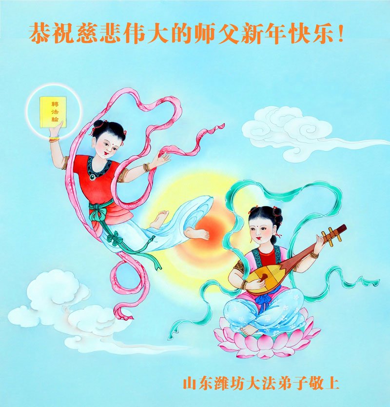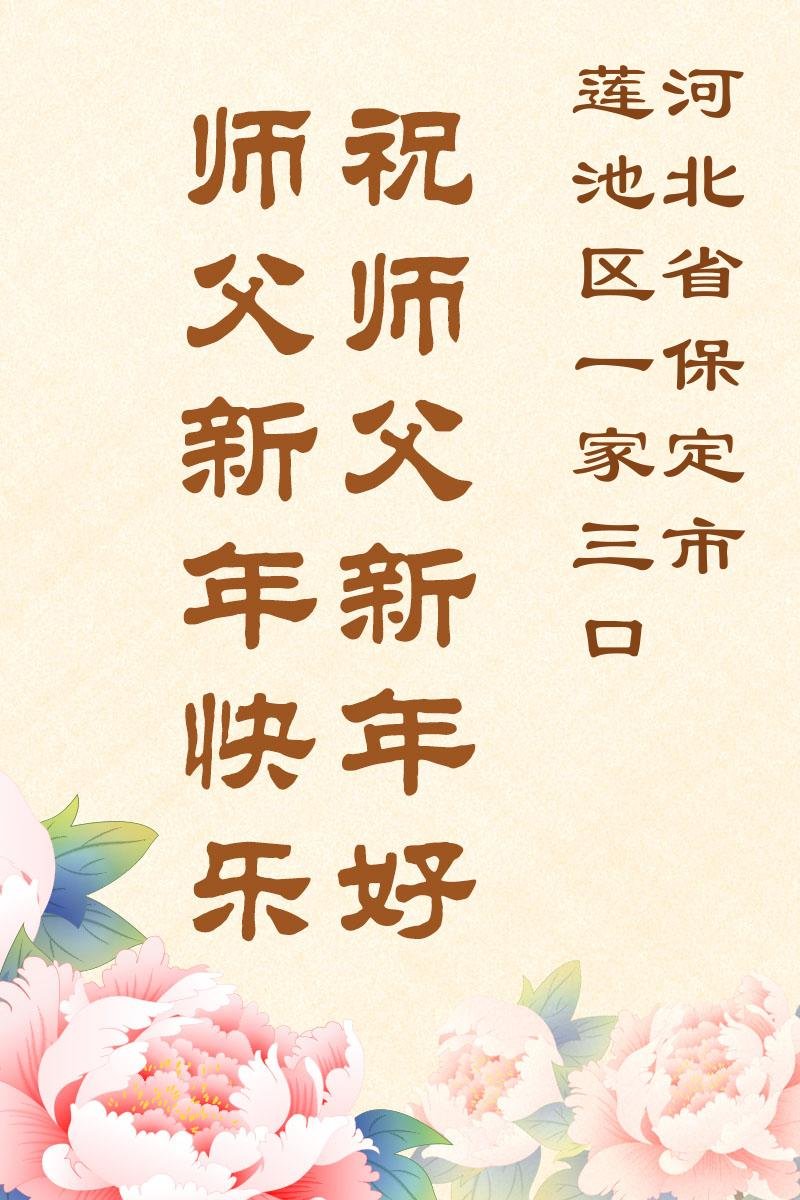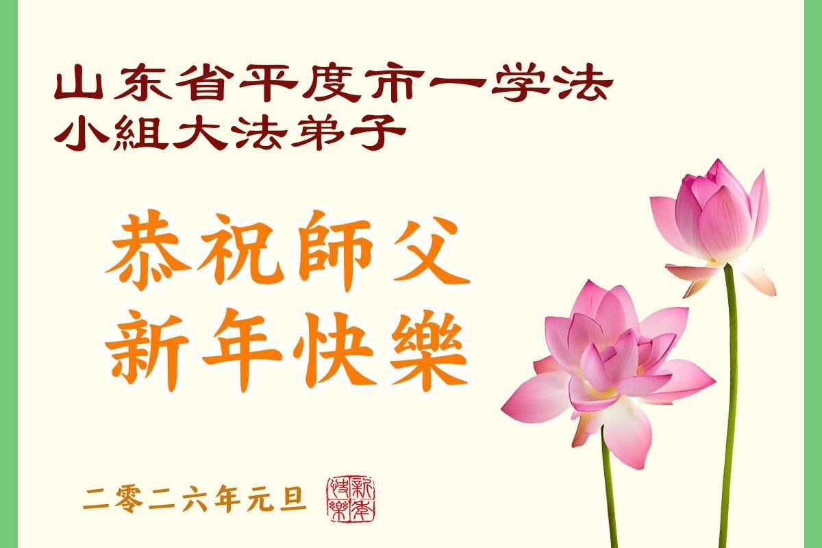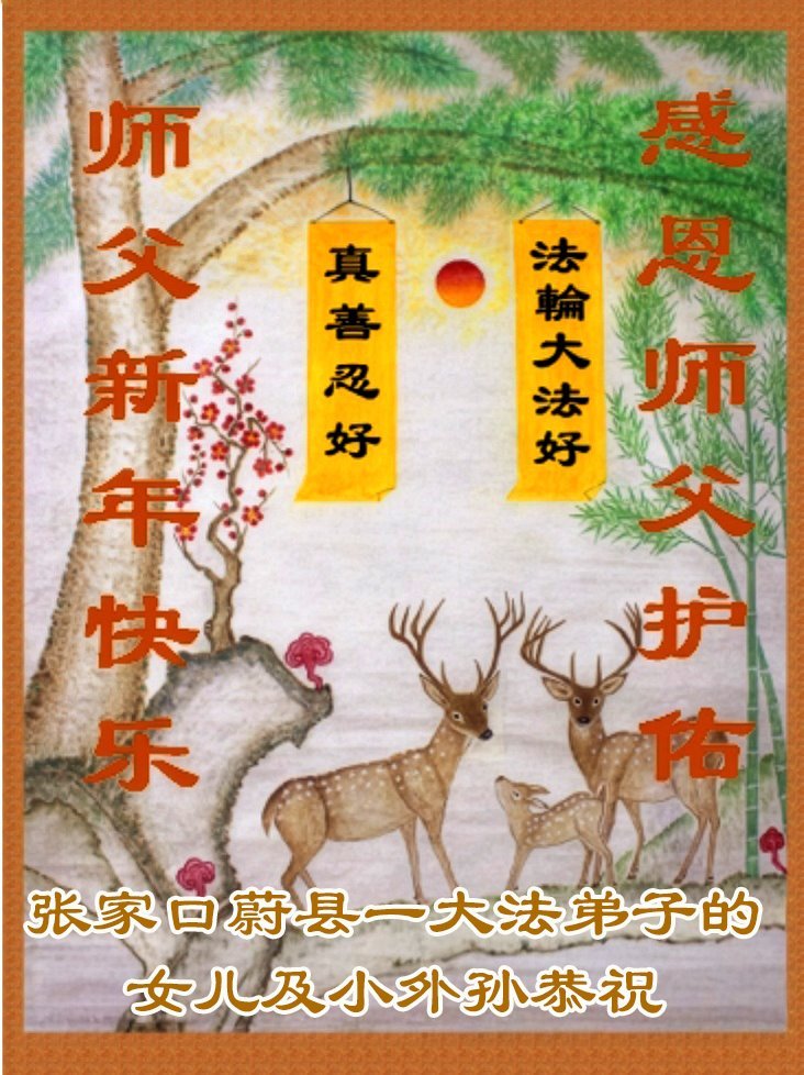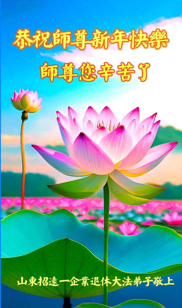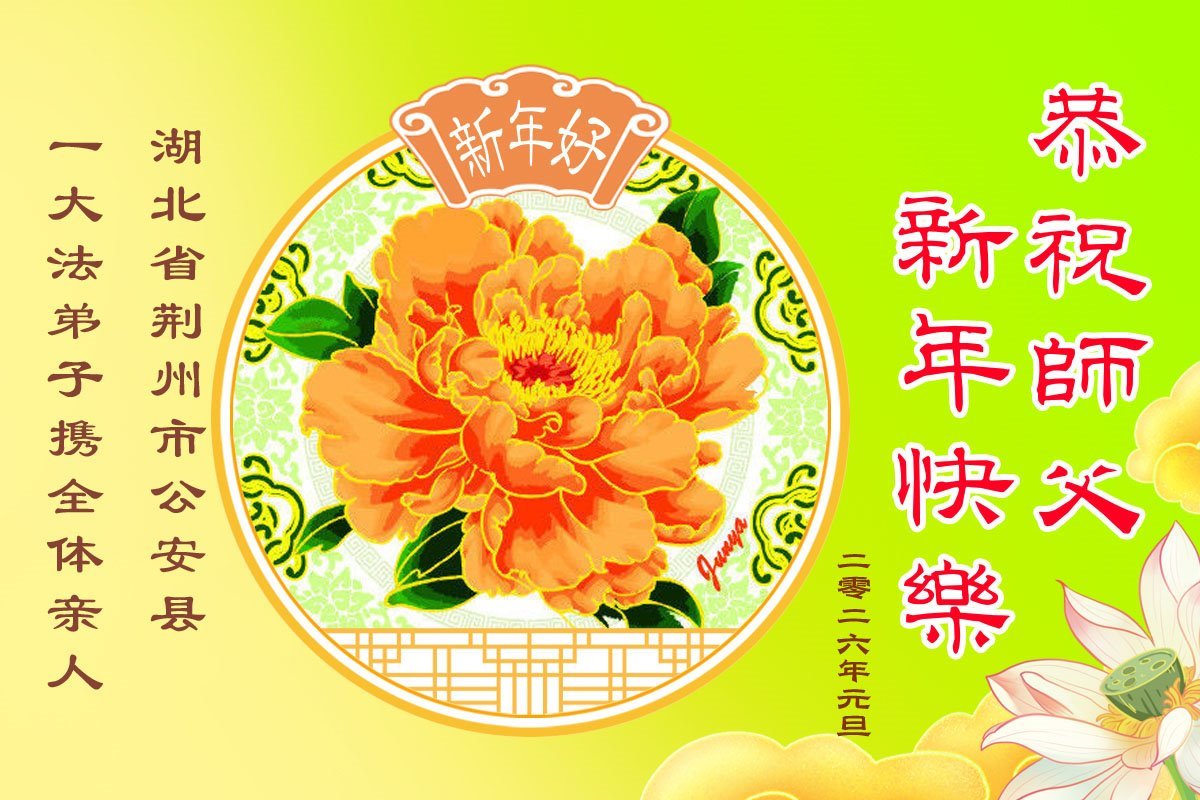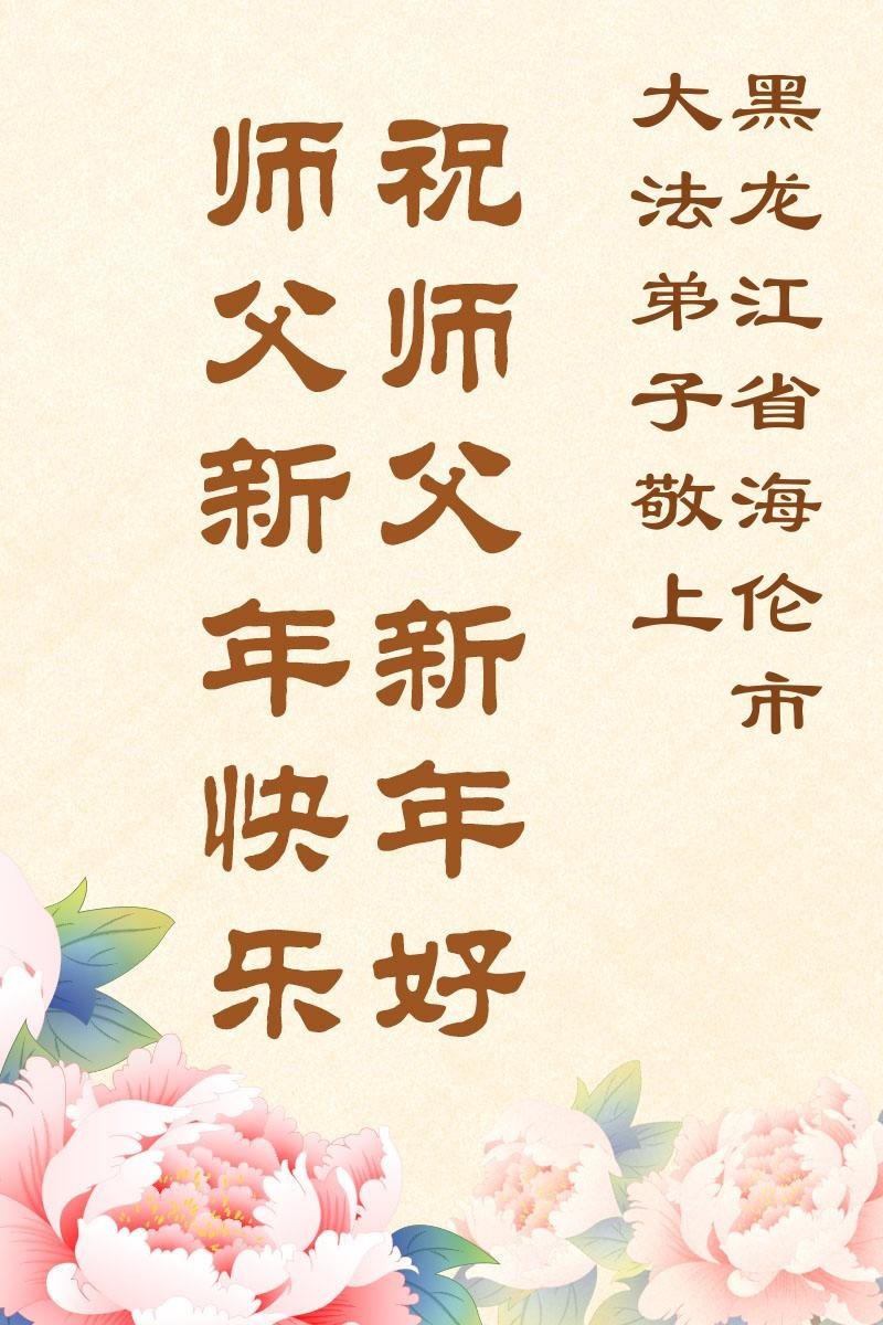 以下是部份來自中國各省、市、地區的學法煉功小組、講真相小組、資料點大法弟子們敬致師尊的新年賀詞賀卡: