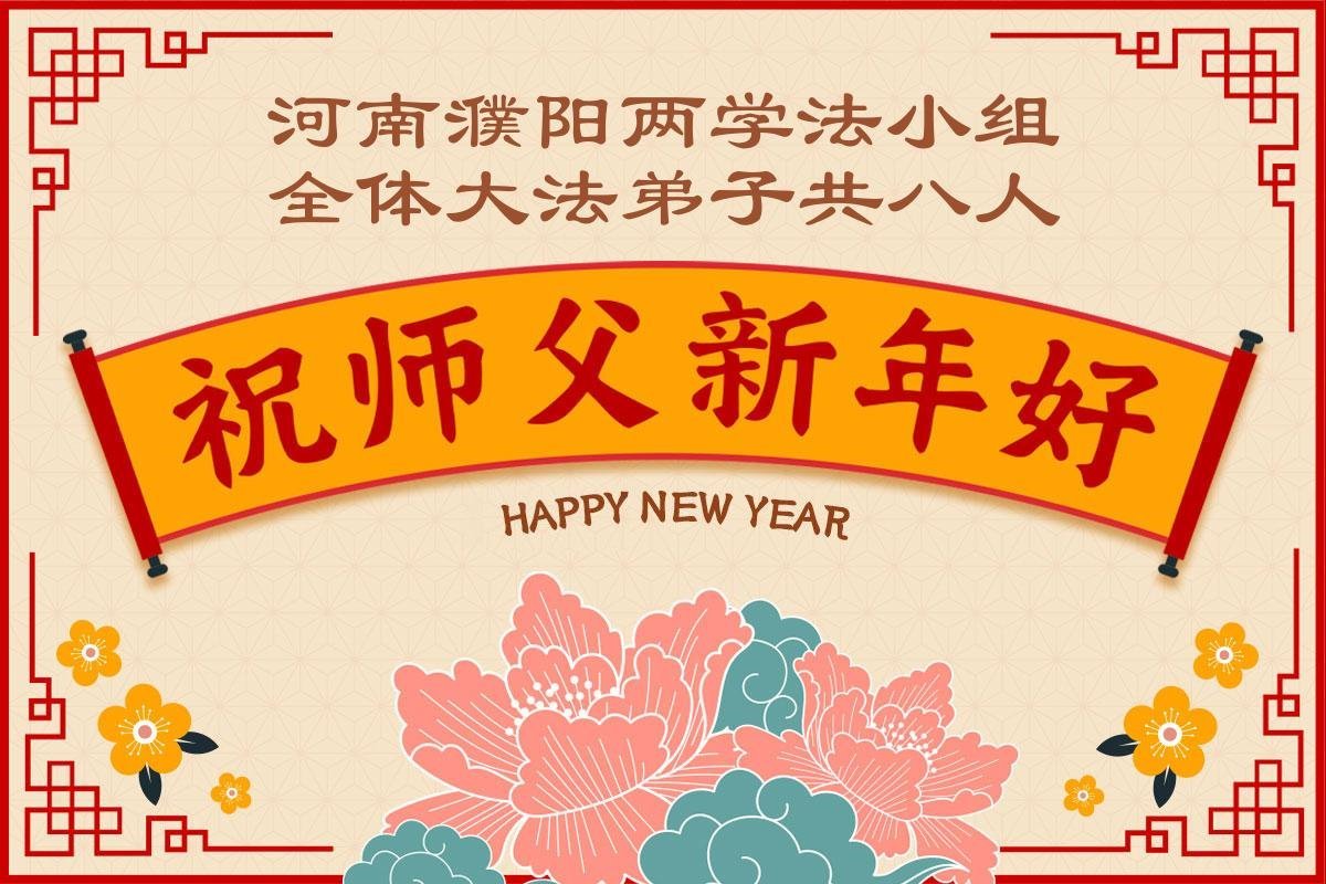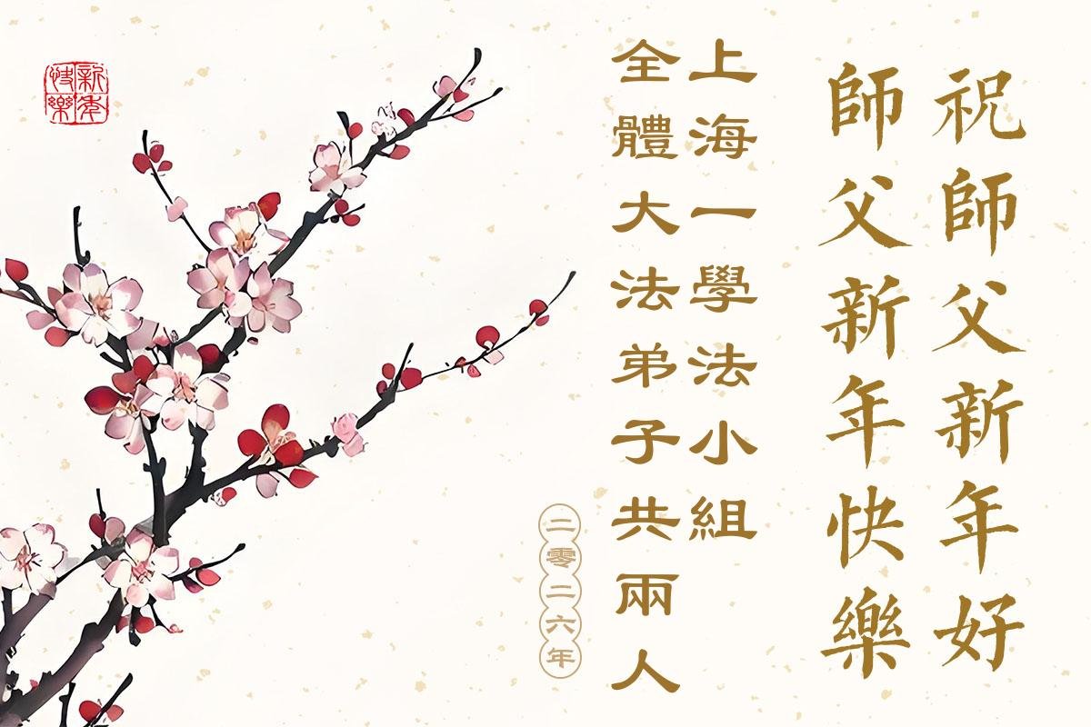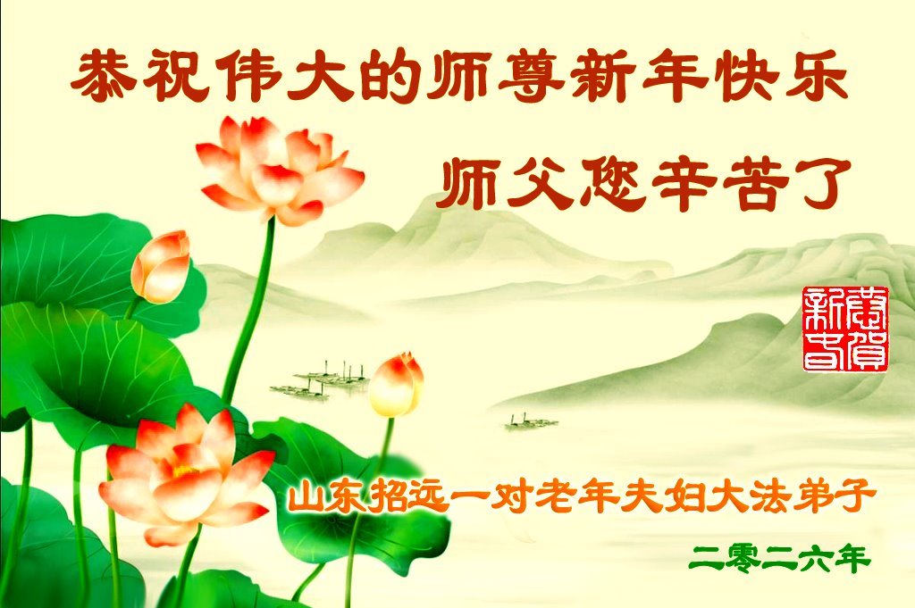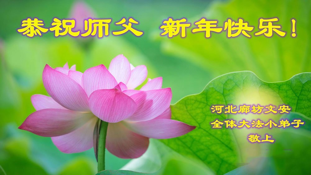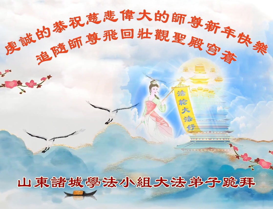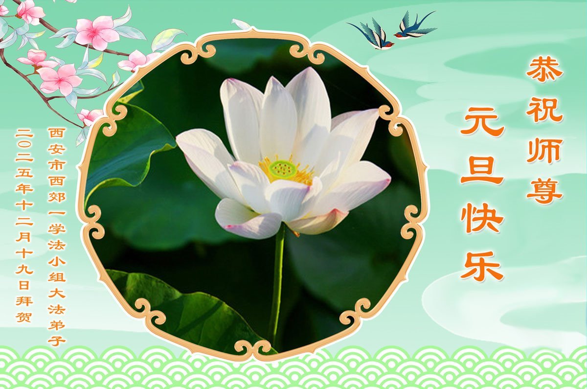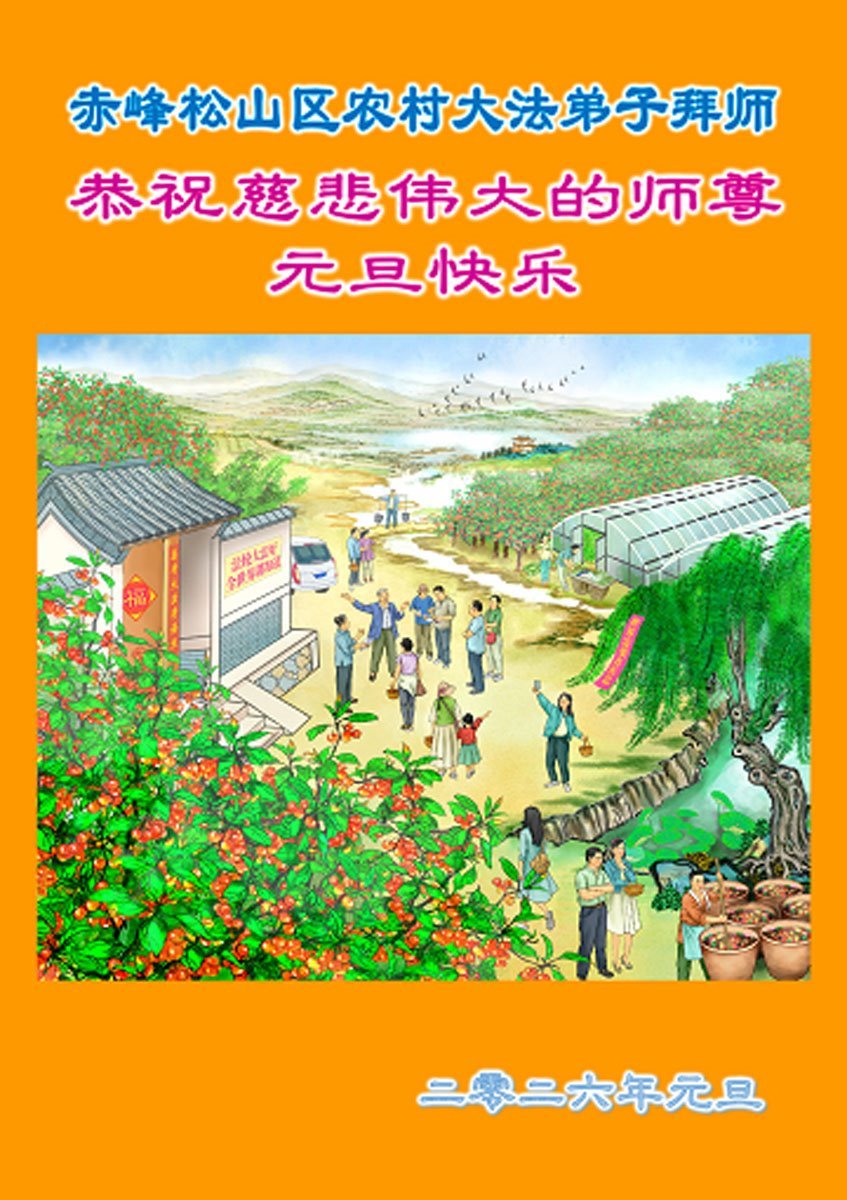 以下是部份來自中國各省、市、地區的學法煉功小組、講真相小組、資料點大法弟子們敬致師尊的新年賀詞賀卡: