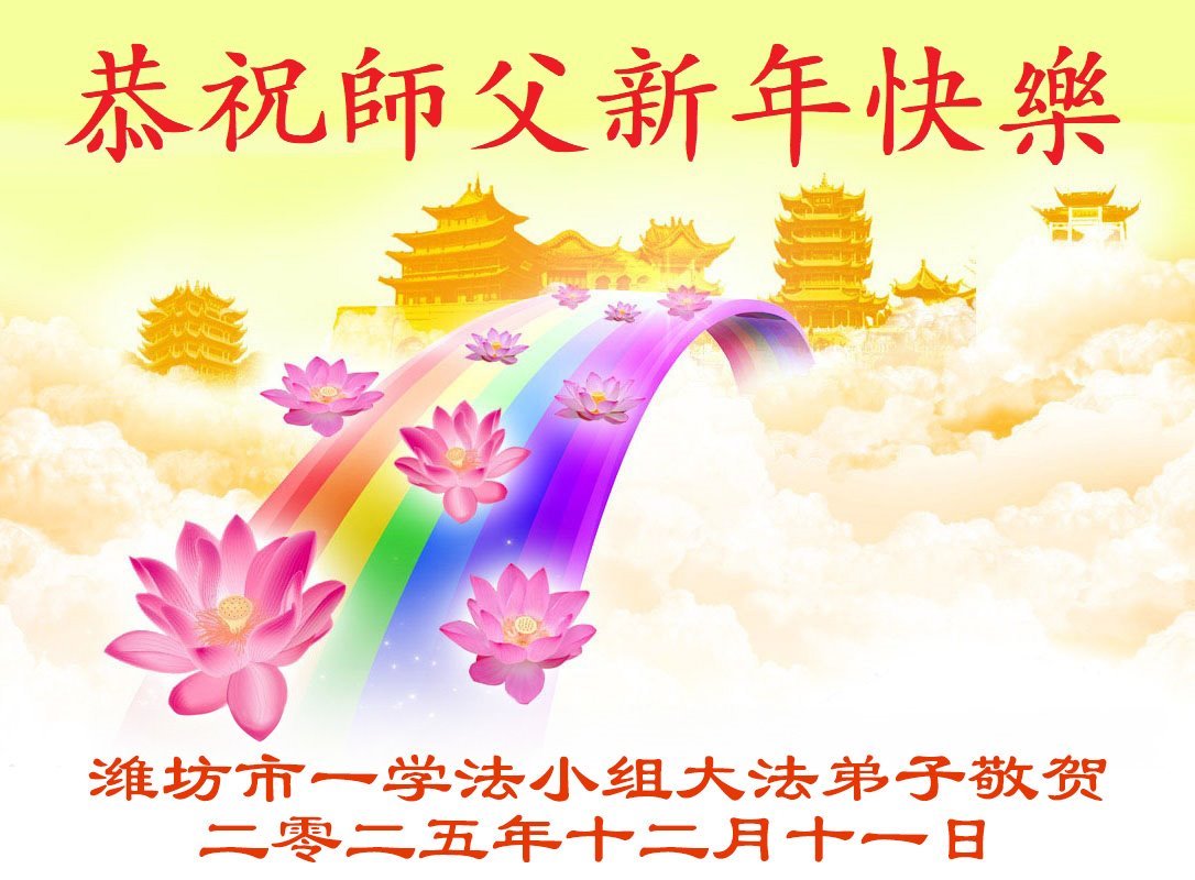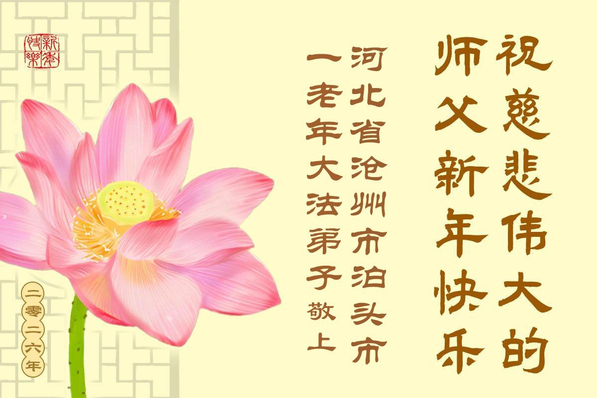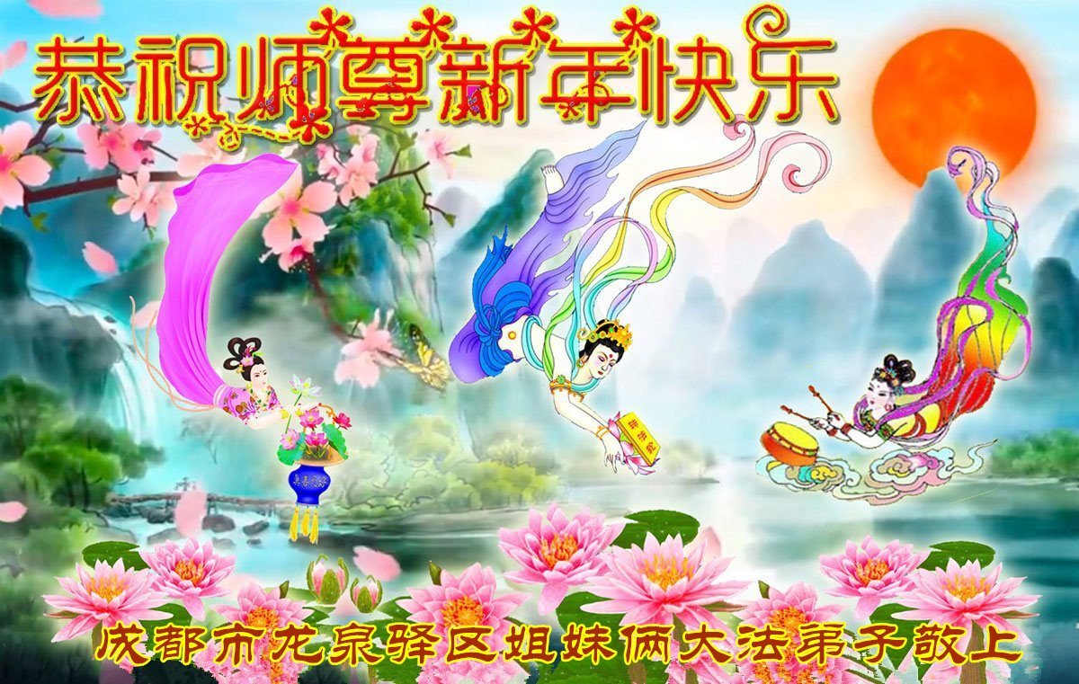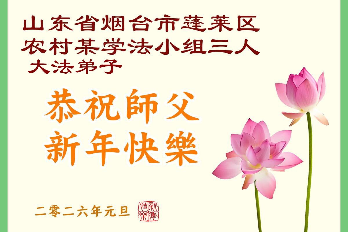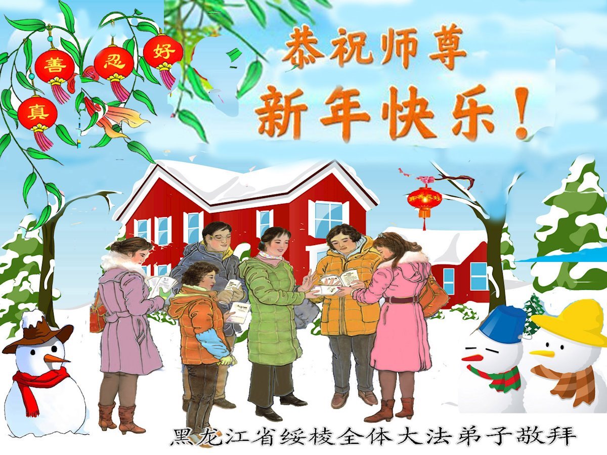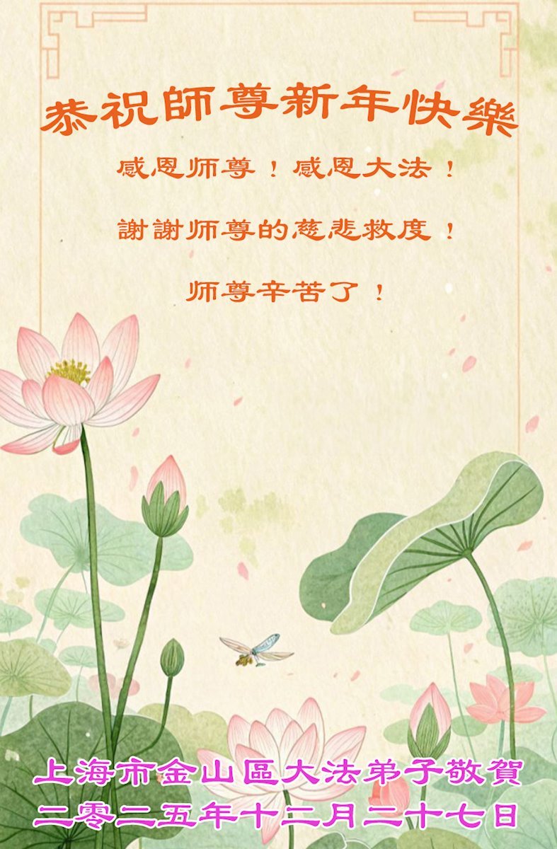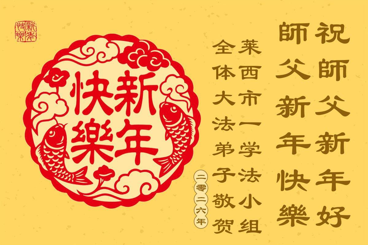 以下是部份來自中國各省、市、地區的學法煉功小組、講真相小組、資料點大法弟子們敬致師尊的新年賀詞賀卡: