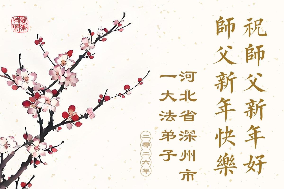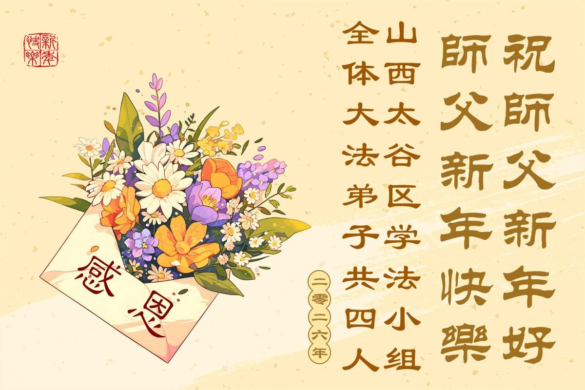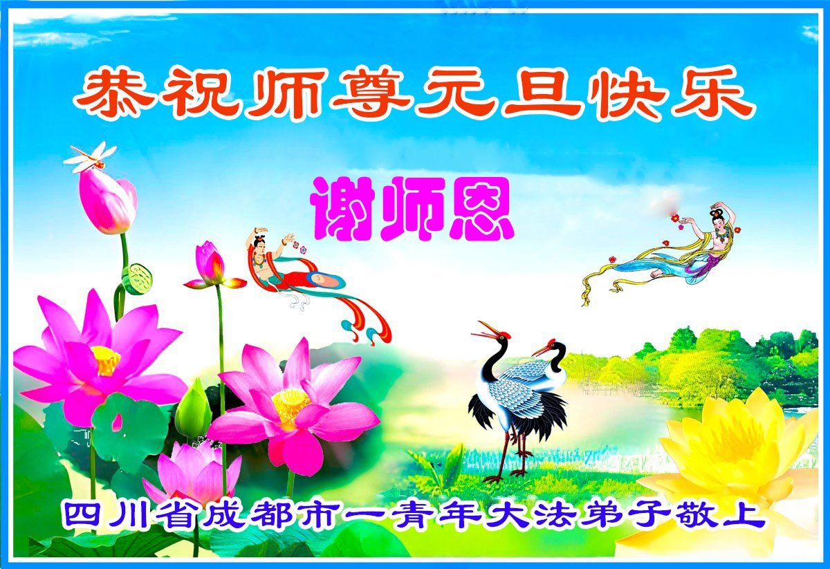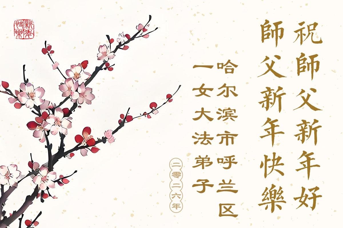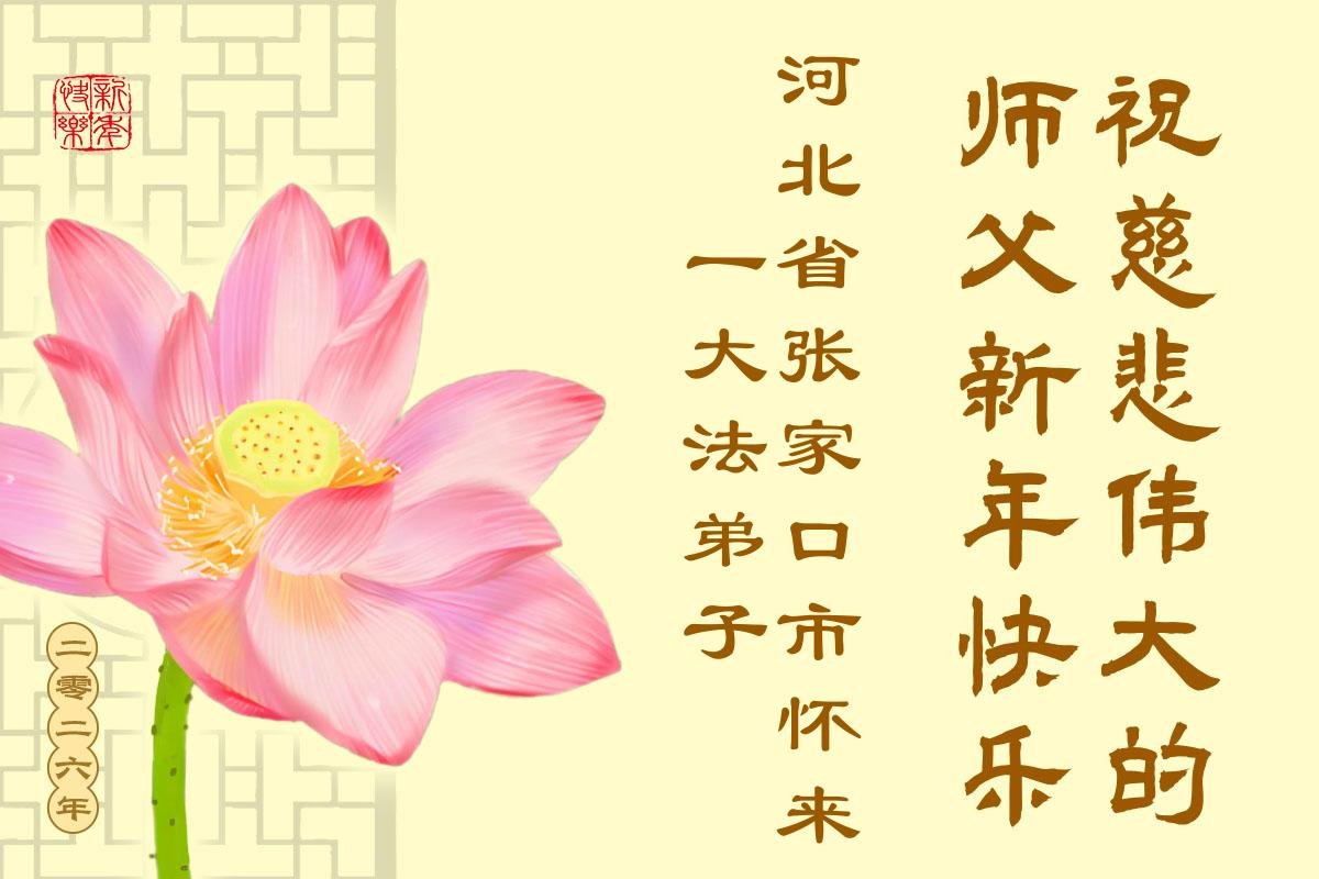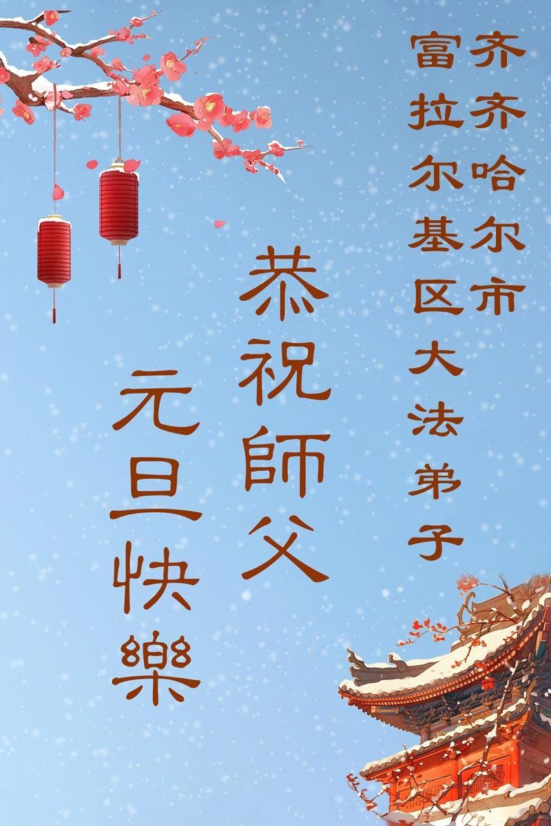 以下是部份來自中國各省、市、地區的學法煉功小組、講真相小組、資料點大法弟子們敬致師尊的新年賀詞賀卡: