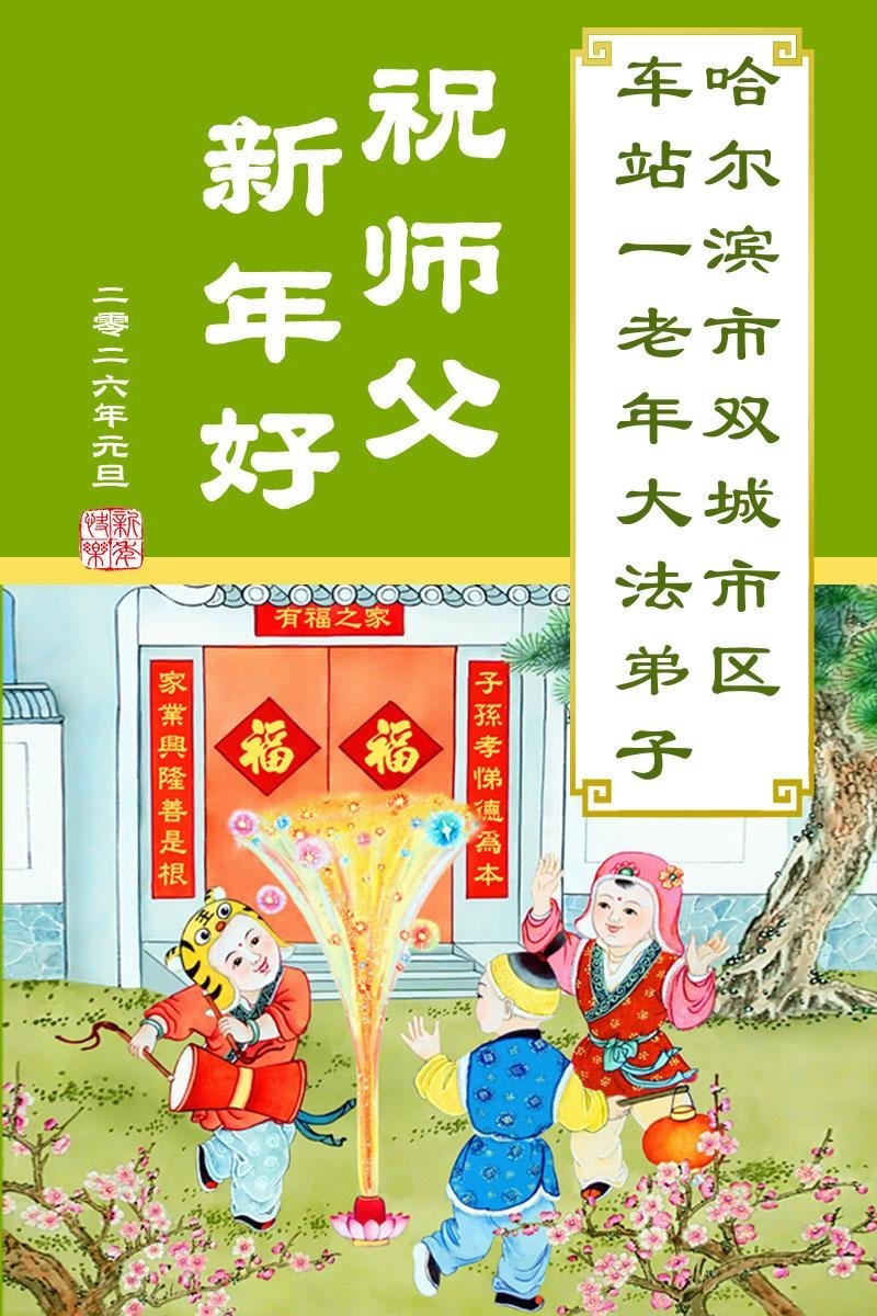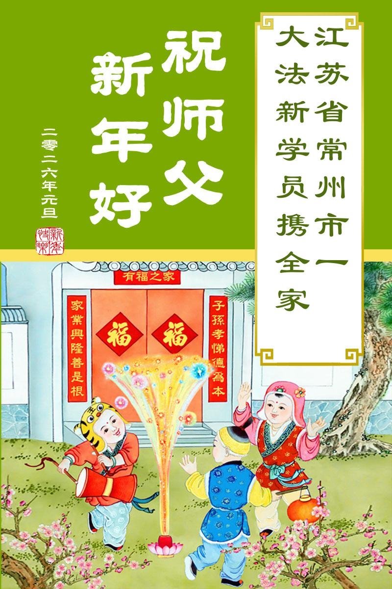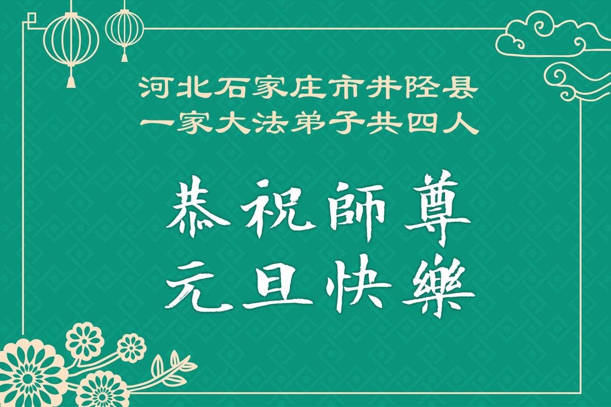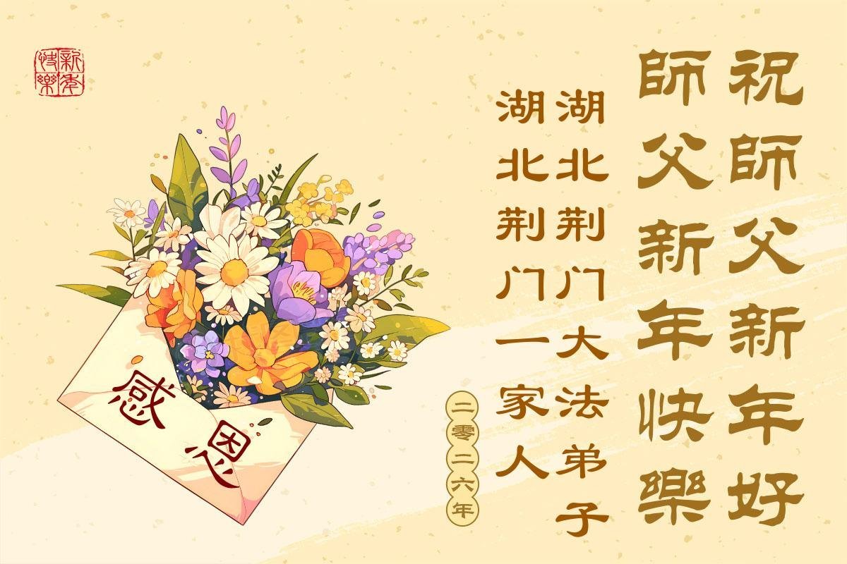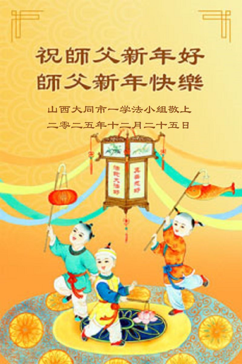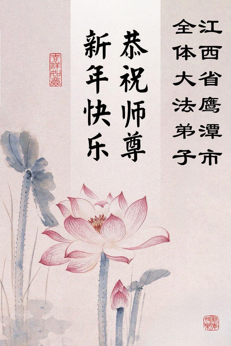 以下是部份來自中國各省、市、地區的學法煉功小組、講真相小組、資料點大法弟子們敬致師尊的新年賀詞賀卡: