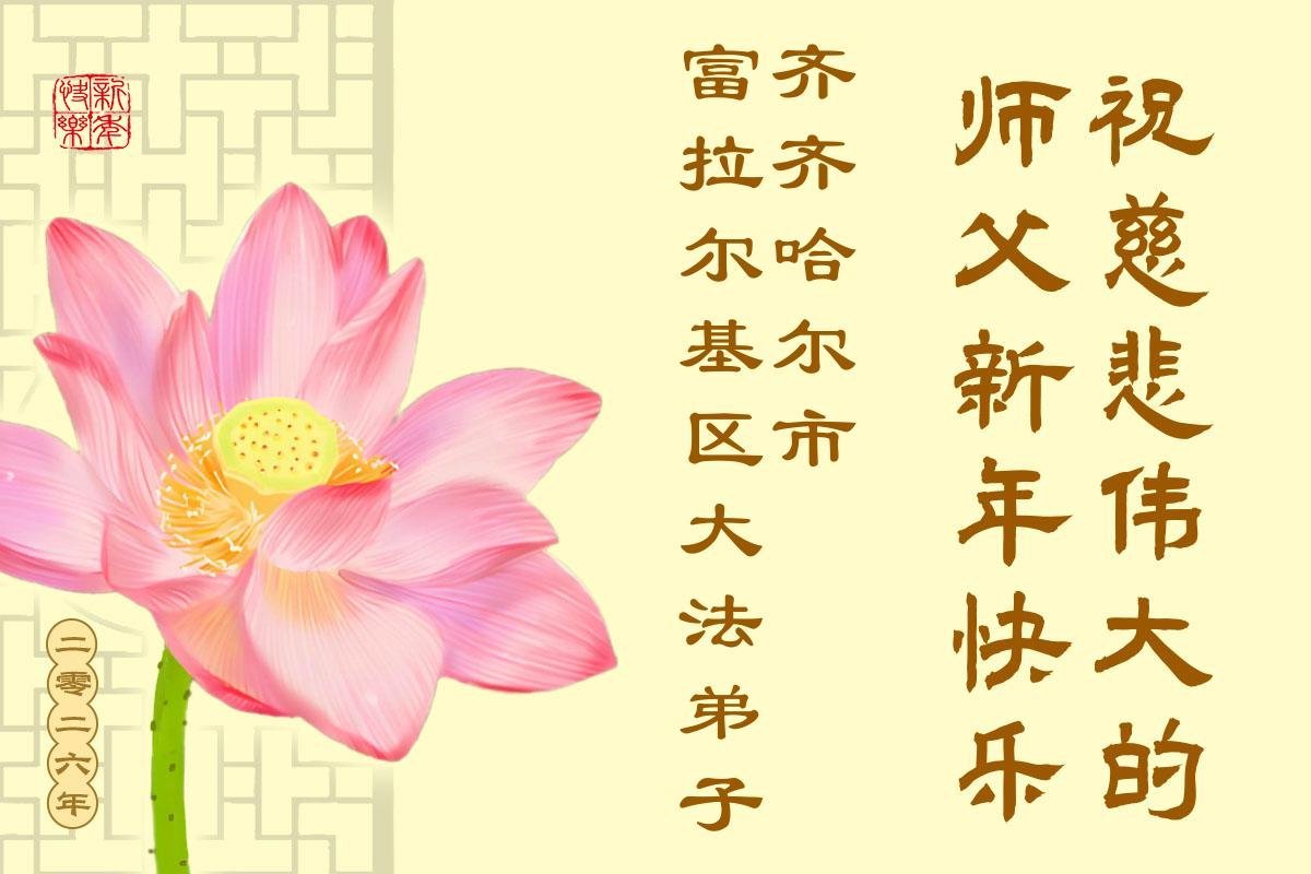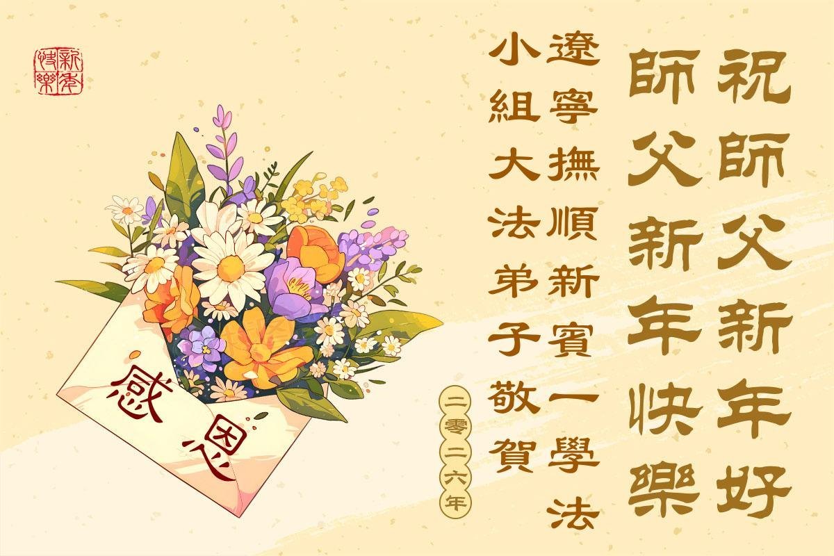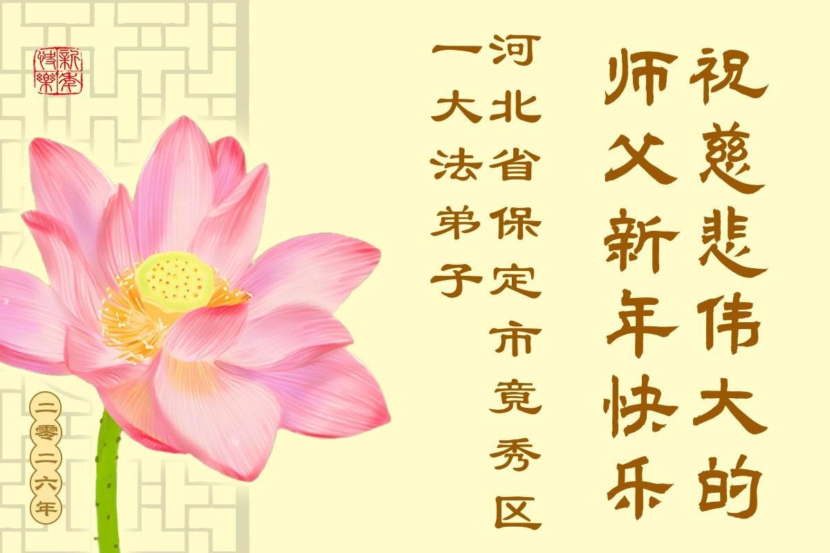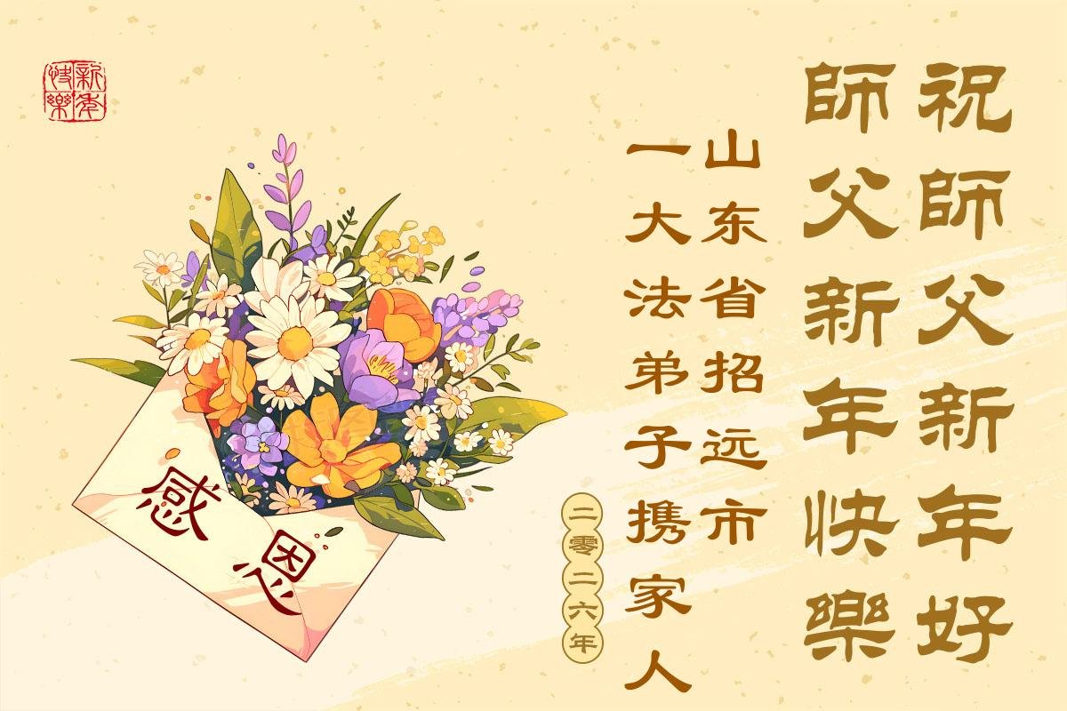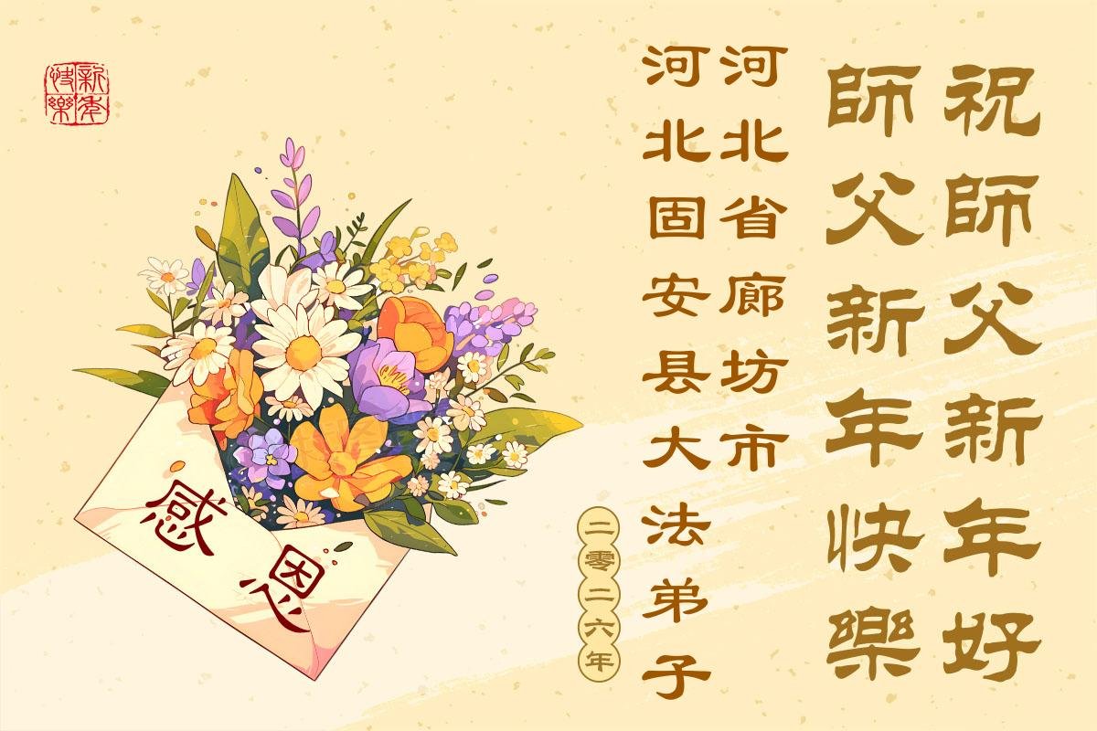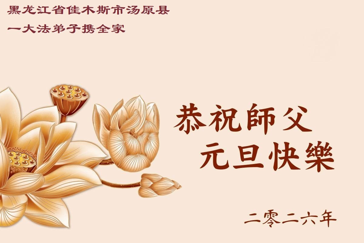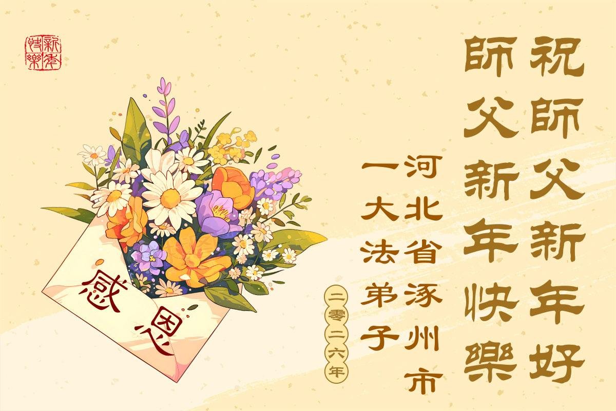 以下是部份來自中國各省、市、地區的學法煉功小組、講真相小組、資料點大法弟子們敬致師尊的新年賀詞賀卡: