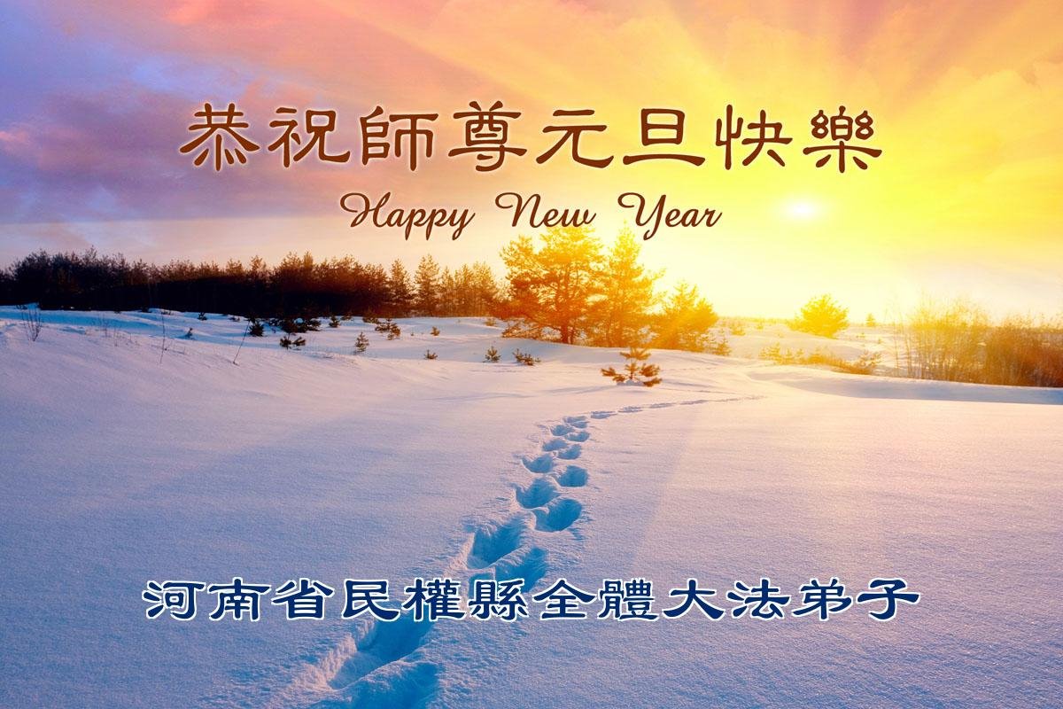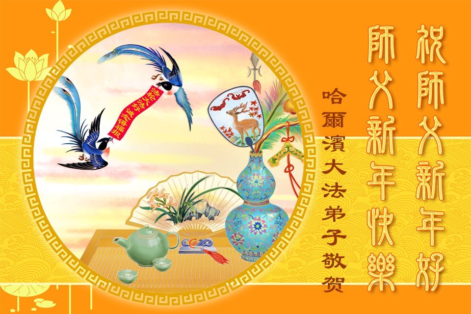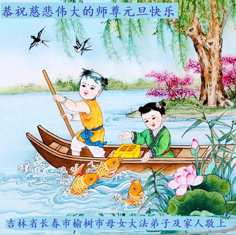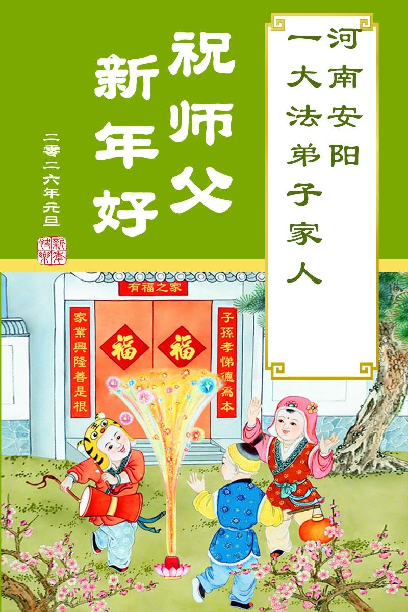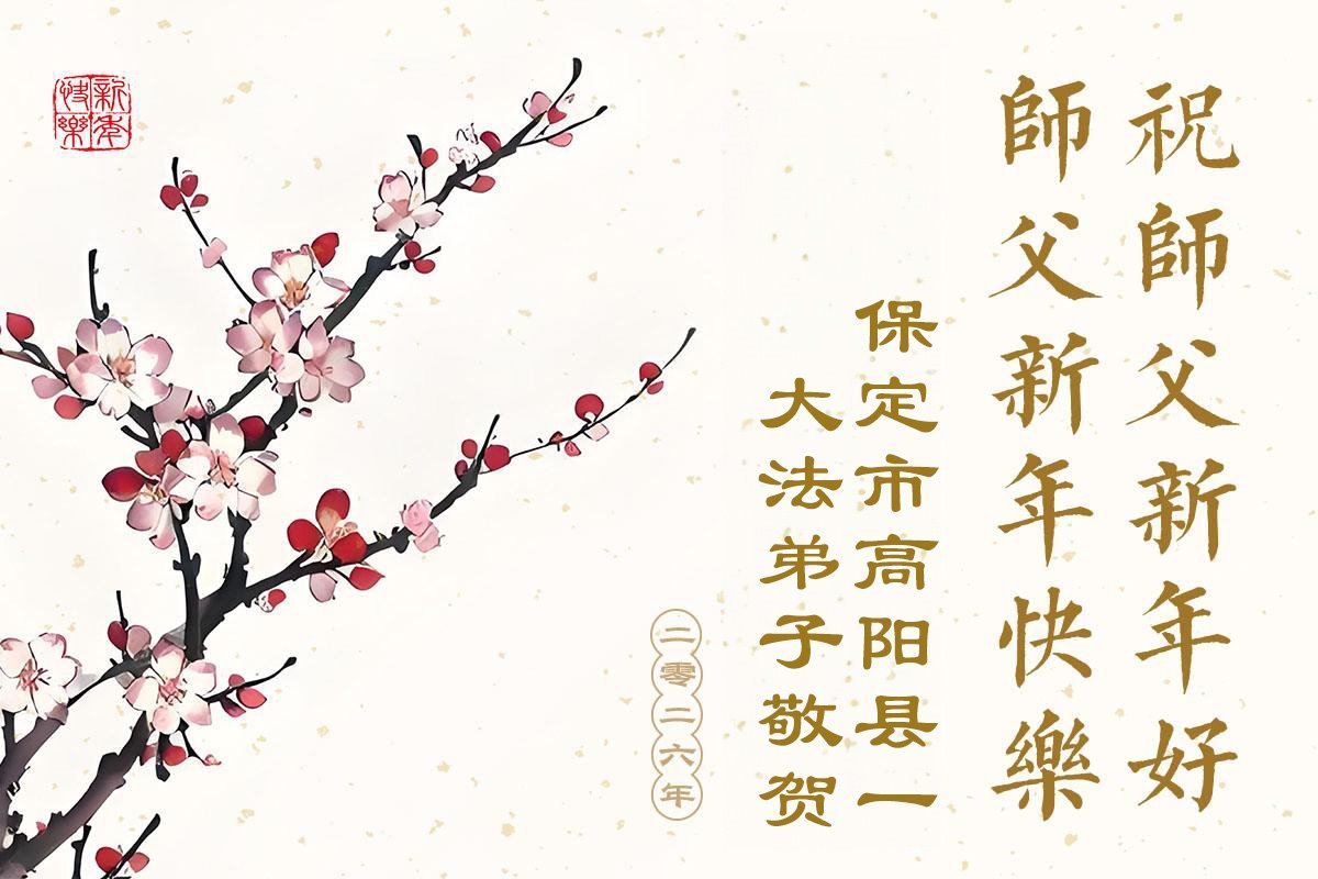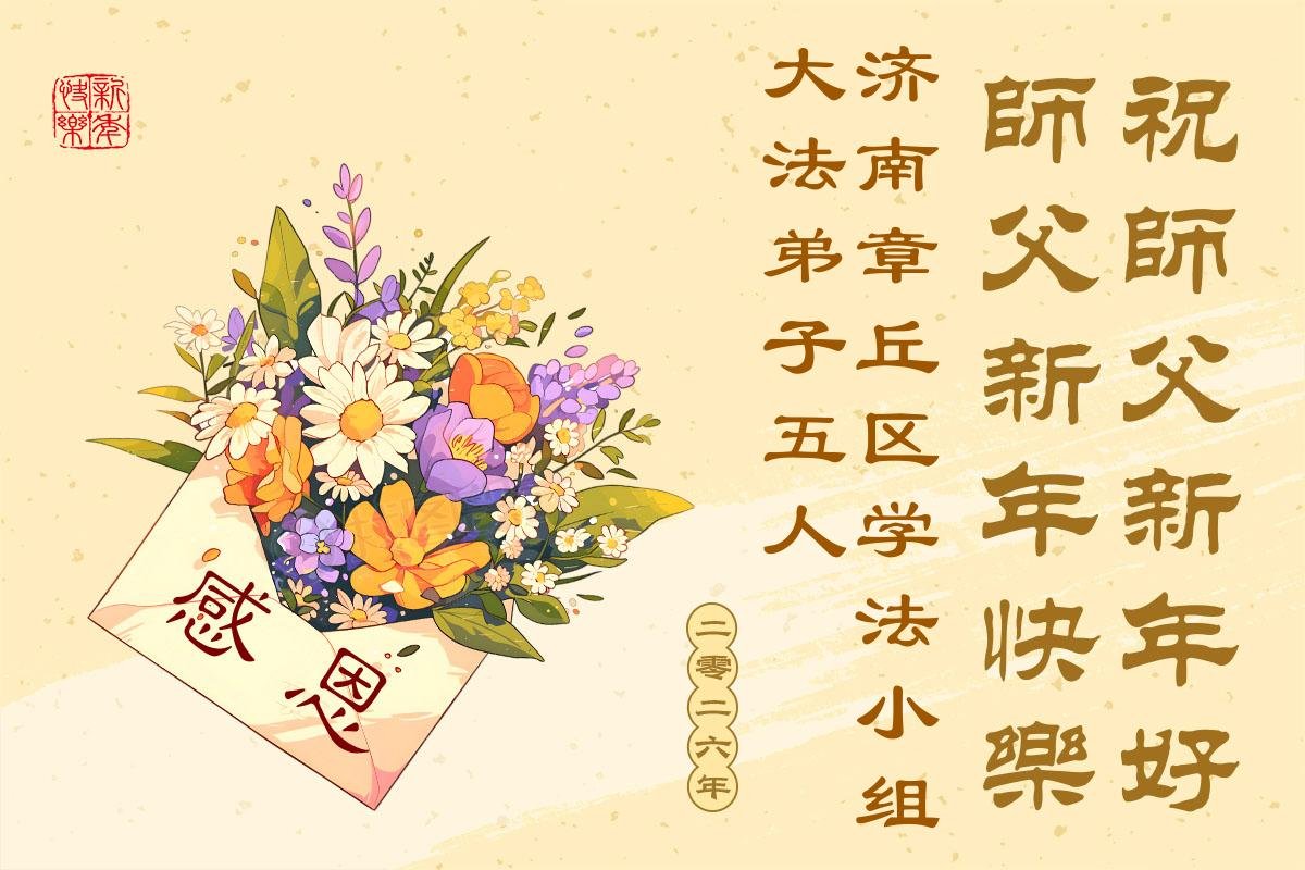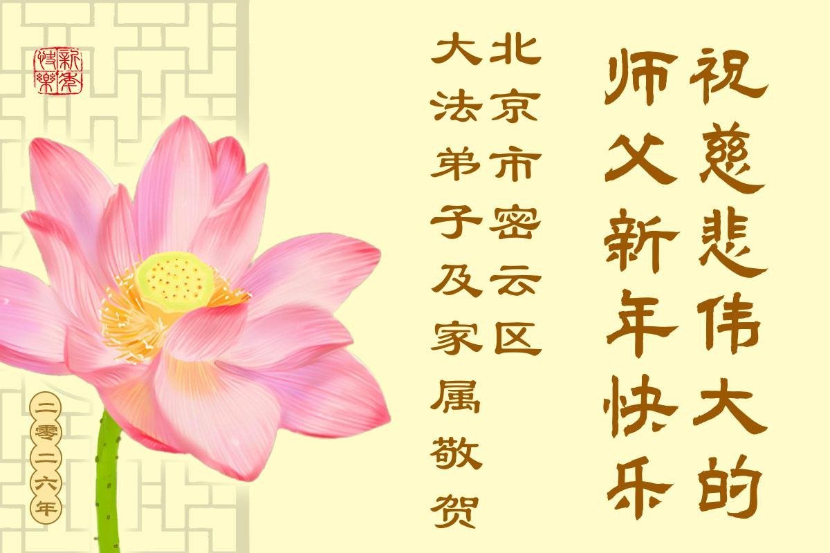 以下是部份來自中國各省、市、地區的學法煉功小組、講真相小組、資料點大法弟子們敬致師尊的新年賀詞賀卡: