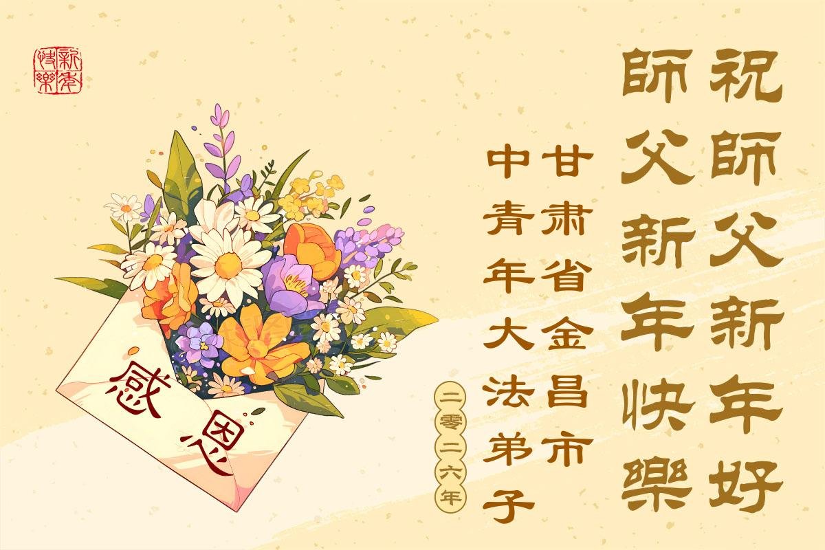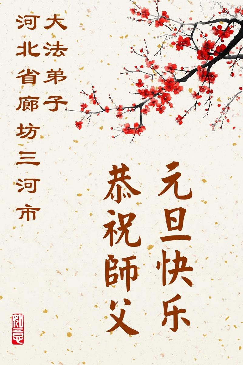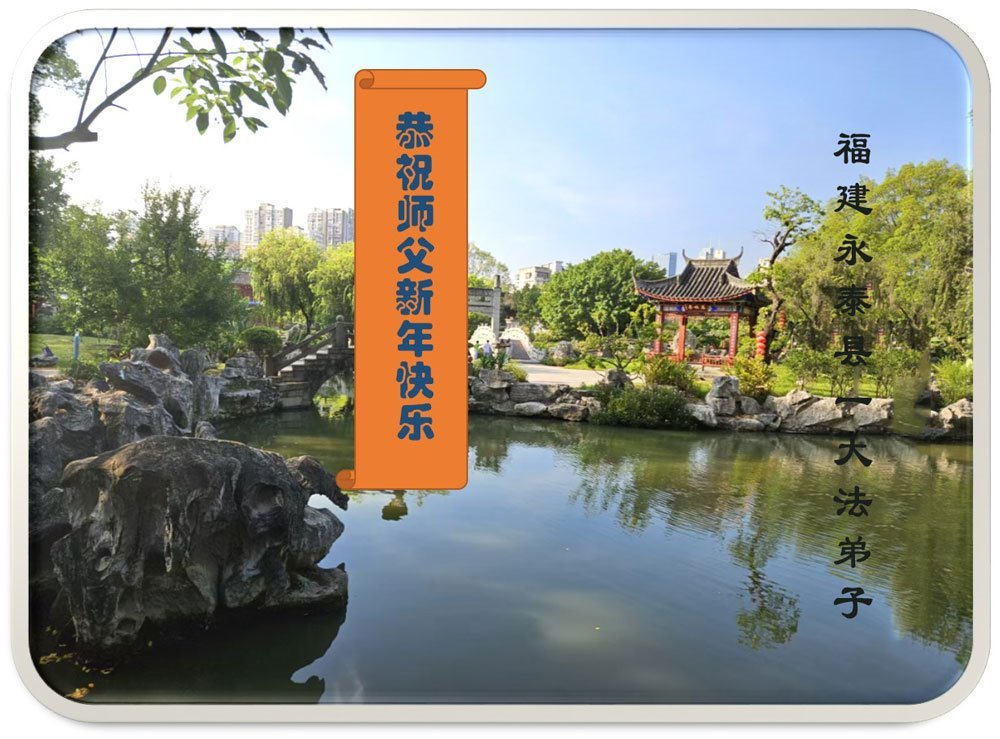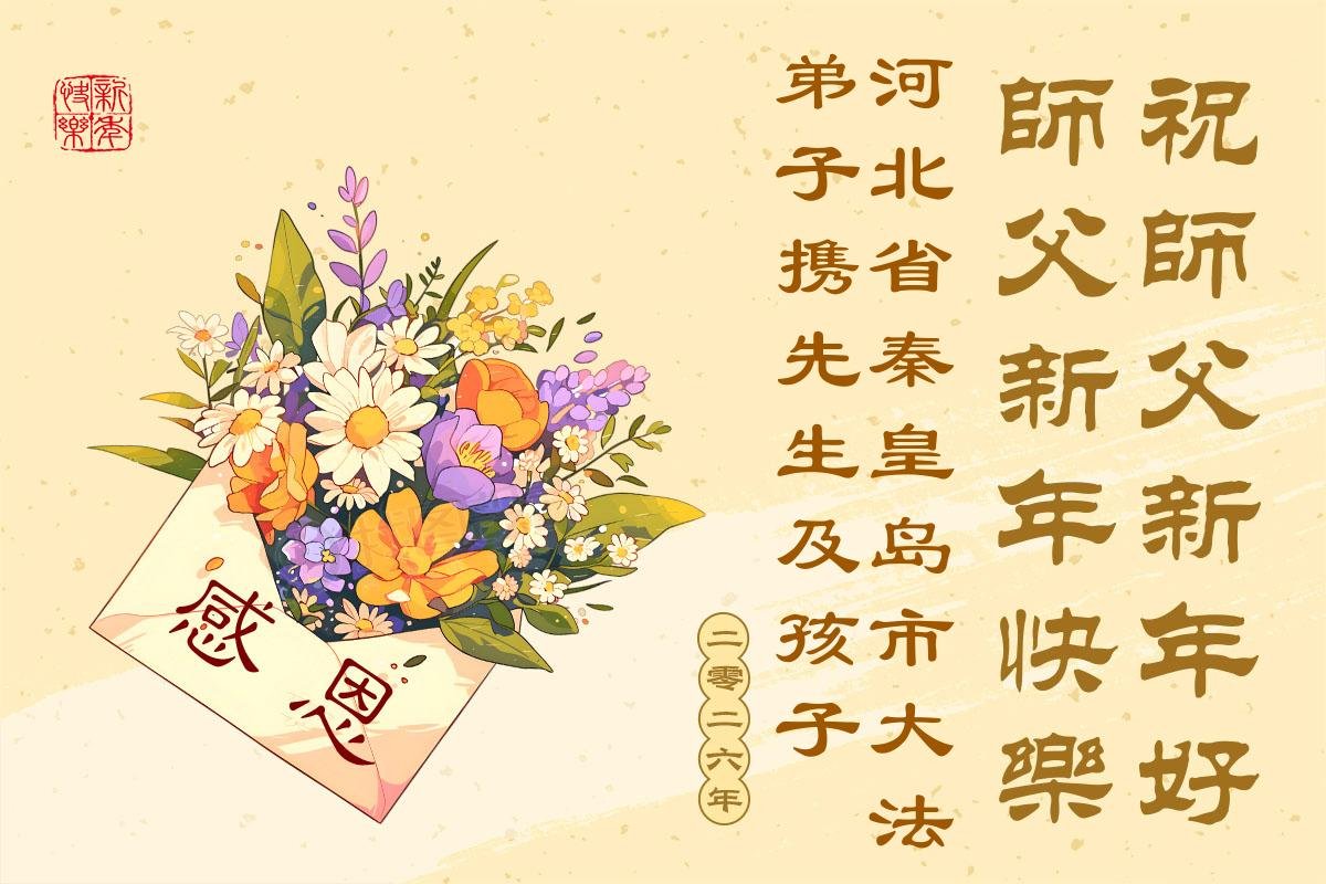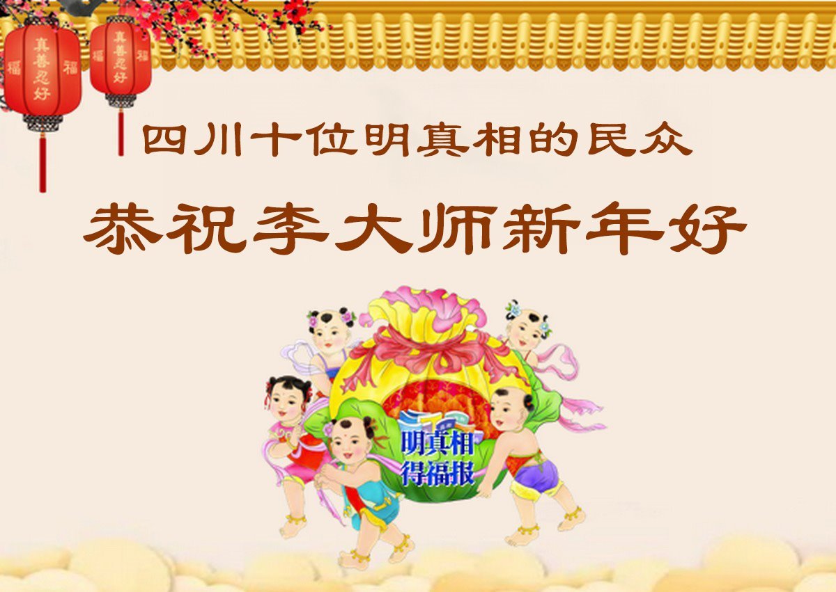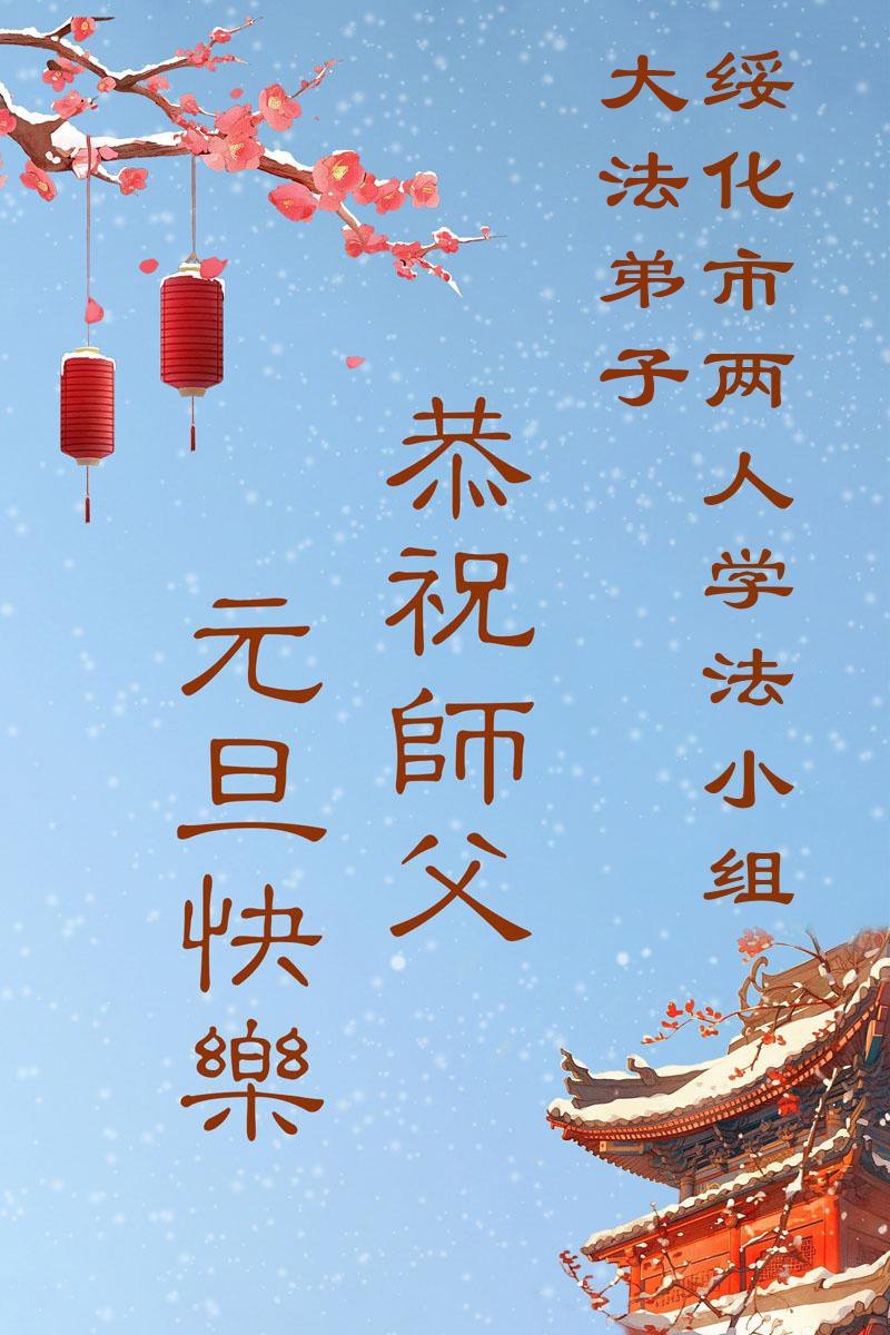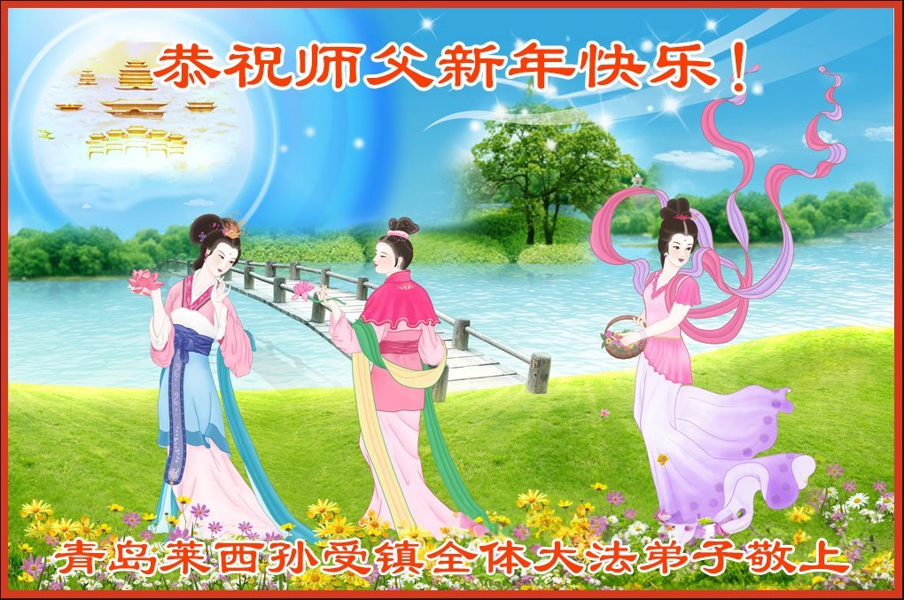 以下是部份來自中國各省、市、地區的學法煉功小組、講真相小組、資料點大法弟子們敬致師尊的新年賀詞賀卡: