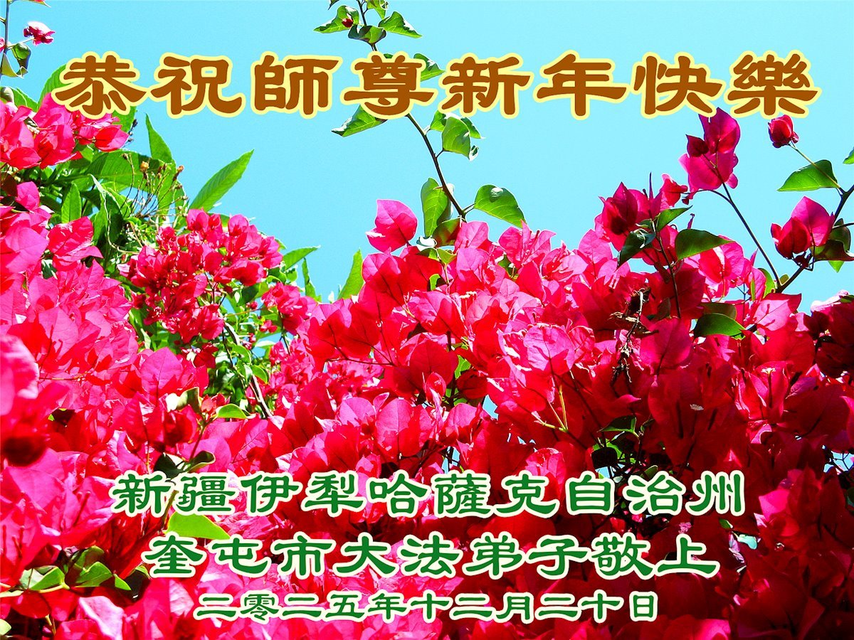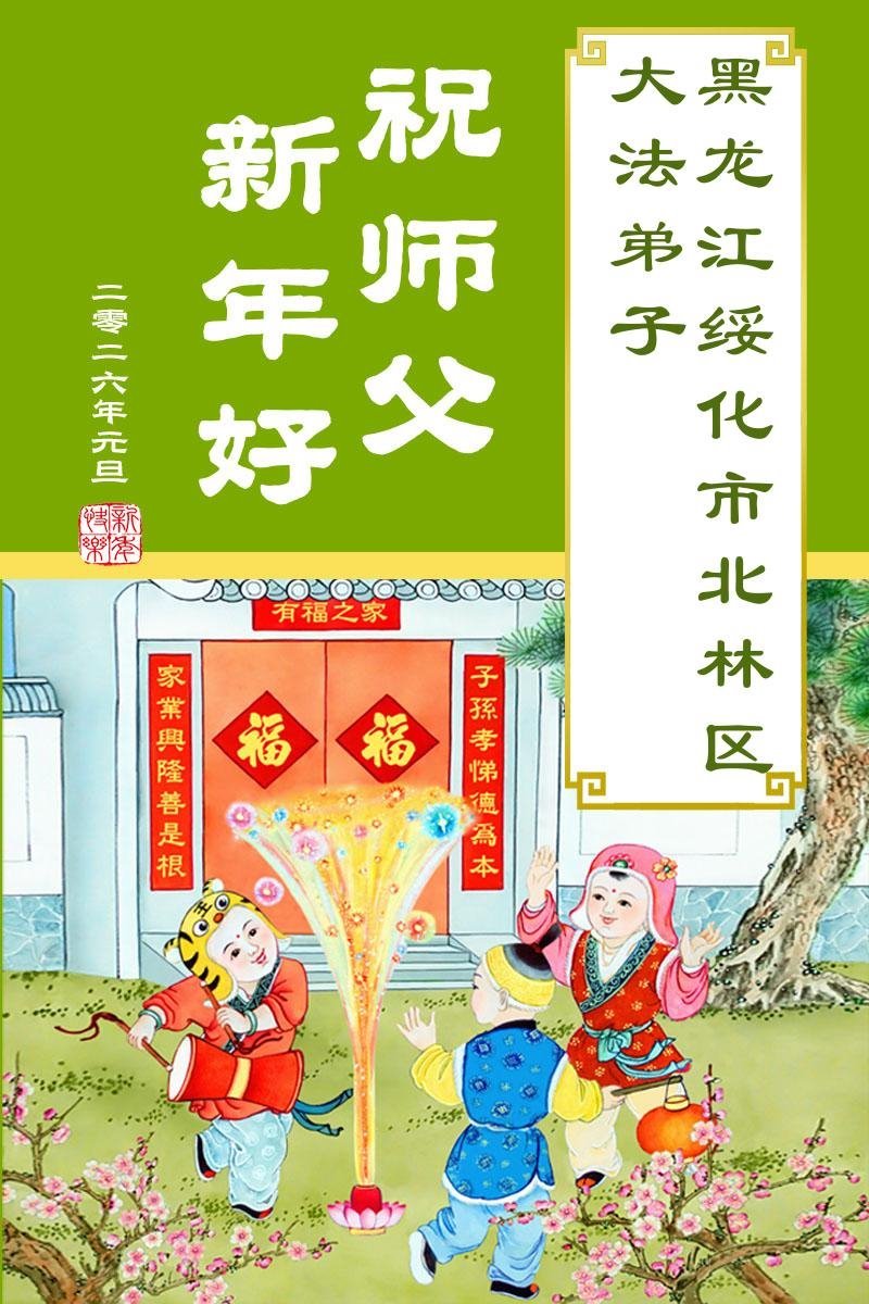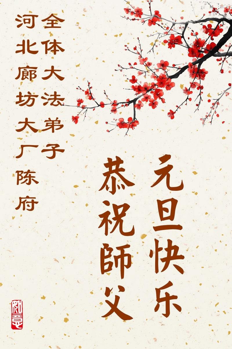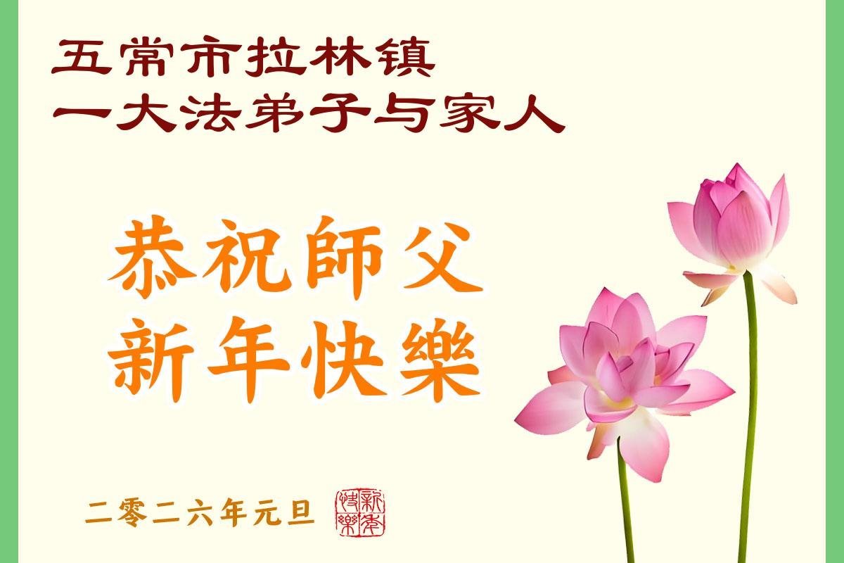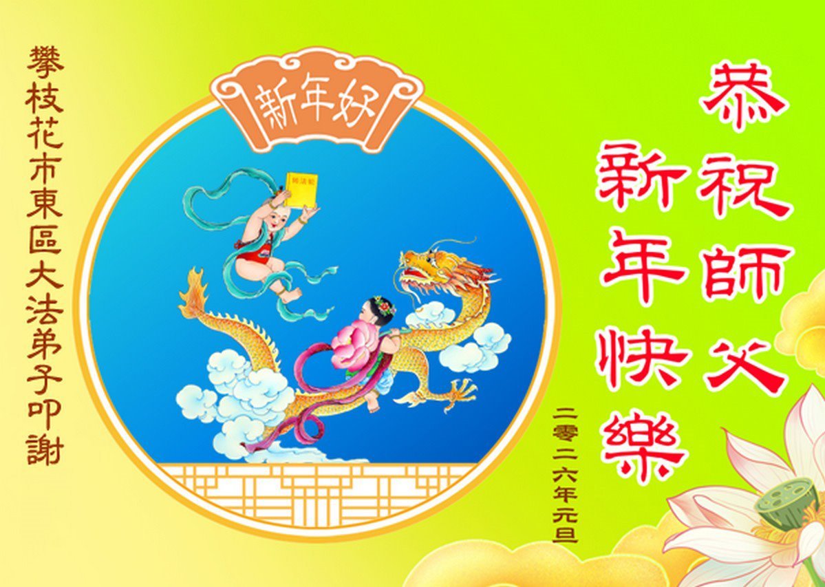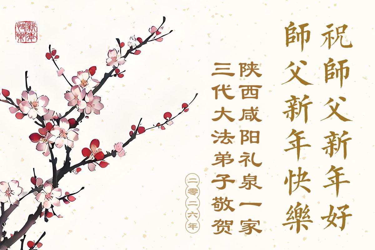 以下是部份來自中國各省、市、地區的學法煉功小組、講真相小組、資料點大法弟子們敬致師尊的新年賀詞賀卡:
